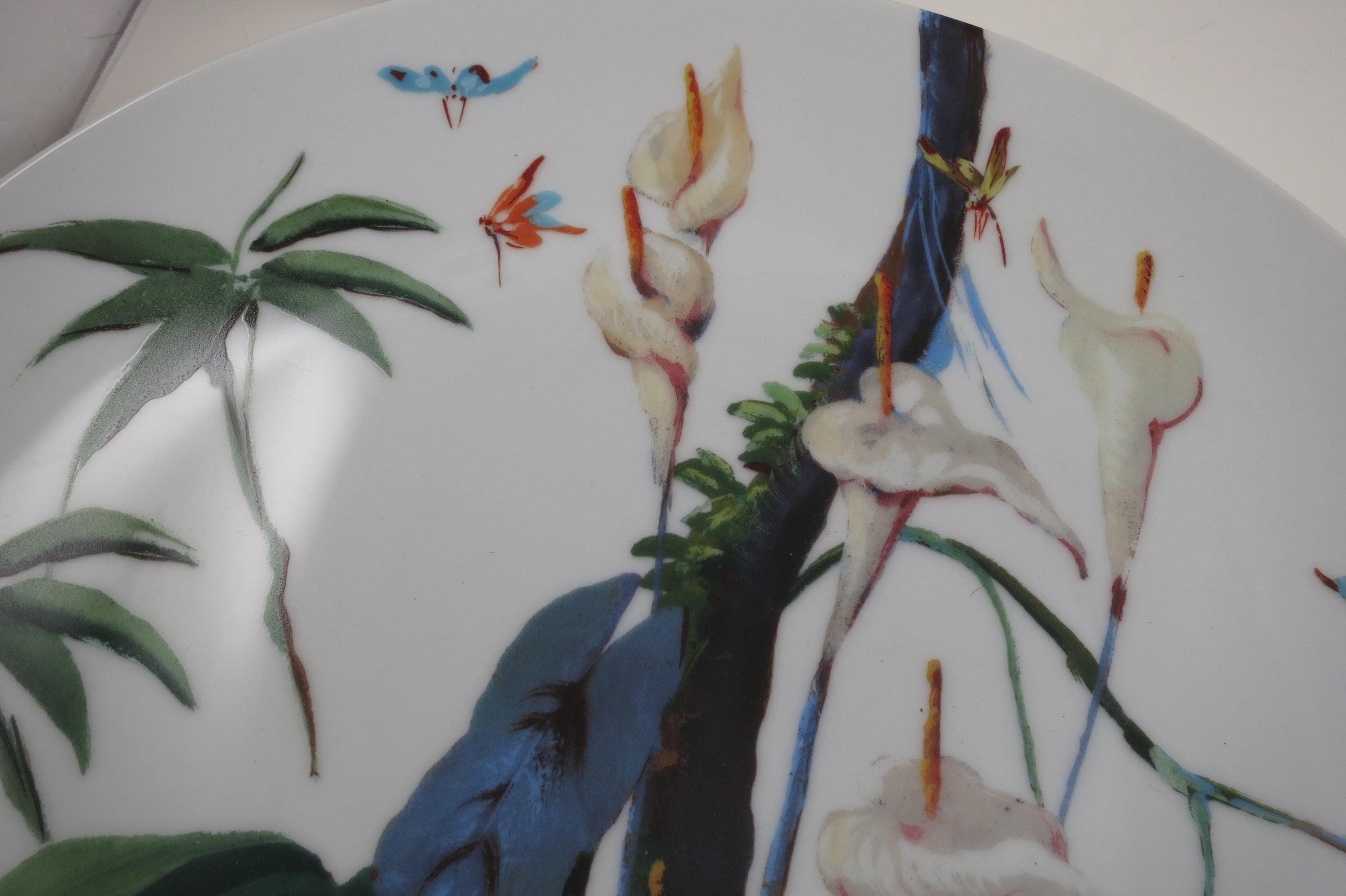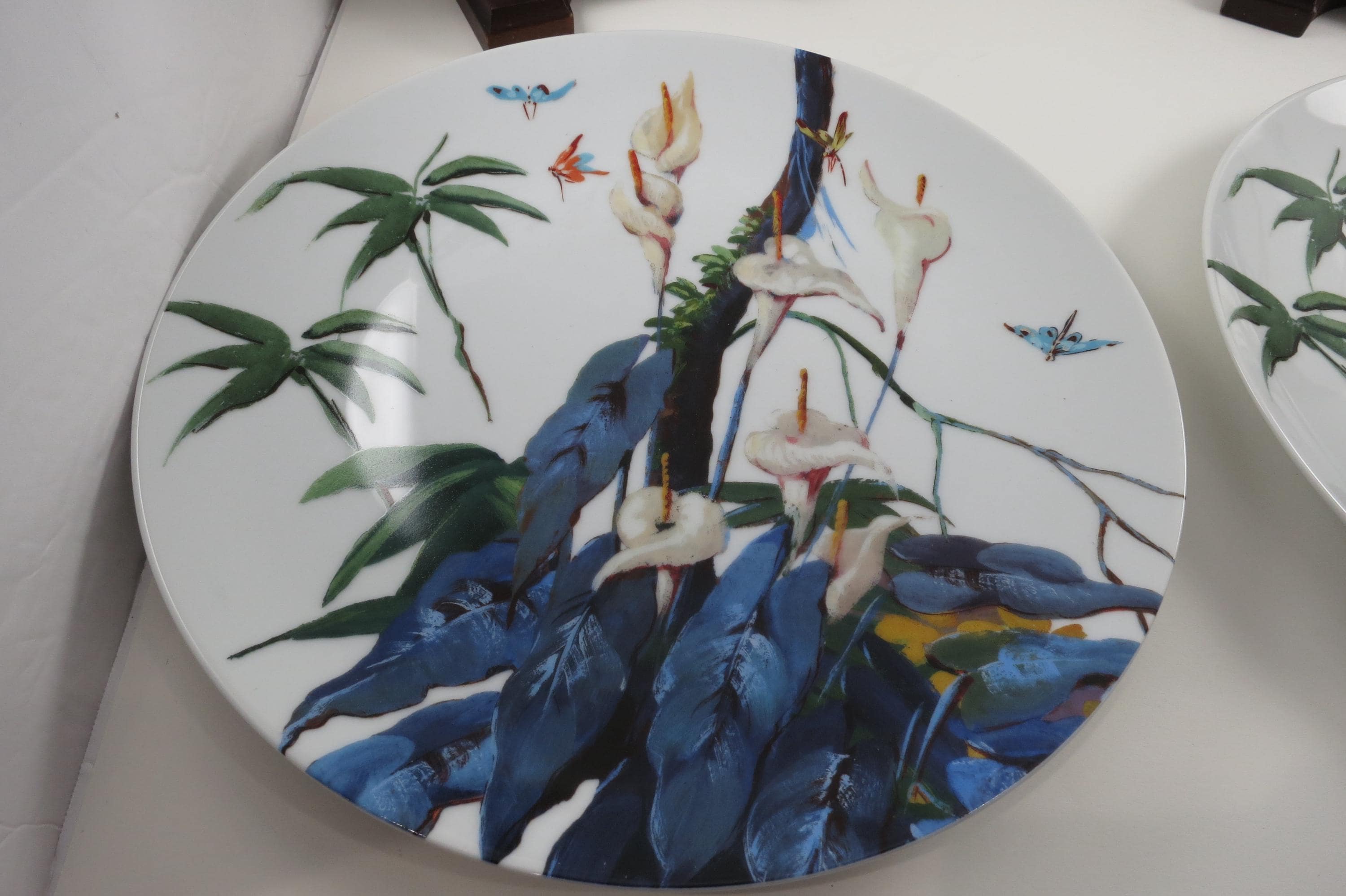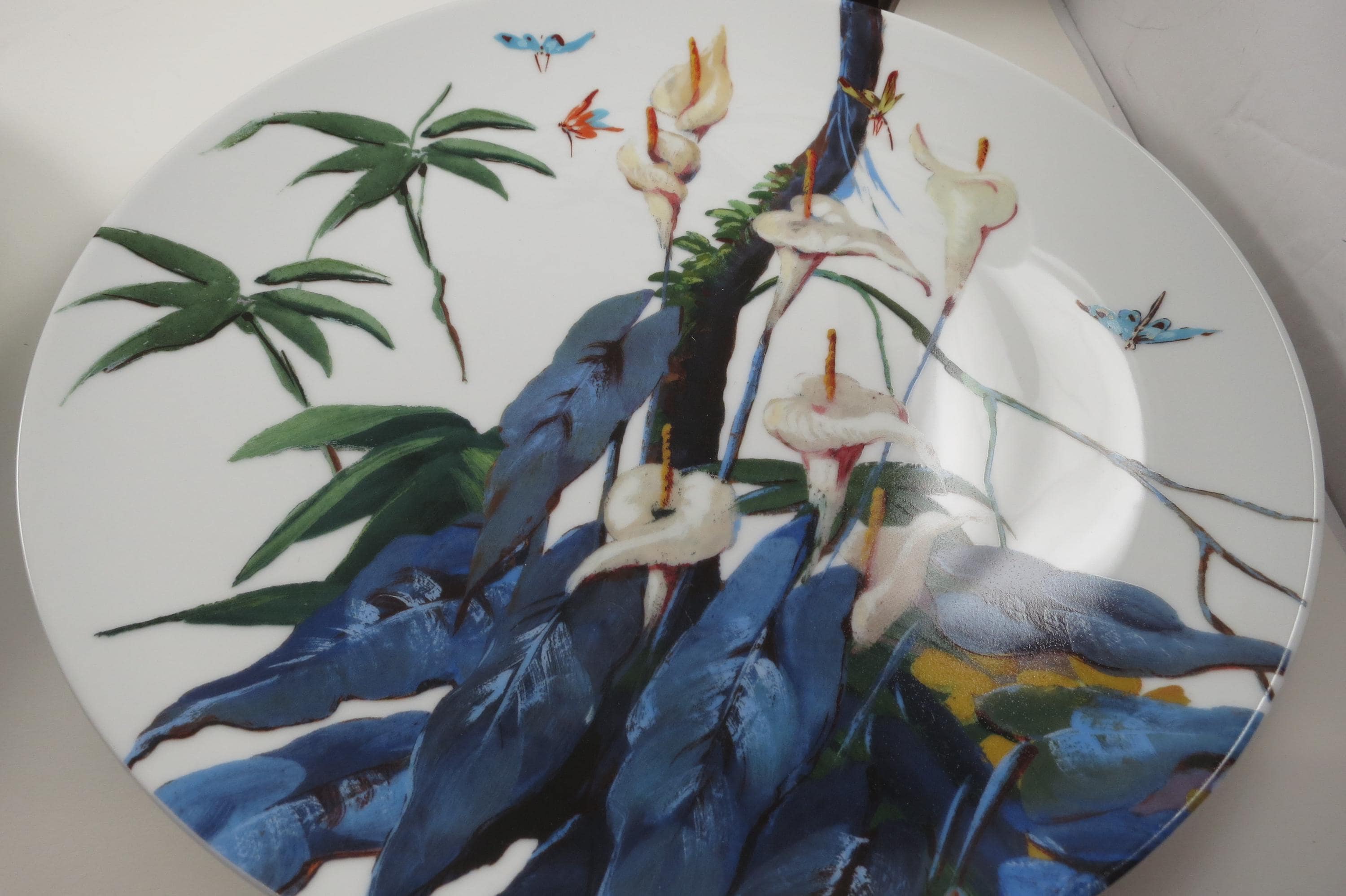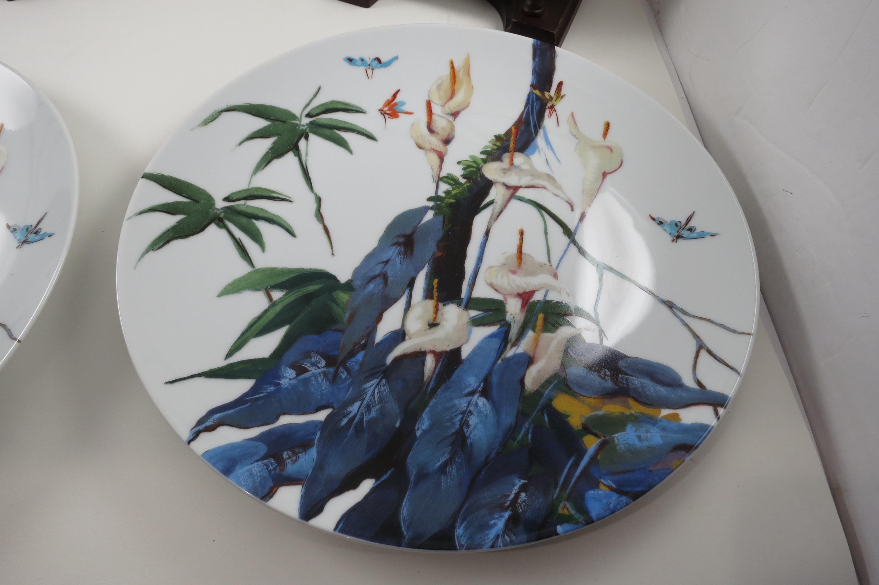 Set of 4 Williams Sonoma Pavao Calla Lilies 10 5/8 Inch Dinner Plates.