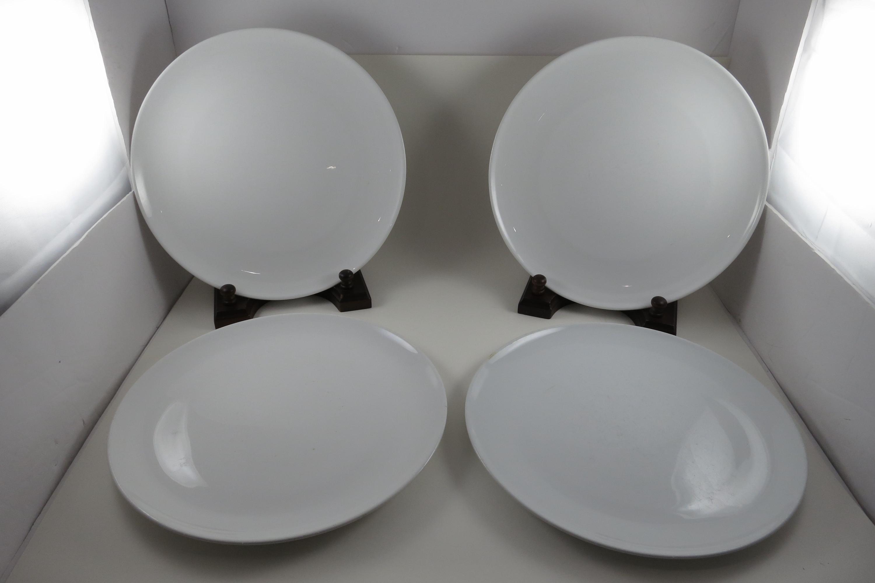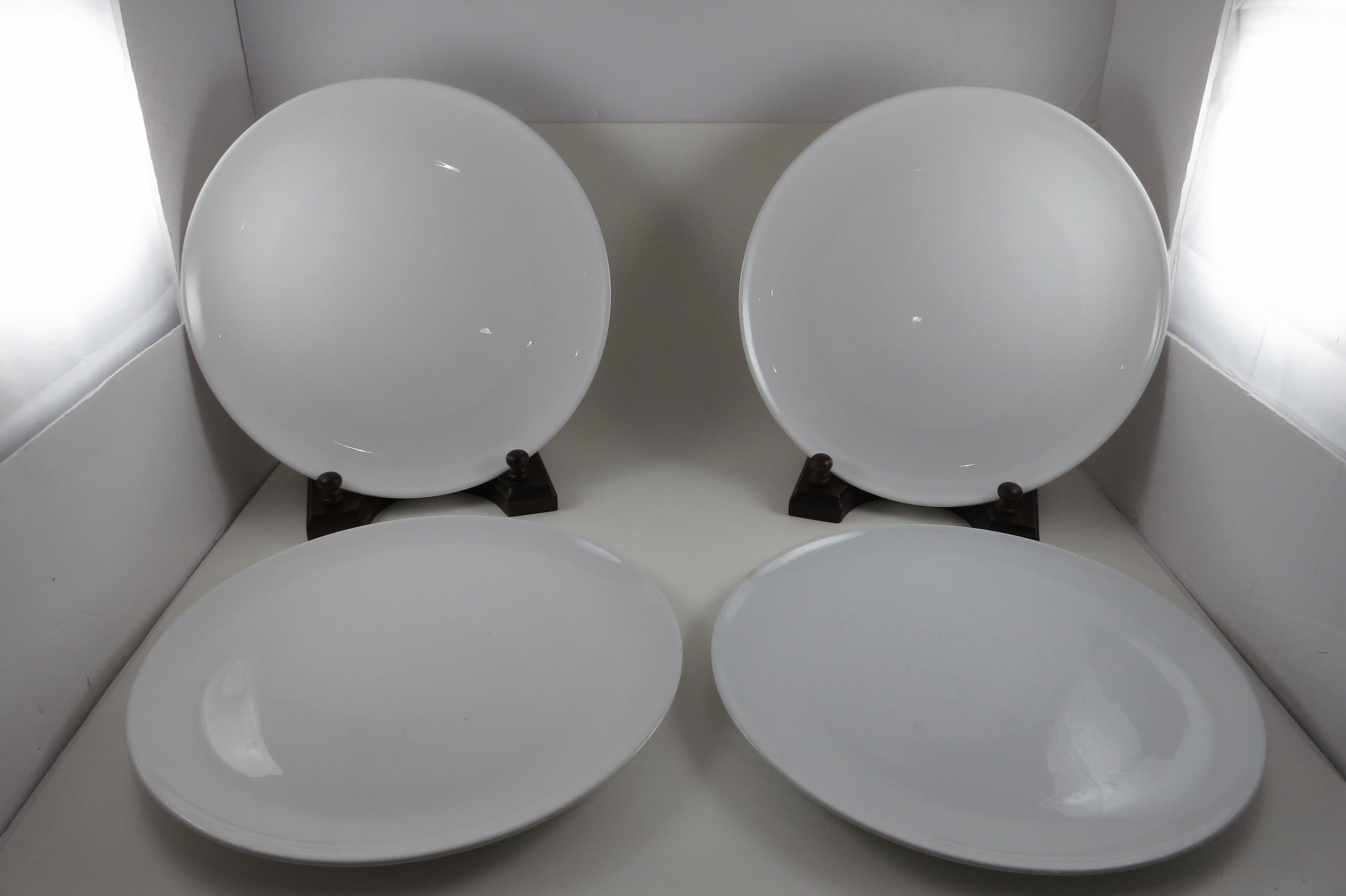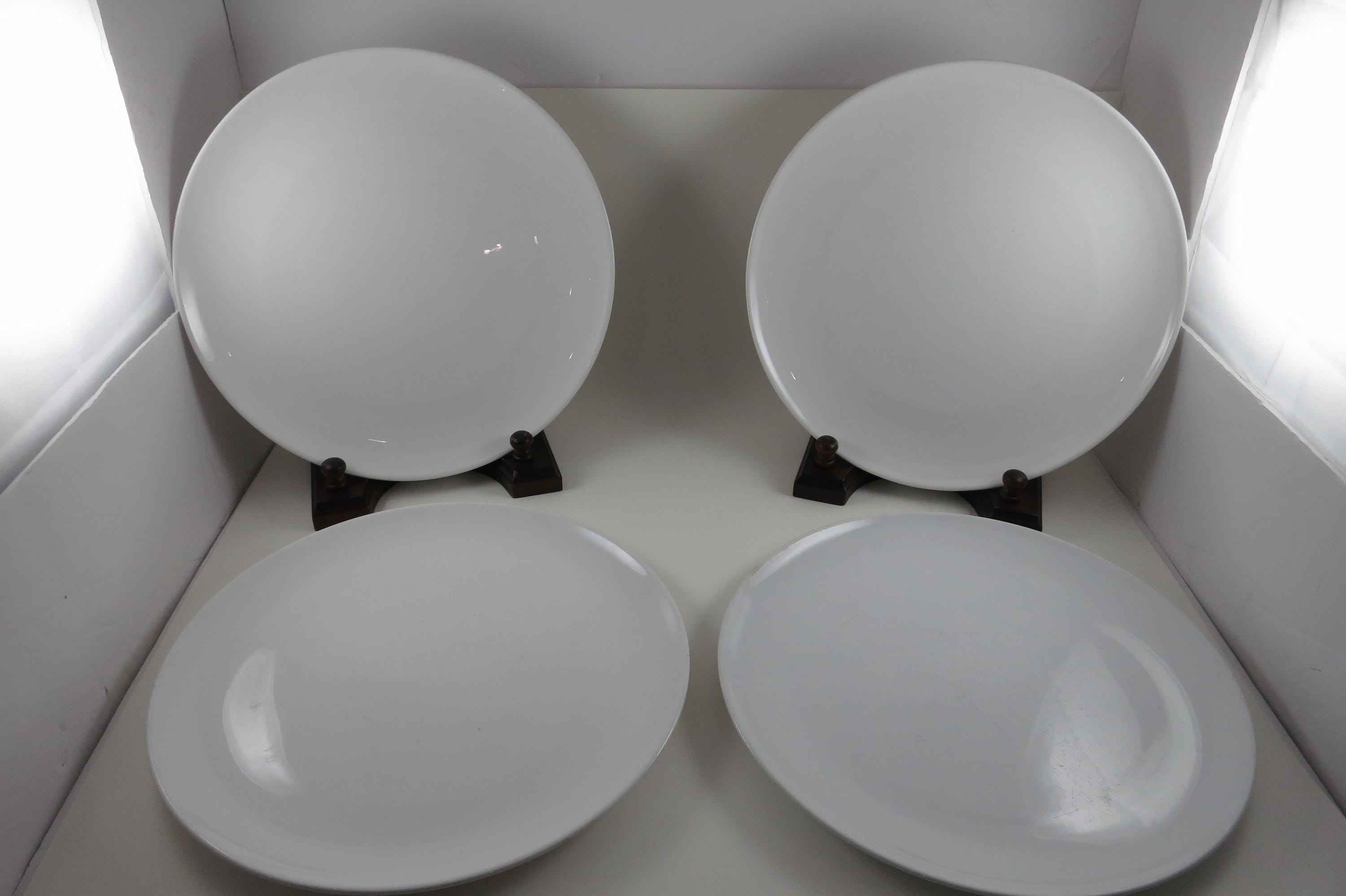 Set of Four Vintage Centura by Corning White Coupe 10 1/8 Inch Dinner Plates