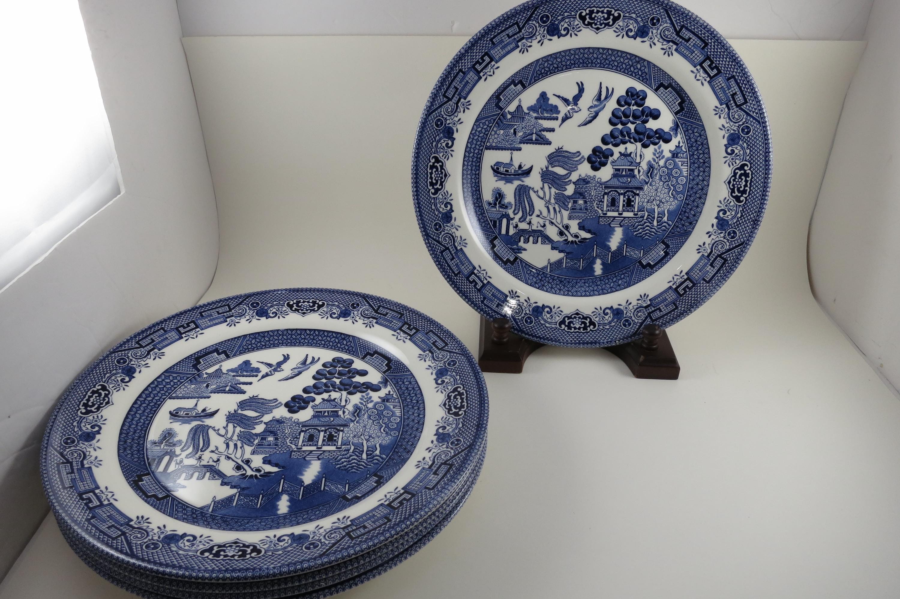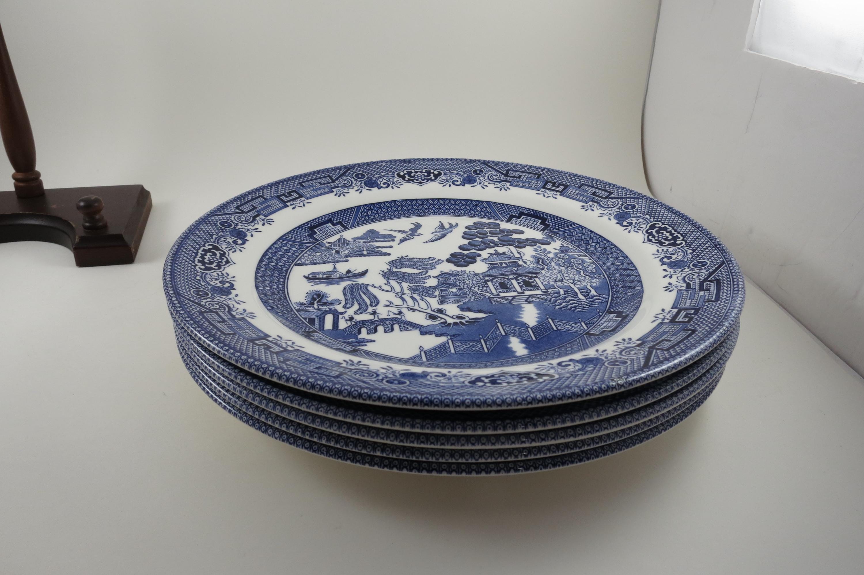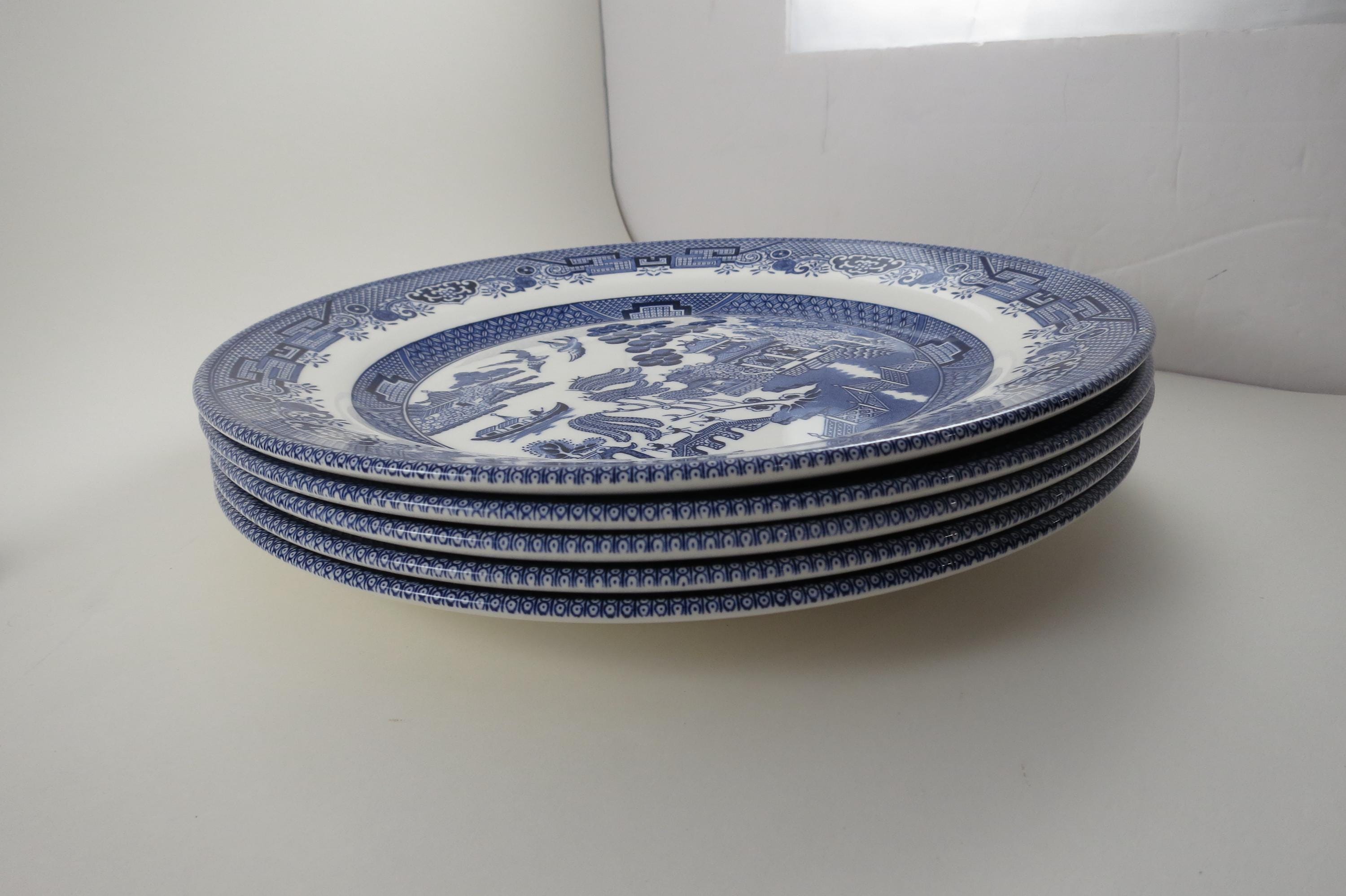 Set of 5 Vintage Blue Willow Churchill Dinner Plates (10 1/4 Inch) England
