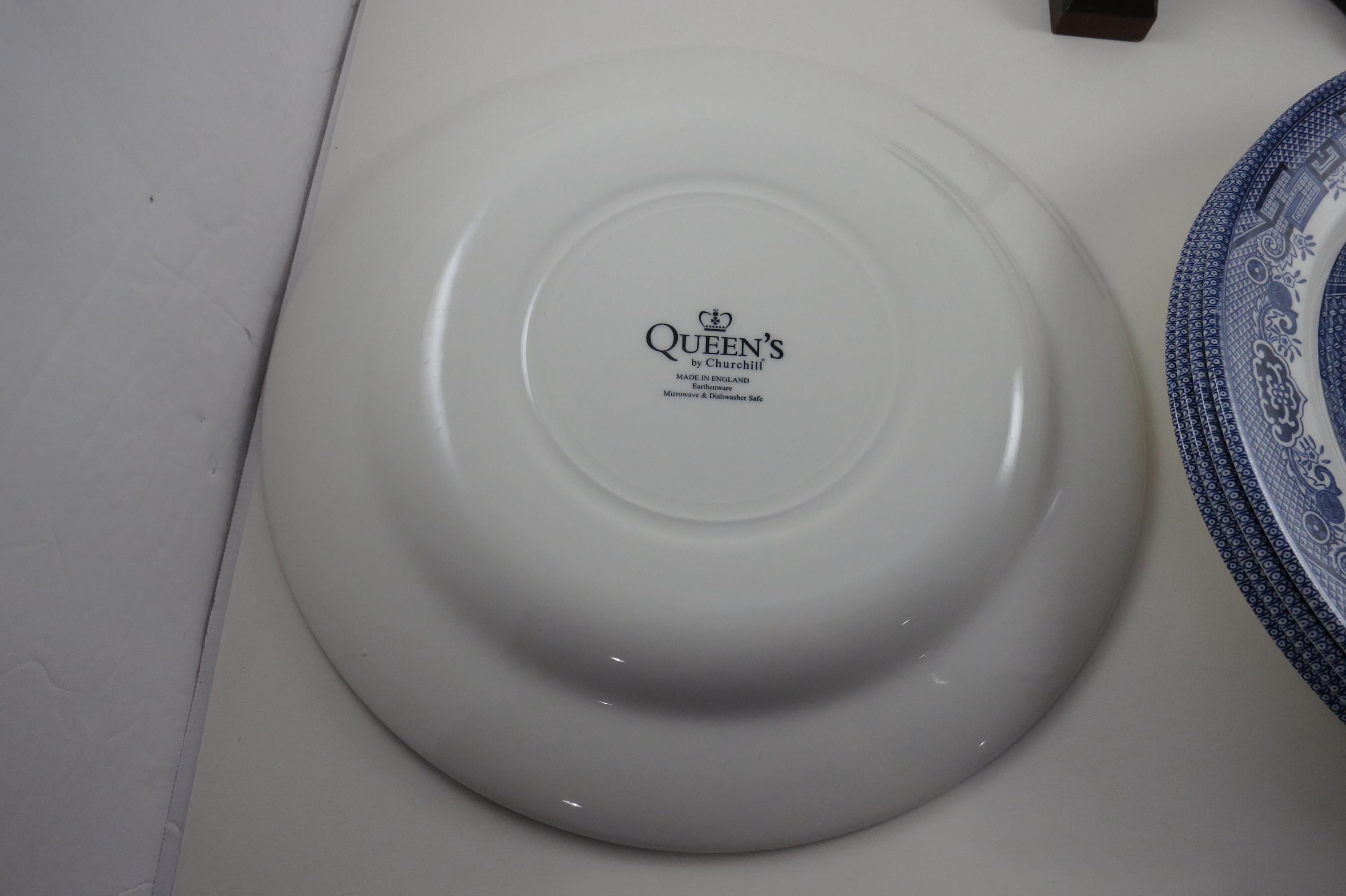 Set of Five Vintage Blue Willow by Churchill Queens 10 1/4 Inch Dinner Plates England.
