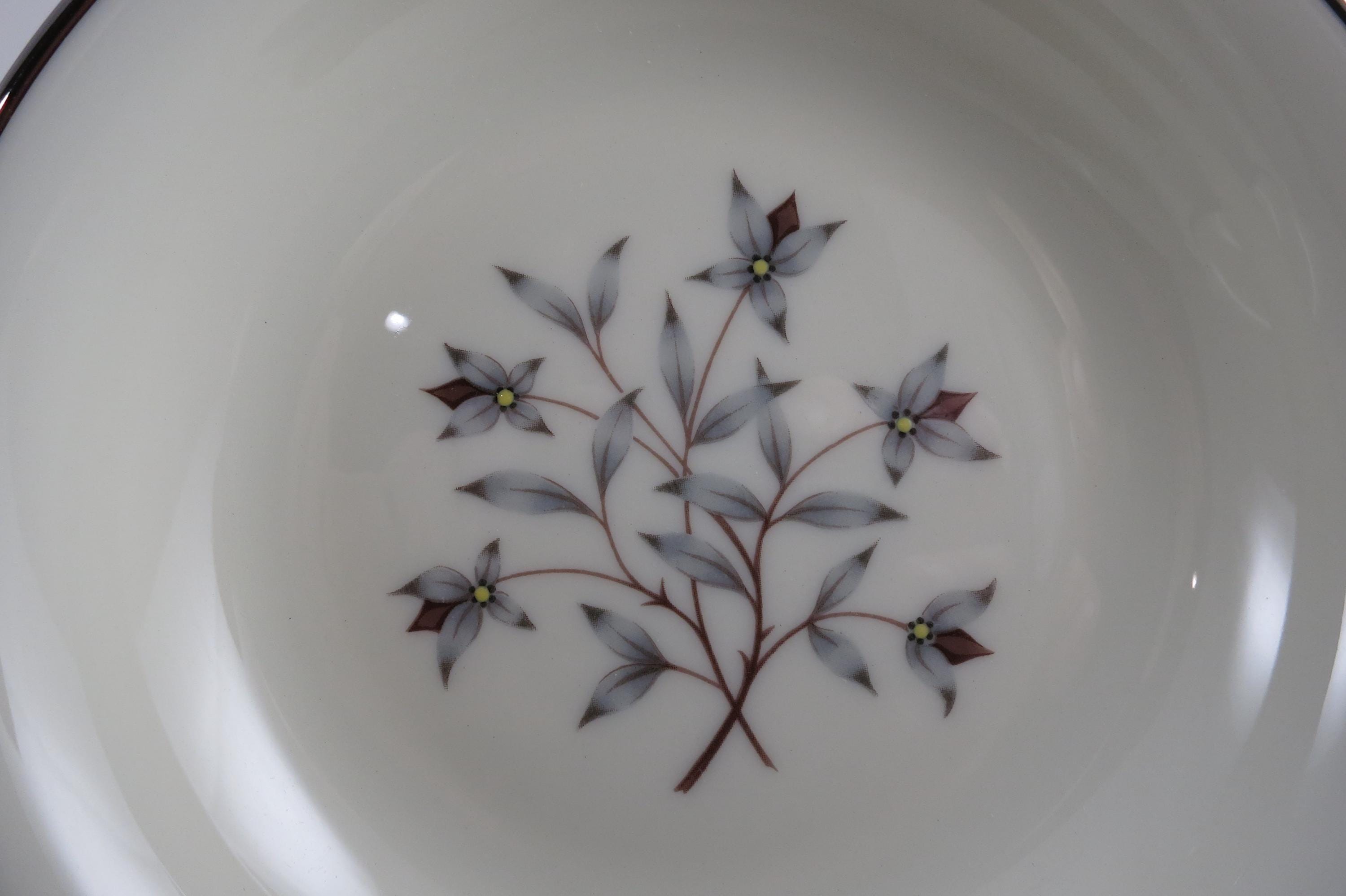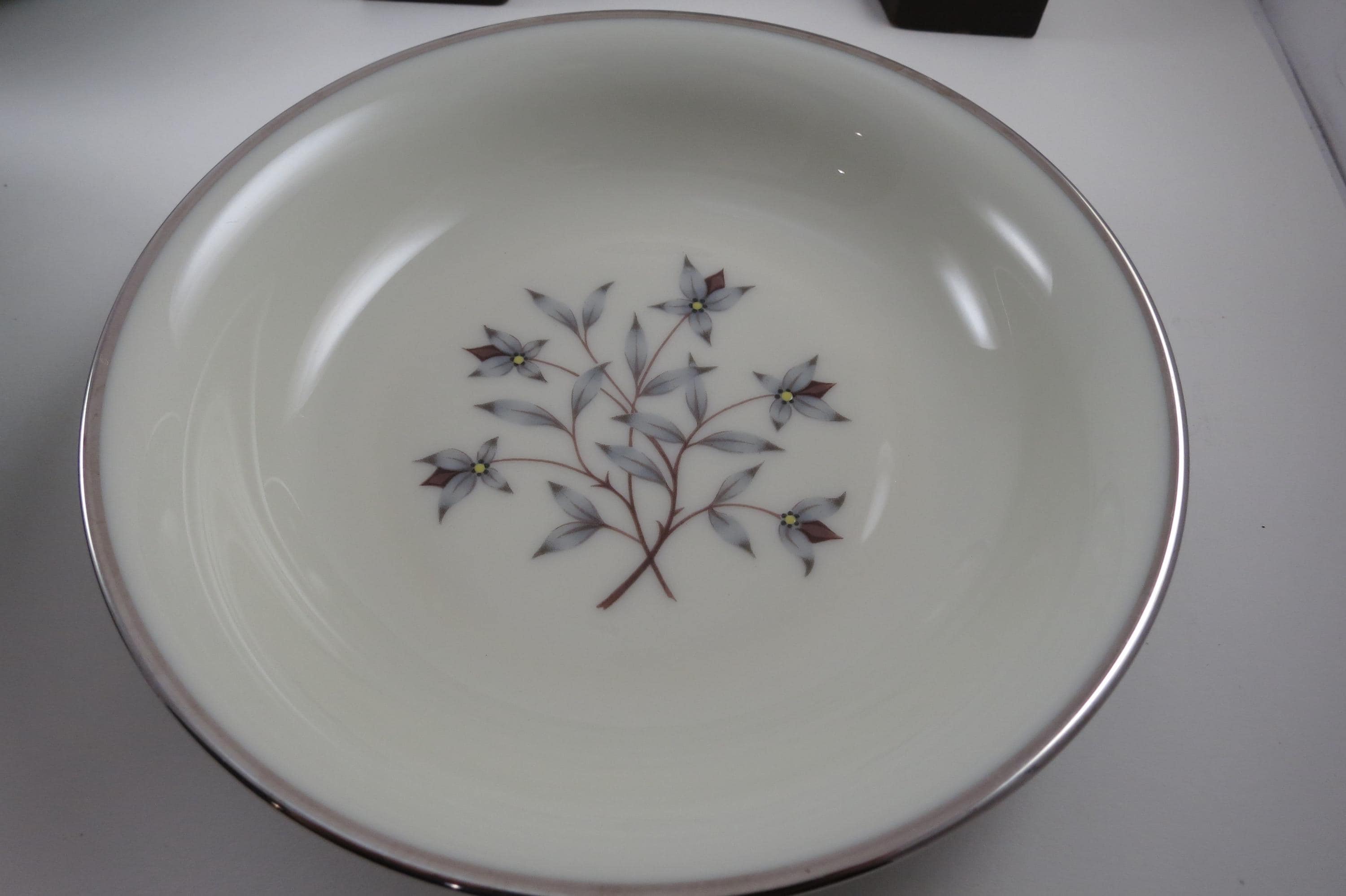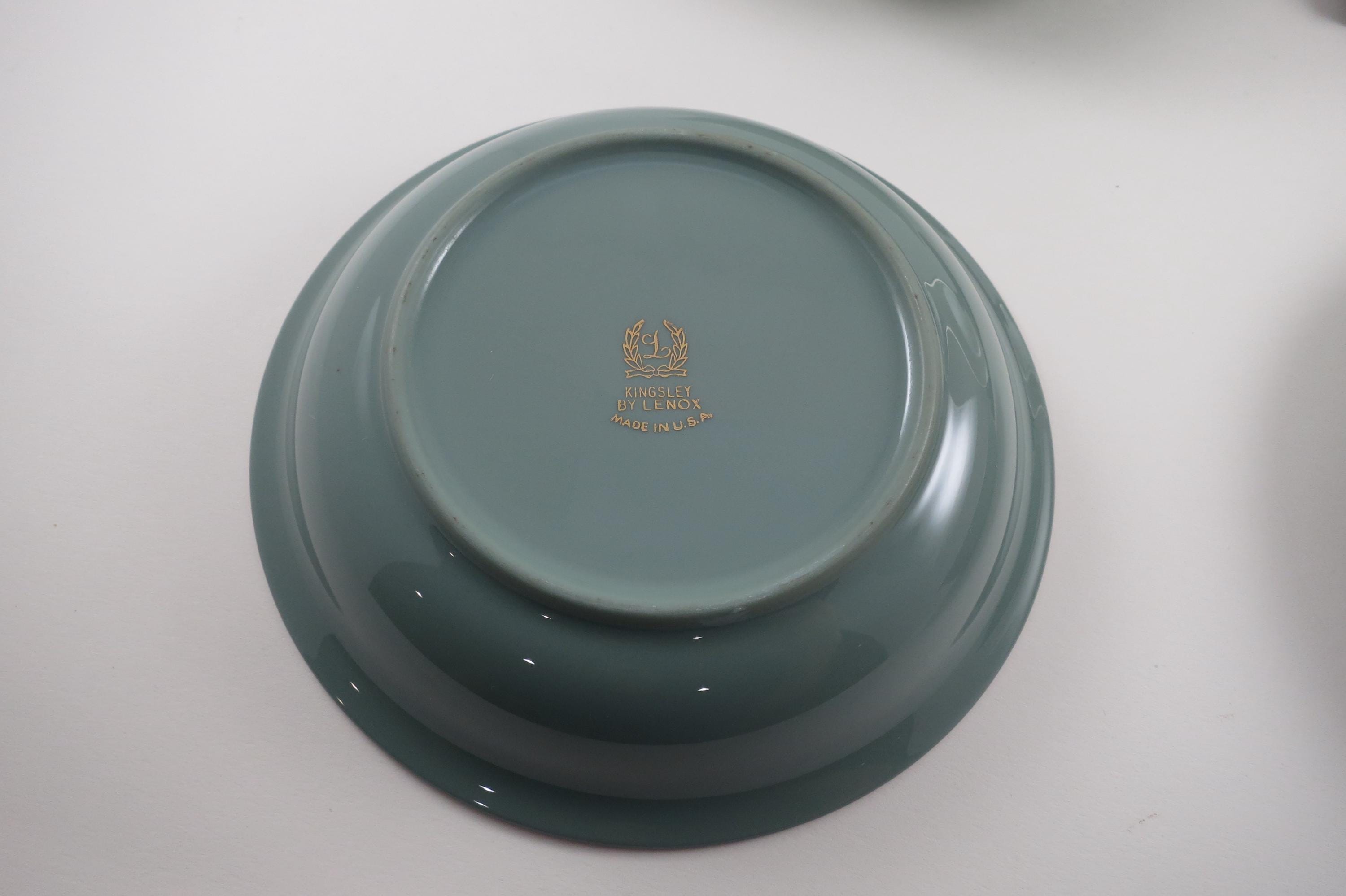 These bowls look like they were never used, amazing considering their age. No chips, cracks, no crazing. Fabulous Kingsley pattern with the teal band, center floral and platinum band.