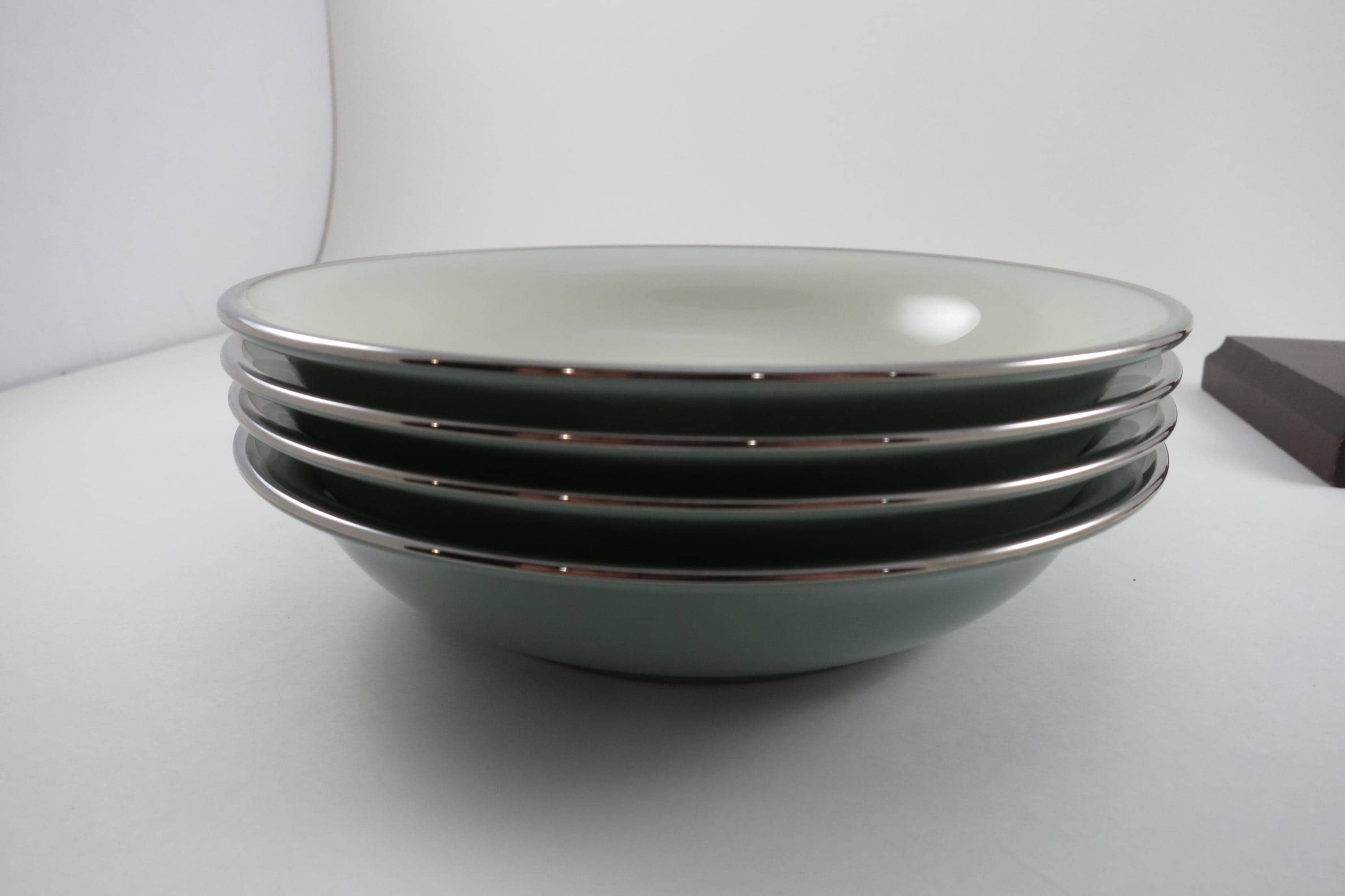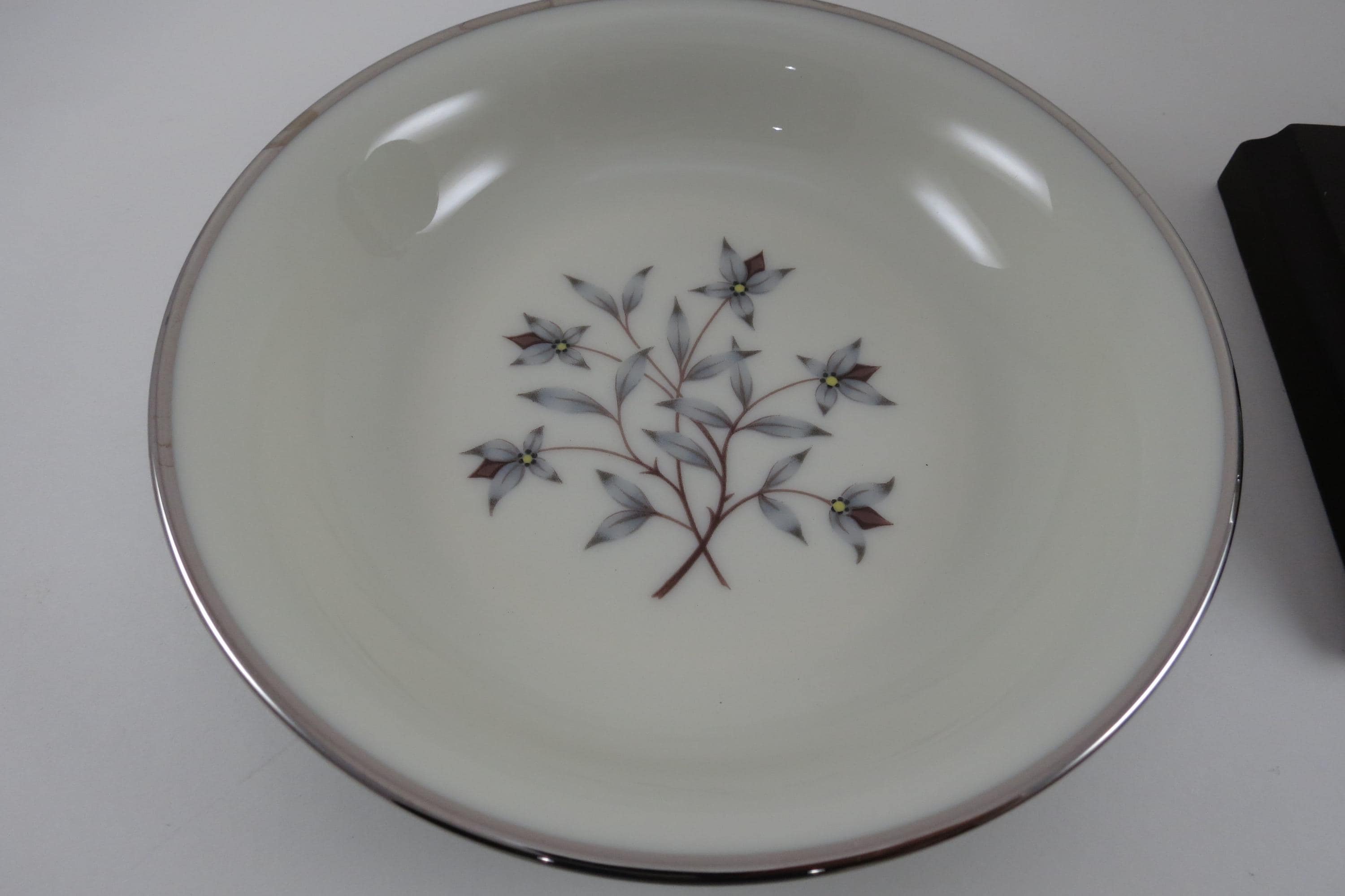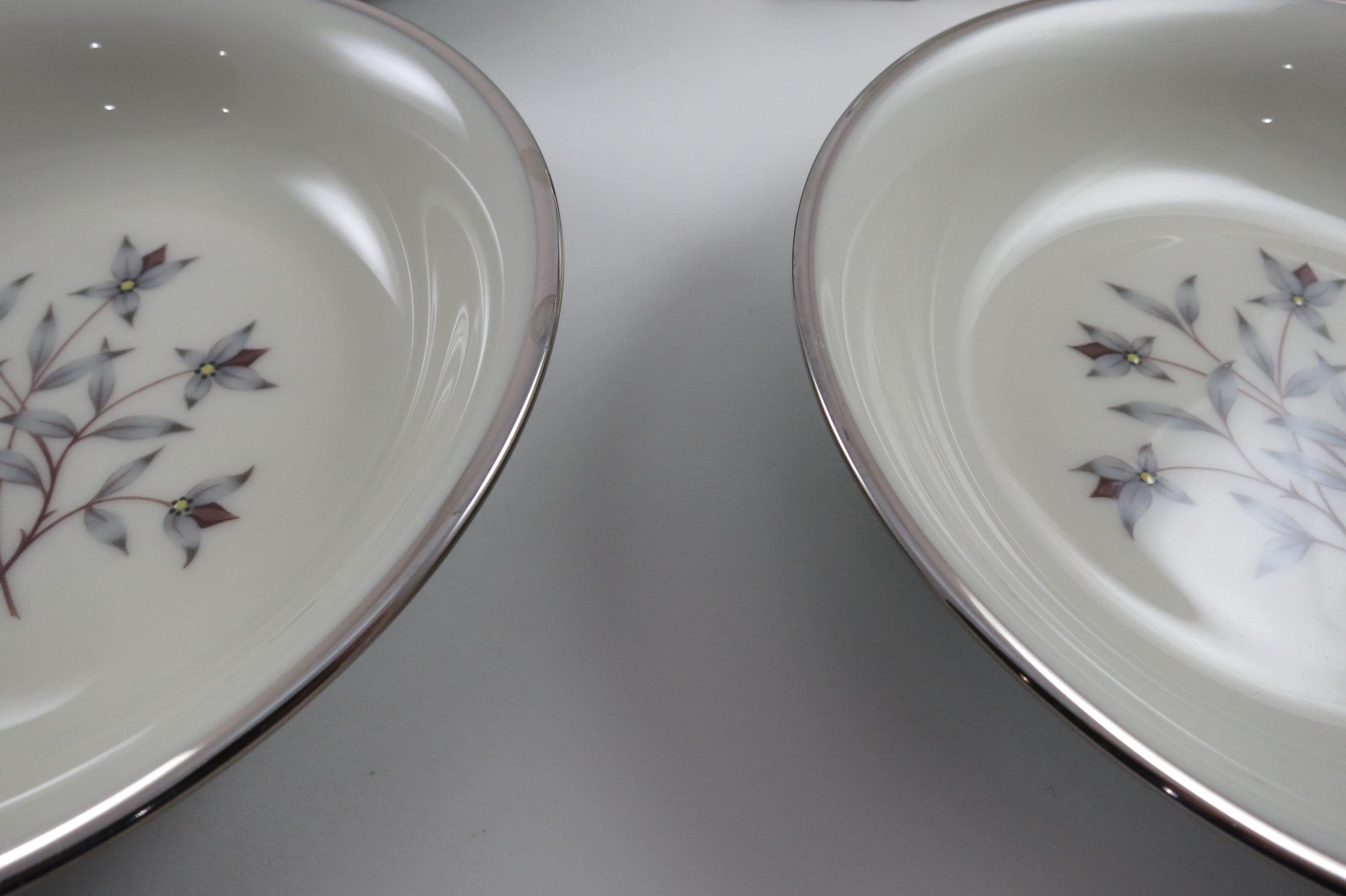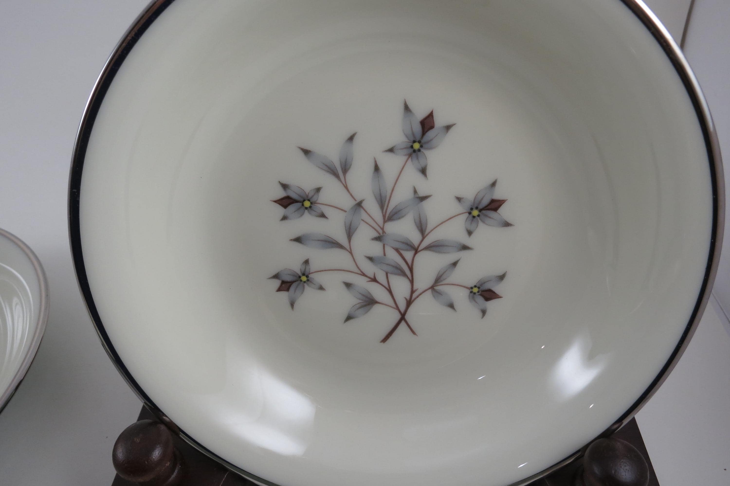These bowls look like they were never used, amazing considering their age. No chips, cracks, no crazing. Fabulous Kingsley pattern with the teal band, center floral and platinum band.