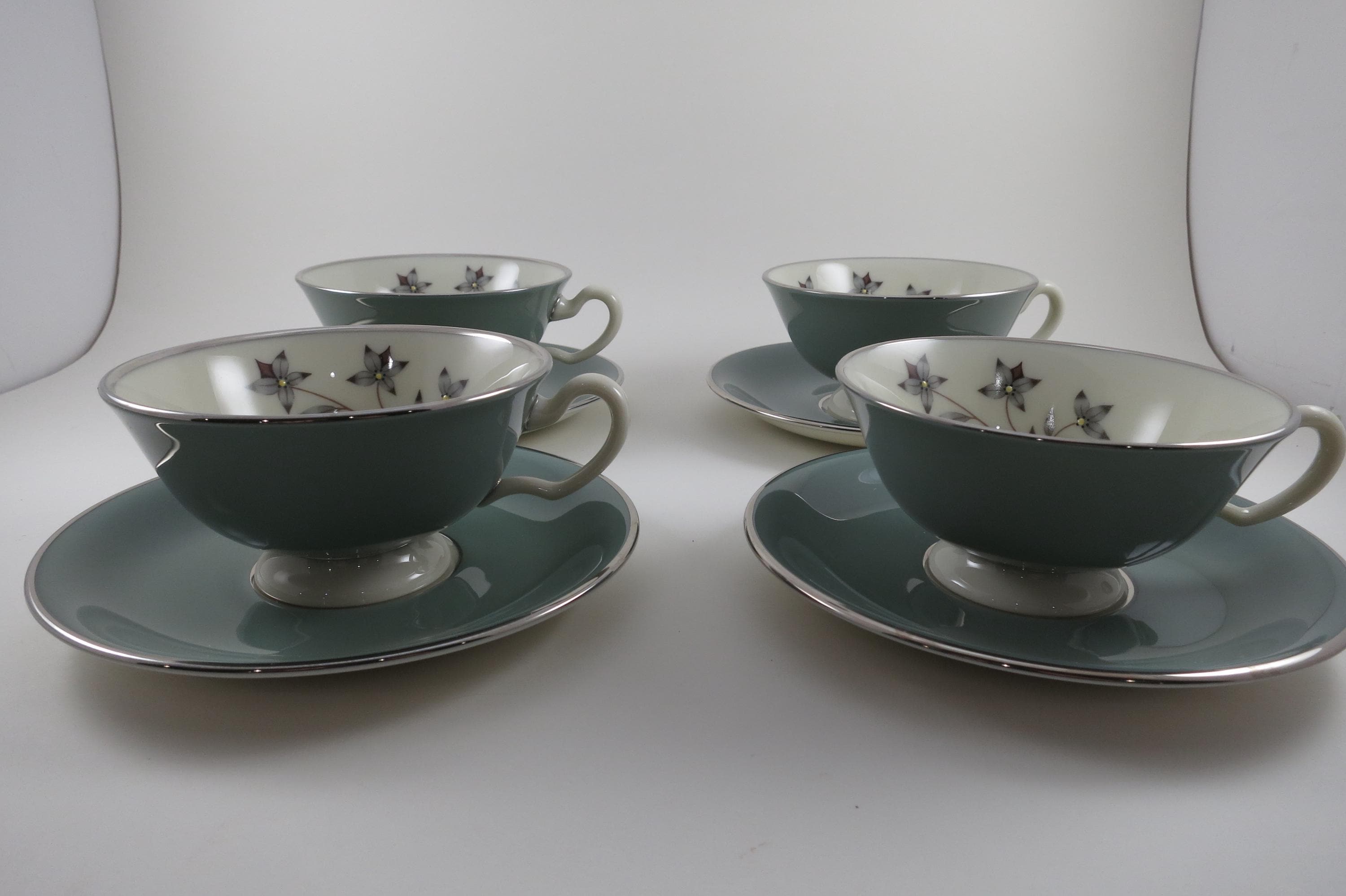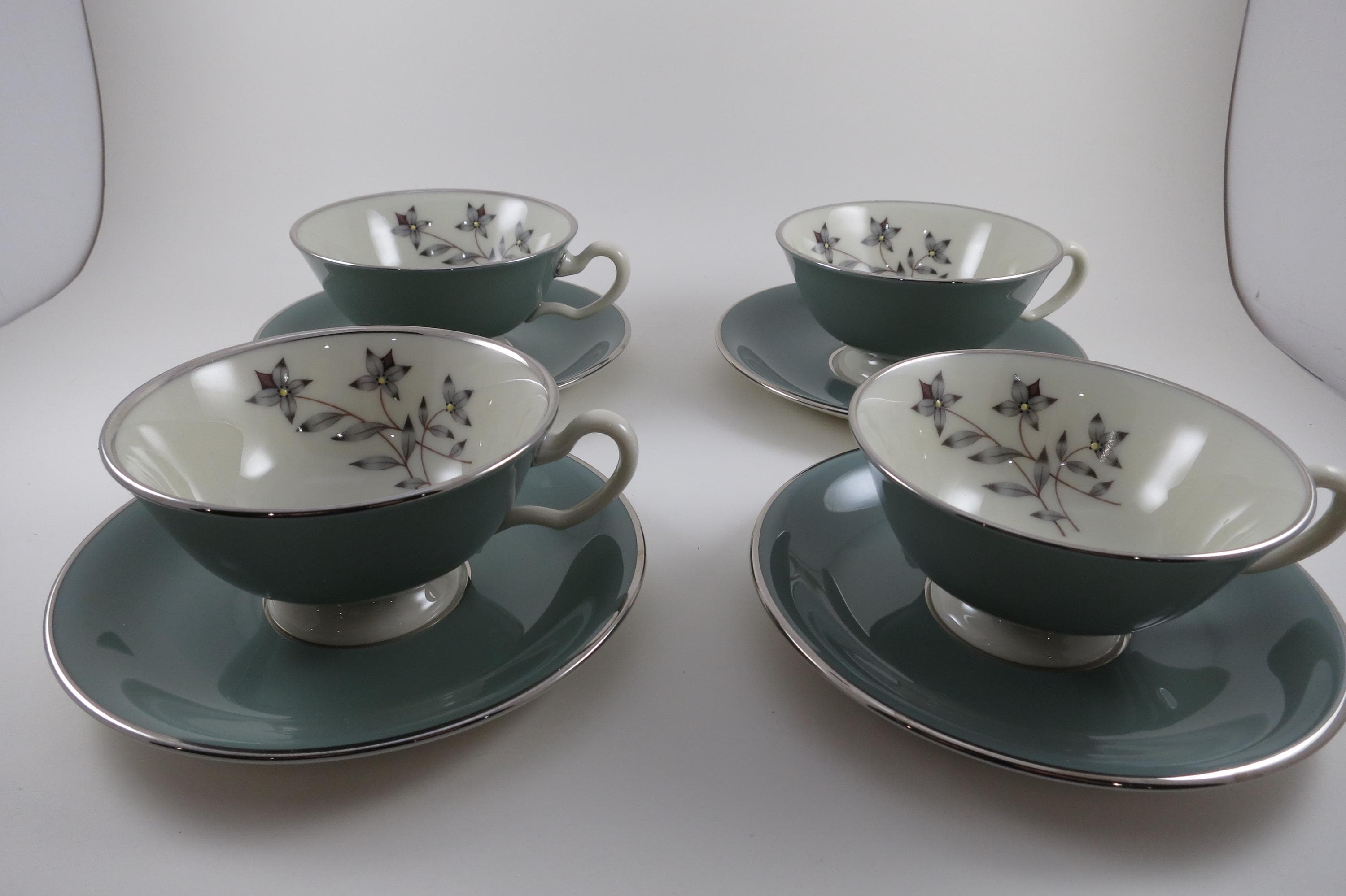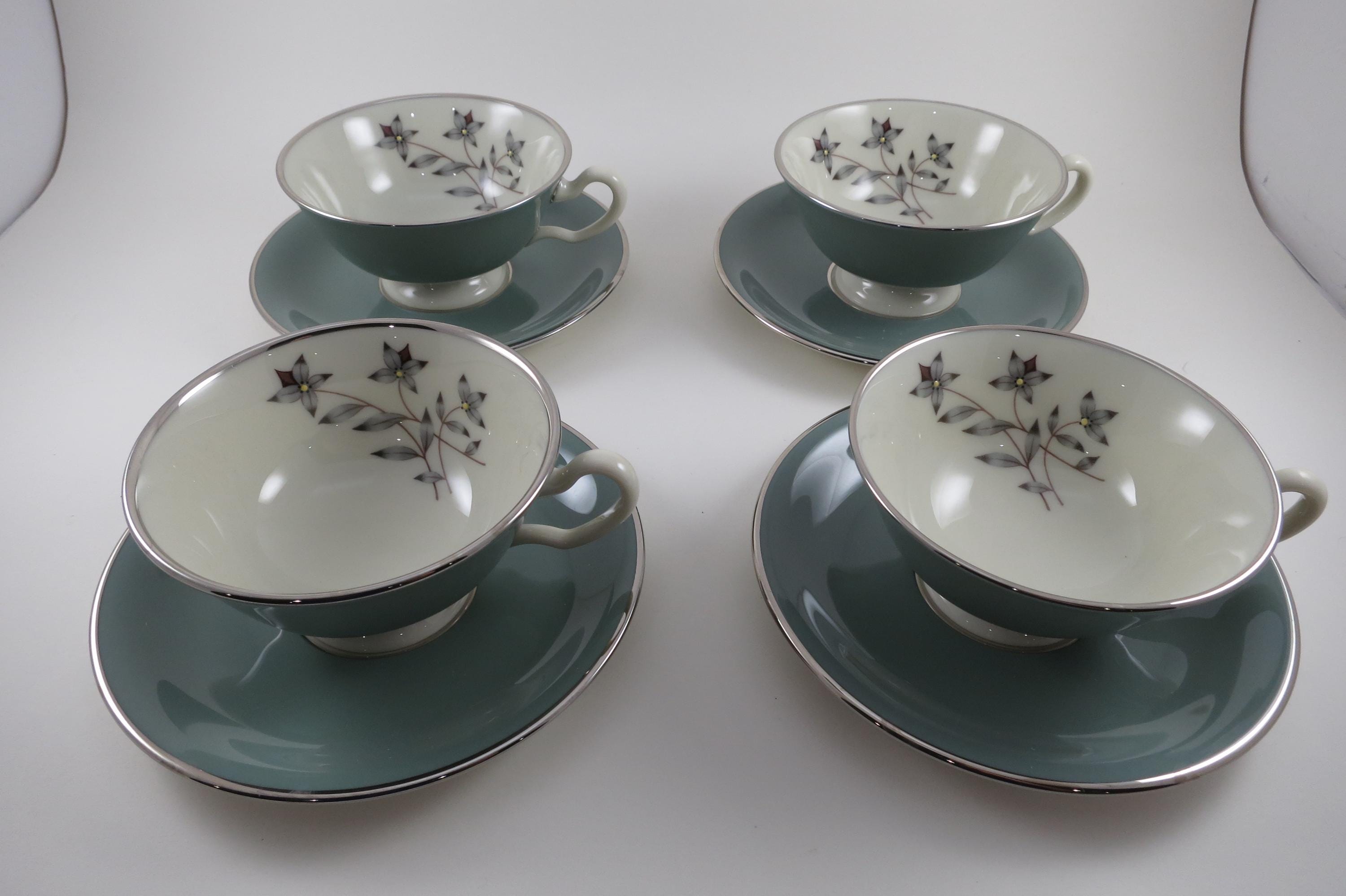 Set of Four MCM Lenox Kingsley Pattern Cup and Saucer Sets Pristine