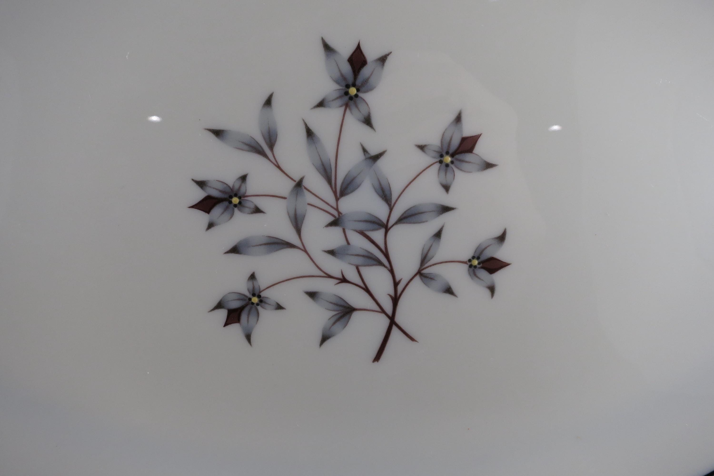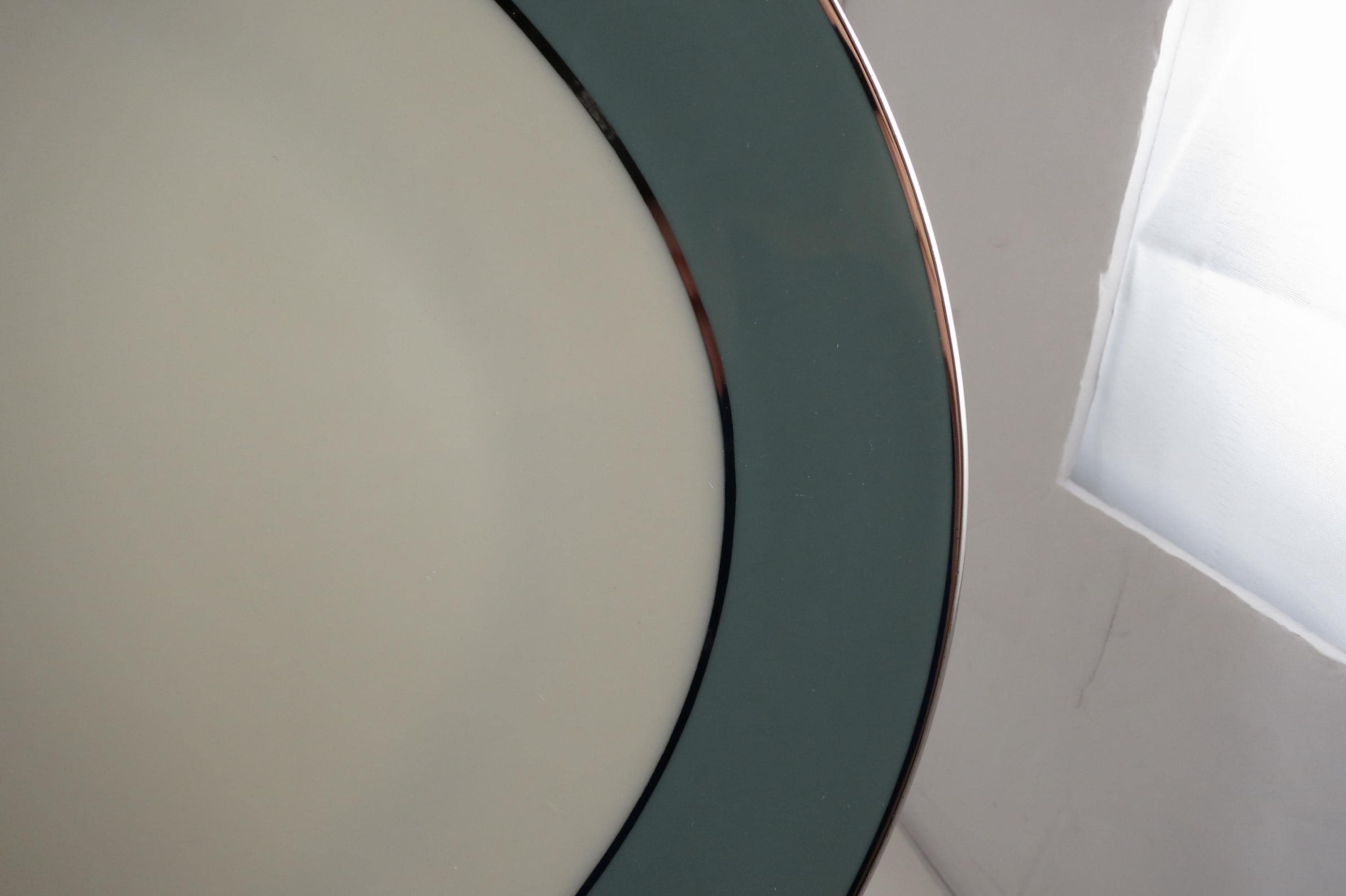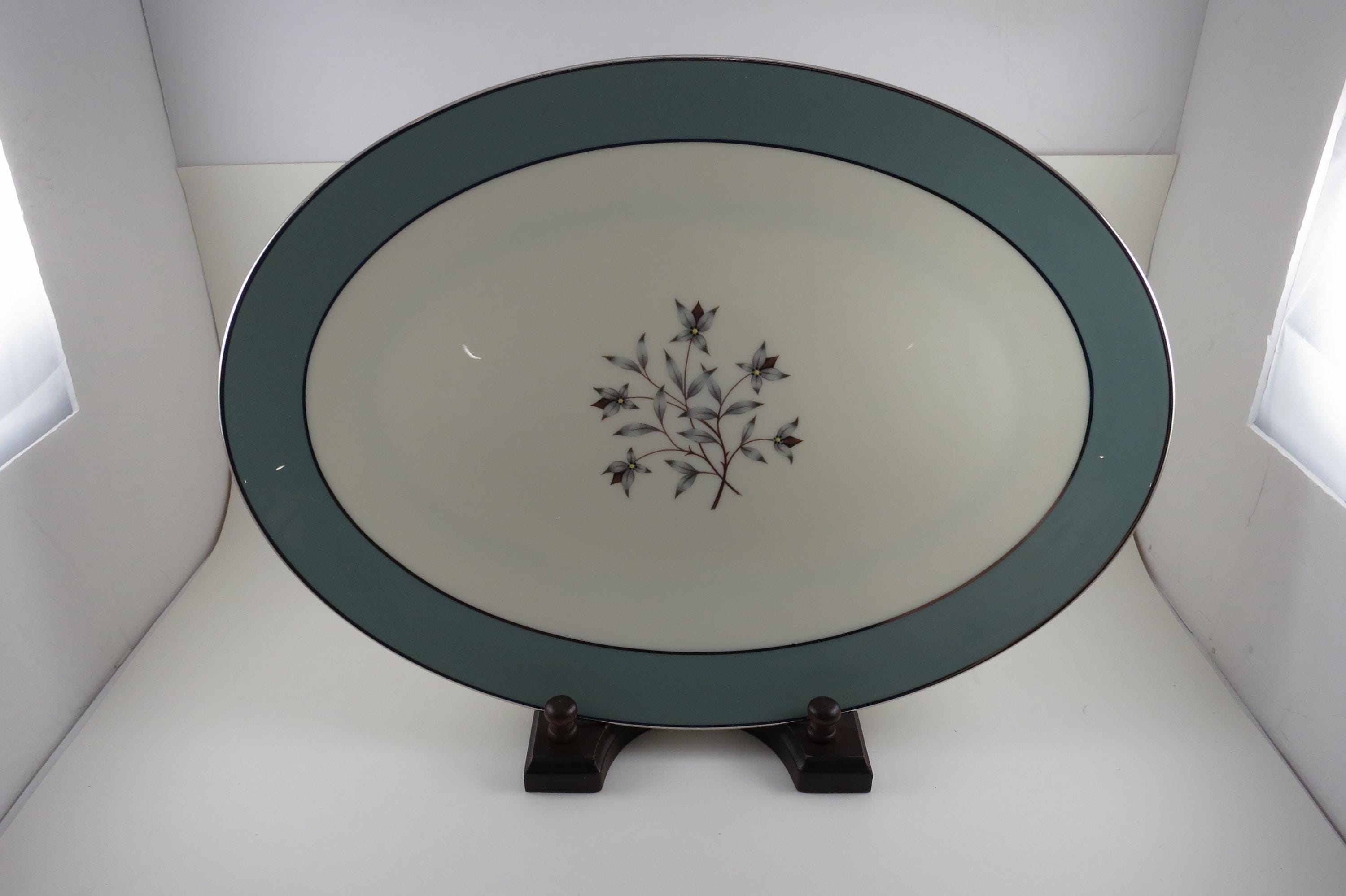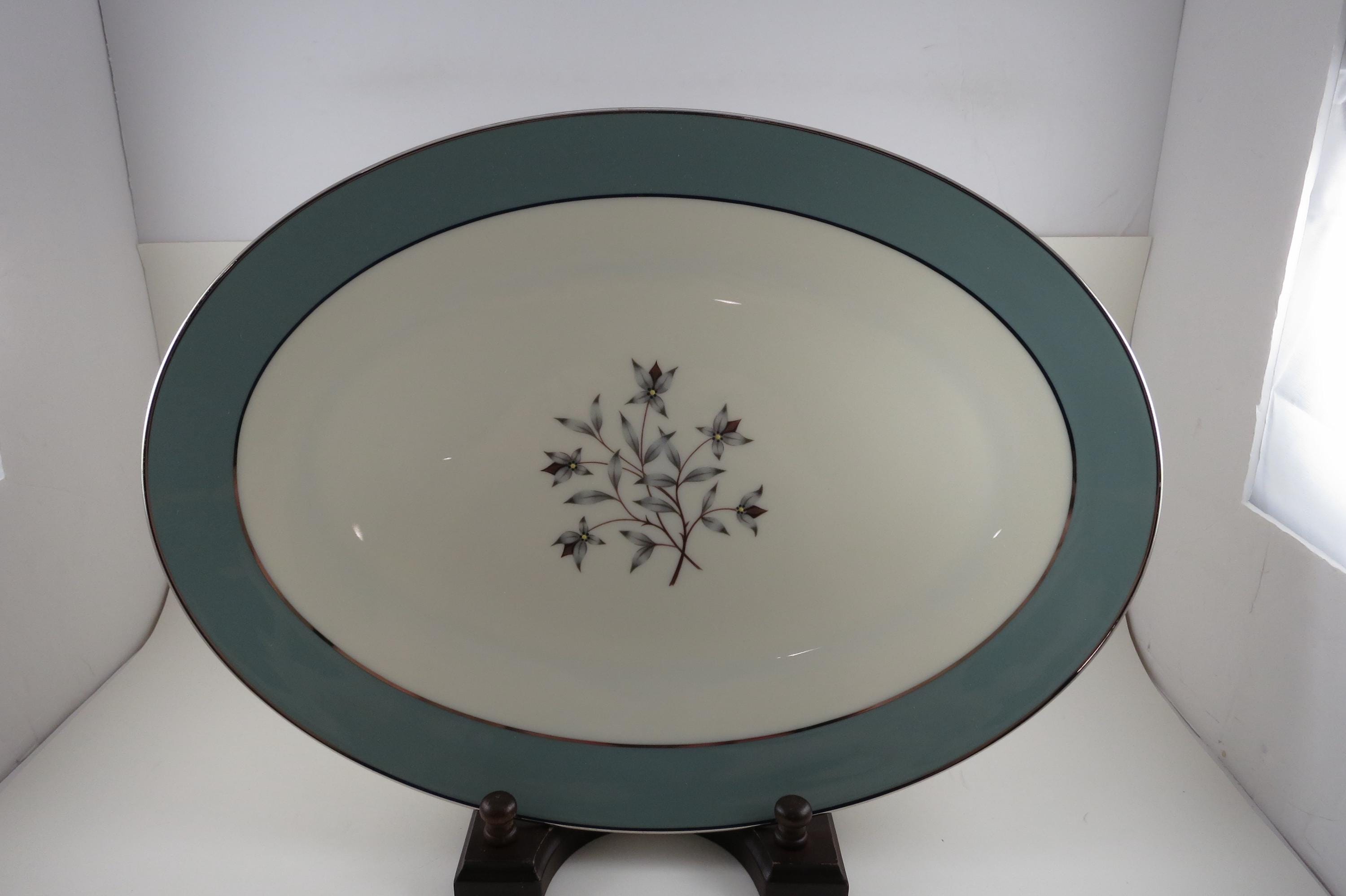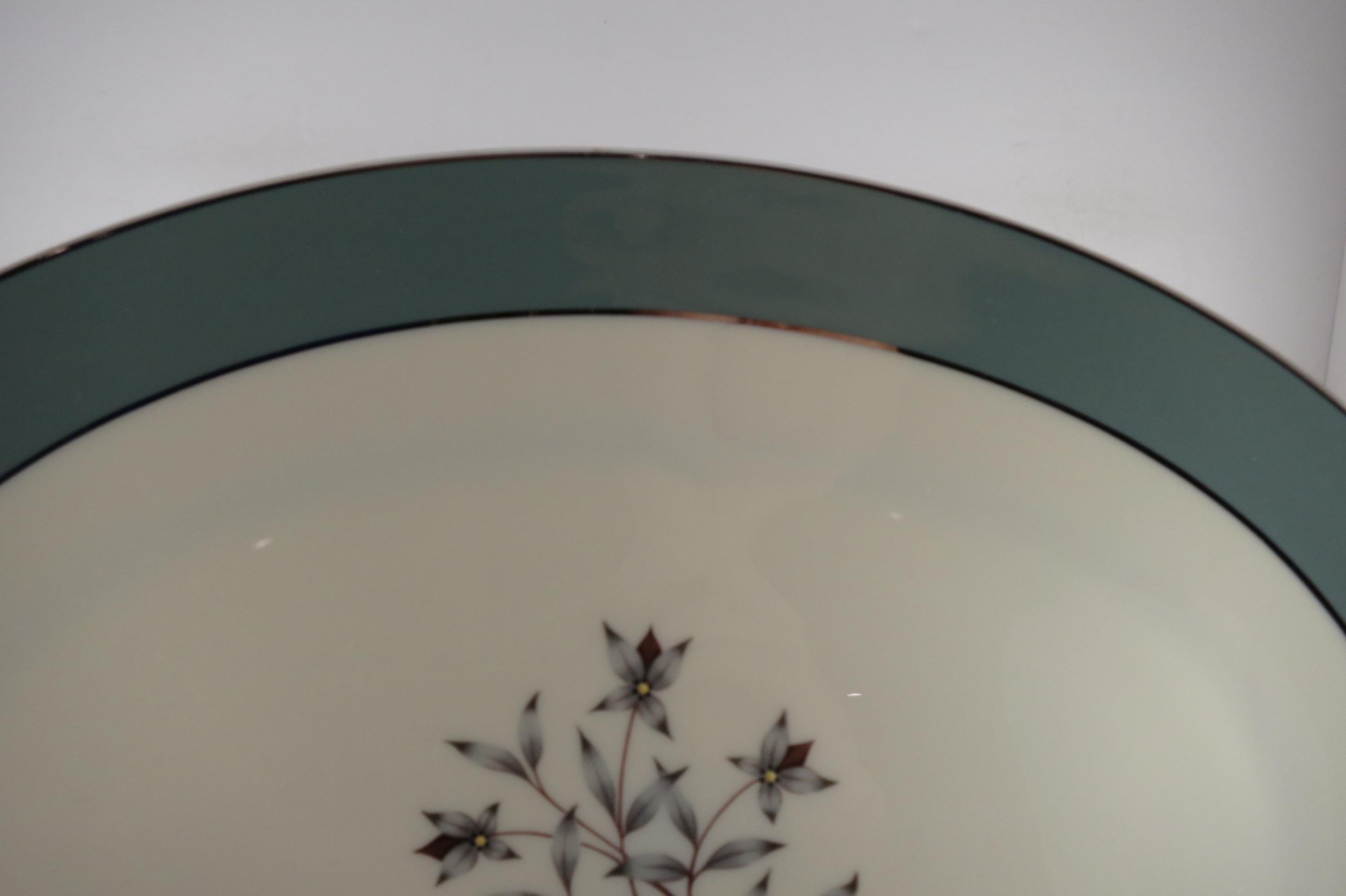 Fabulous Kingsley pattern with the teal band, center floral and platinum band. Excellent condition with only very light use wear.