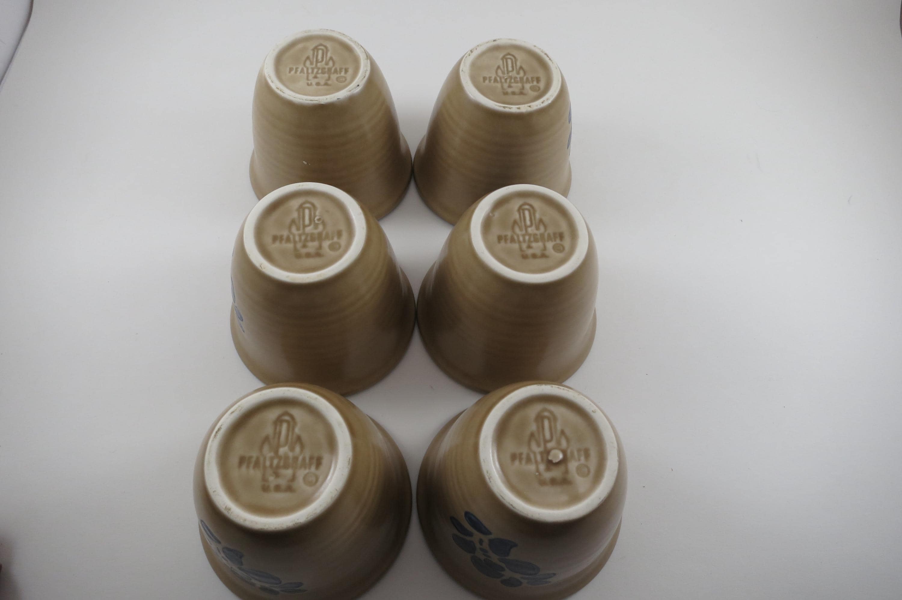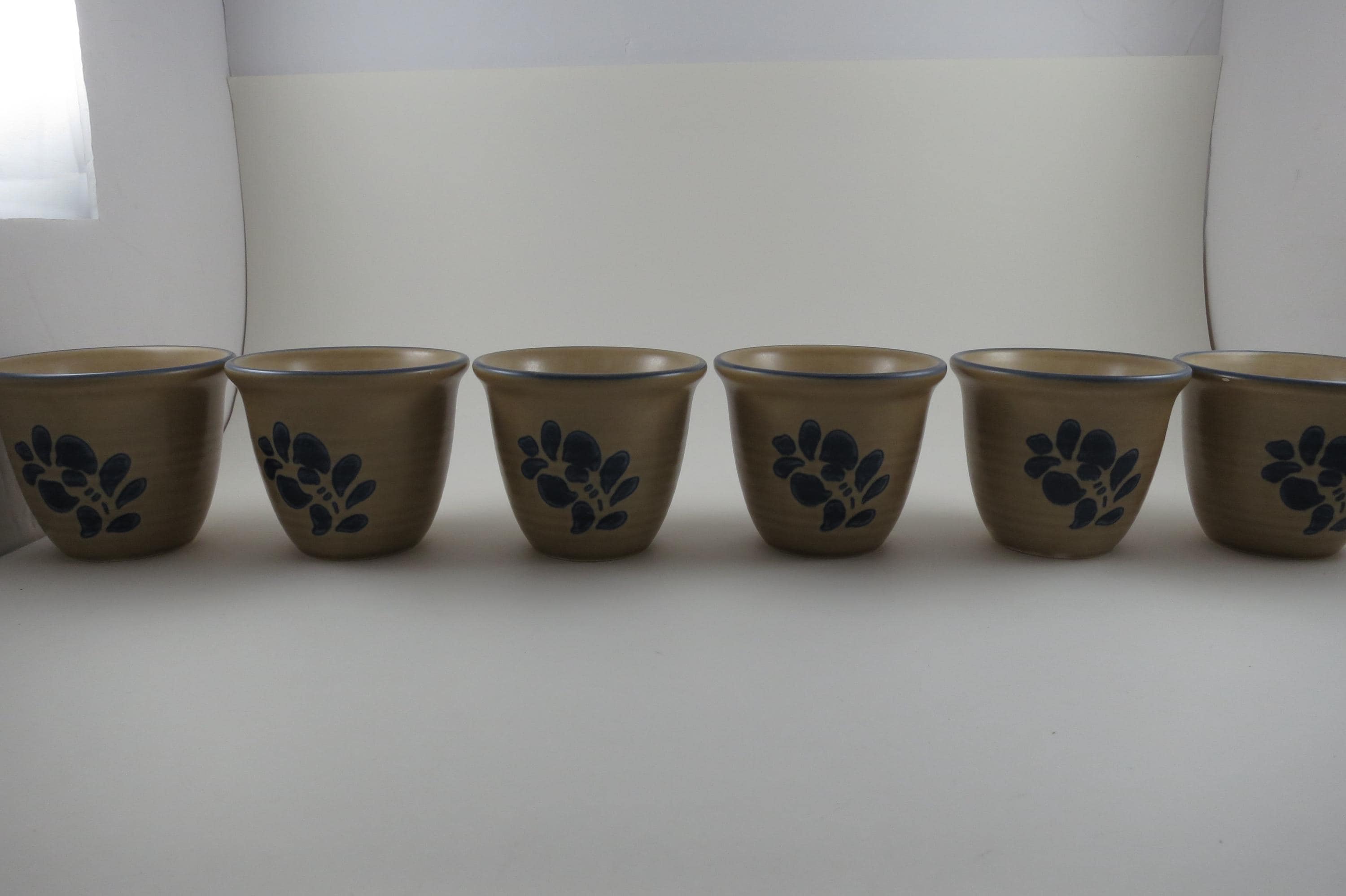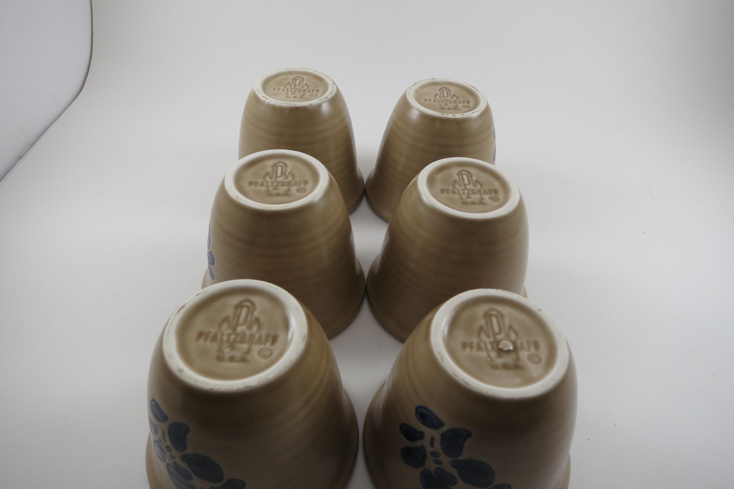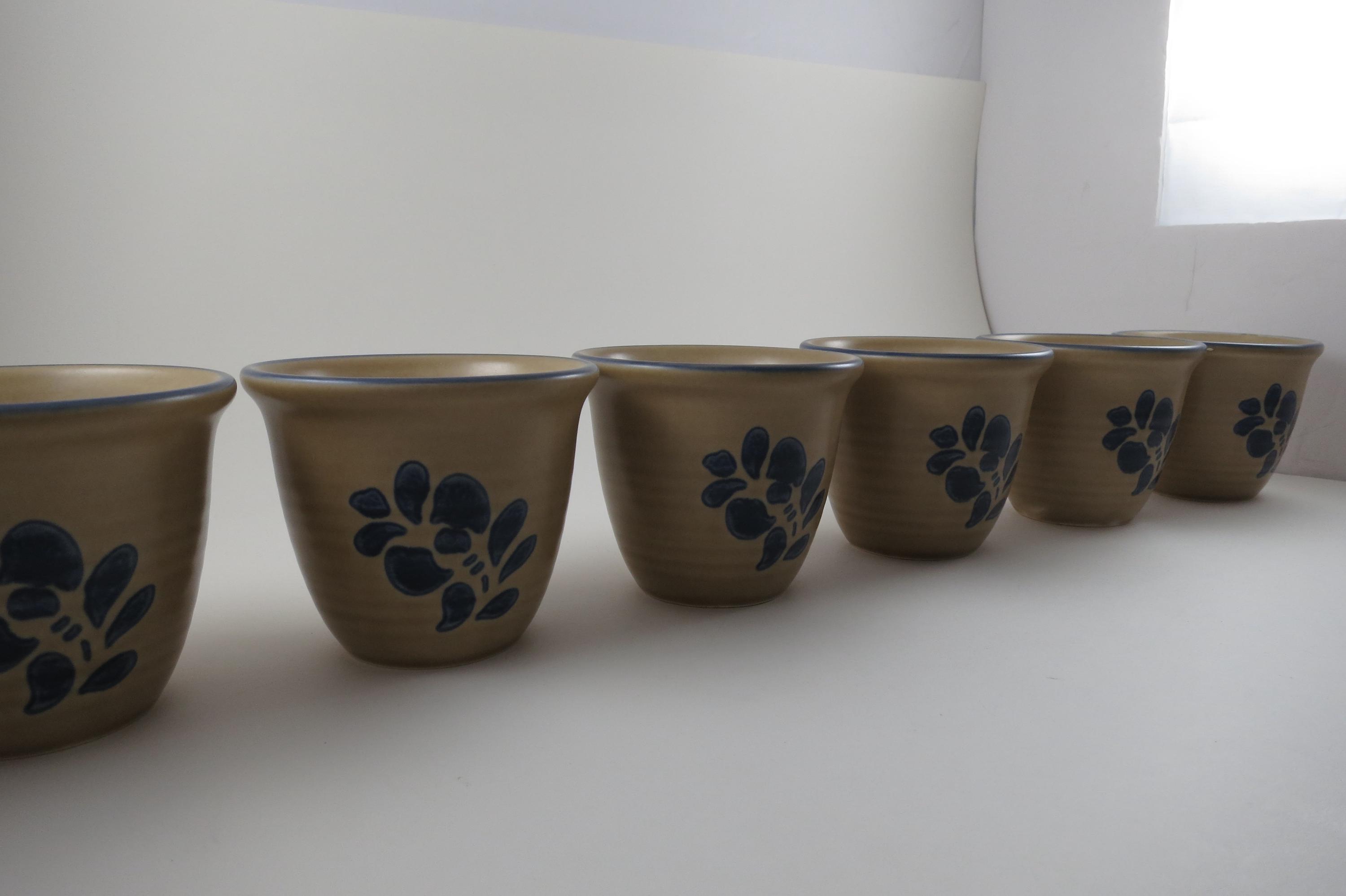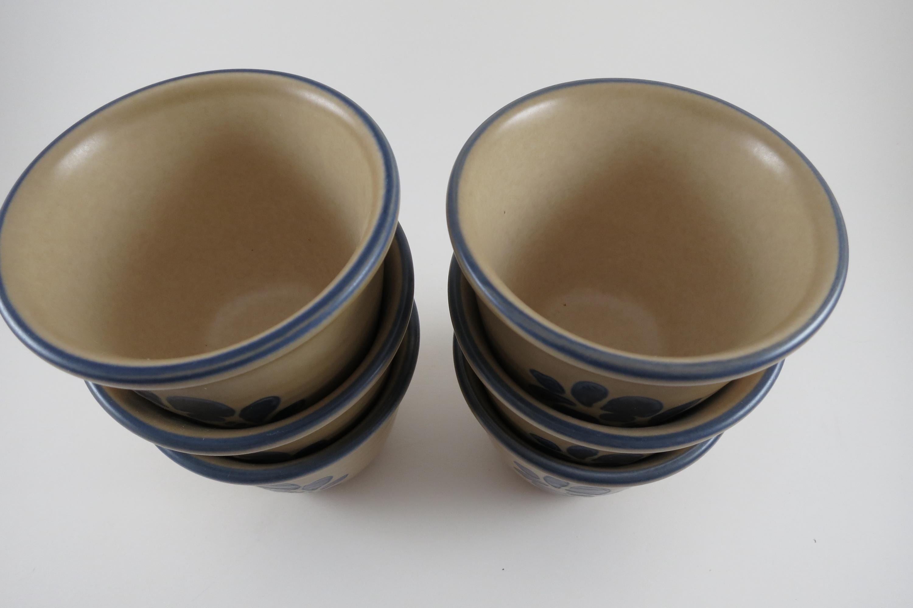Vintage Pfaltzgraff Folk Art Pattern Set of Six USA Custard Cups.