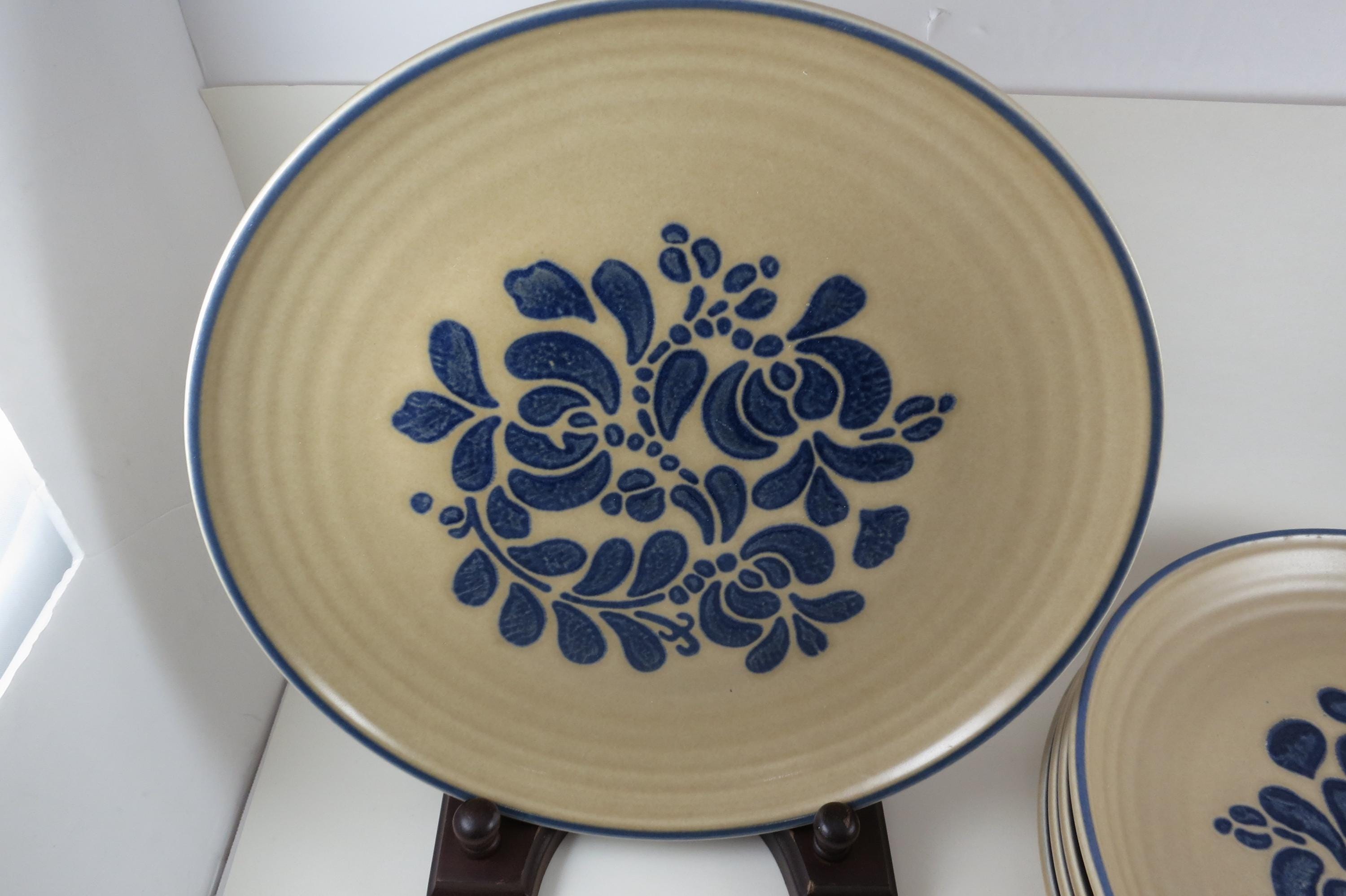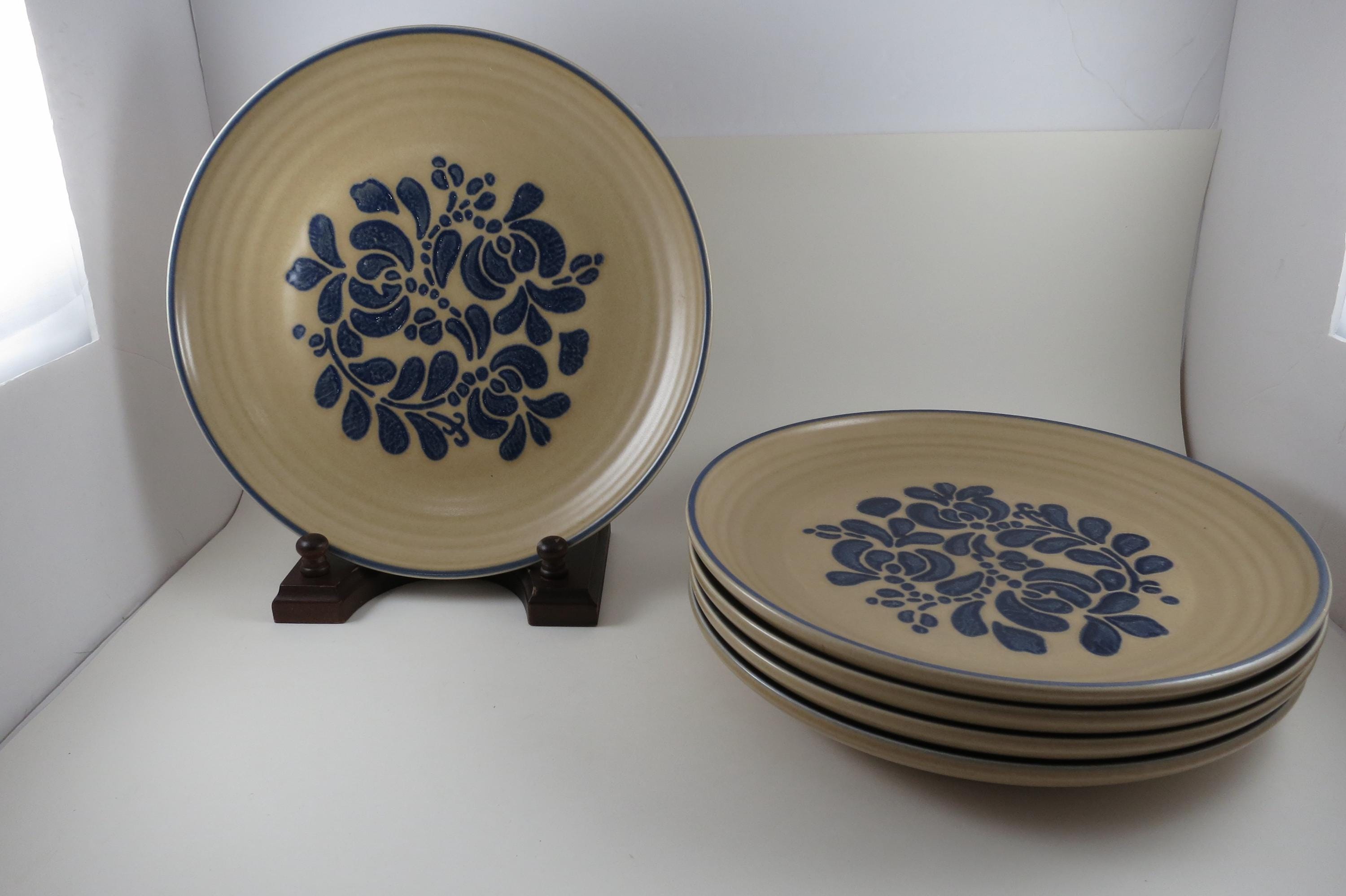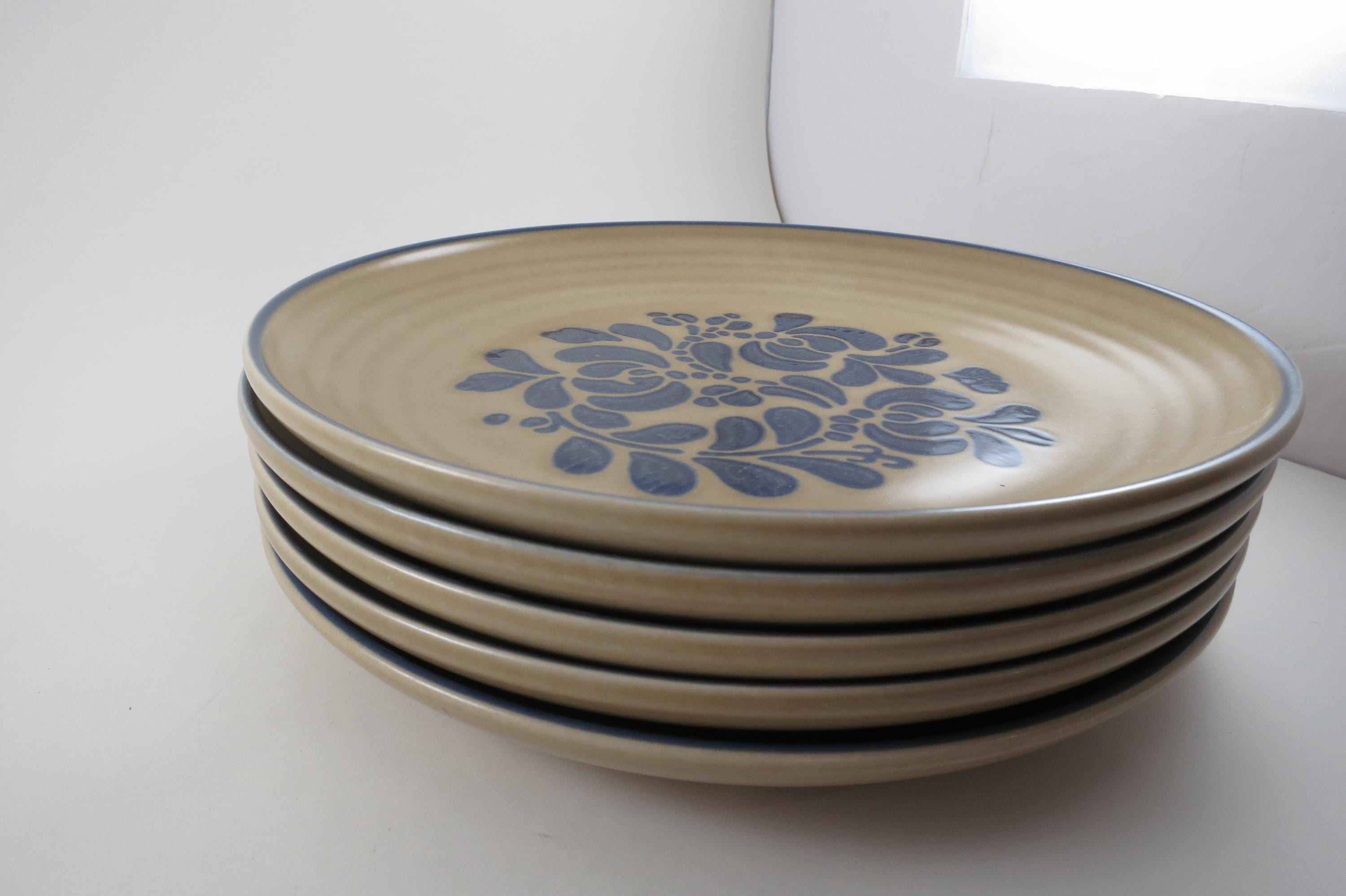 Vintage Pfaltzgraff Folk Art Pattern Set of Five 10 Inch Dinner Plates USA.
