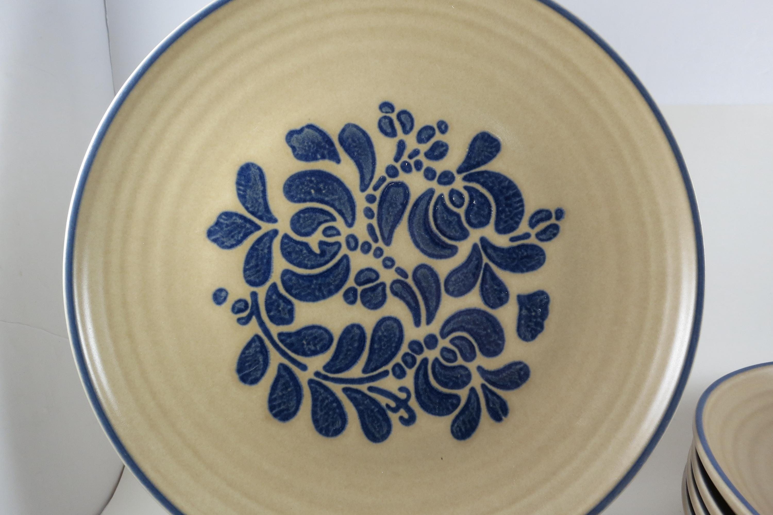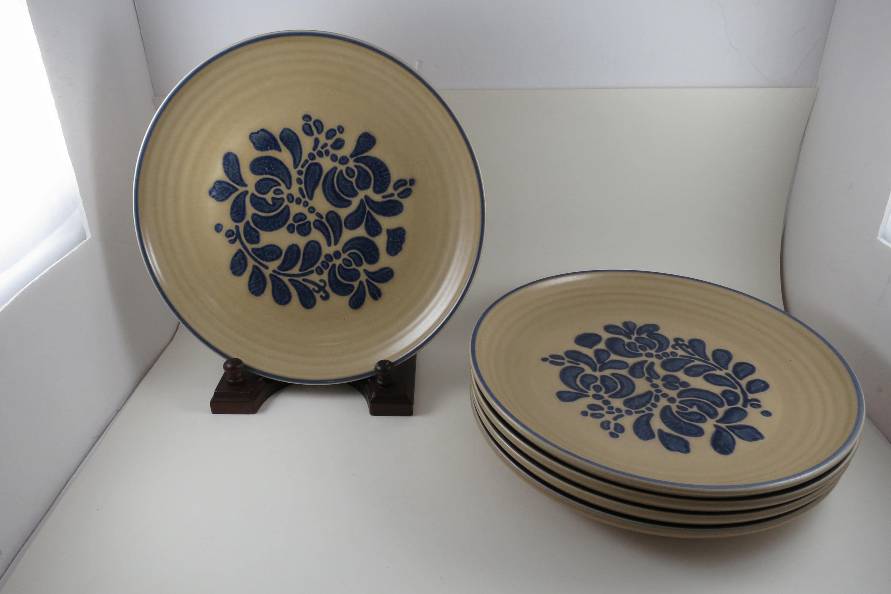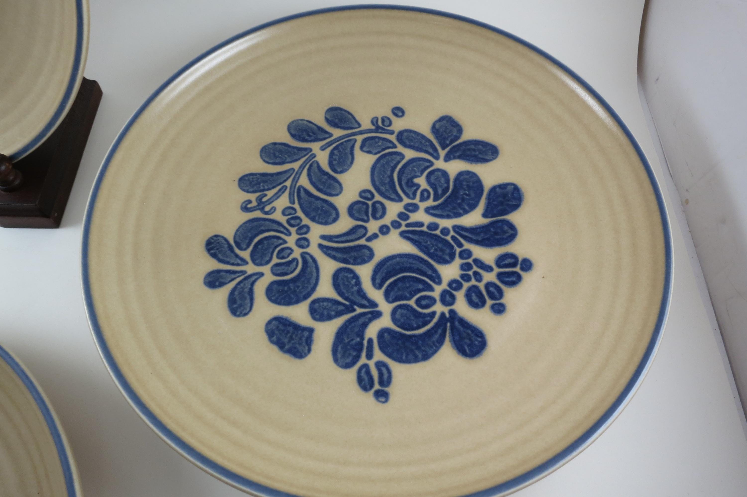 Vintage Pfaltzgraff Folk Art Pattern Set of Five 10 Inch Dinner Plates USA.