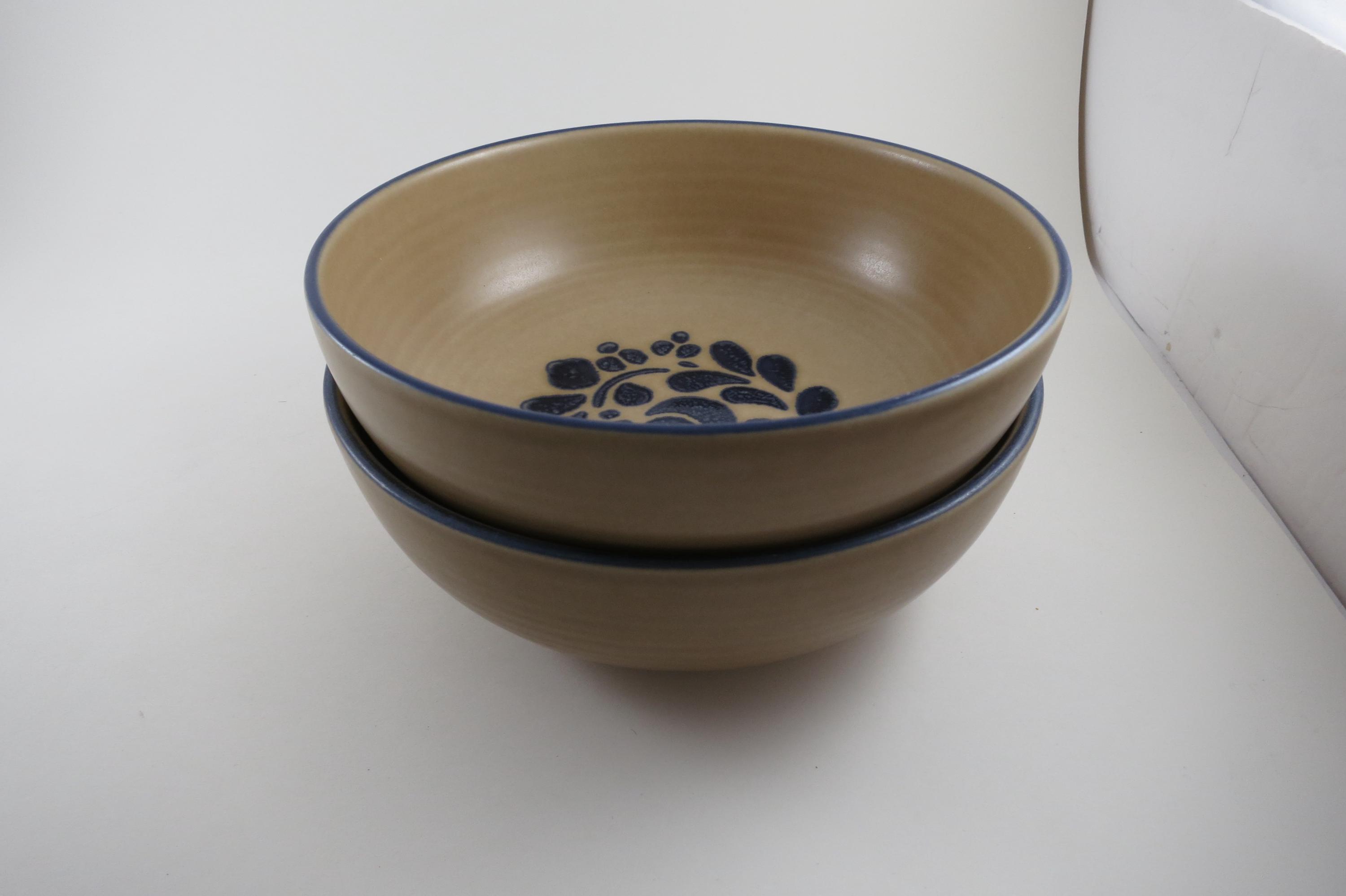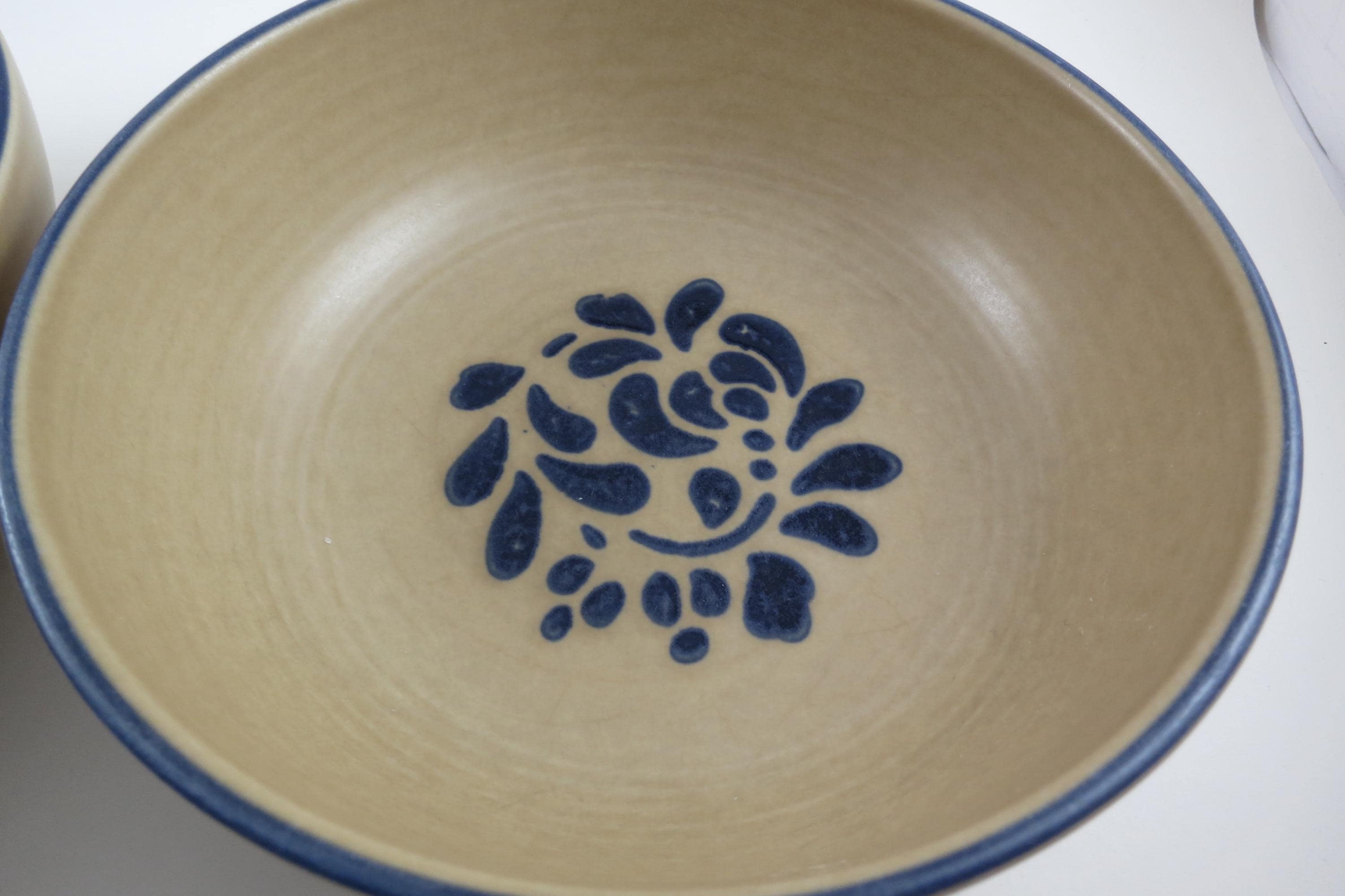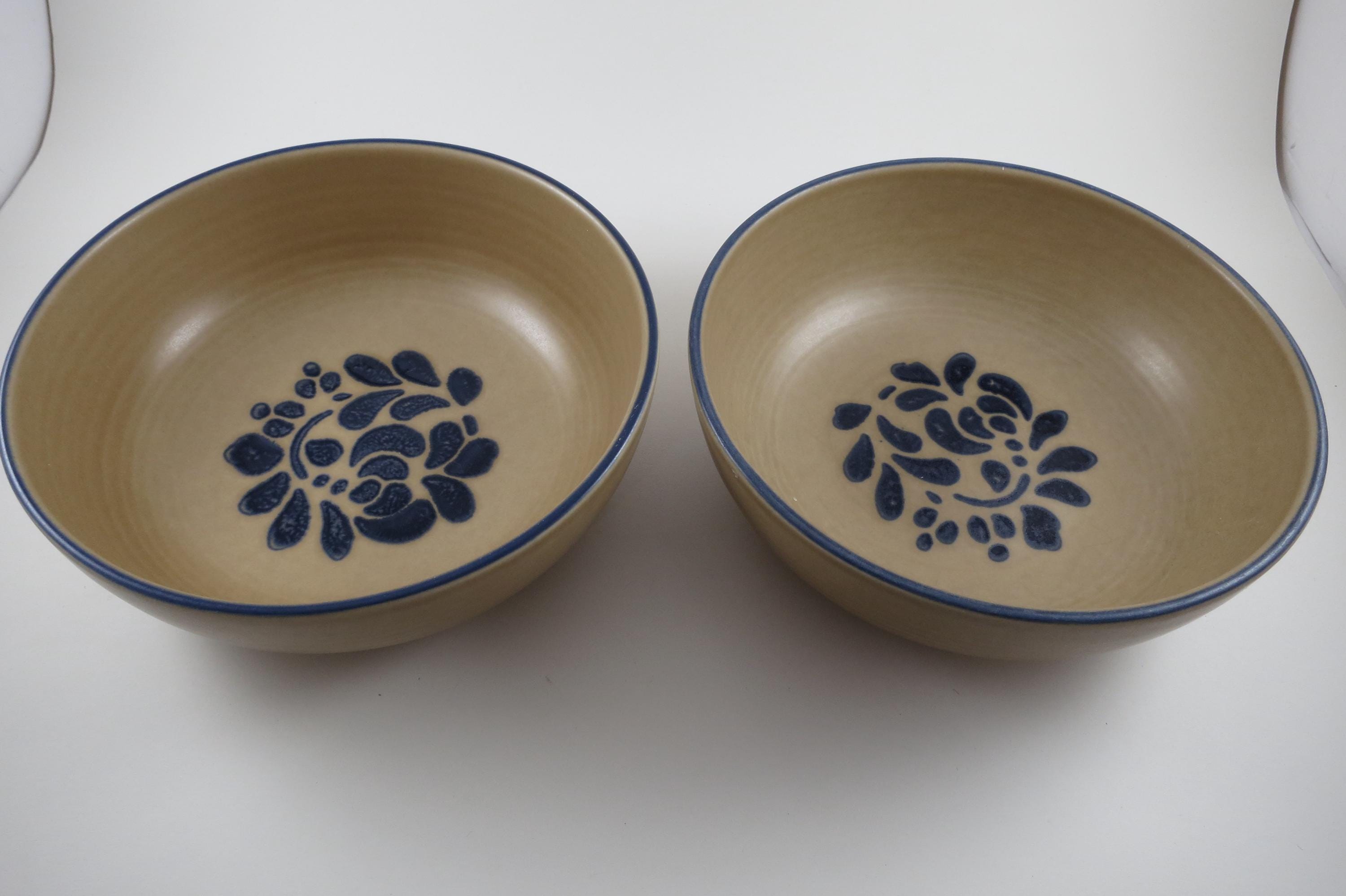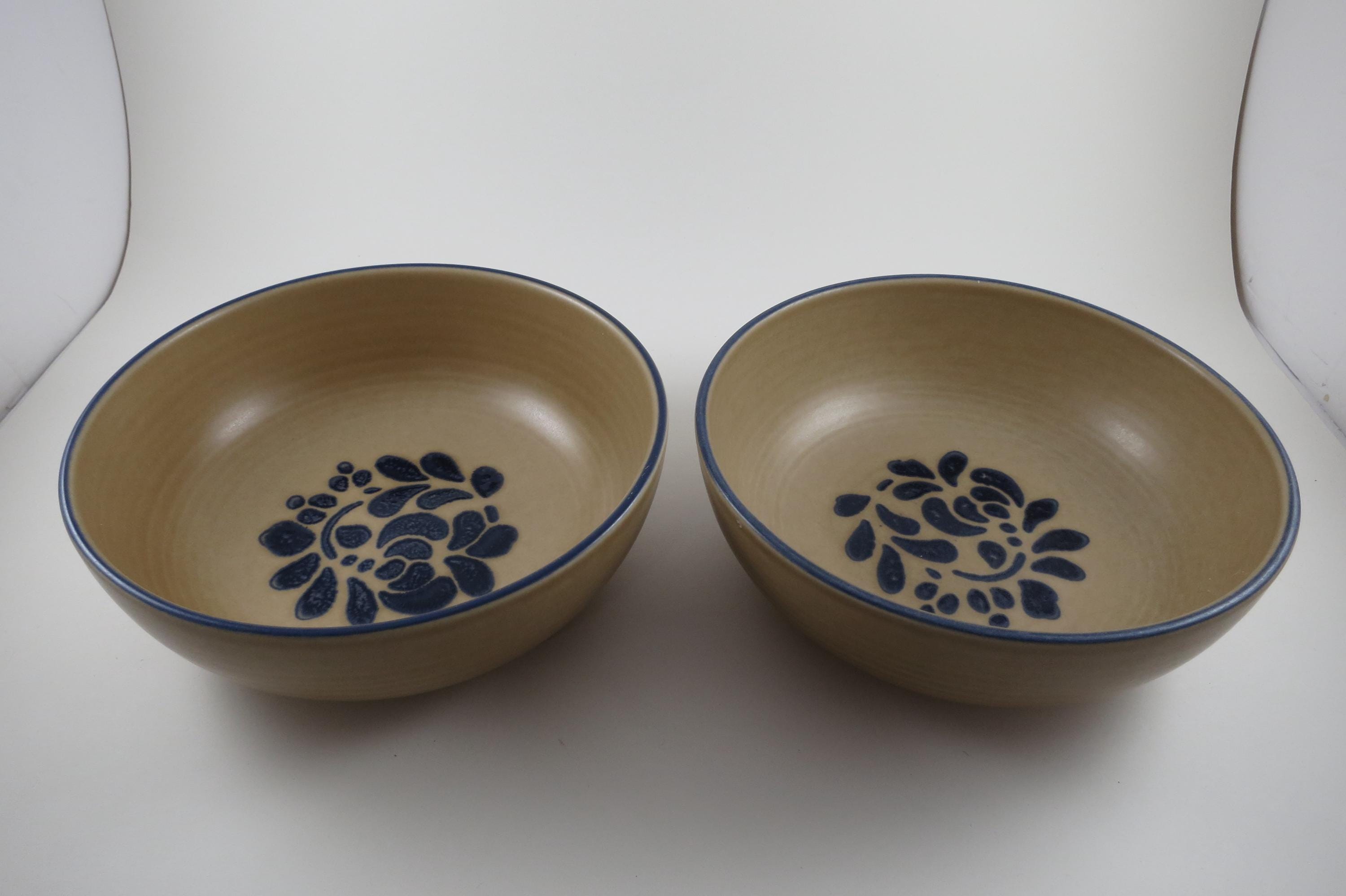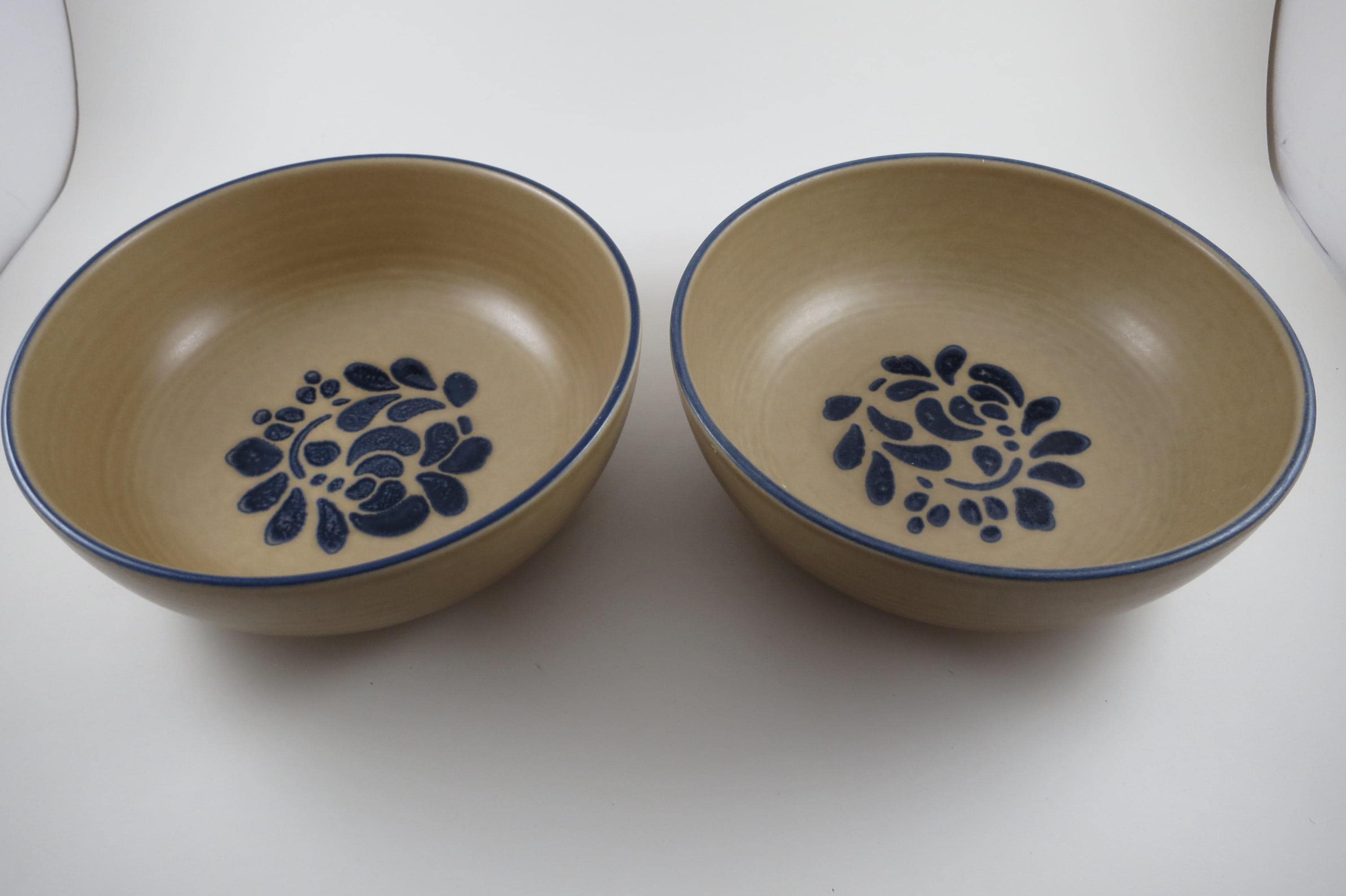 Vintage Pfaltzgraff Folk Art Pattern Pair of 7 1/4 Inch Round Vegetable Bowls USA.