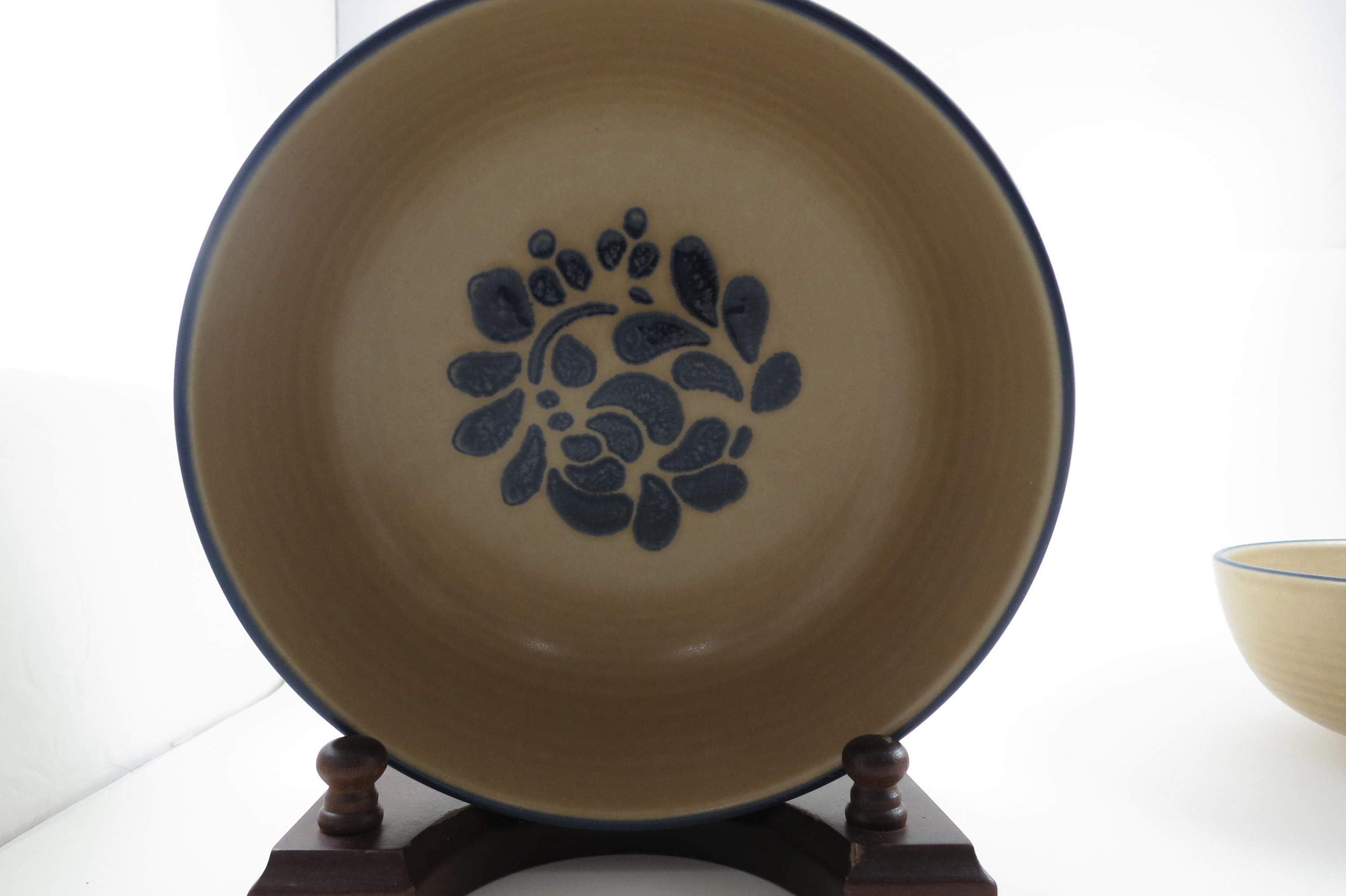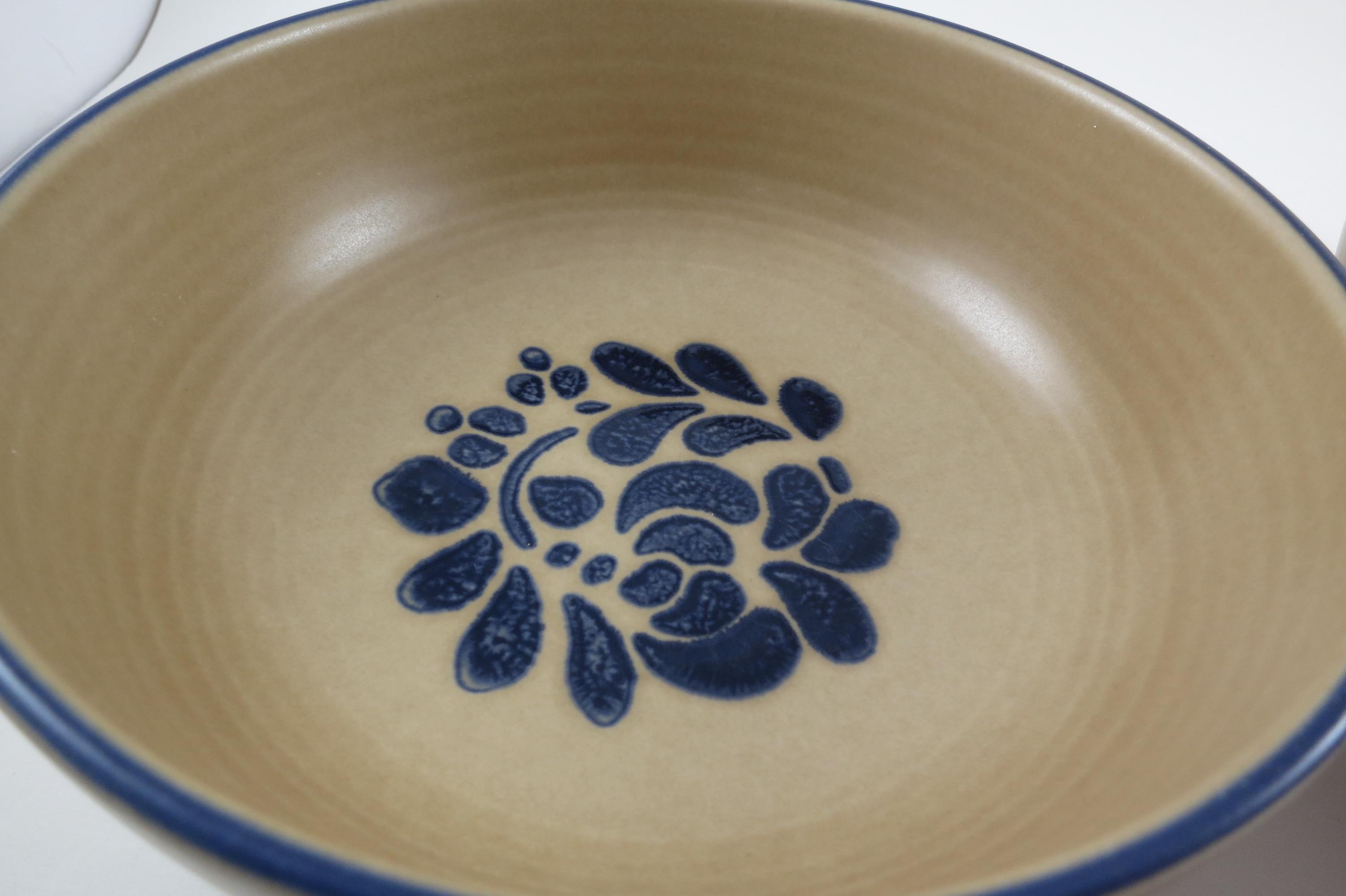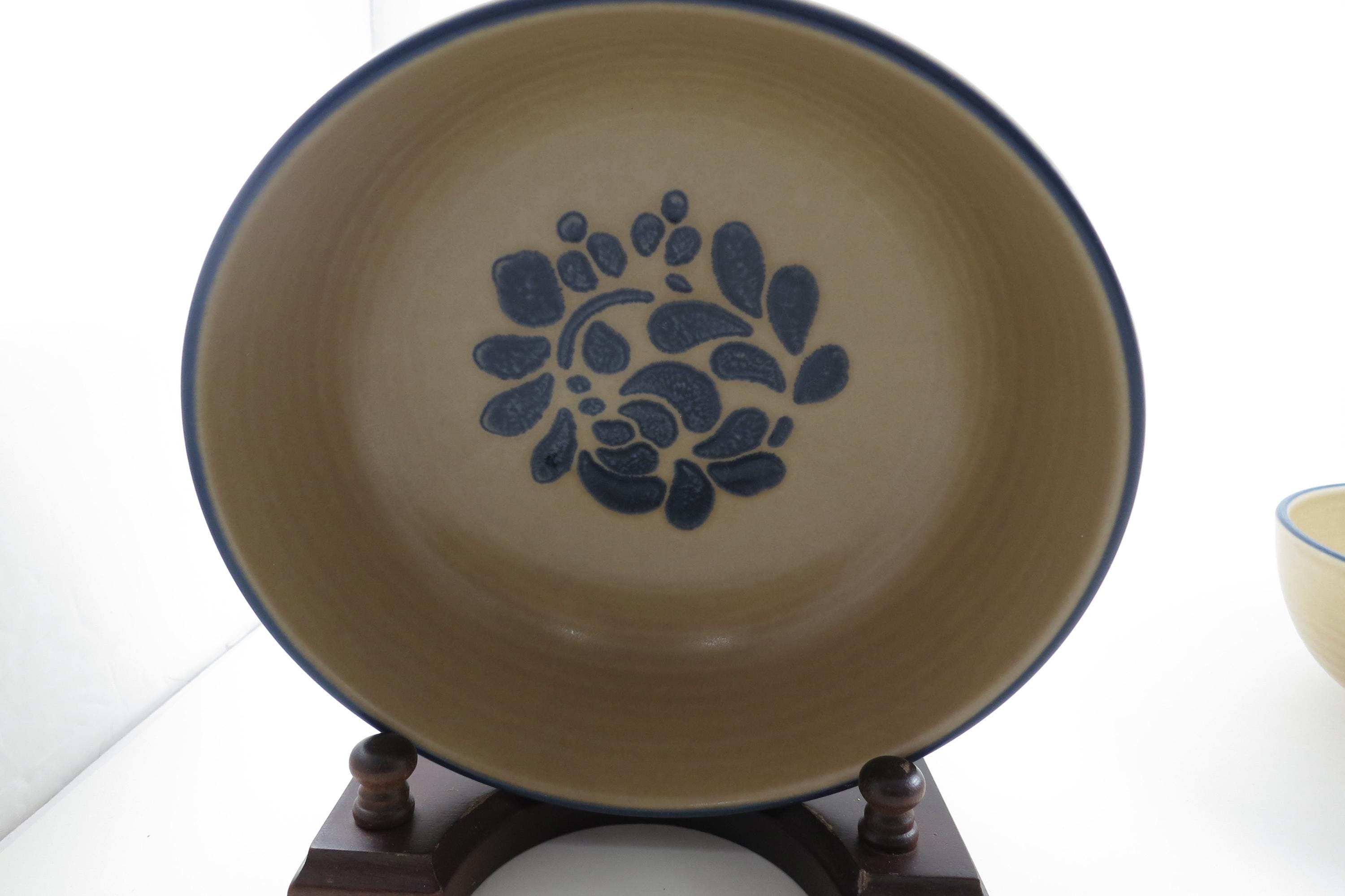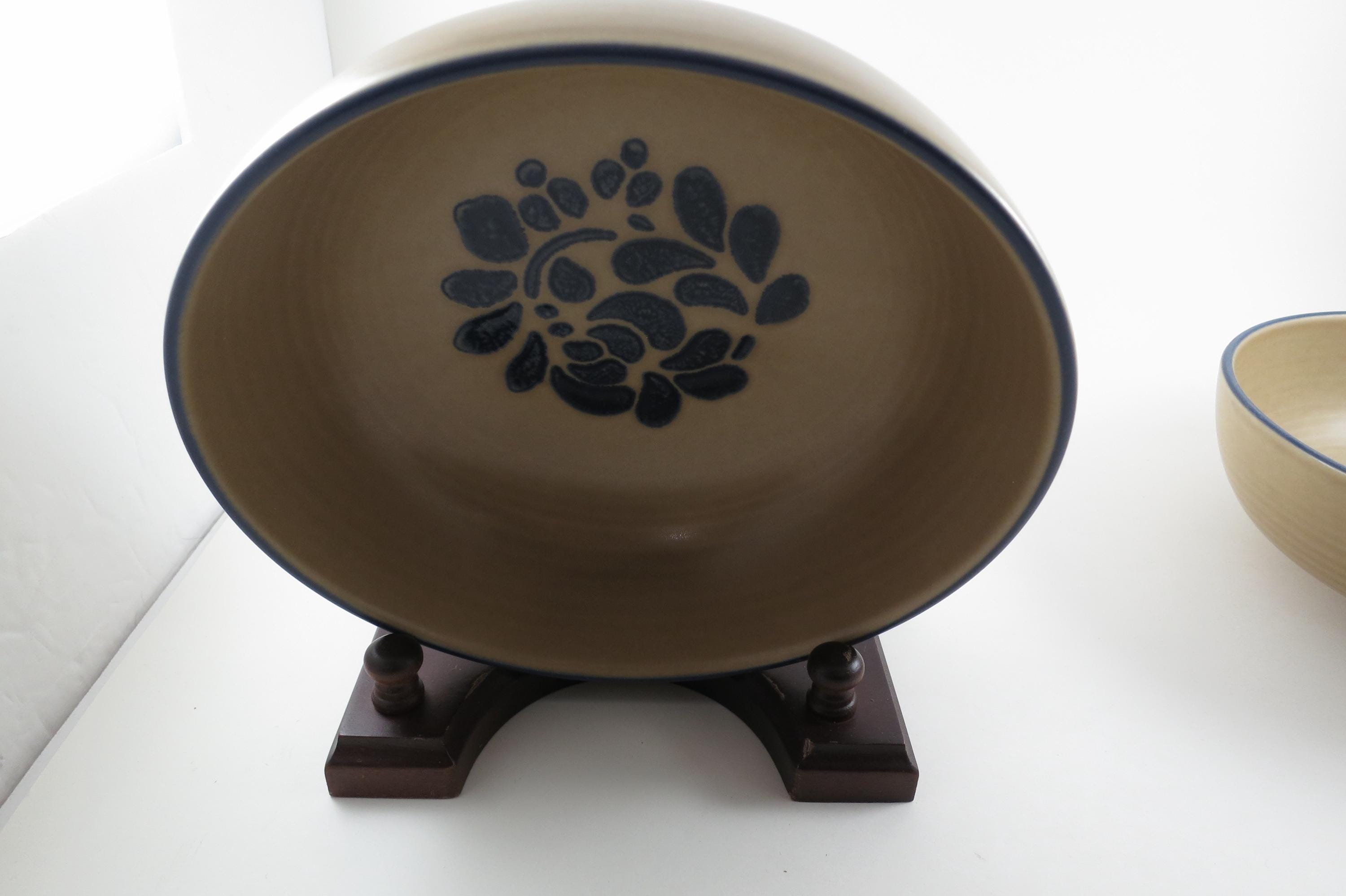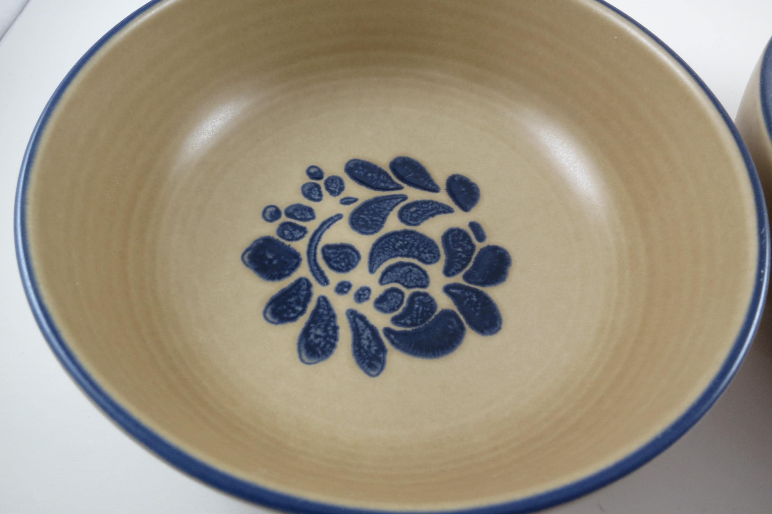 Vintage Pfaltzgraff Folk Art Pattern Pair of 7 1/4 Inch Round Vegetable Bowls USA.