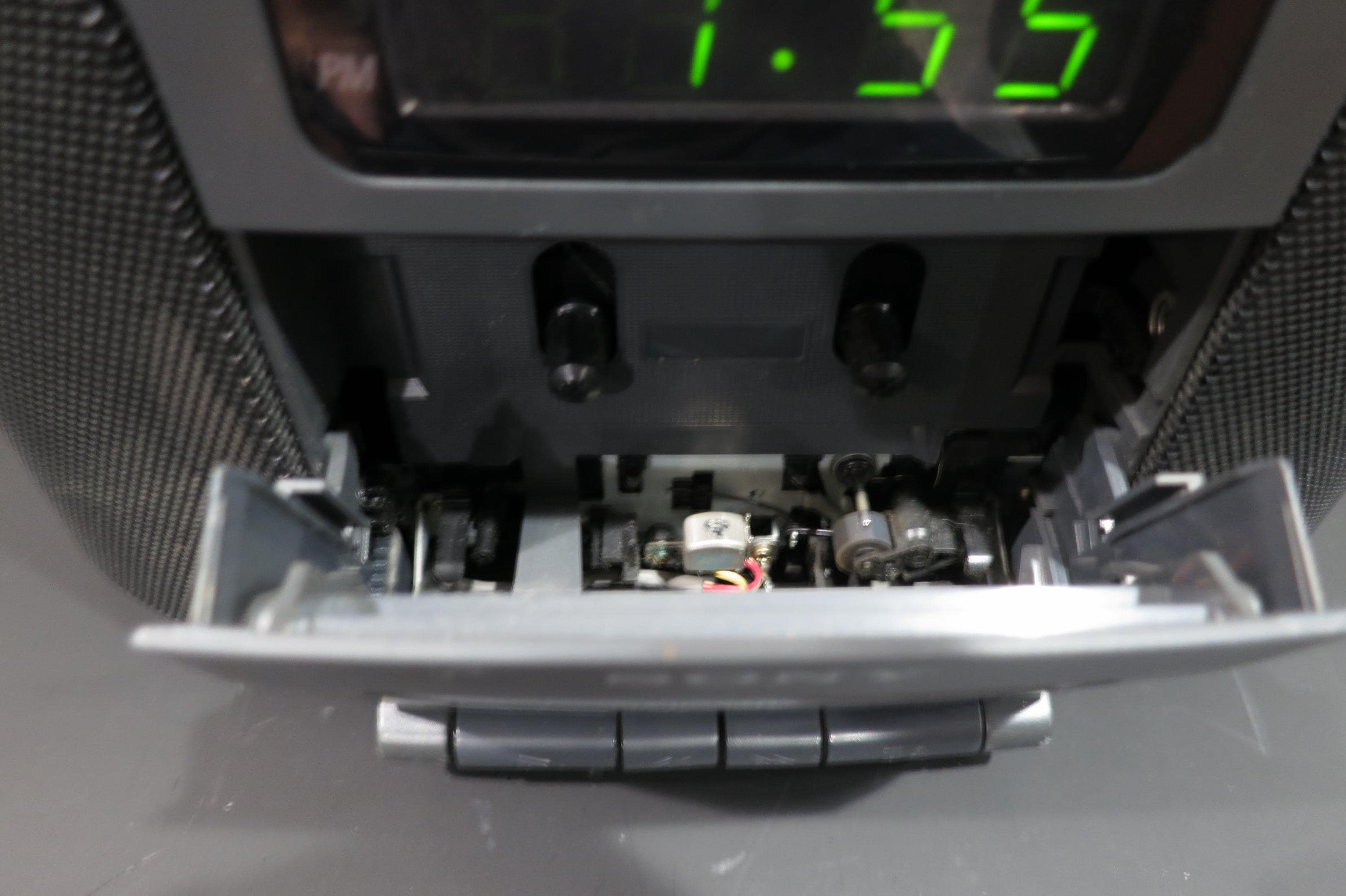 Features dual alarms that can be set to buzzer or music, green LED Display, Snooze/Nap Feature, and a working cassette player, as well as tone control. Great Sound! Alarms have been tested and all the features of this unit work great! This one even has surround sound!