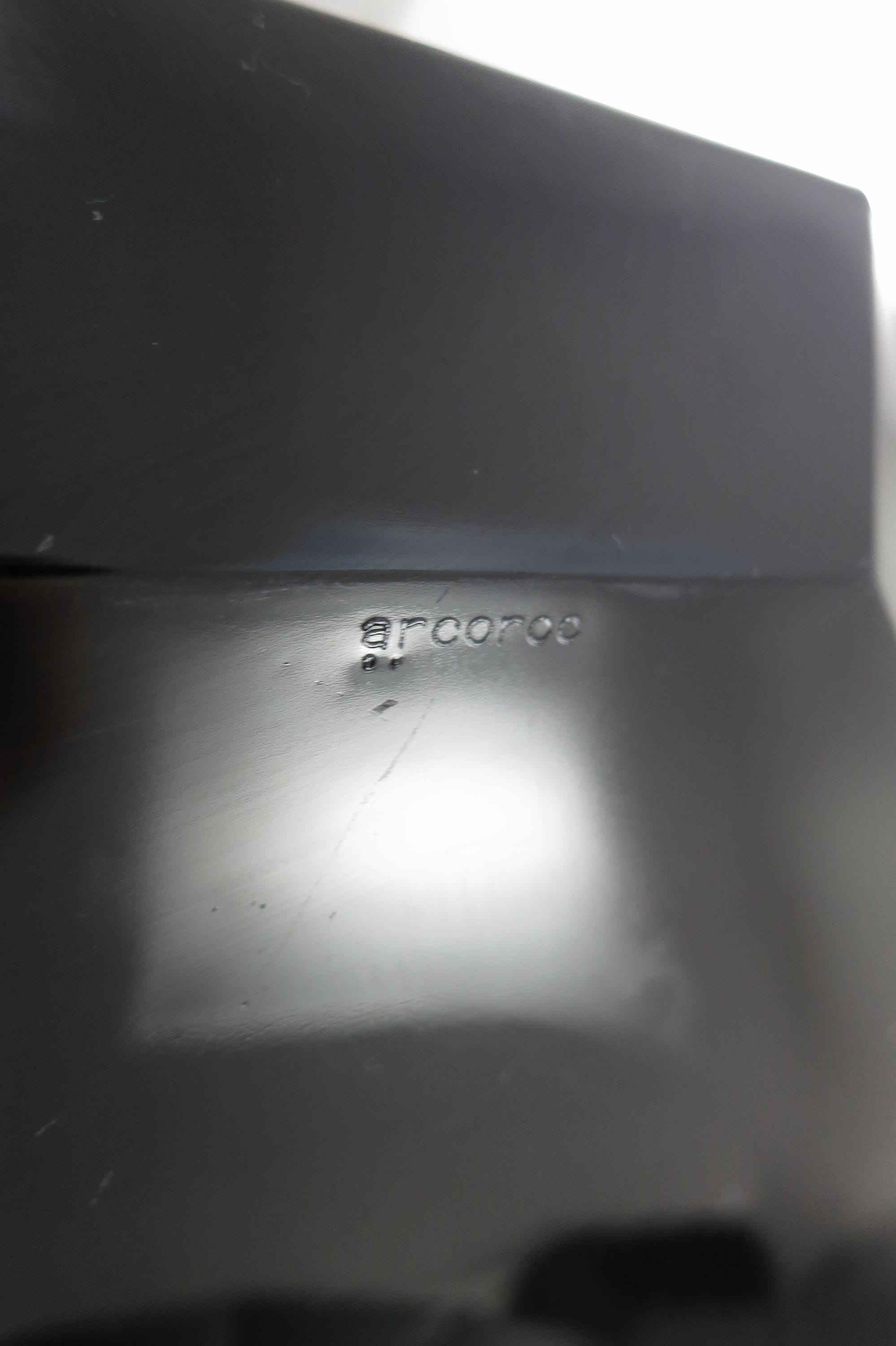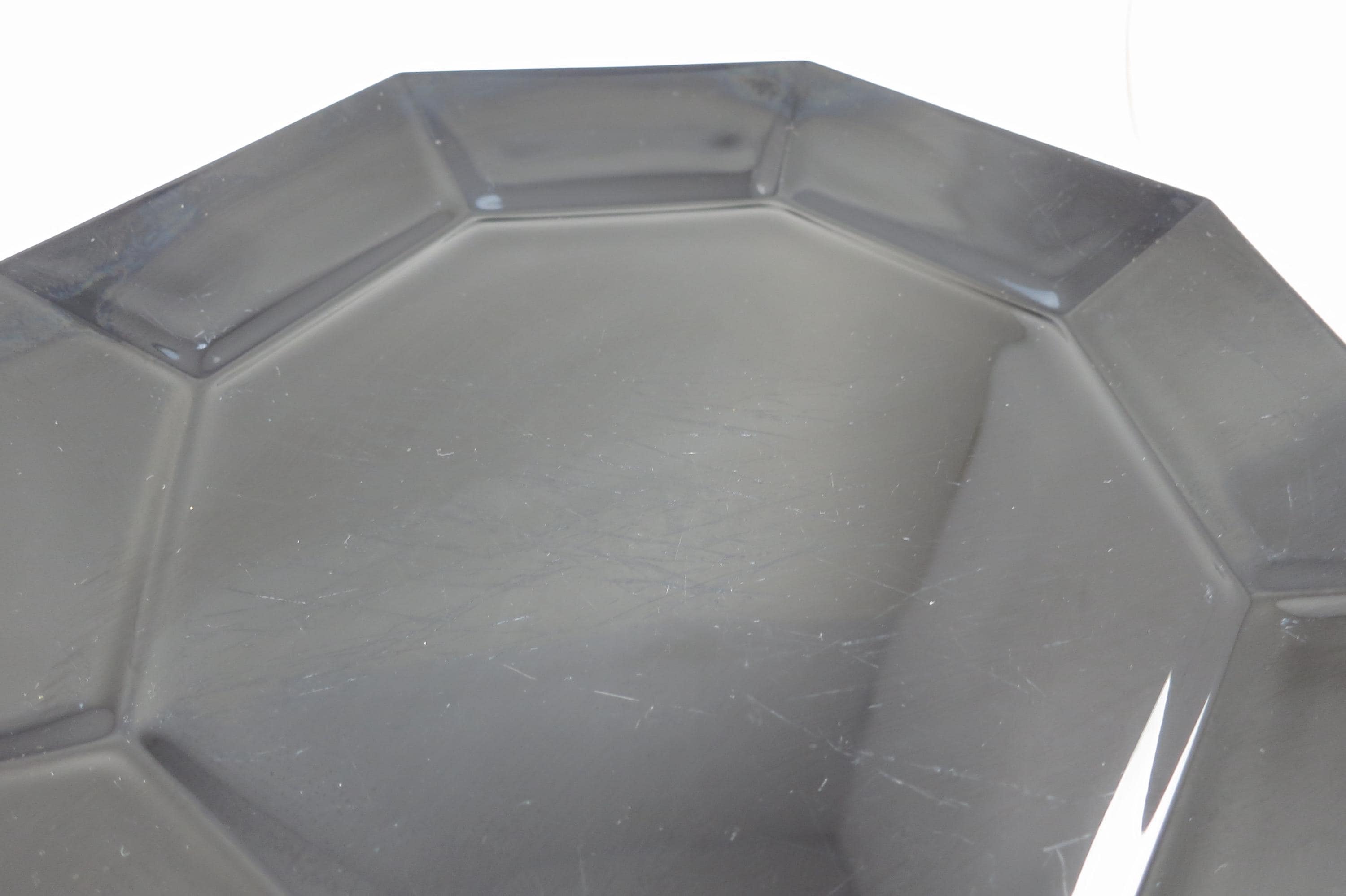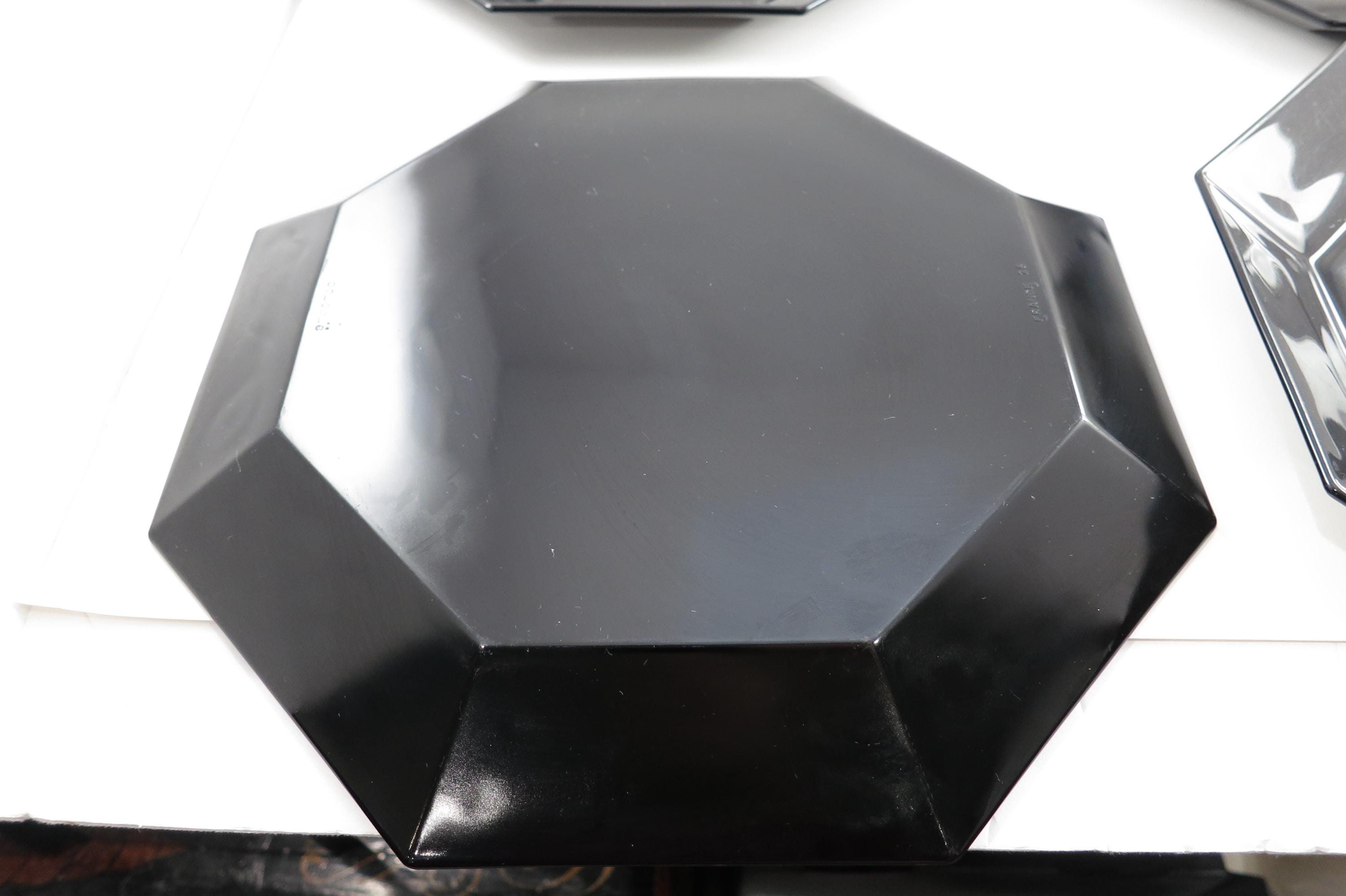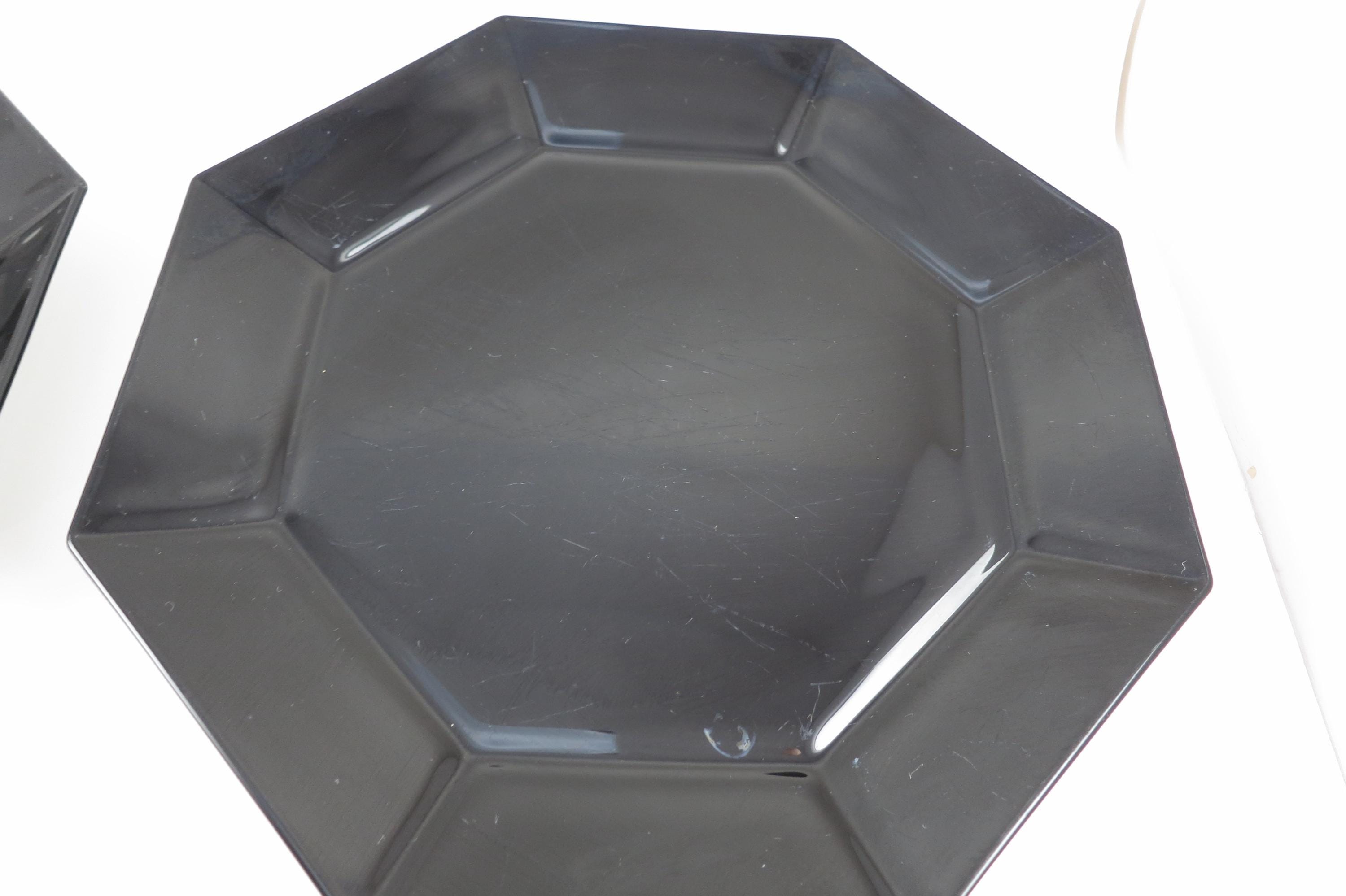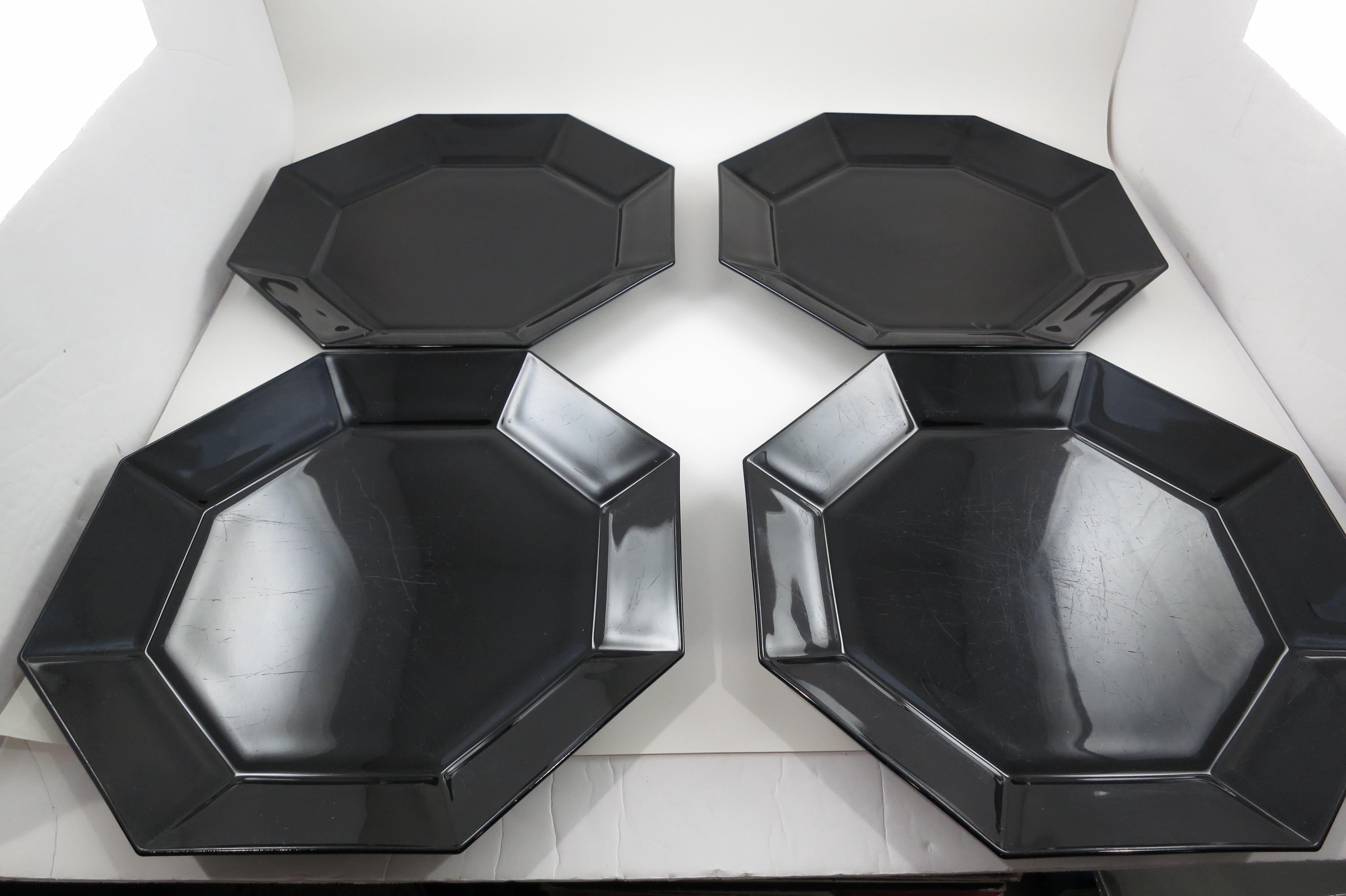 Set of Four Arcoroc France Octime Black 9 3/4 Inch Sharp Edge Dinner Plates.