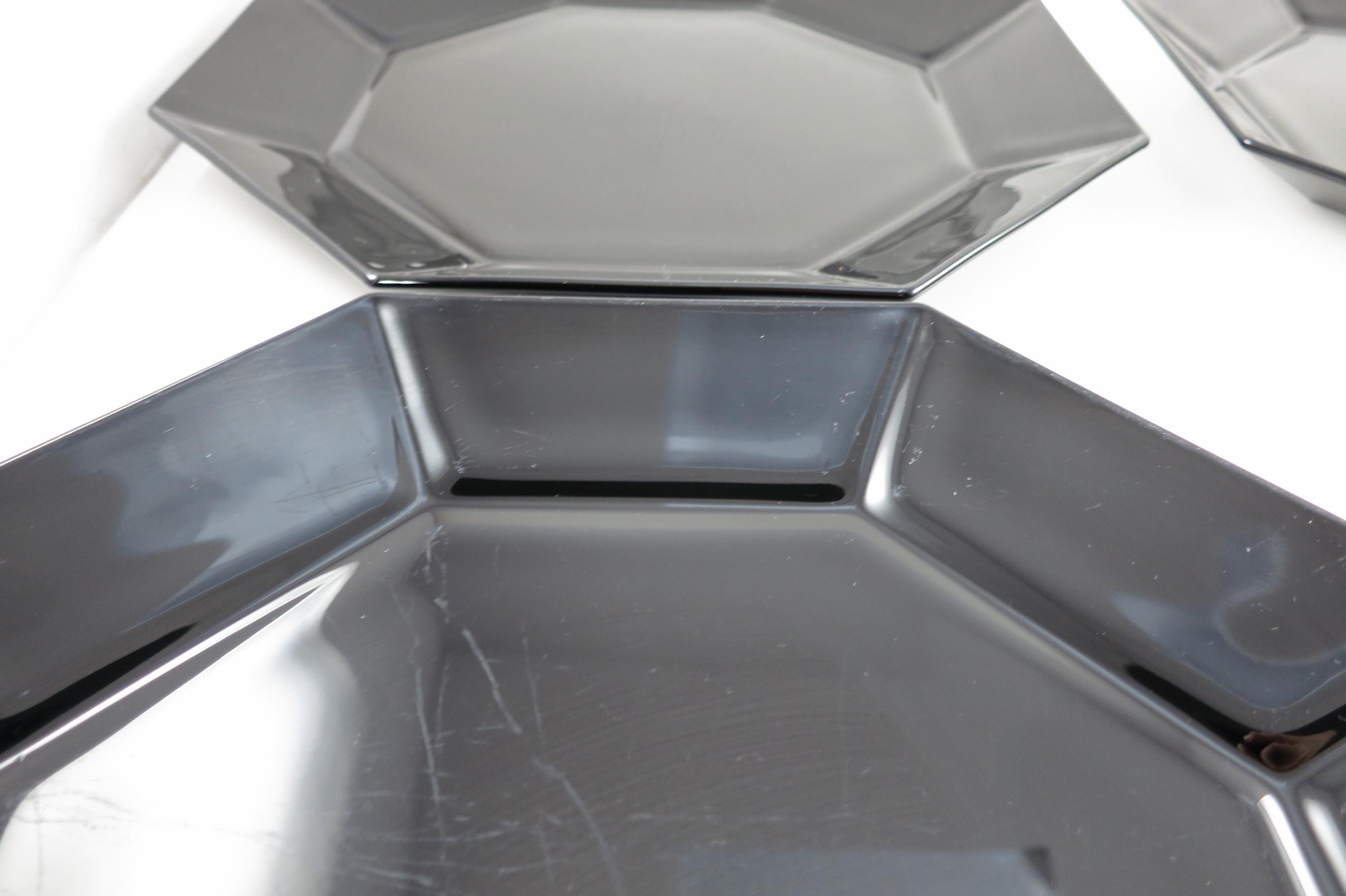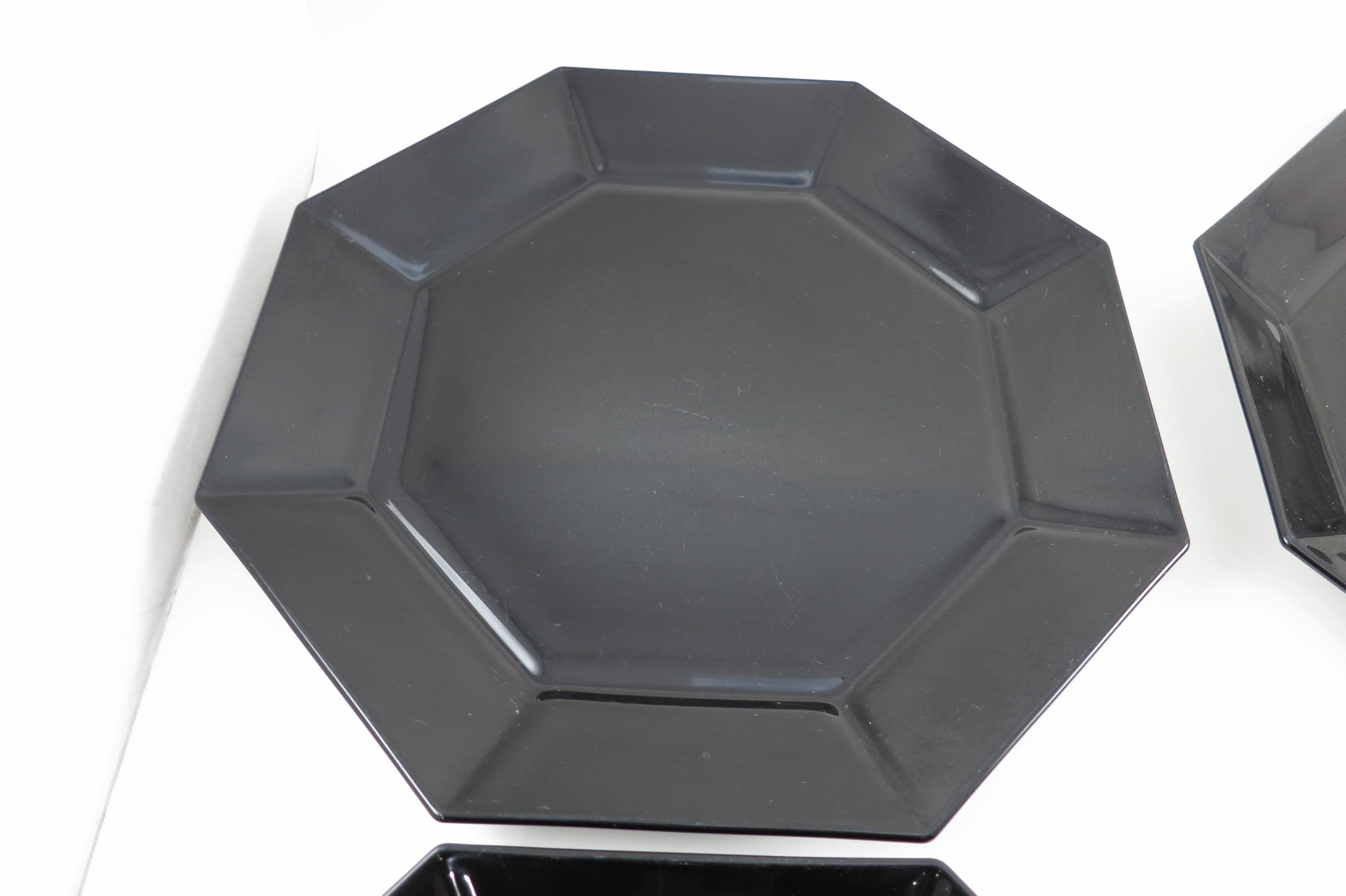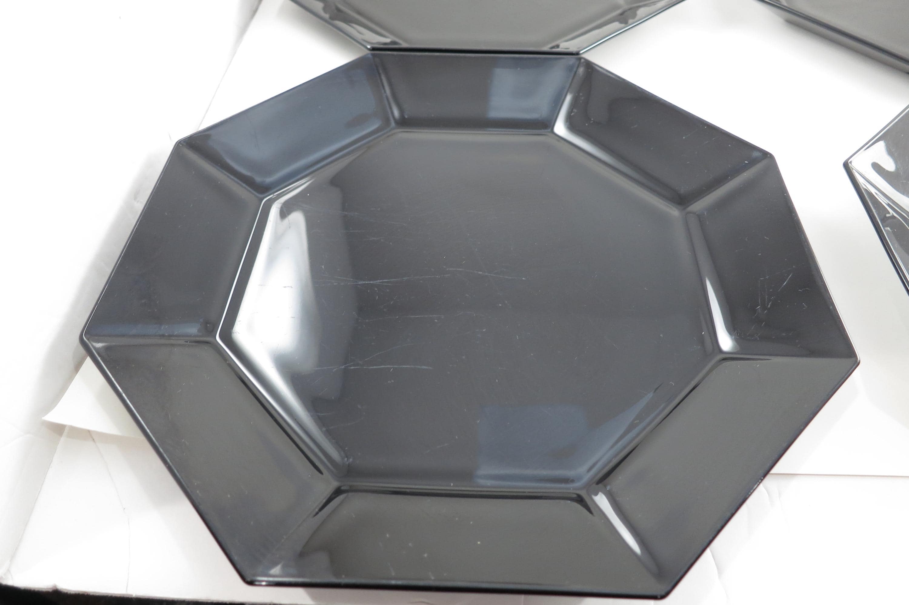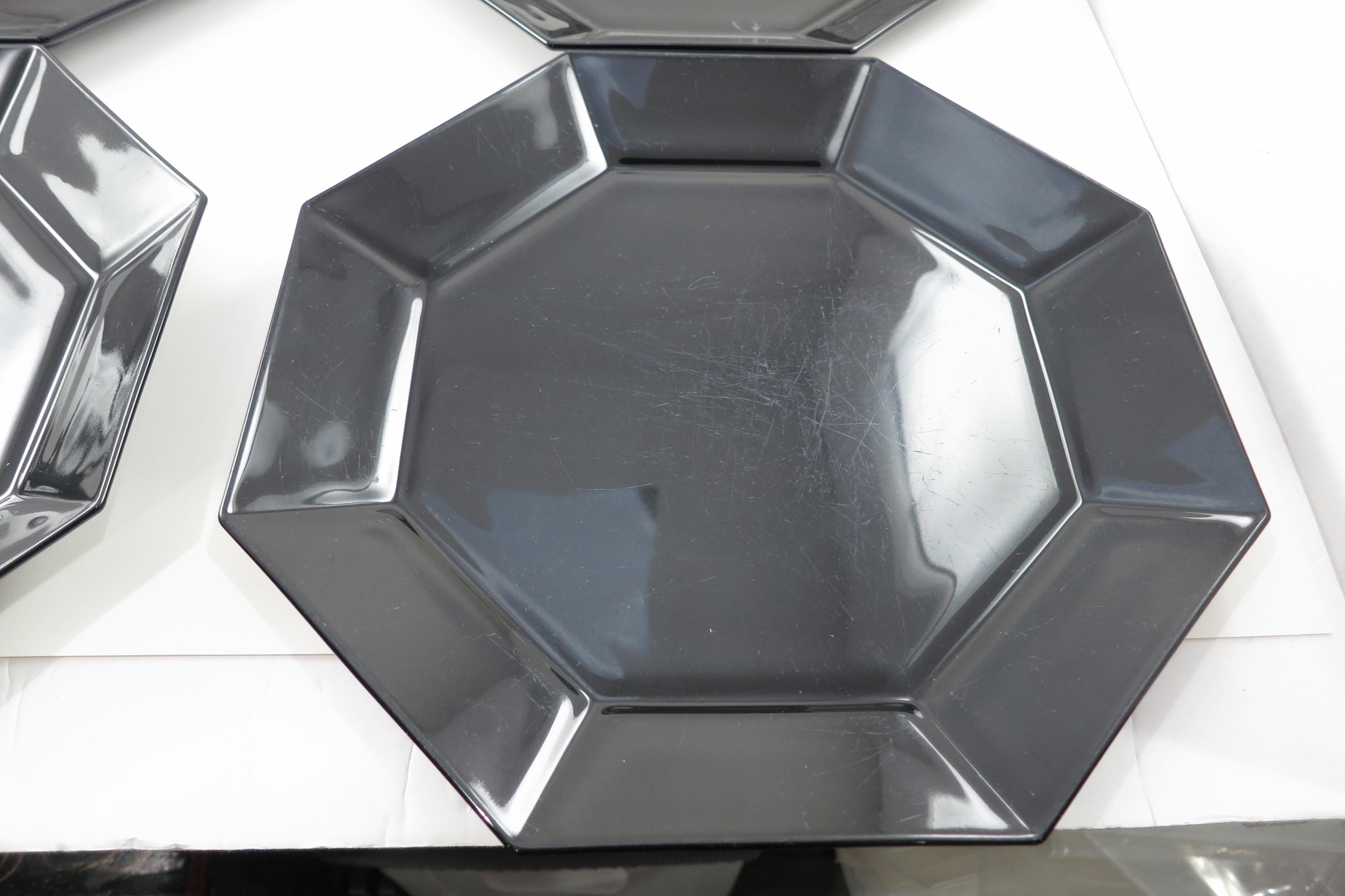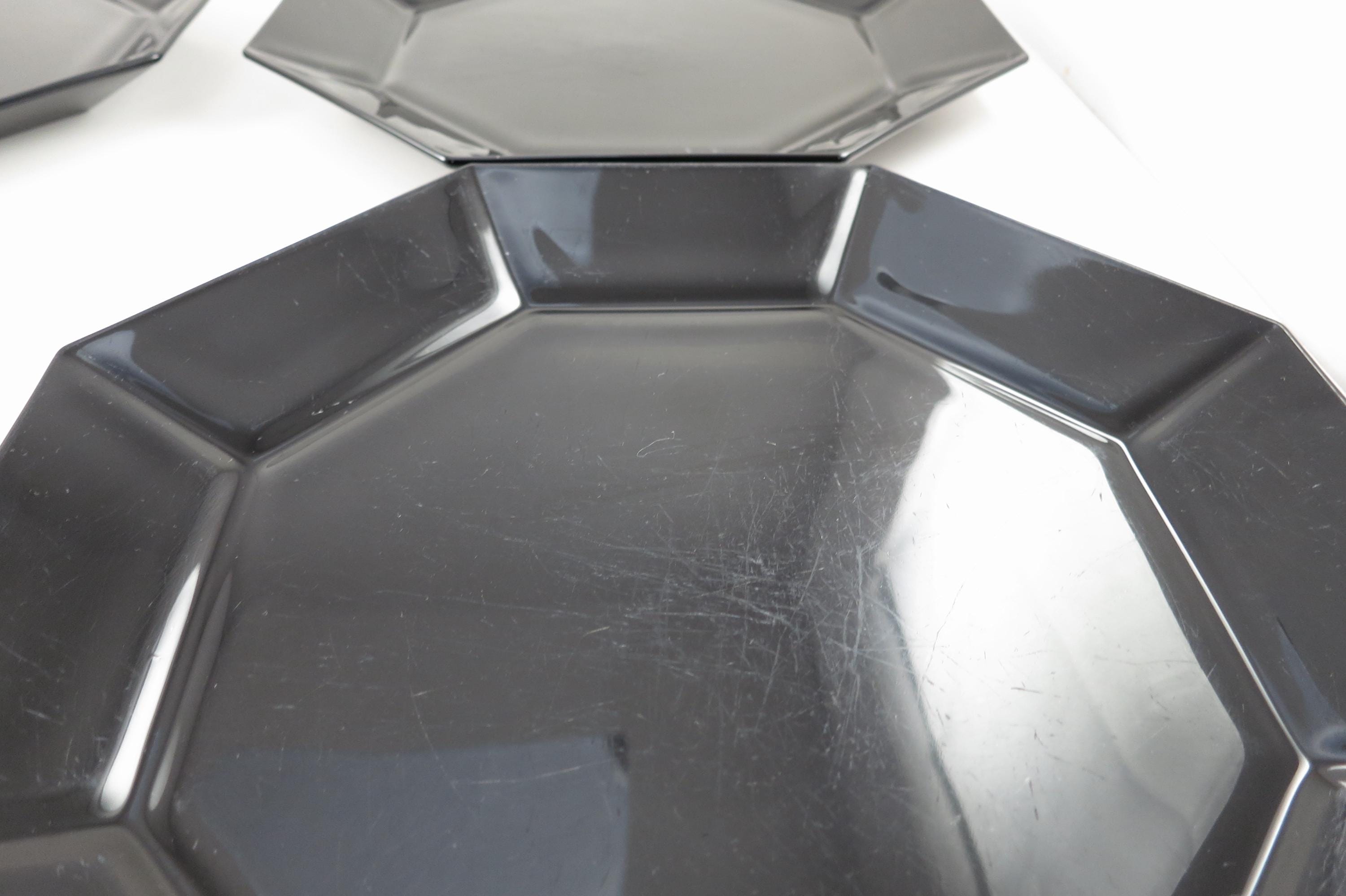 Set of Four Arcoroc France Octime Black 9 3/4 Inch Sharp Edge Dinner Plates