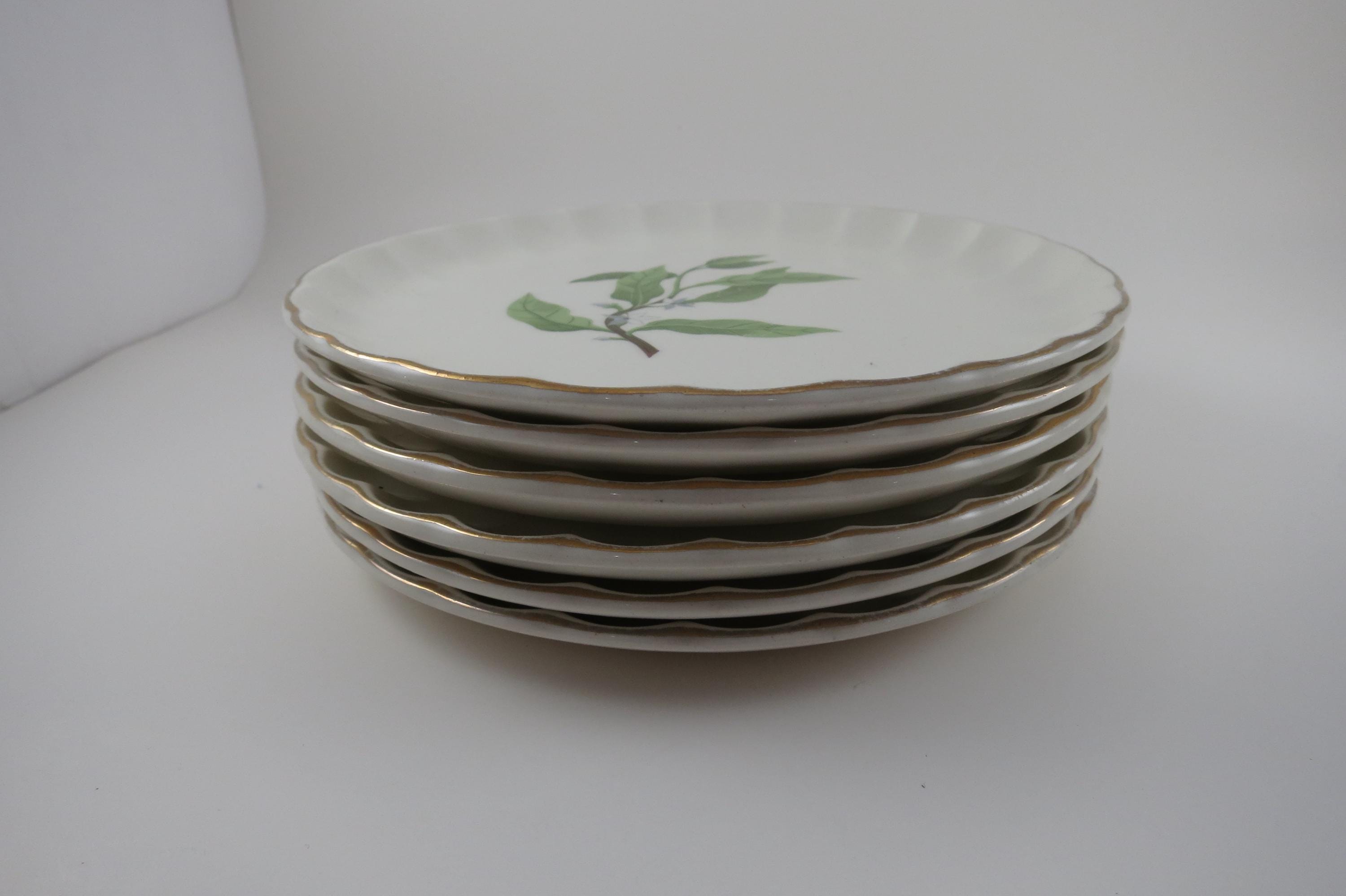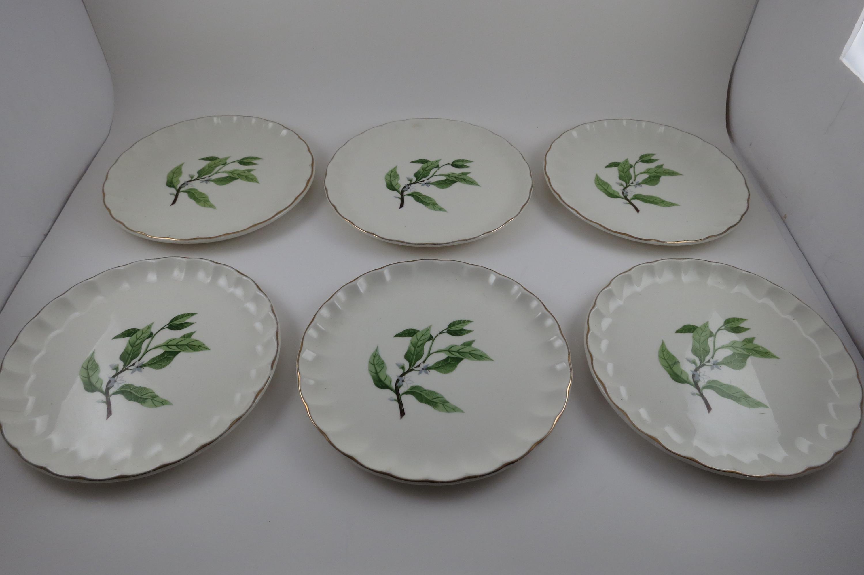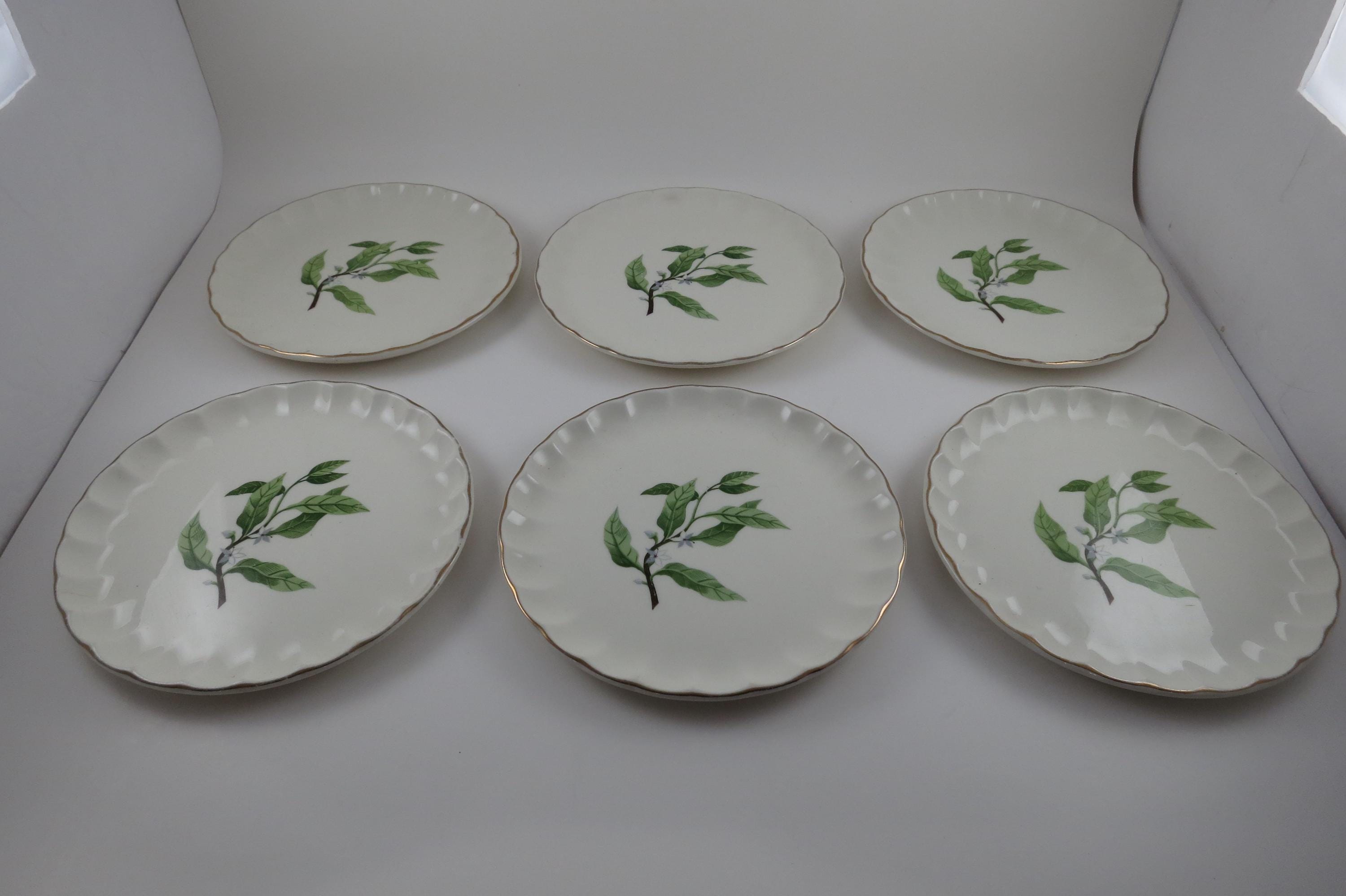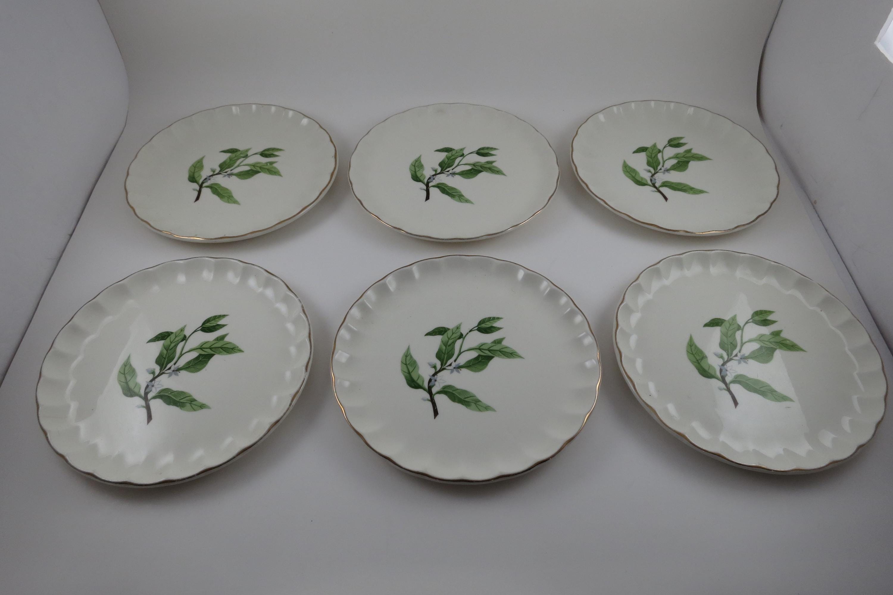 Set of Six WS George Bolero MCM Green Leaves 6 1/2 Inch Bread Plates.