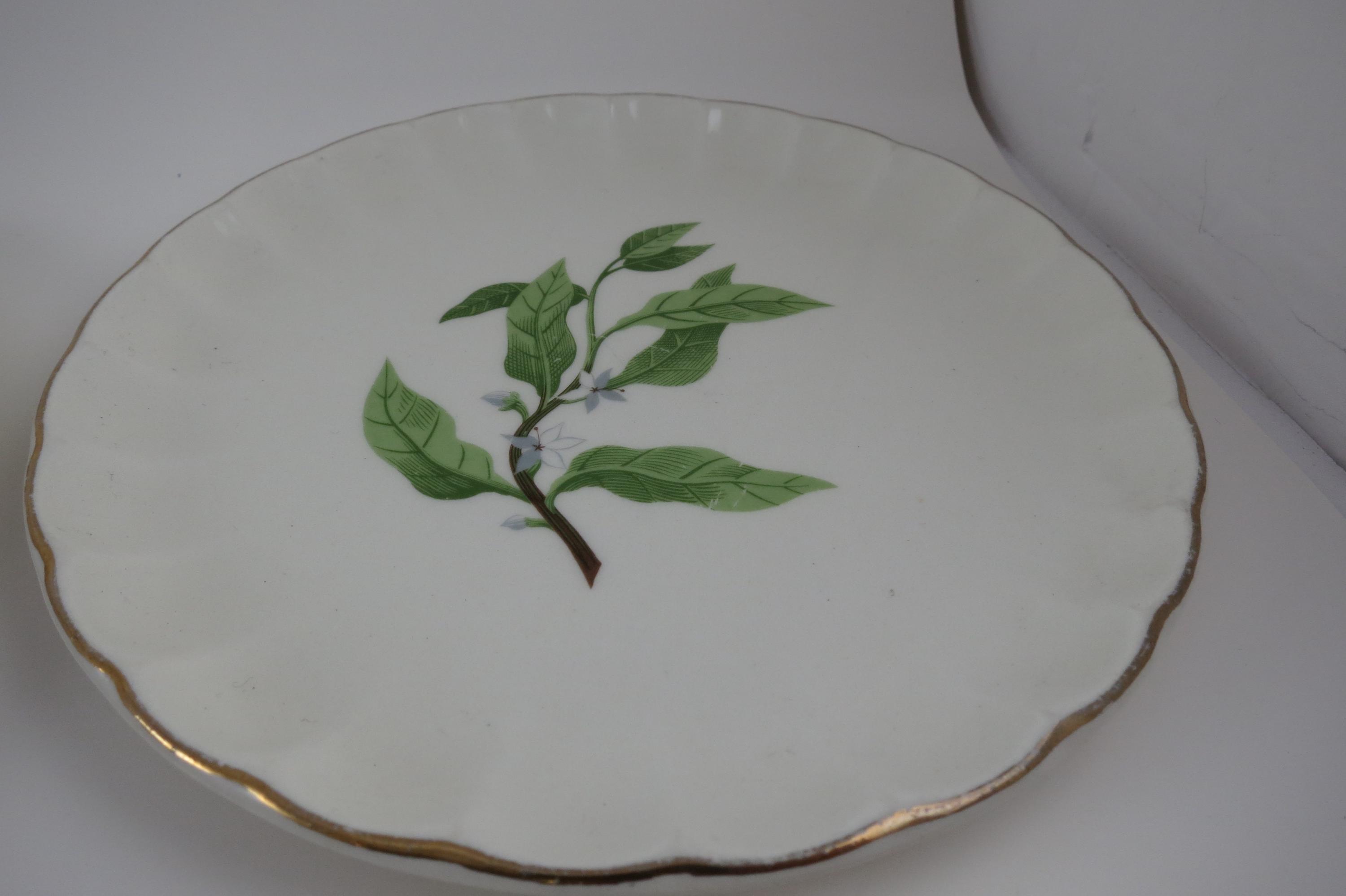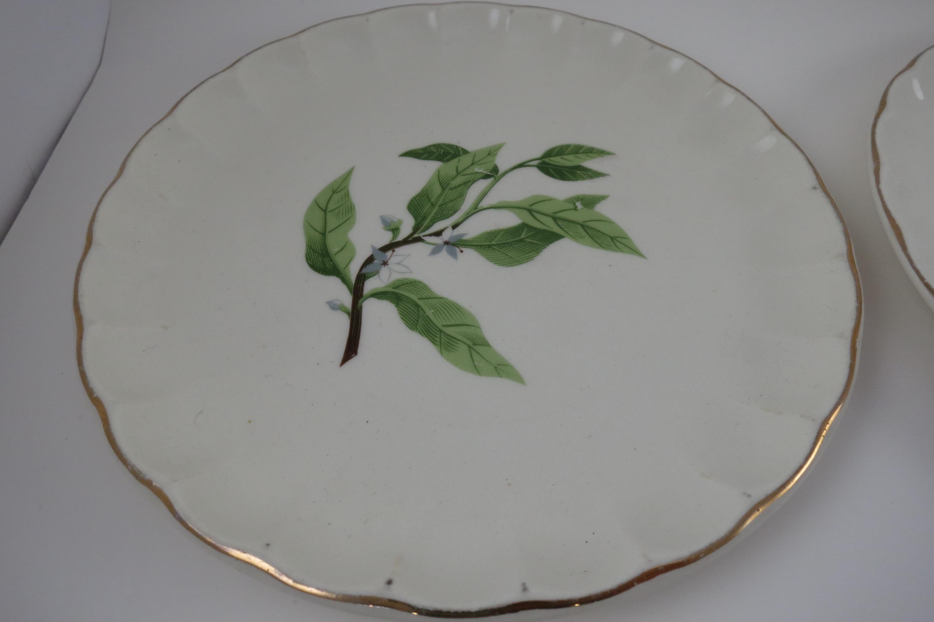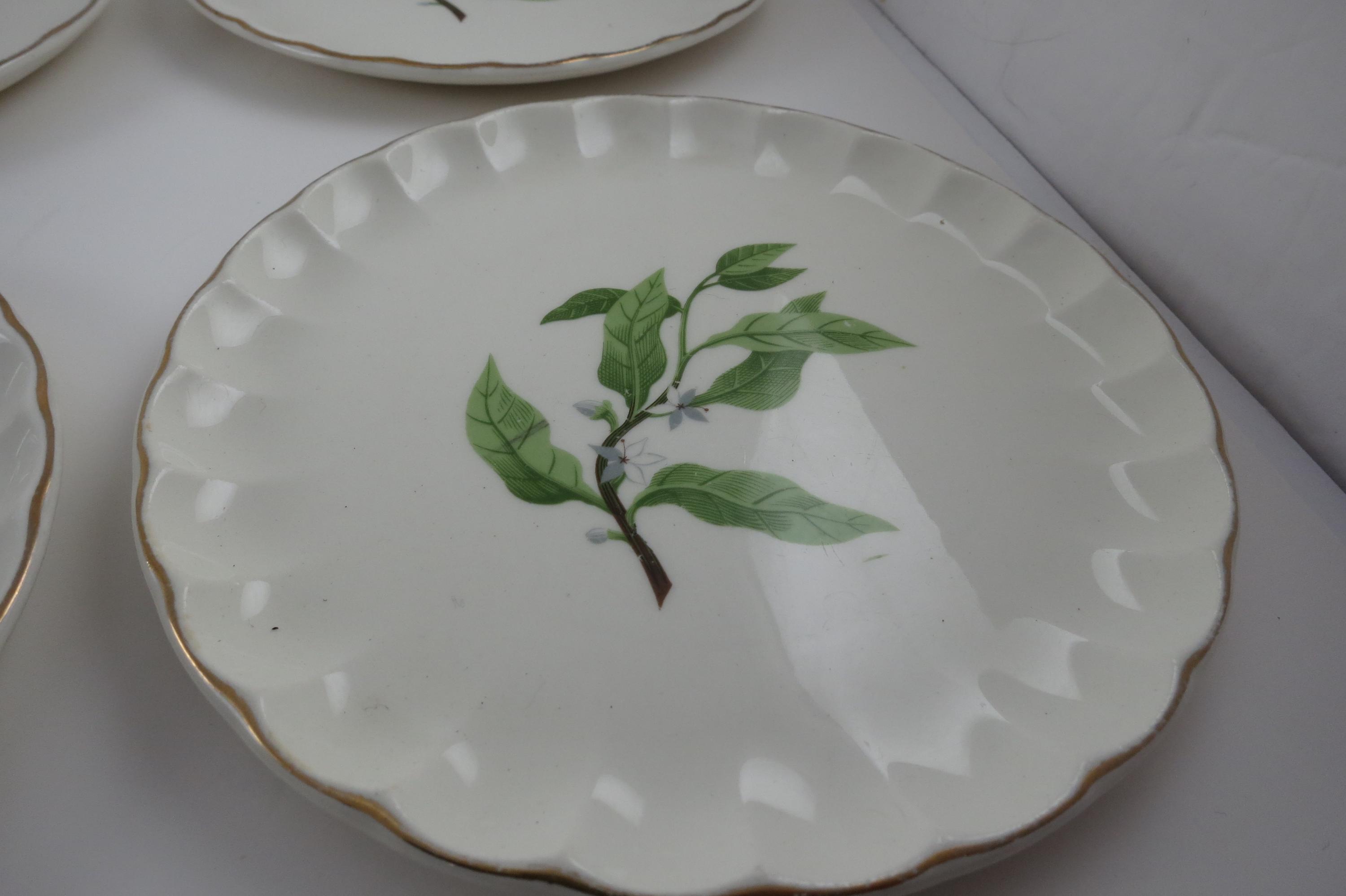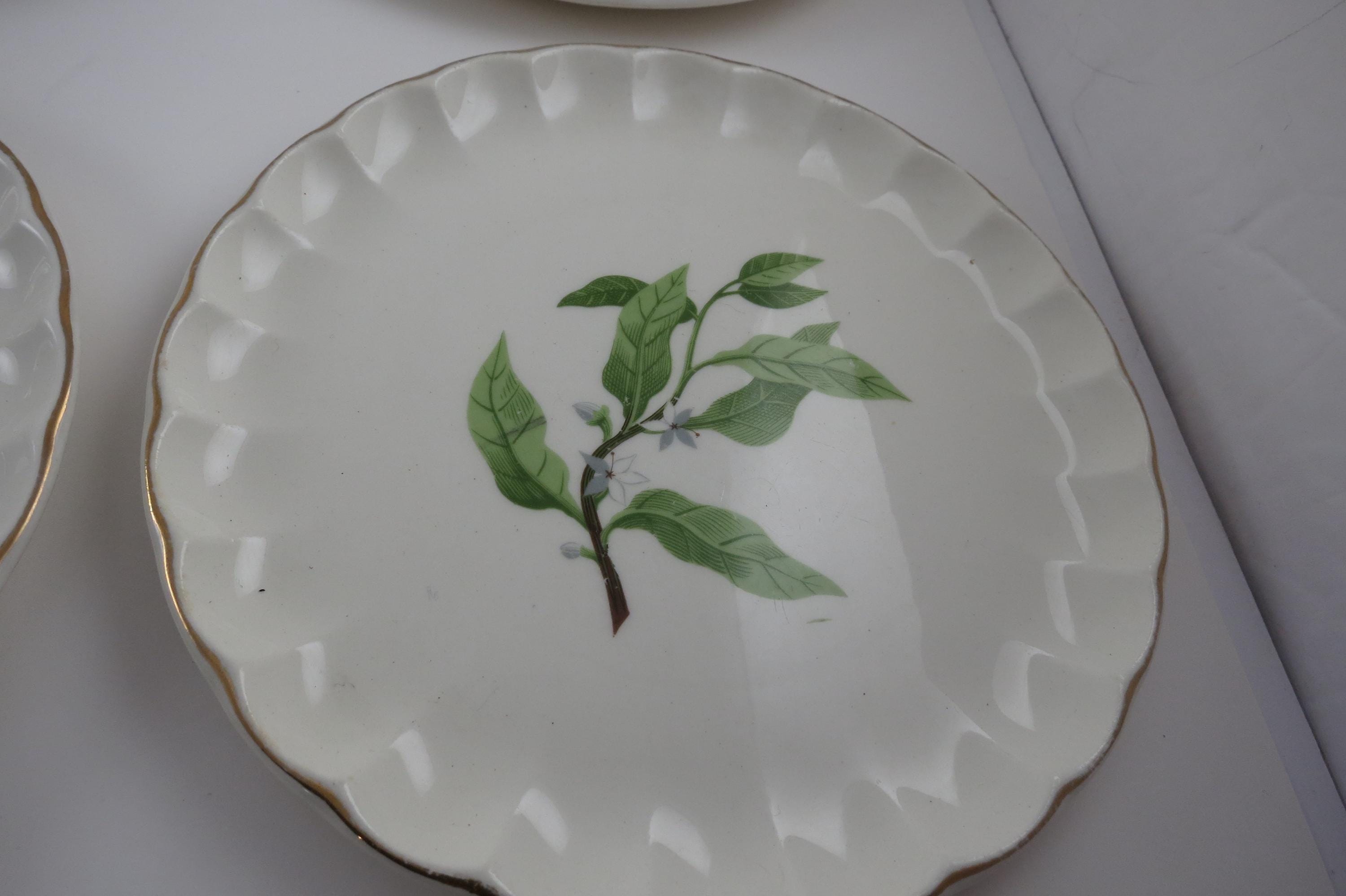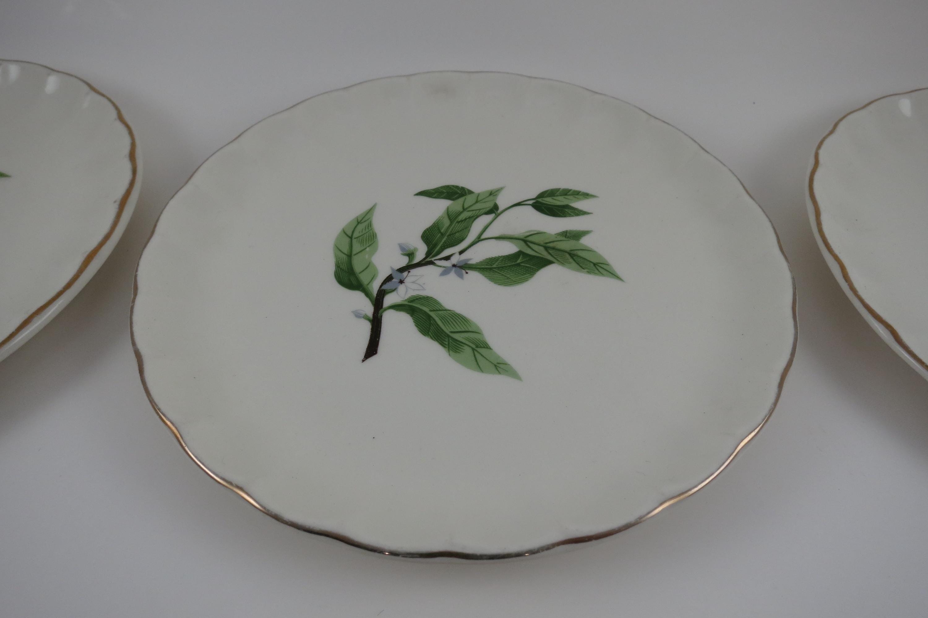 Set of Six WS George Bolero MCM Green Leaves 6 1/2 Inch Bread Plates.