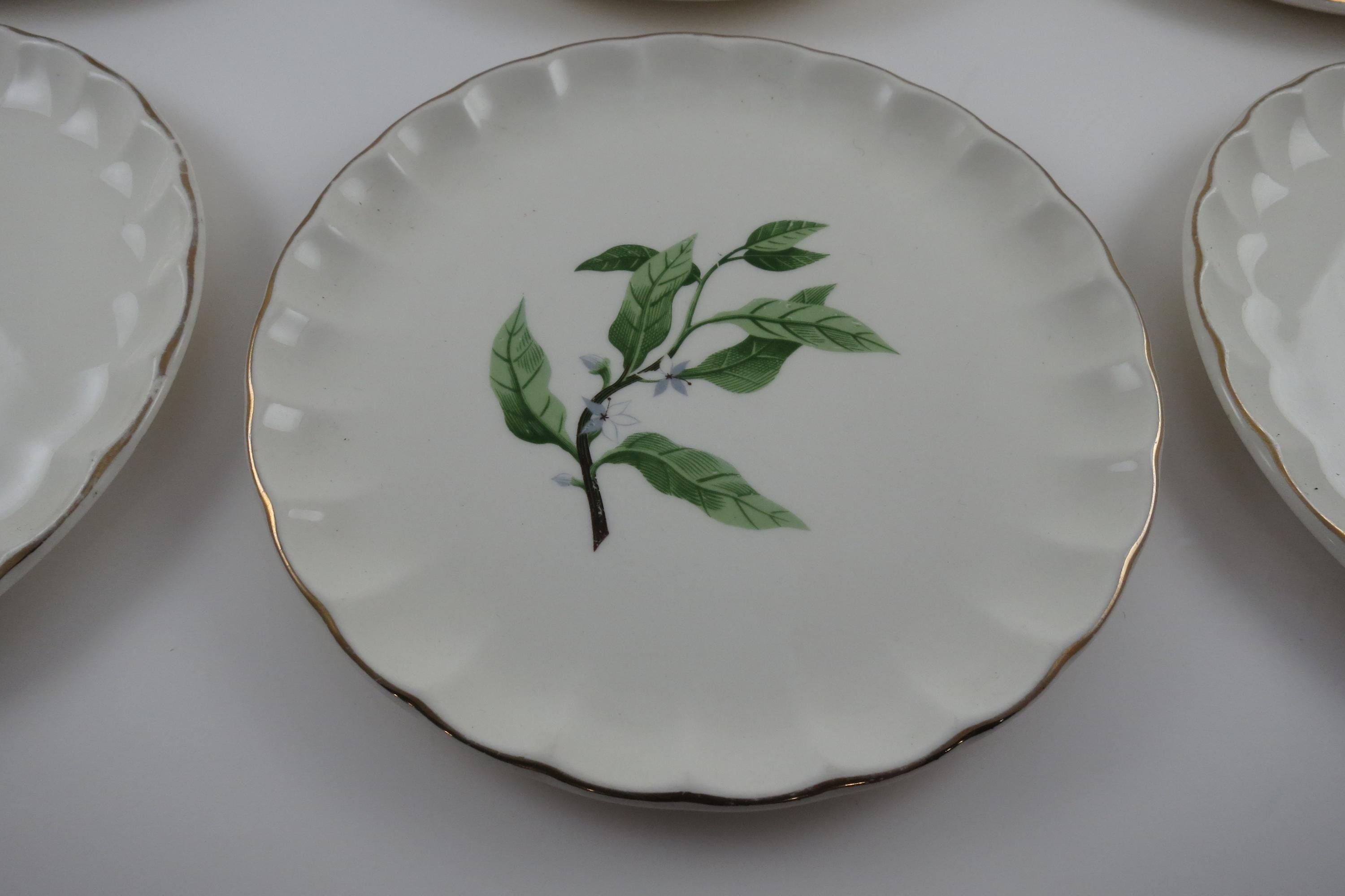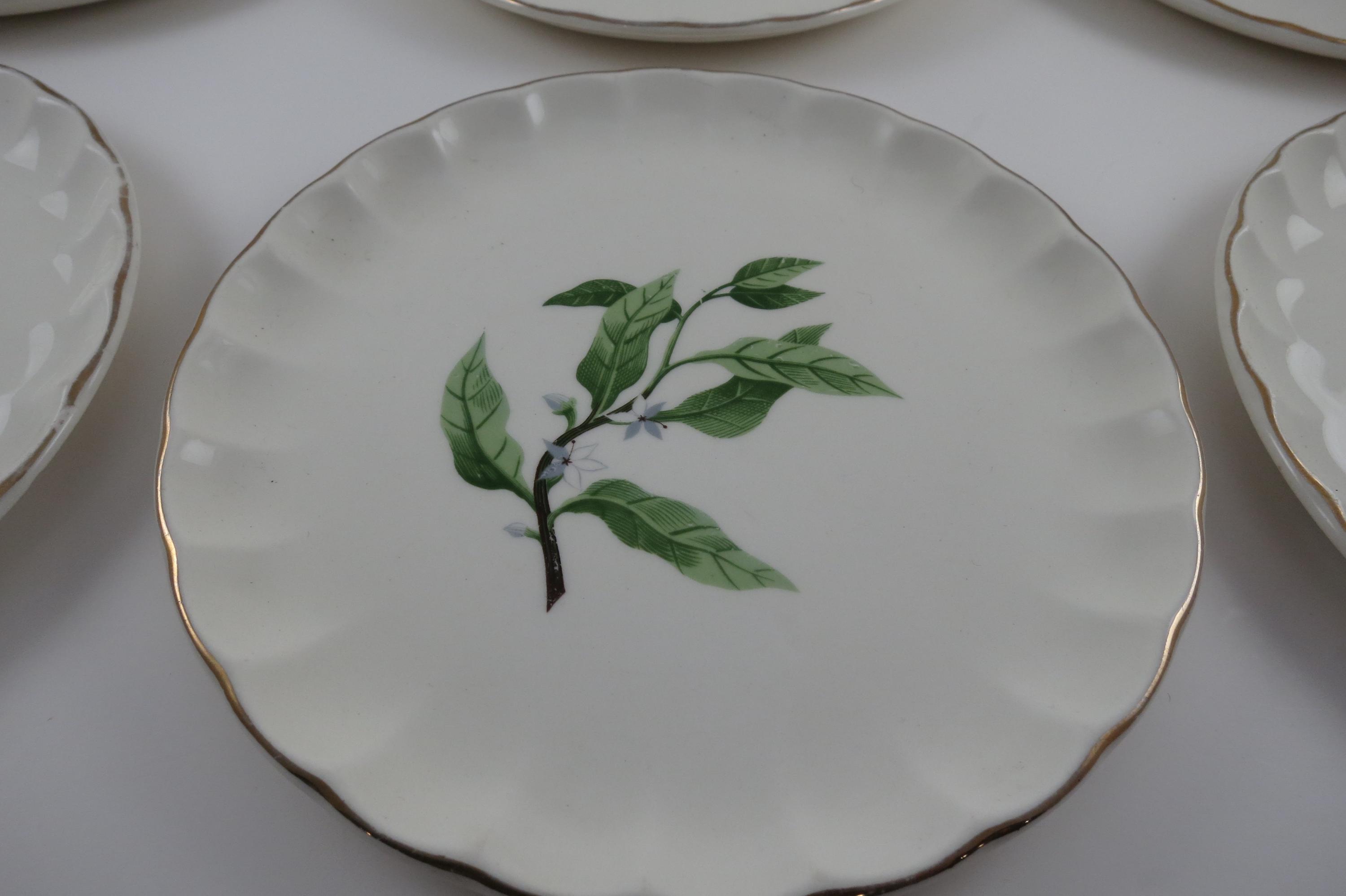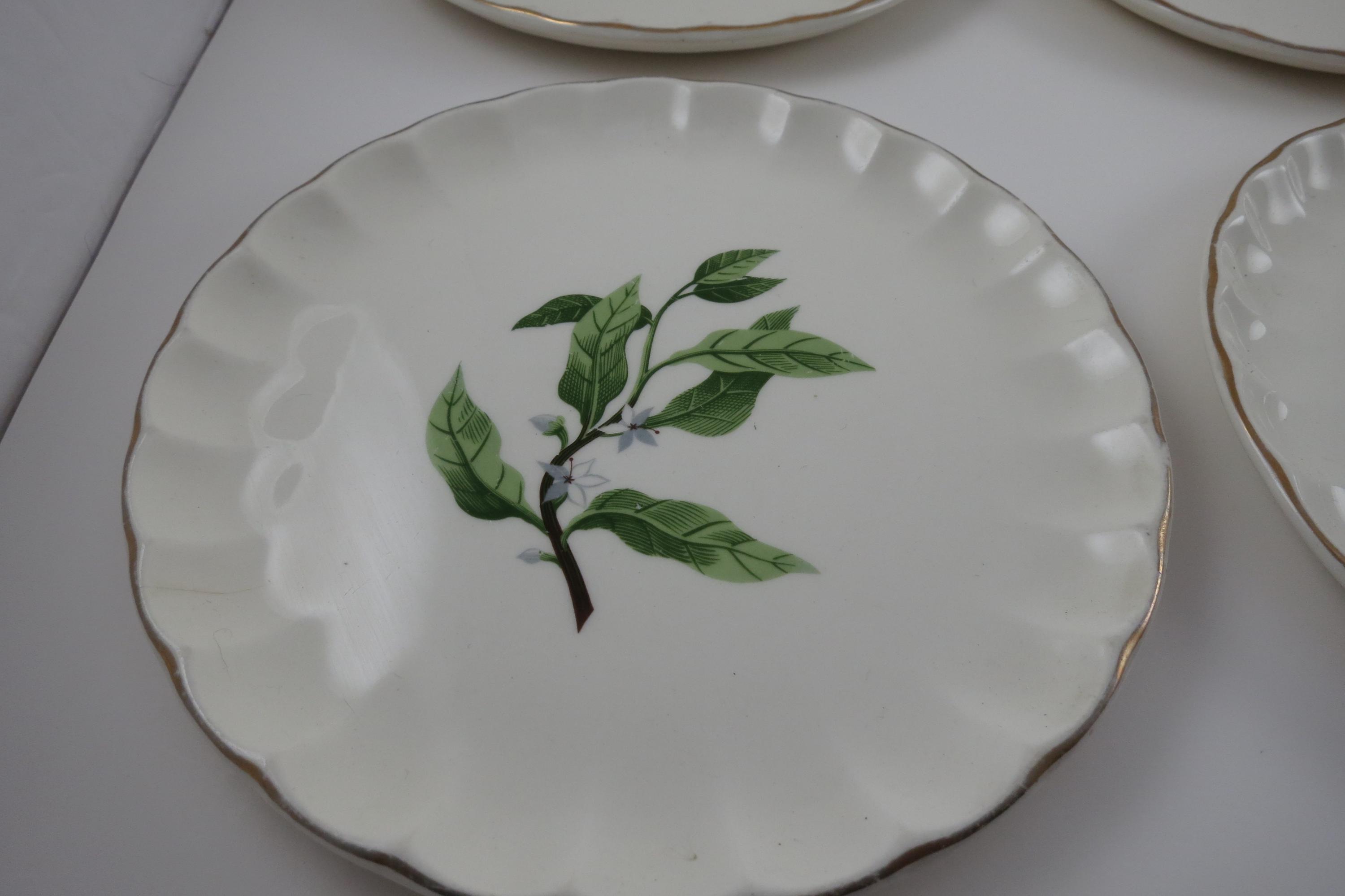 Set of Six WS George Bolero MCM Green Leaves 6 1/2 Inch Bread Plates