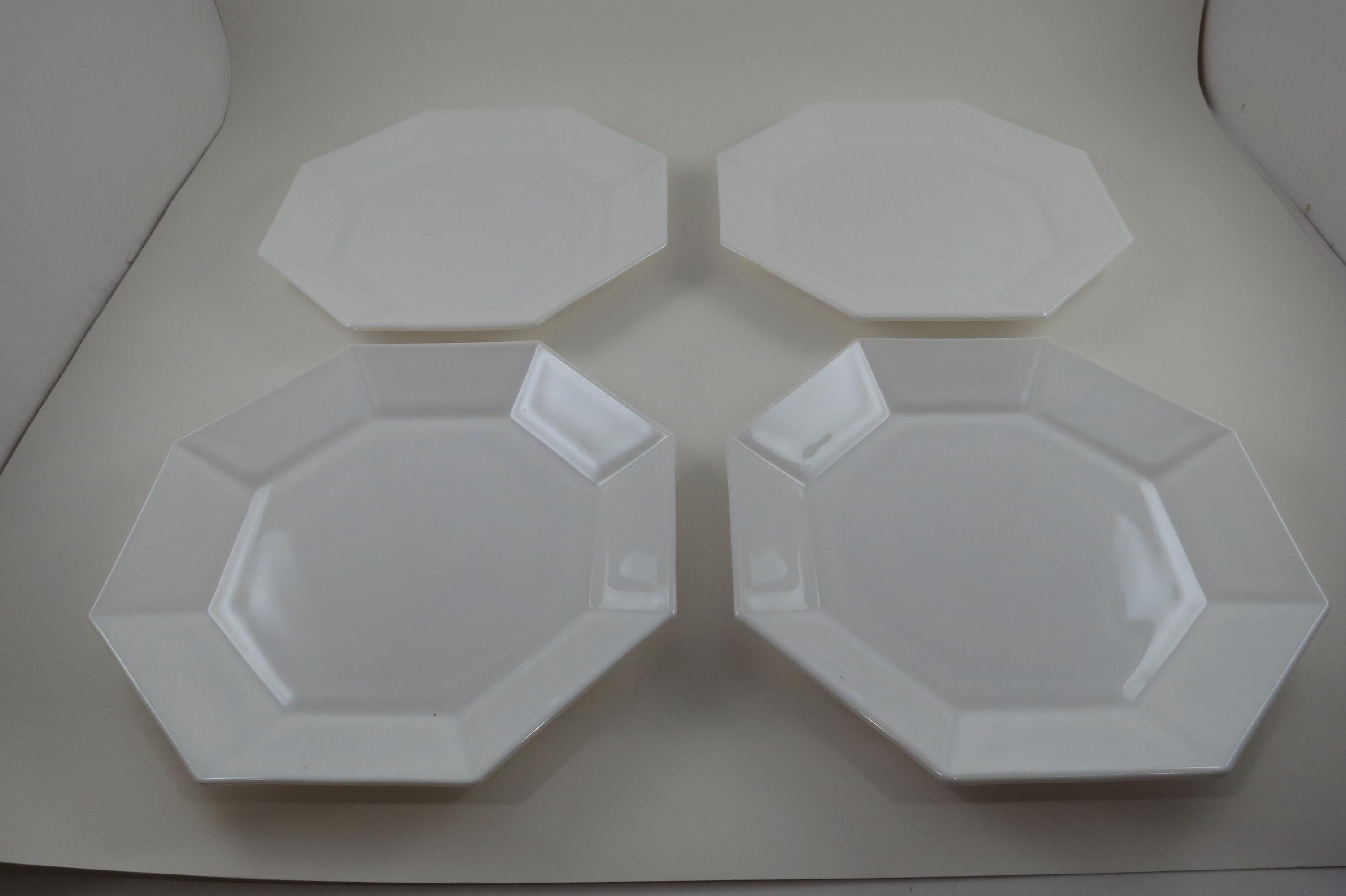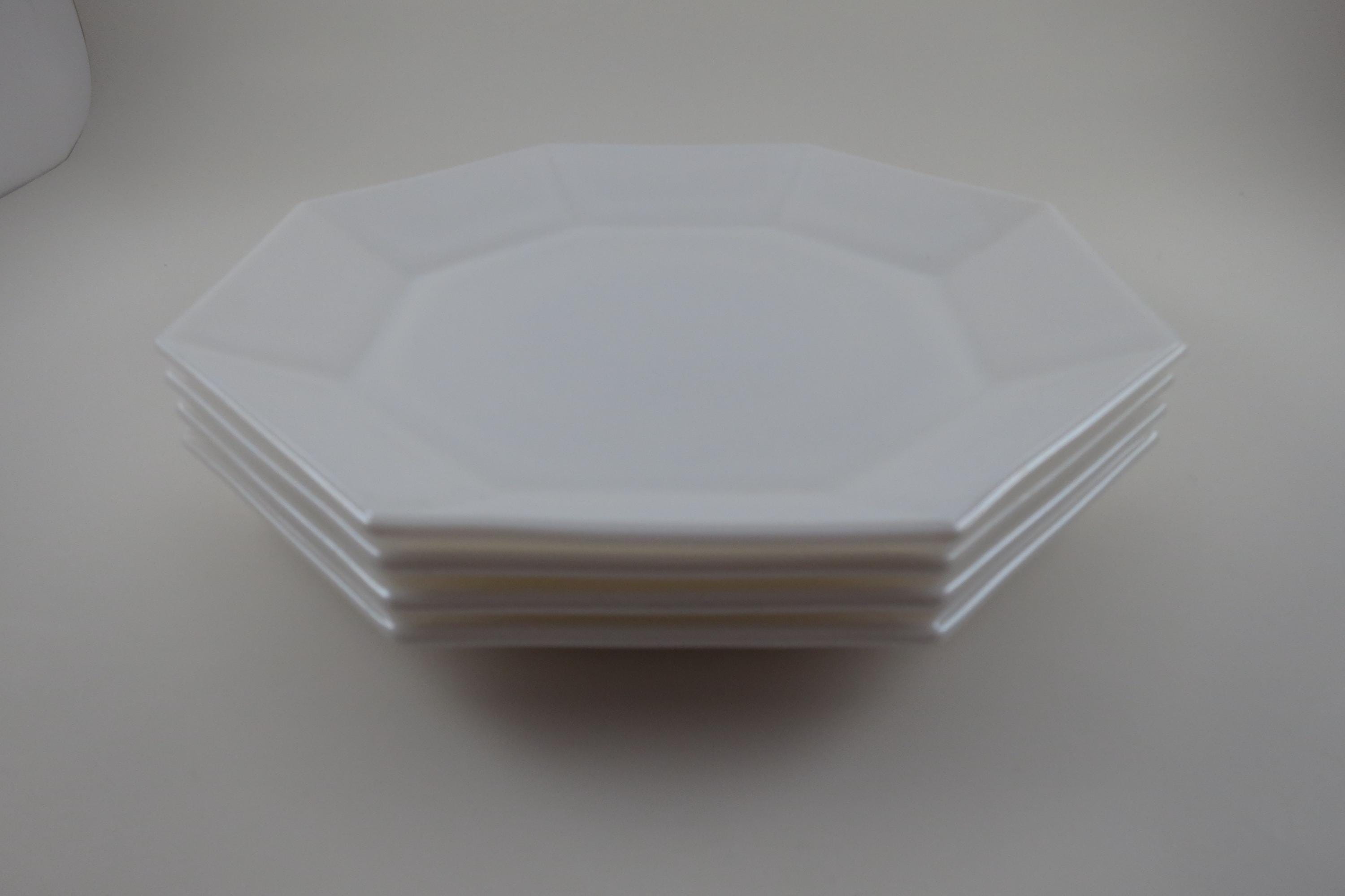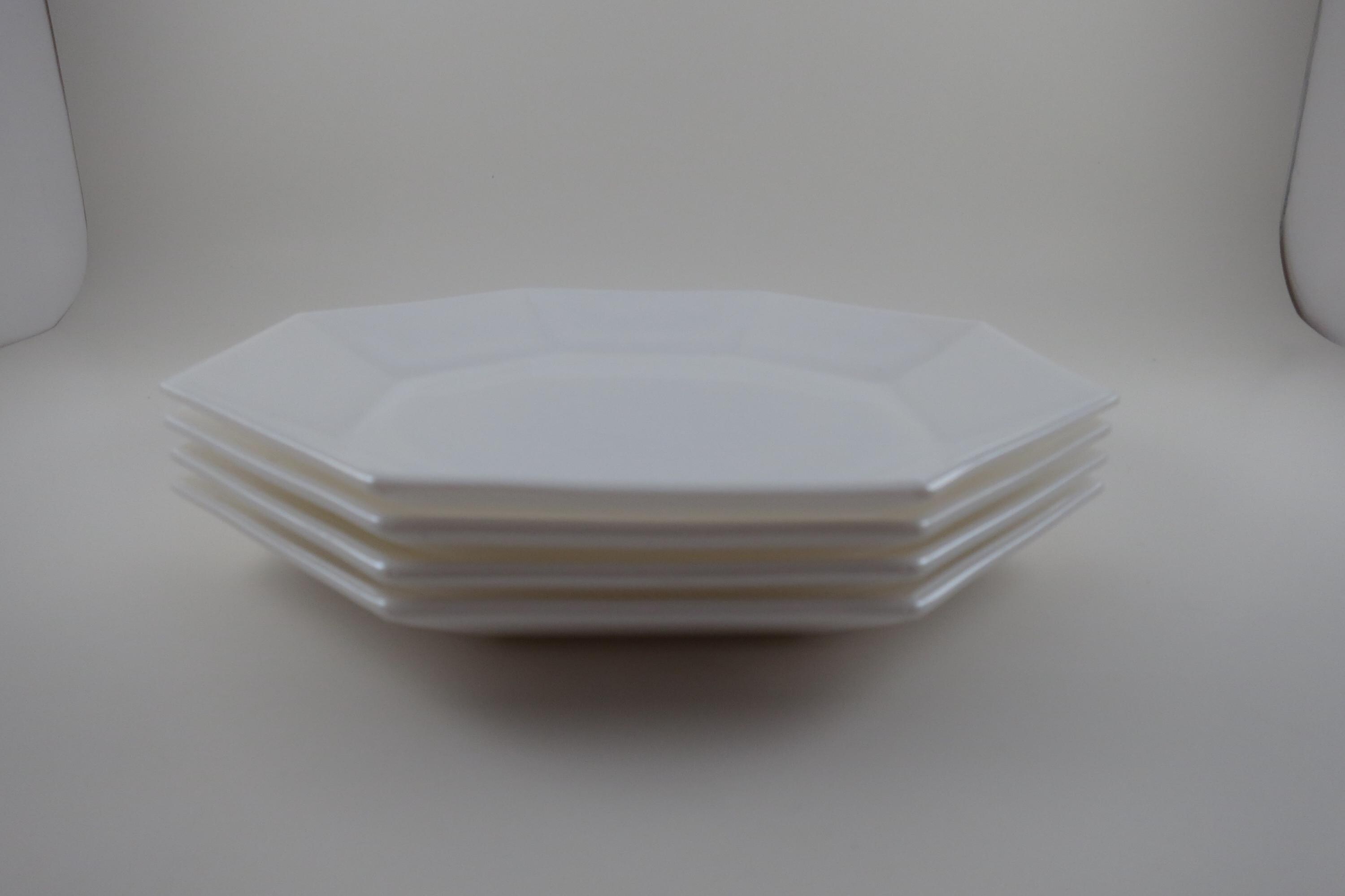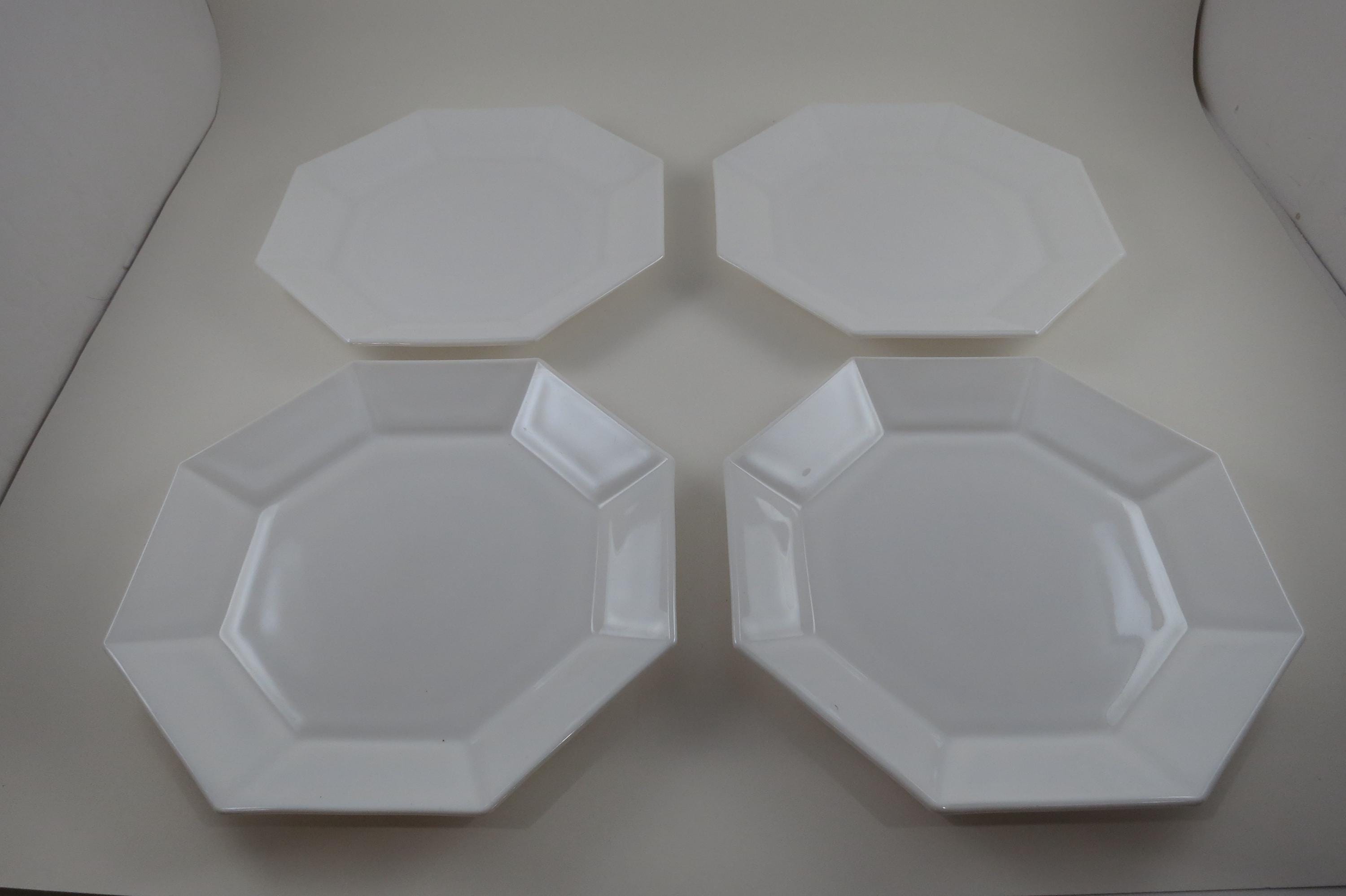Set of Four Arcoroc France Octime White 7 1/4 Inch Hard Edge Salad Plates.