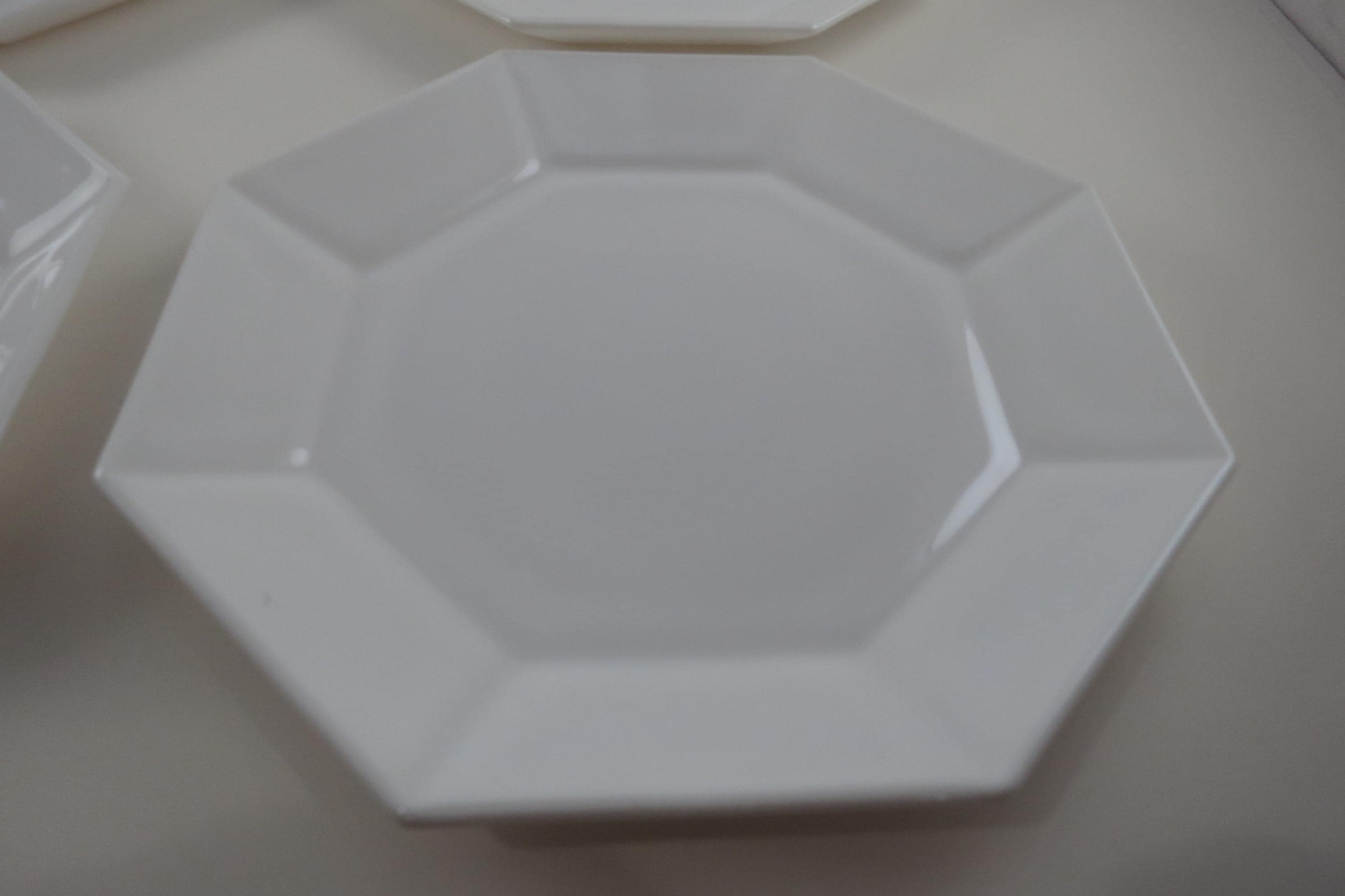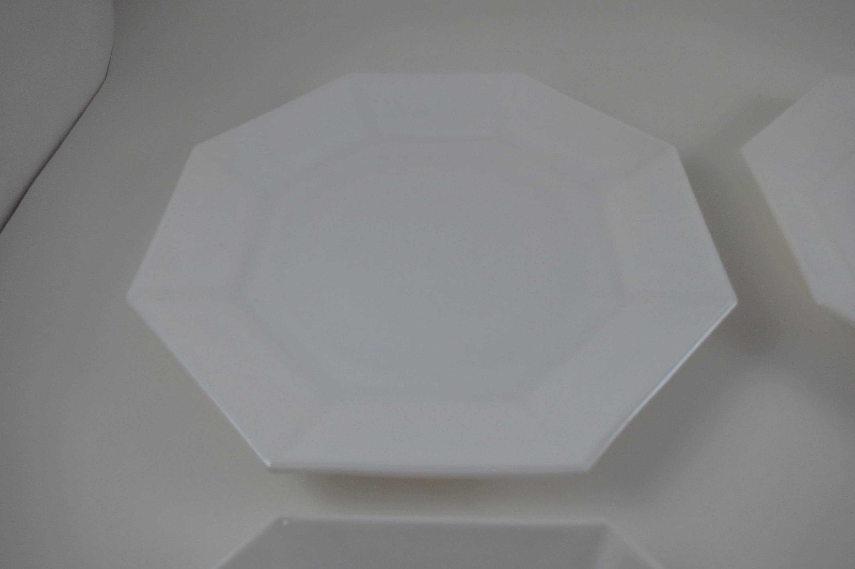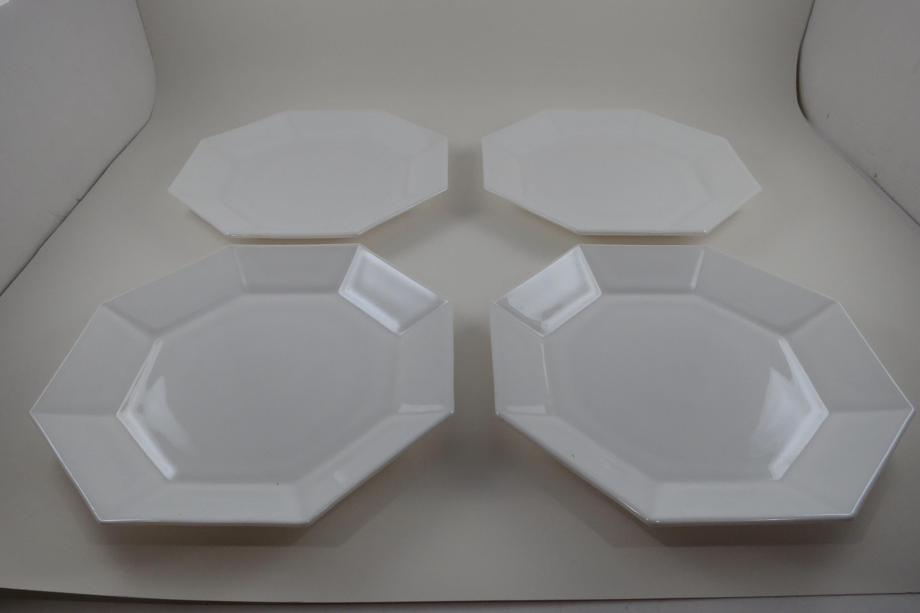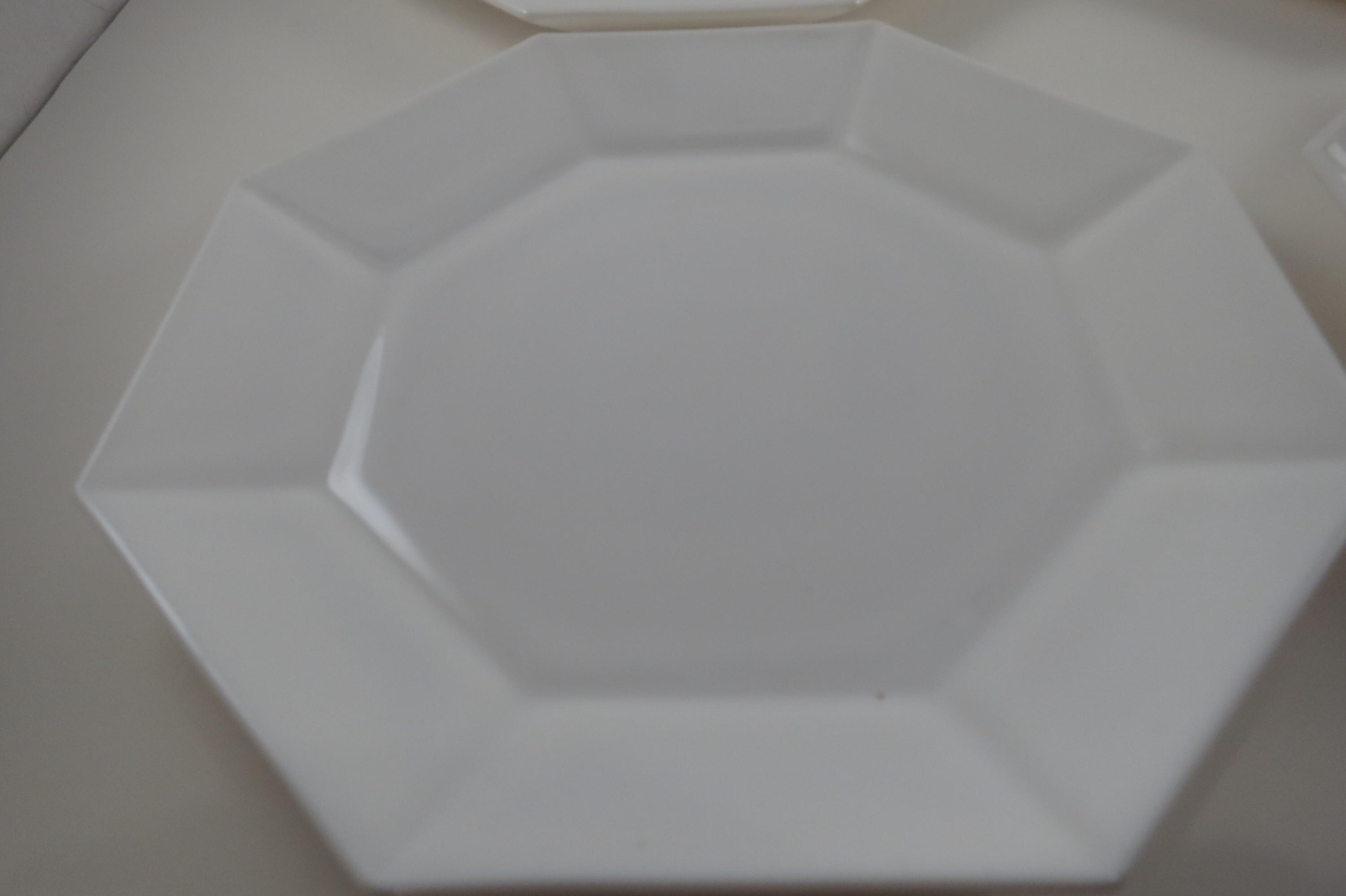 Set of Four Arcoroc France Octime White 7 1/4 Inch Hard Edge Salad Plates.