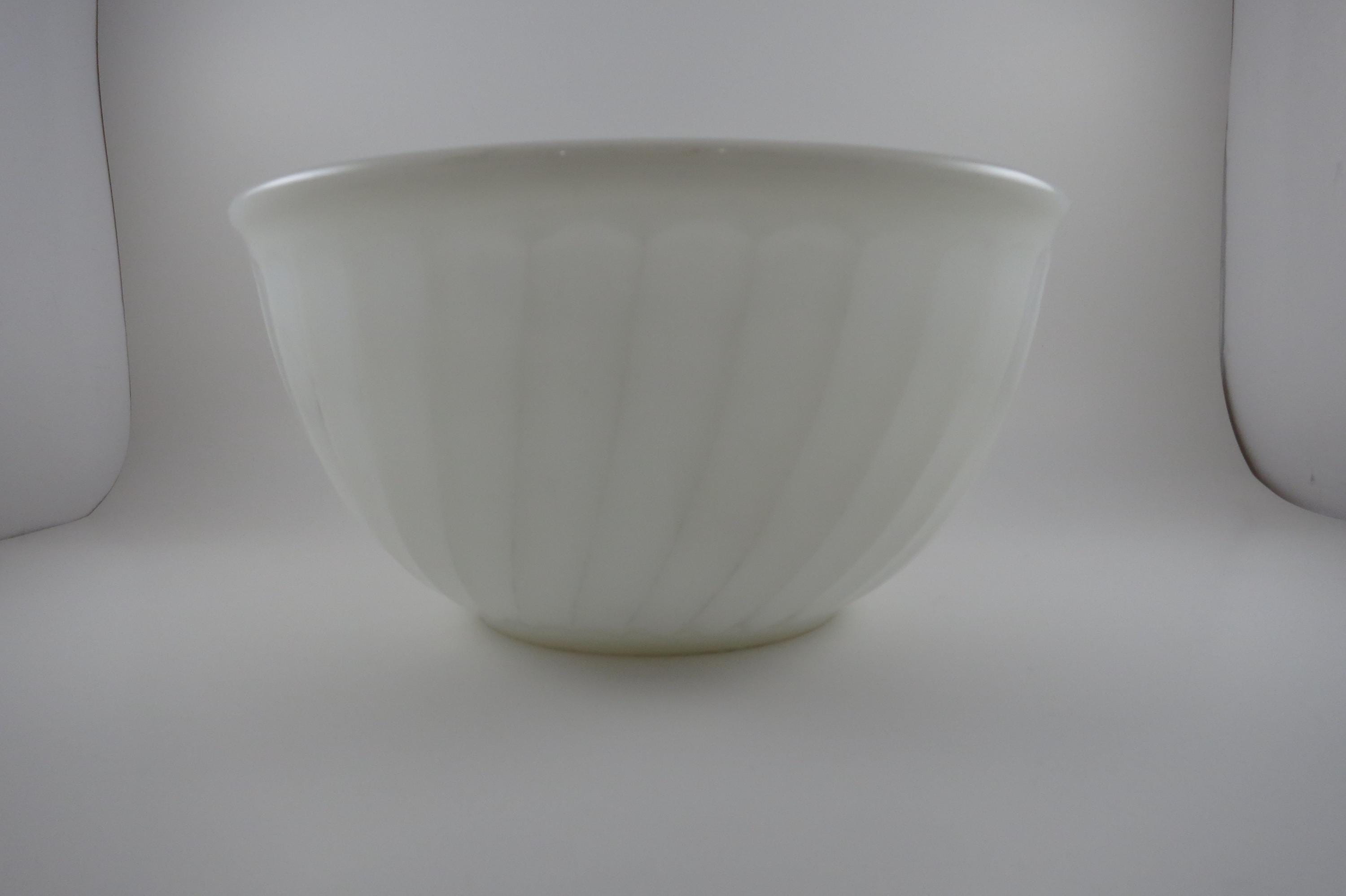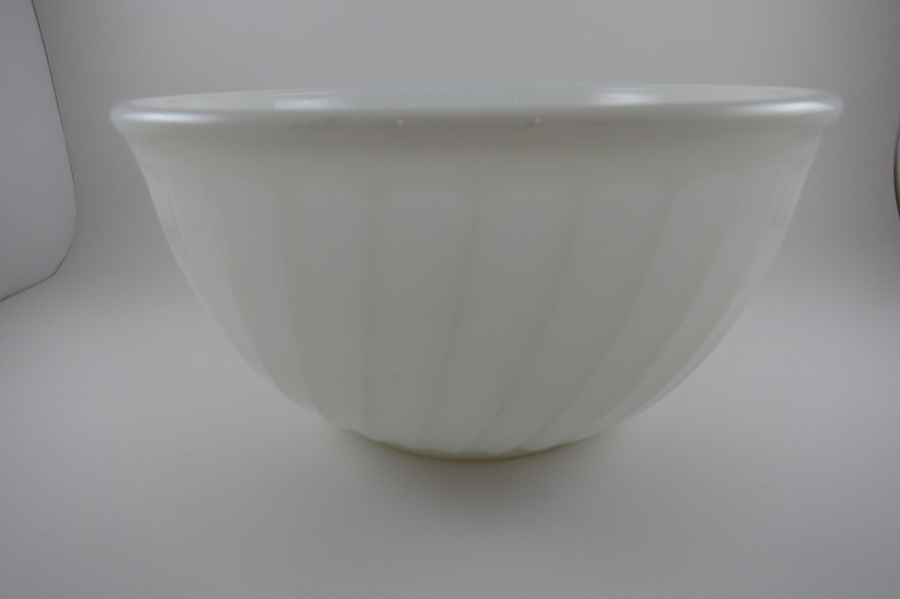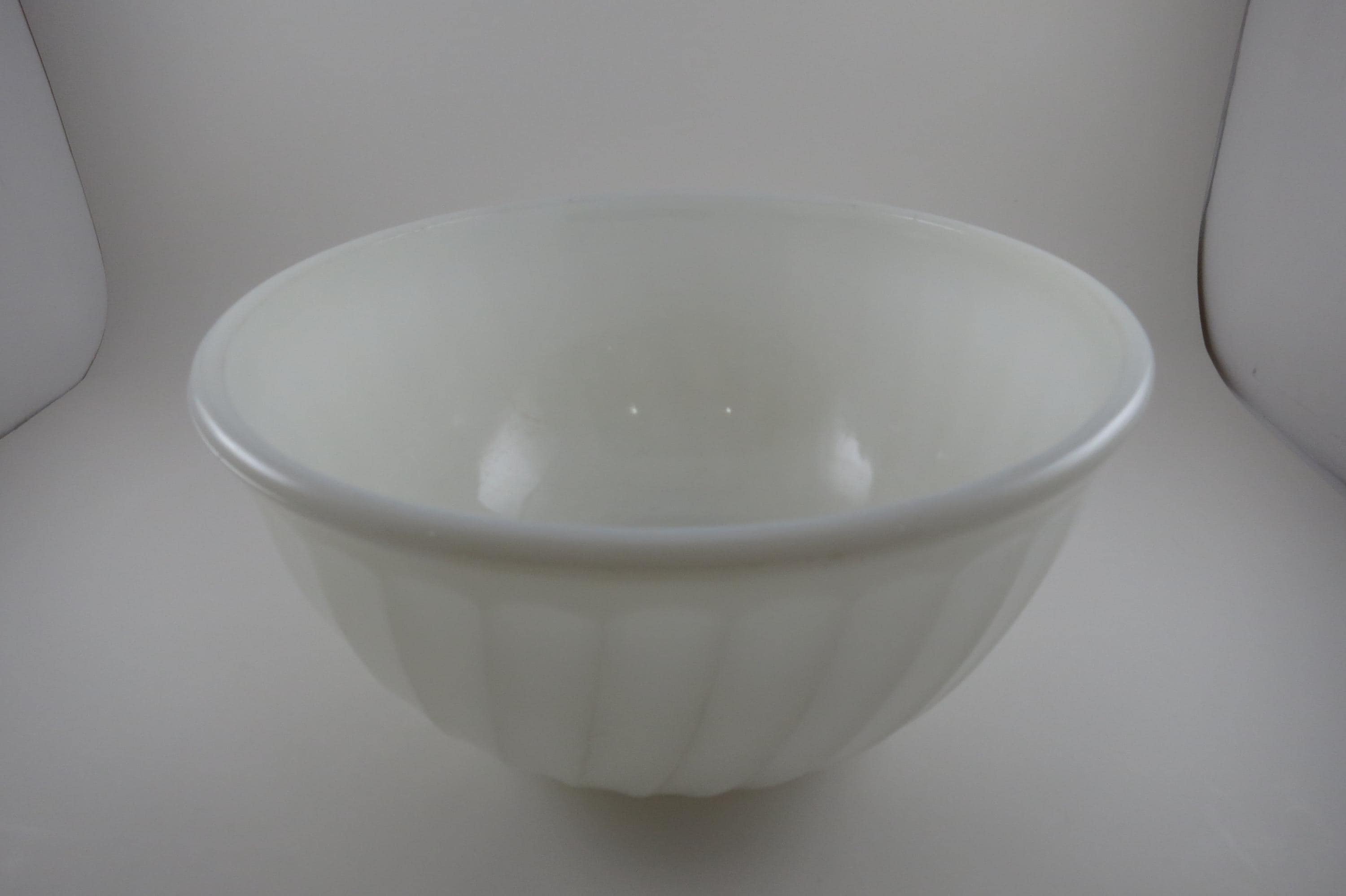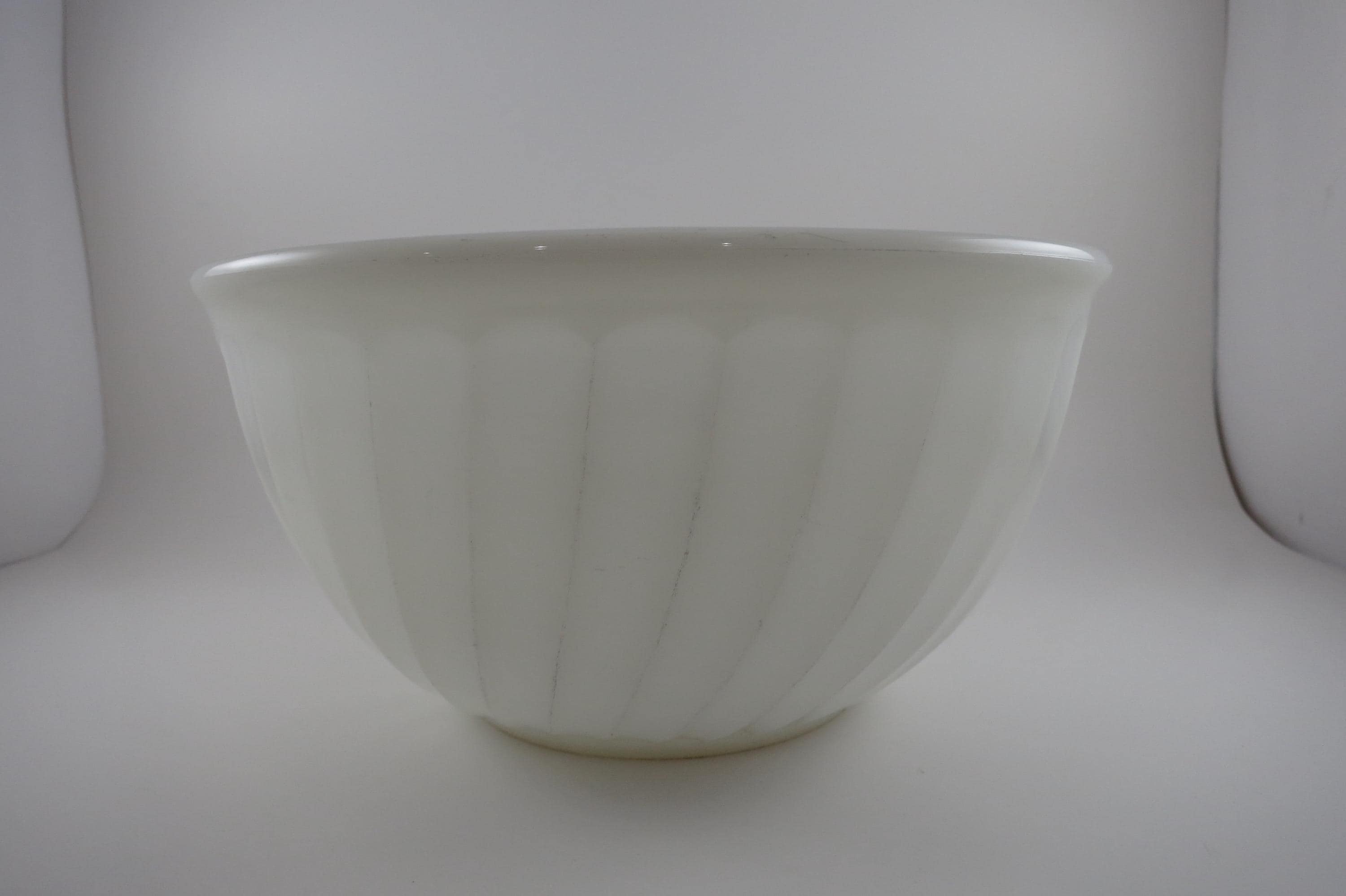 Vintage Fire King Oven Ware #18 Milk Glass Ribbed White Opal Mixing Bowl.