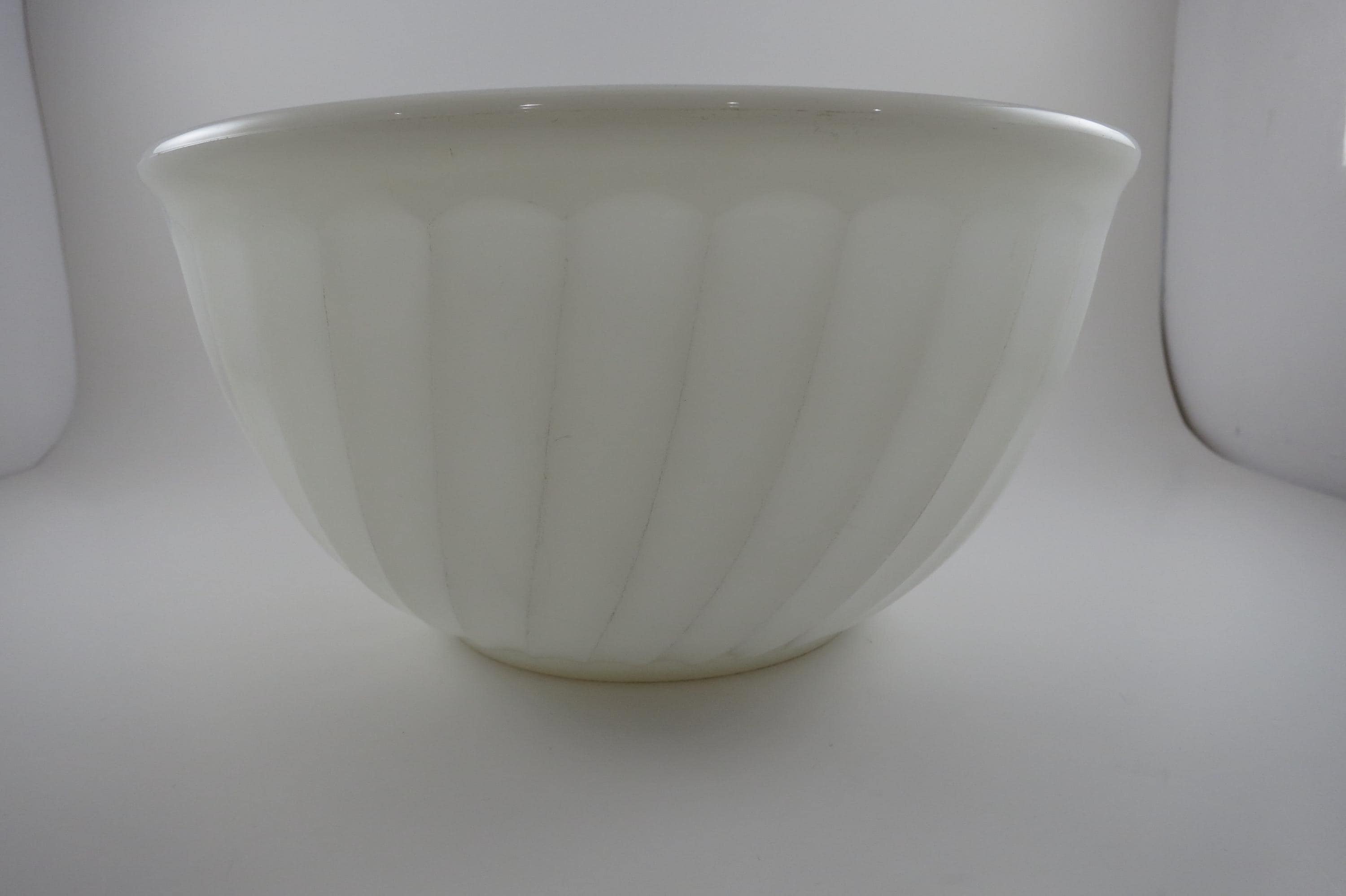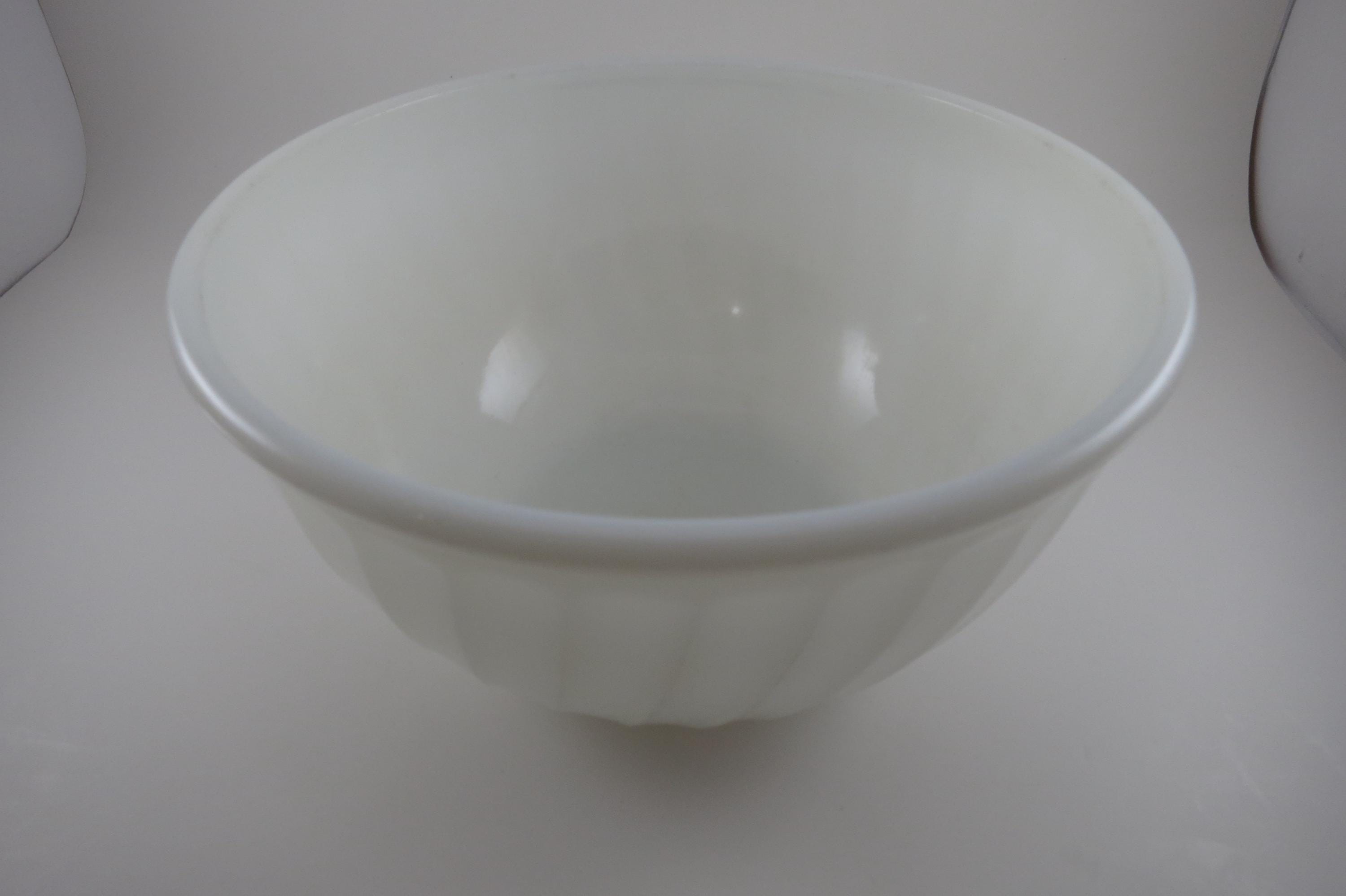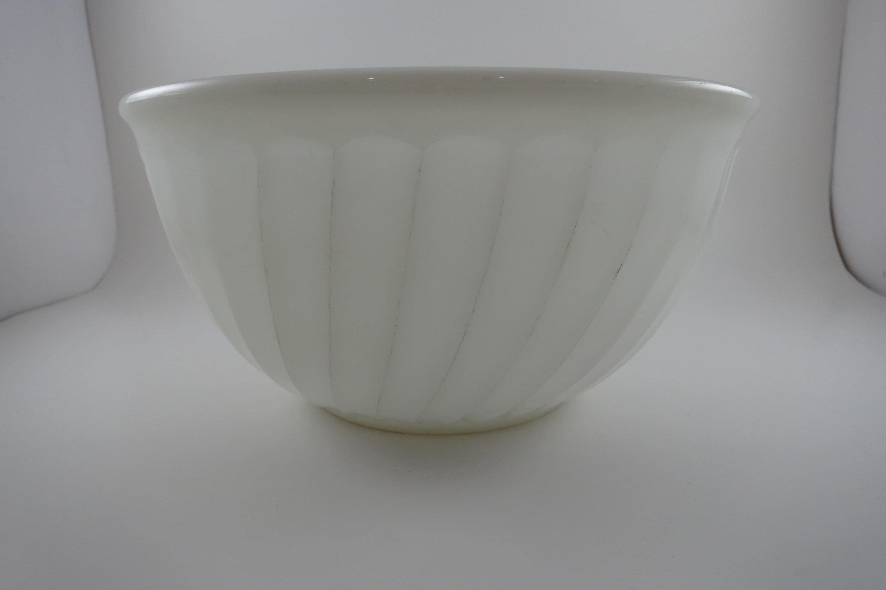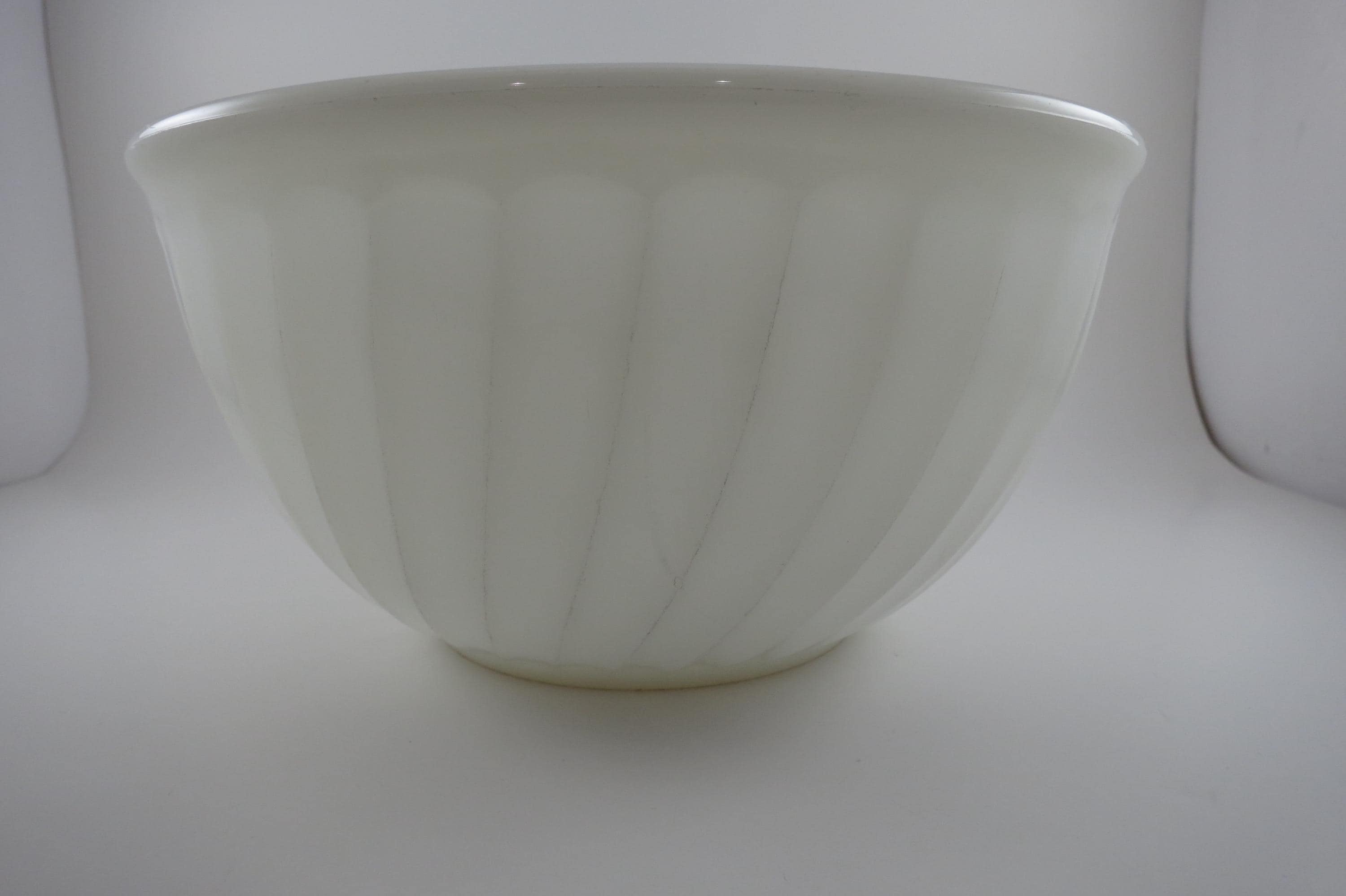 Vintage Fire King Oven Ware #18 Milk Glass Ribbed White Opal Mixing Bowl.