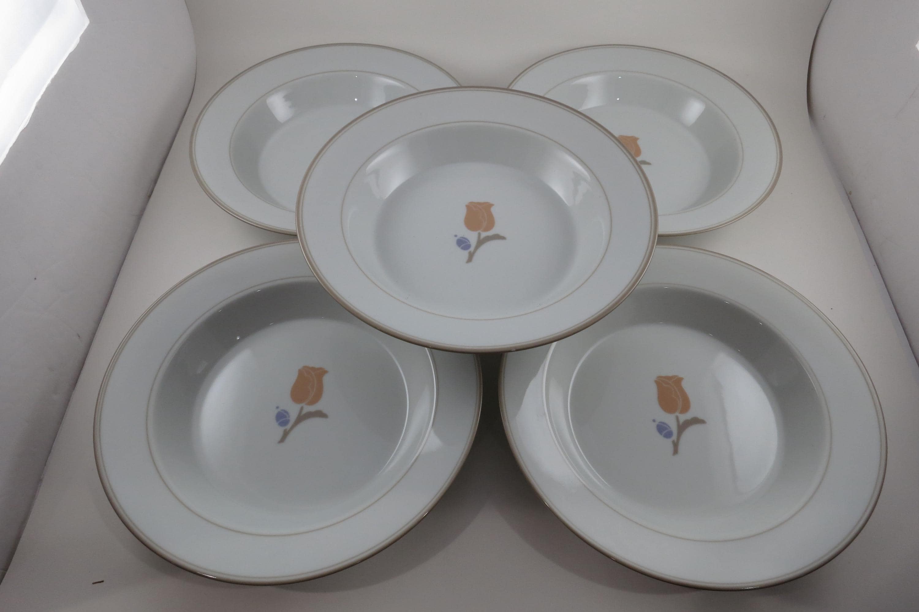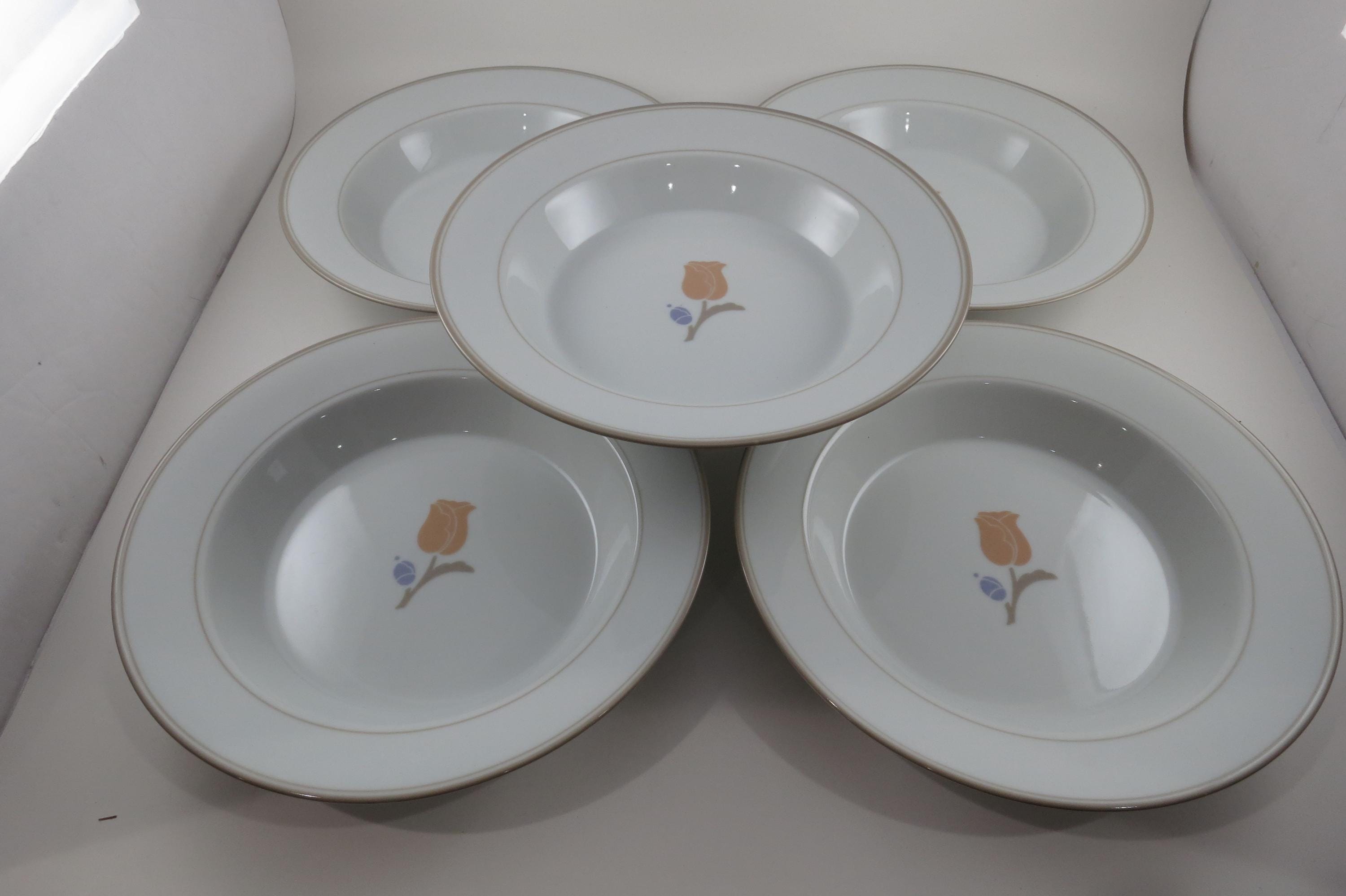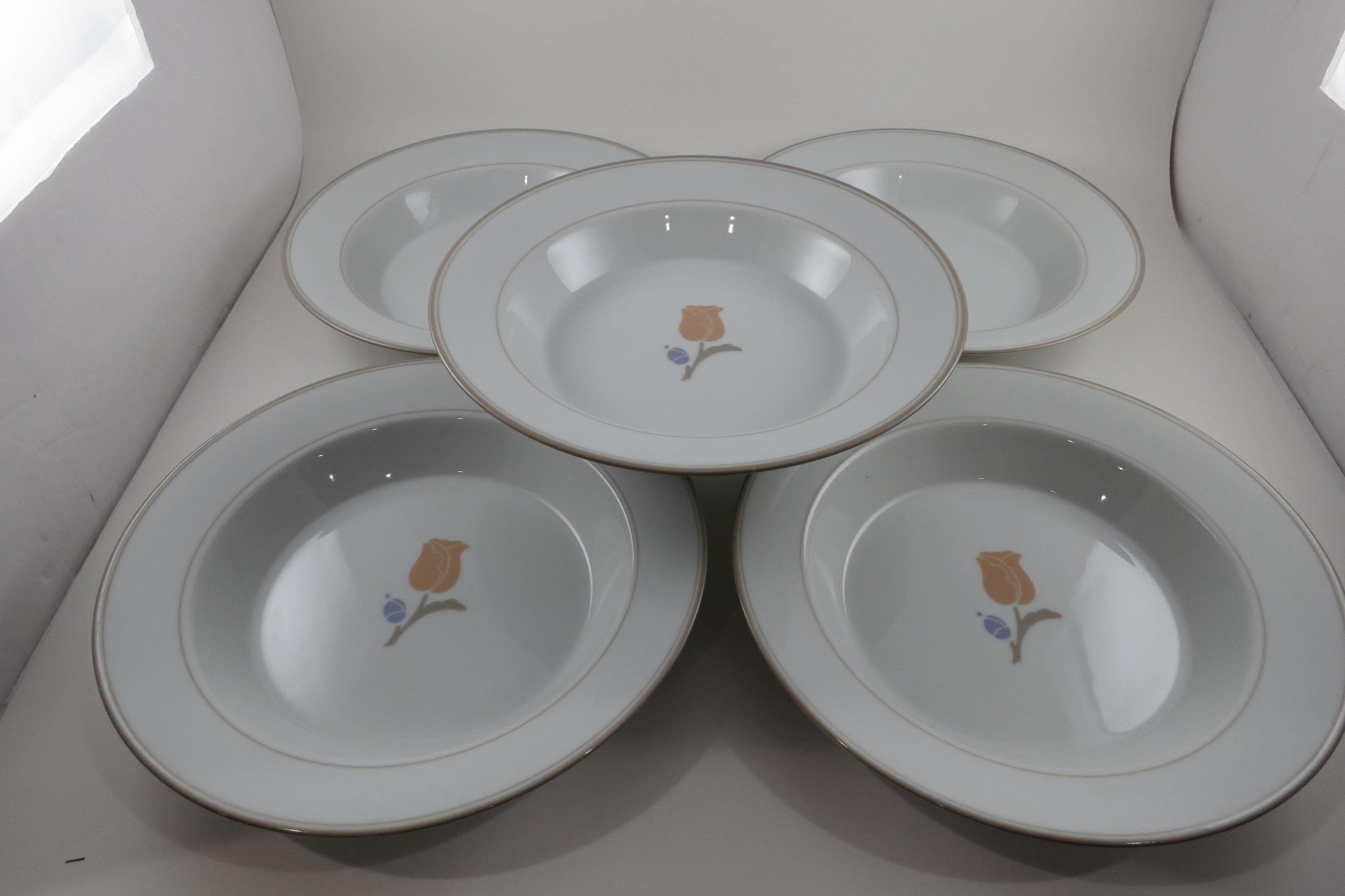 Set of Five Vintage Dansk La Tulipe Taupe 8 3/4 Inch Rim Soup Bowls