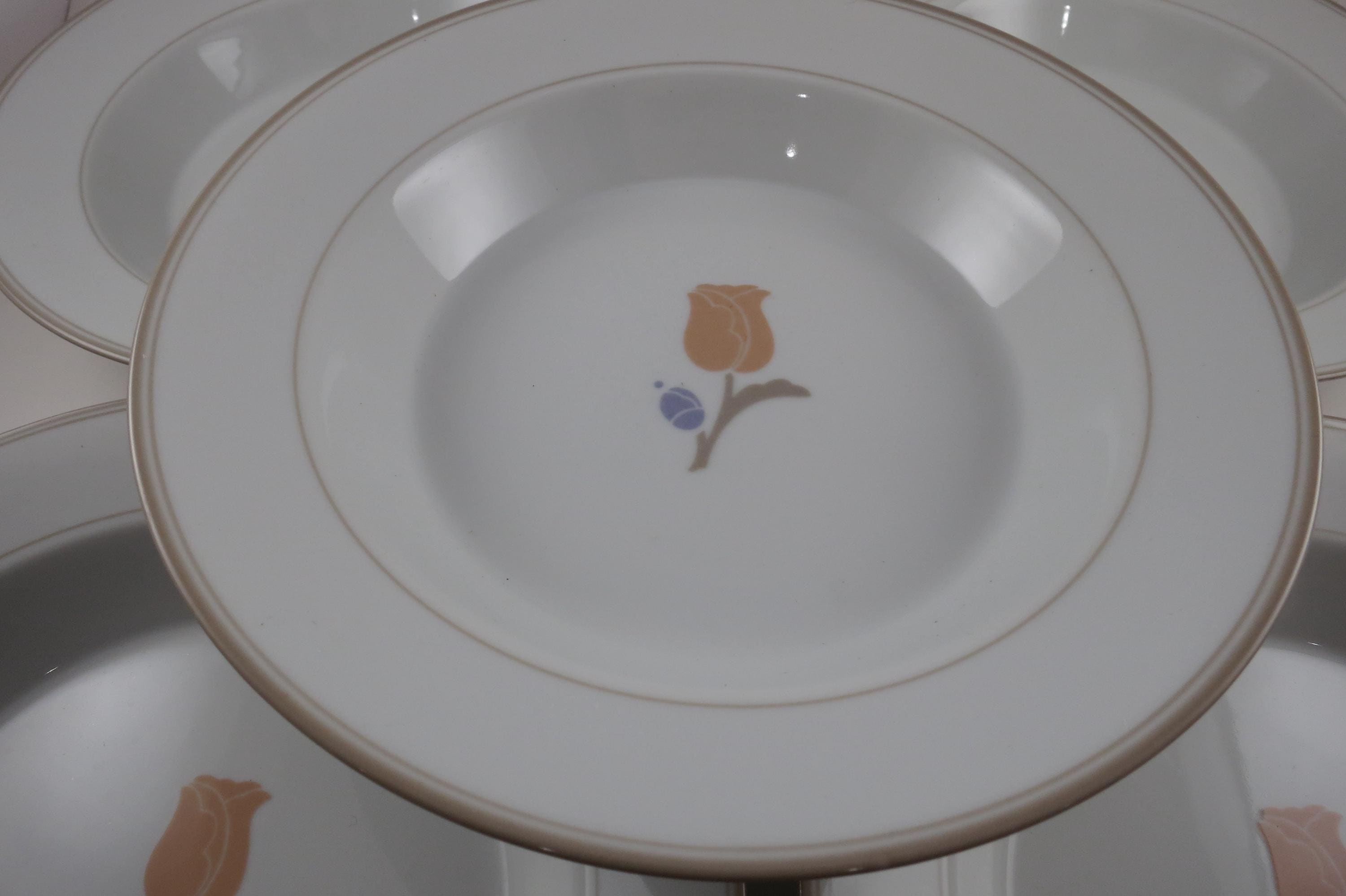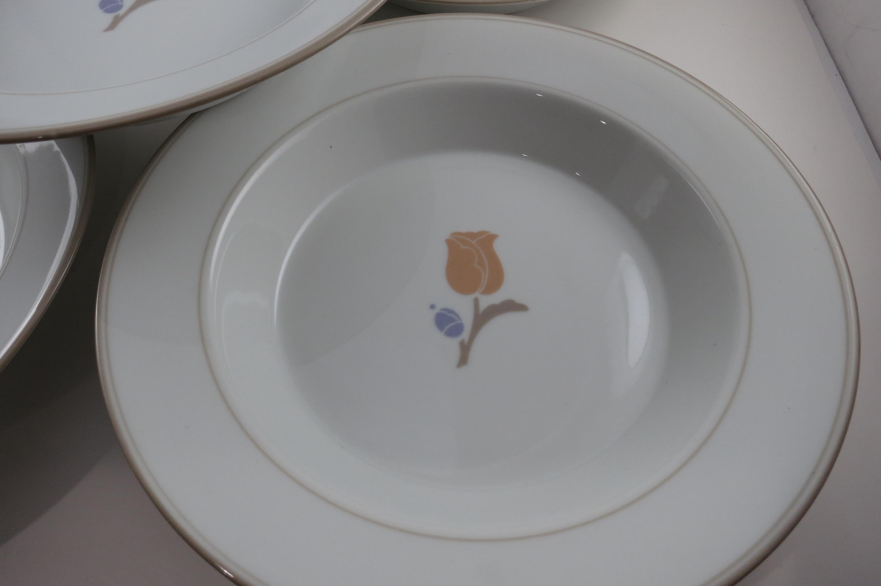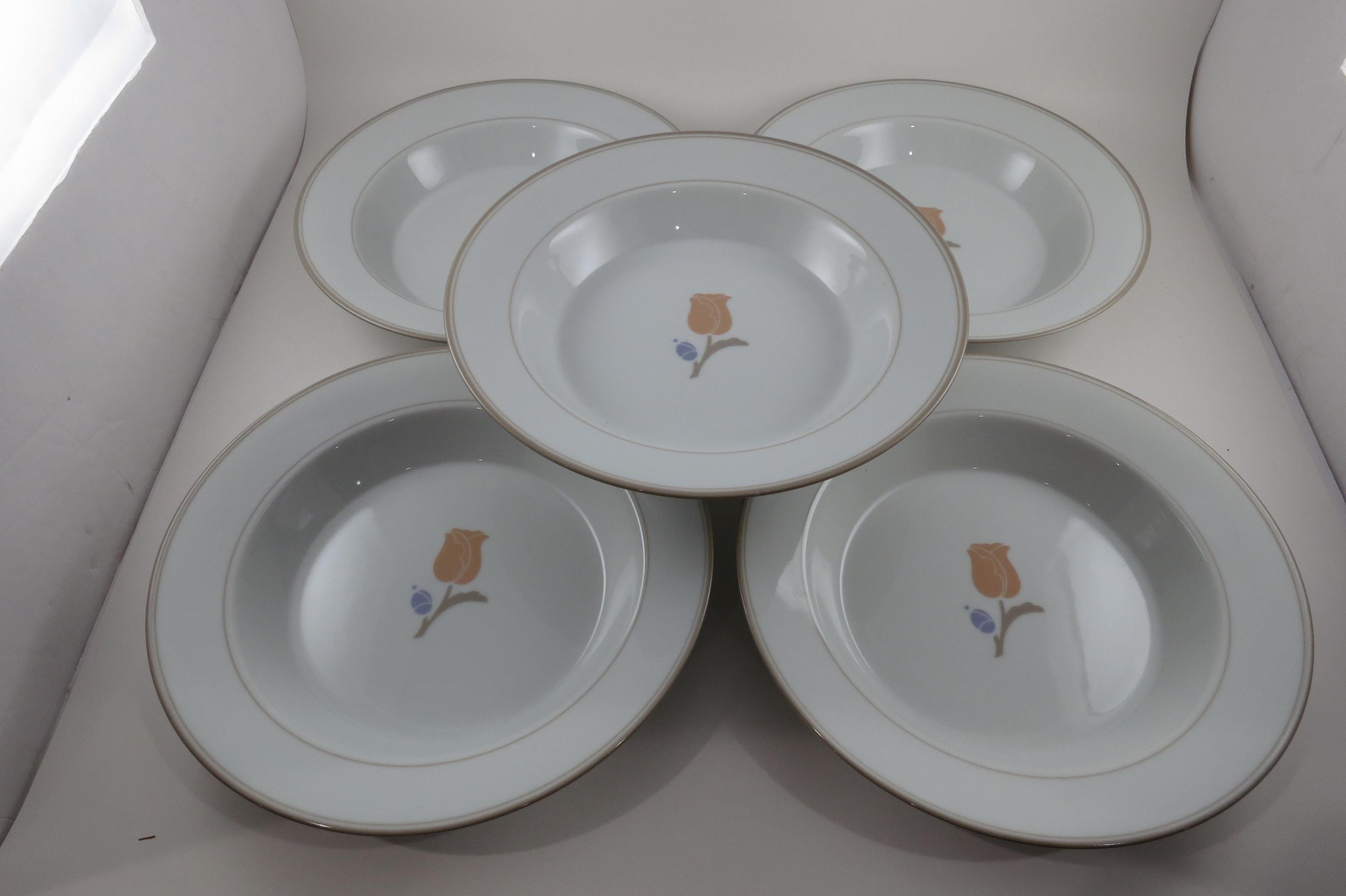 Set of Five Vintage Dansk La Tulipe Taupe 8 3/4 Inch Rim Soup Bowls