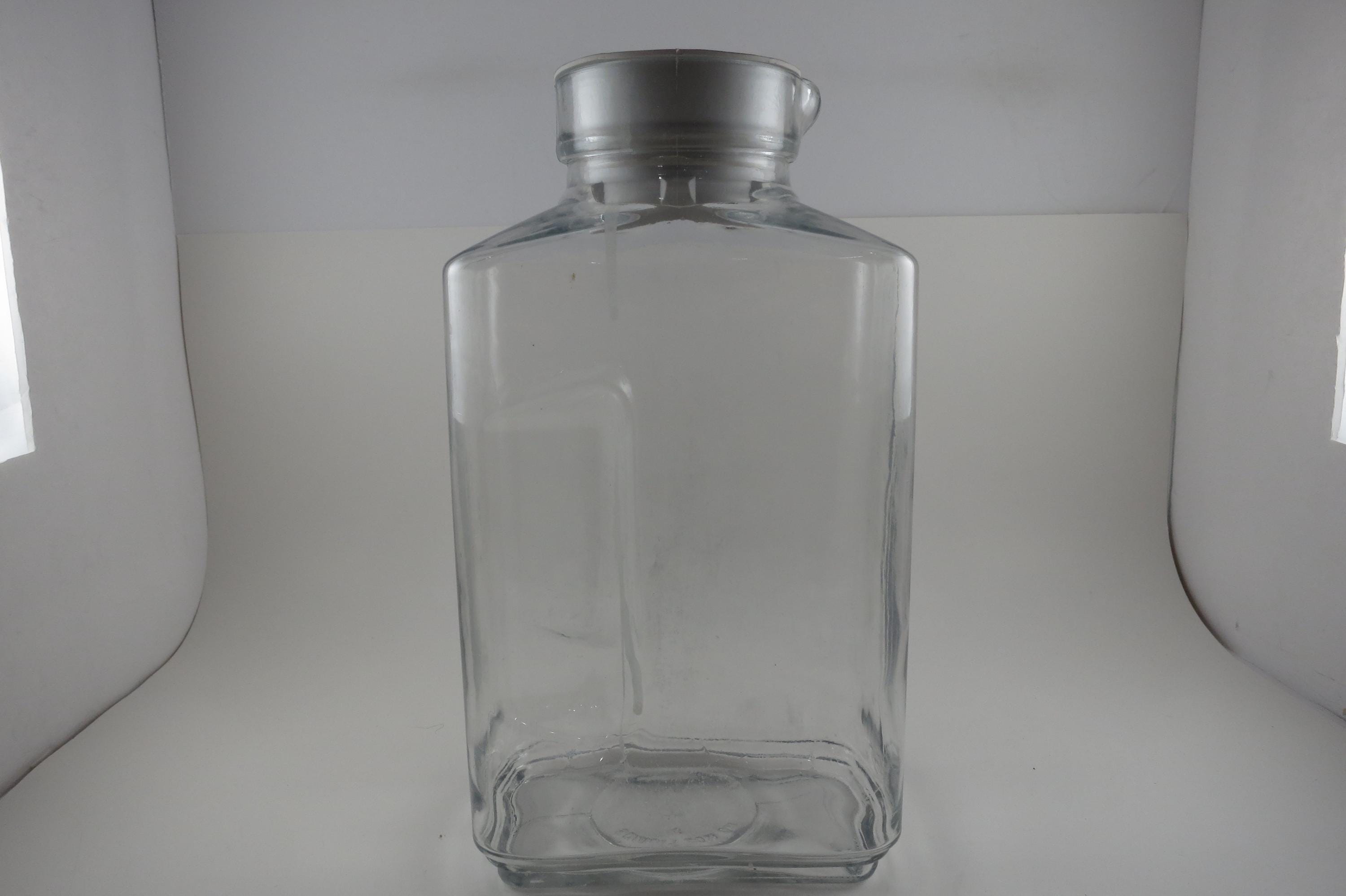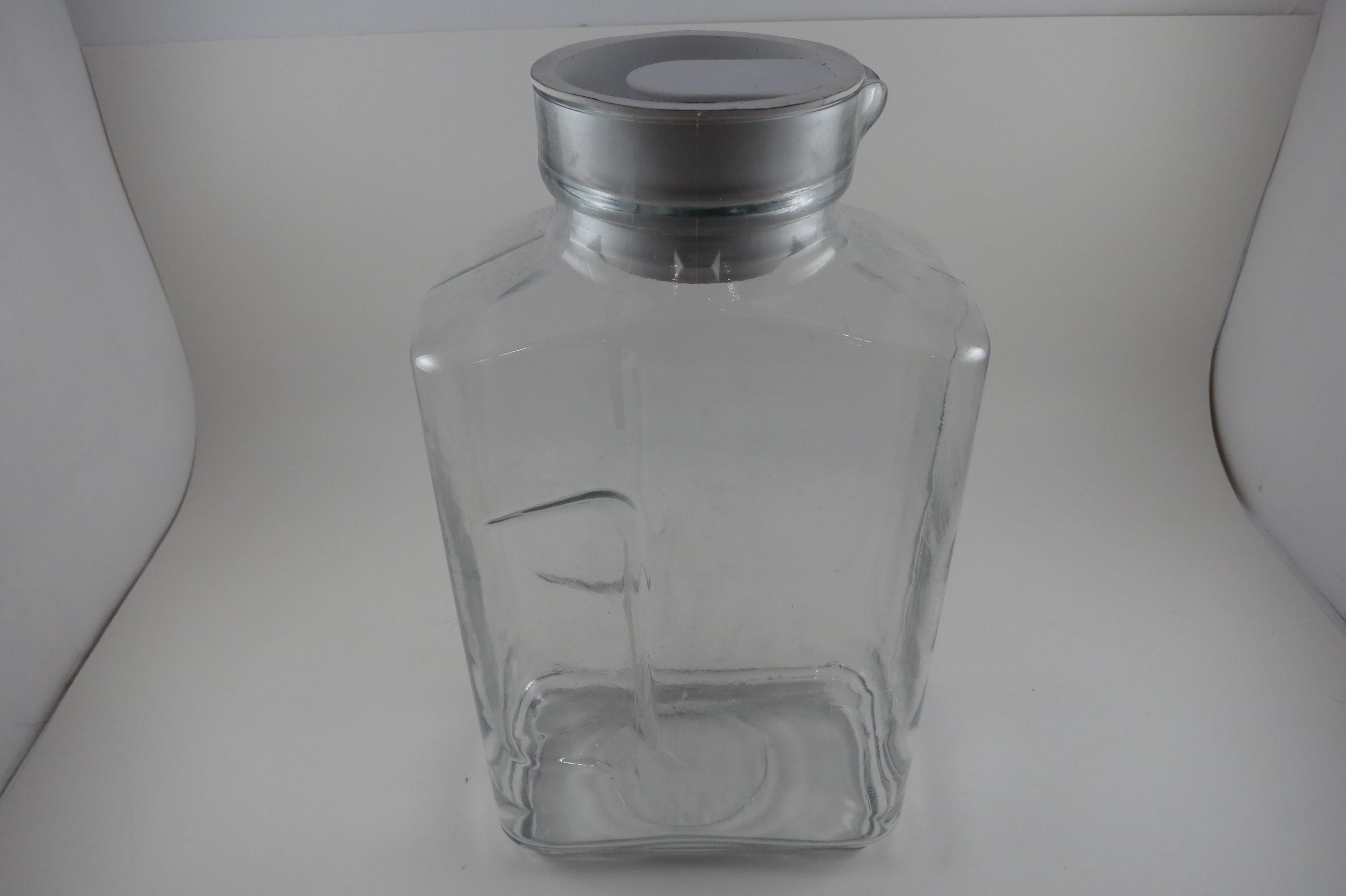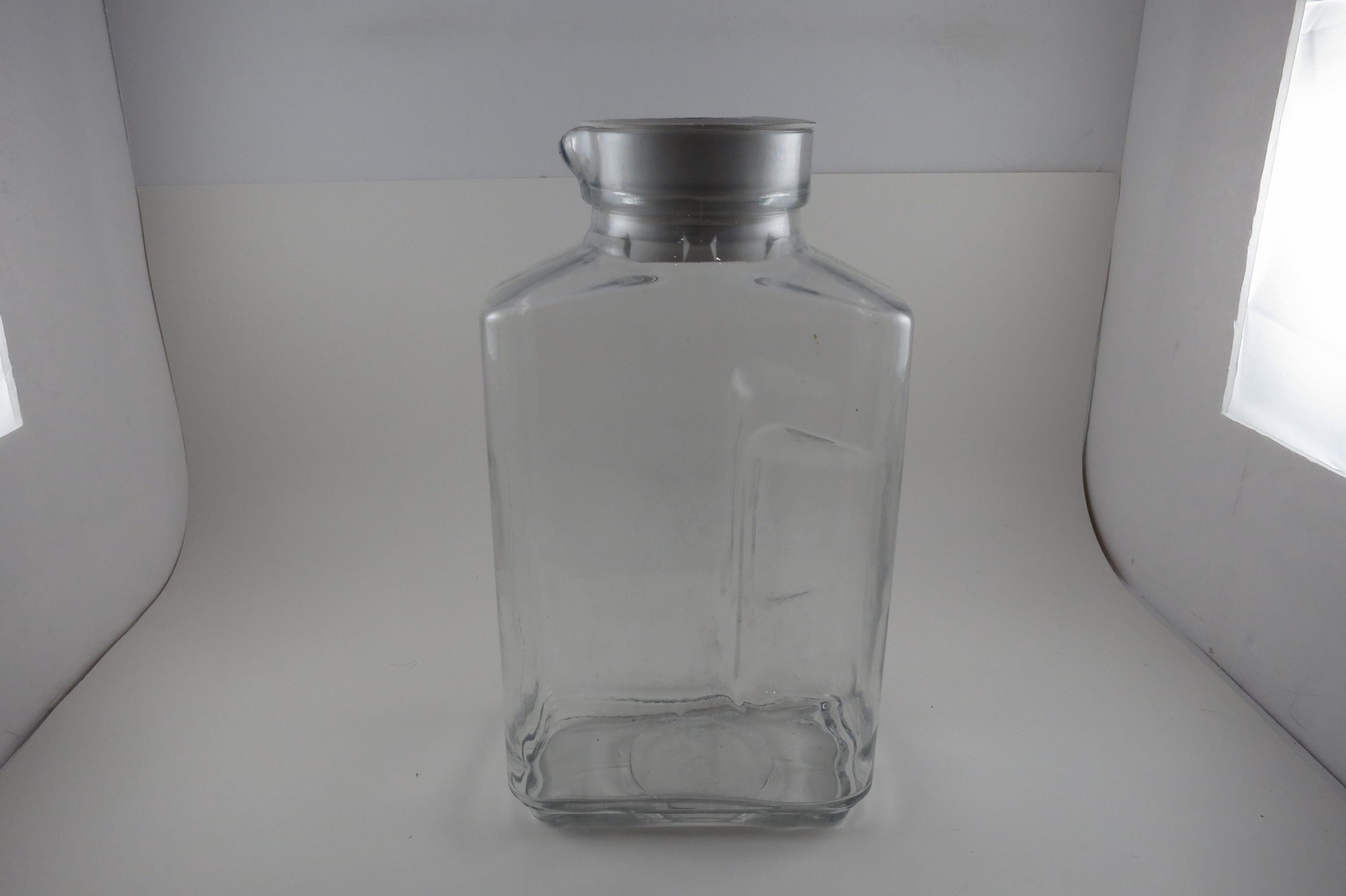 Vintage Anchor Hocking Ribbed Glass Juice/Water Jar with Original White Lid 2 Liter Excellent Original Condition. Measures 10 1/2 Inches Tall and 5 1/2 inches wide. Excellent Condition with No chips, cracks or damages.