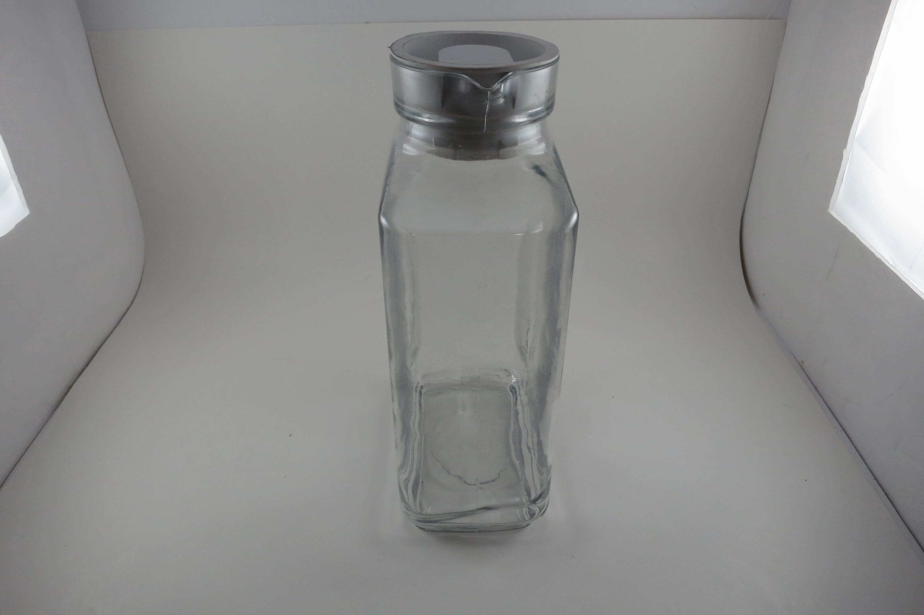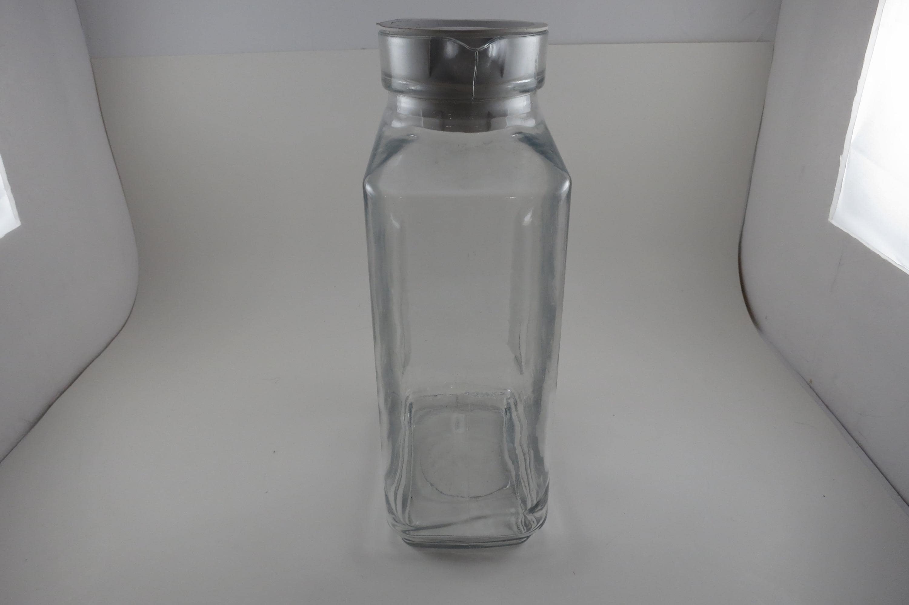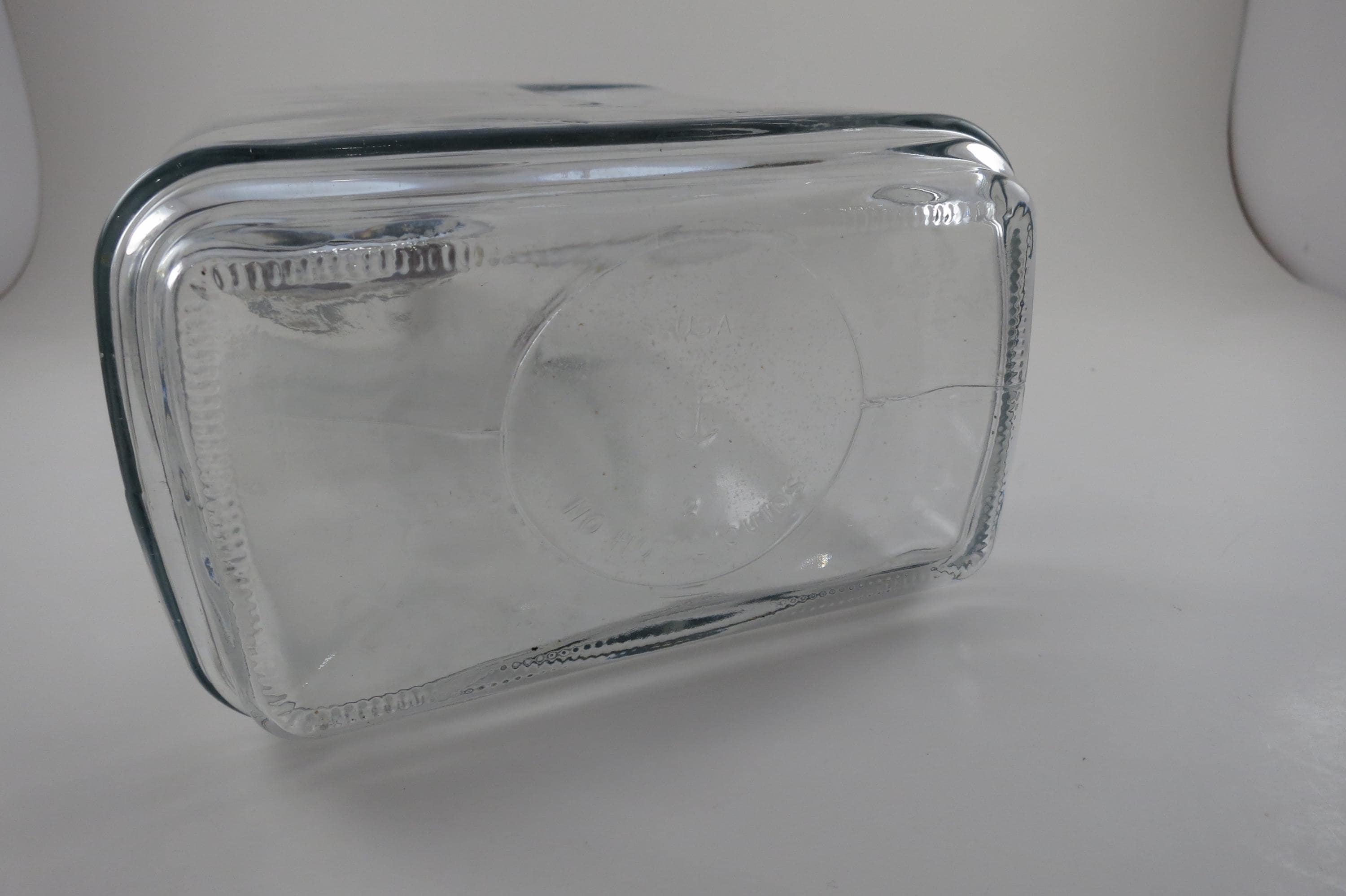 Vintage Anchor Hocking Ribbed Glass Juice/Water Jar with Original White Lid 2 Liter Excellent Original Condition. Measures 10 1/2 Inches Tall and 5 1/2 inches wide. Excellent Condition with No chips, cracks or damages.