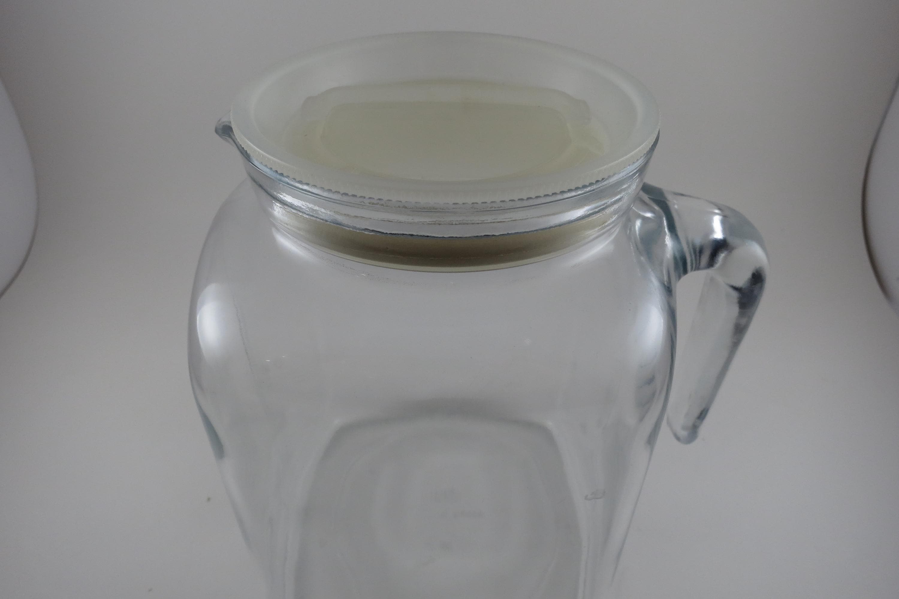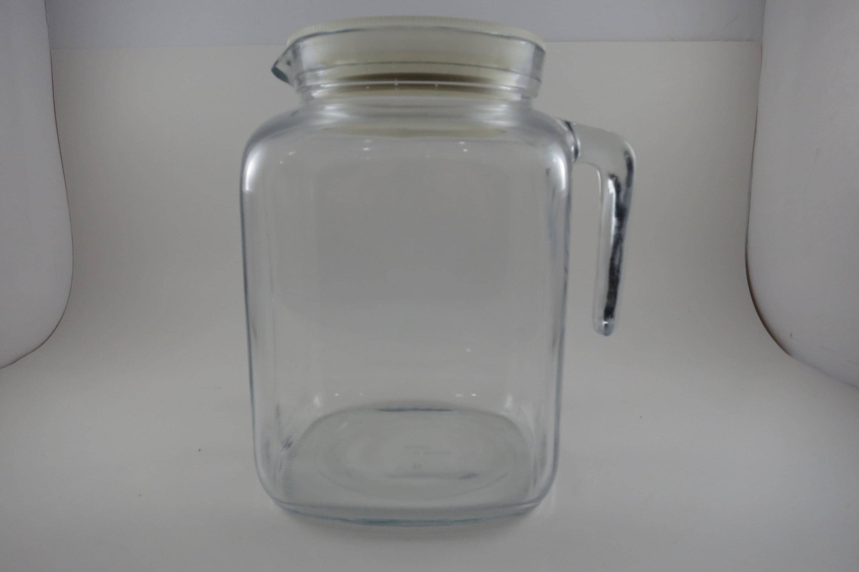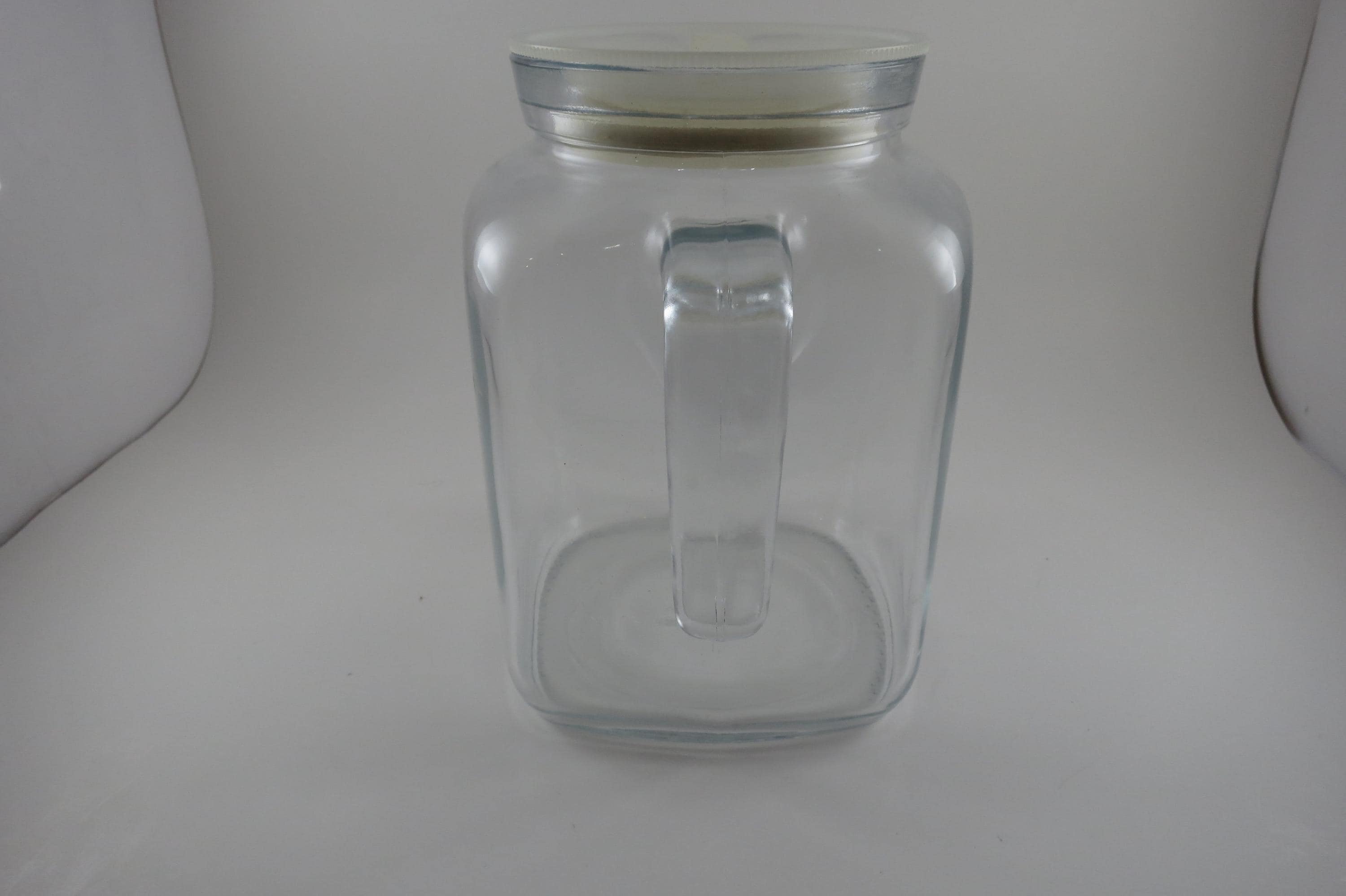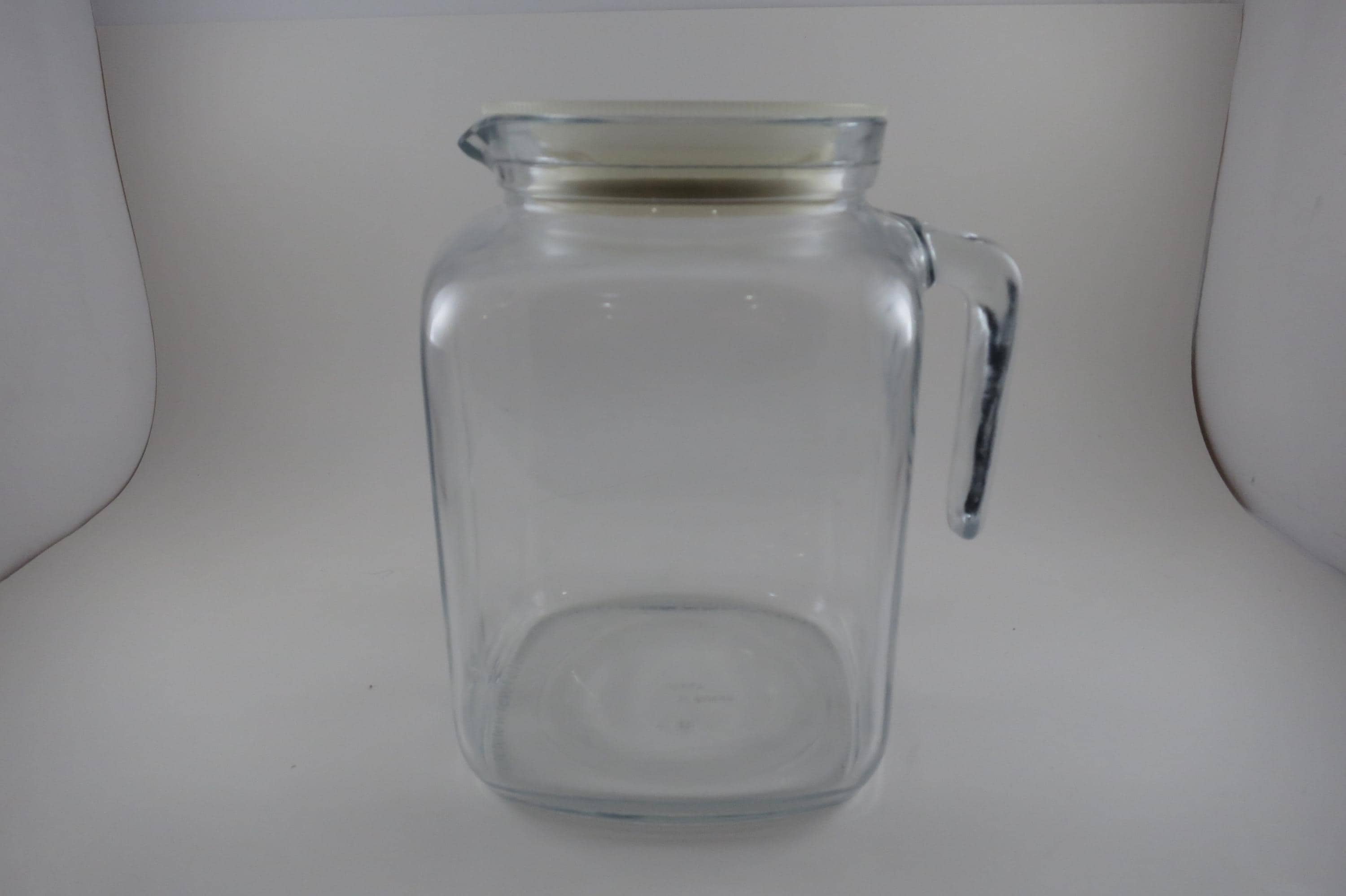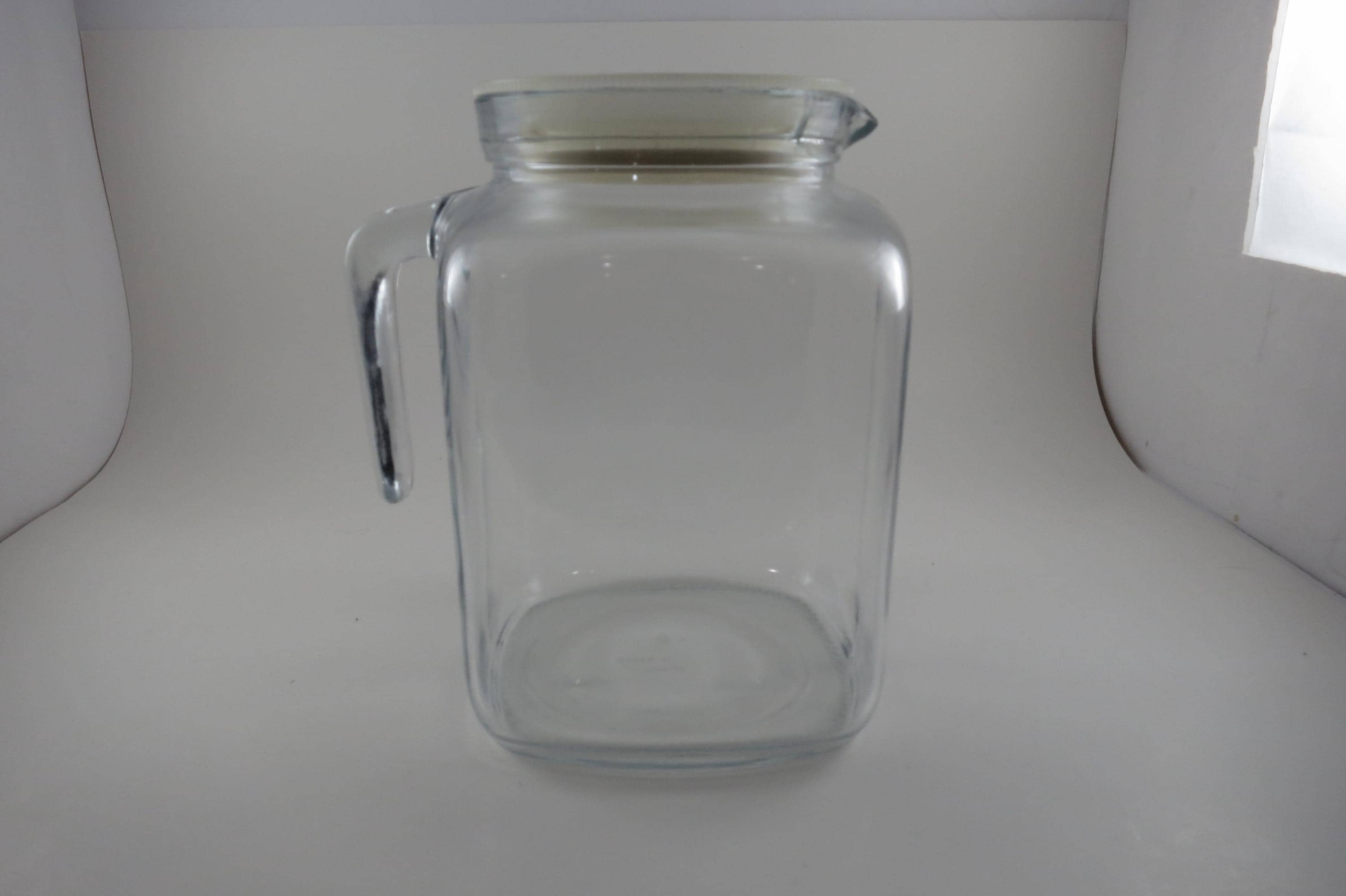 Vintage 7 1/2 Inch Bormioli Italian Square Pitcher with Seal Tight Lid and Handle. Measures 7 1/2 Inches tall. Sealing White Lid. Excellent Condition with No chips, cracks or damages.
