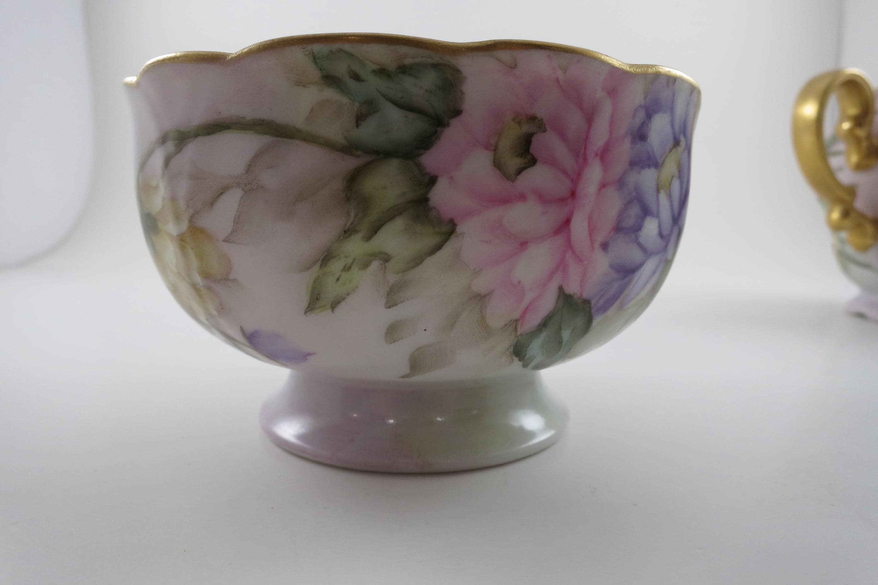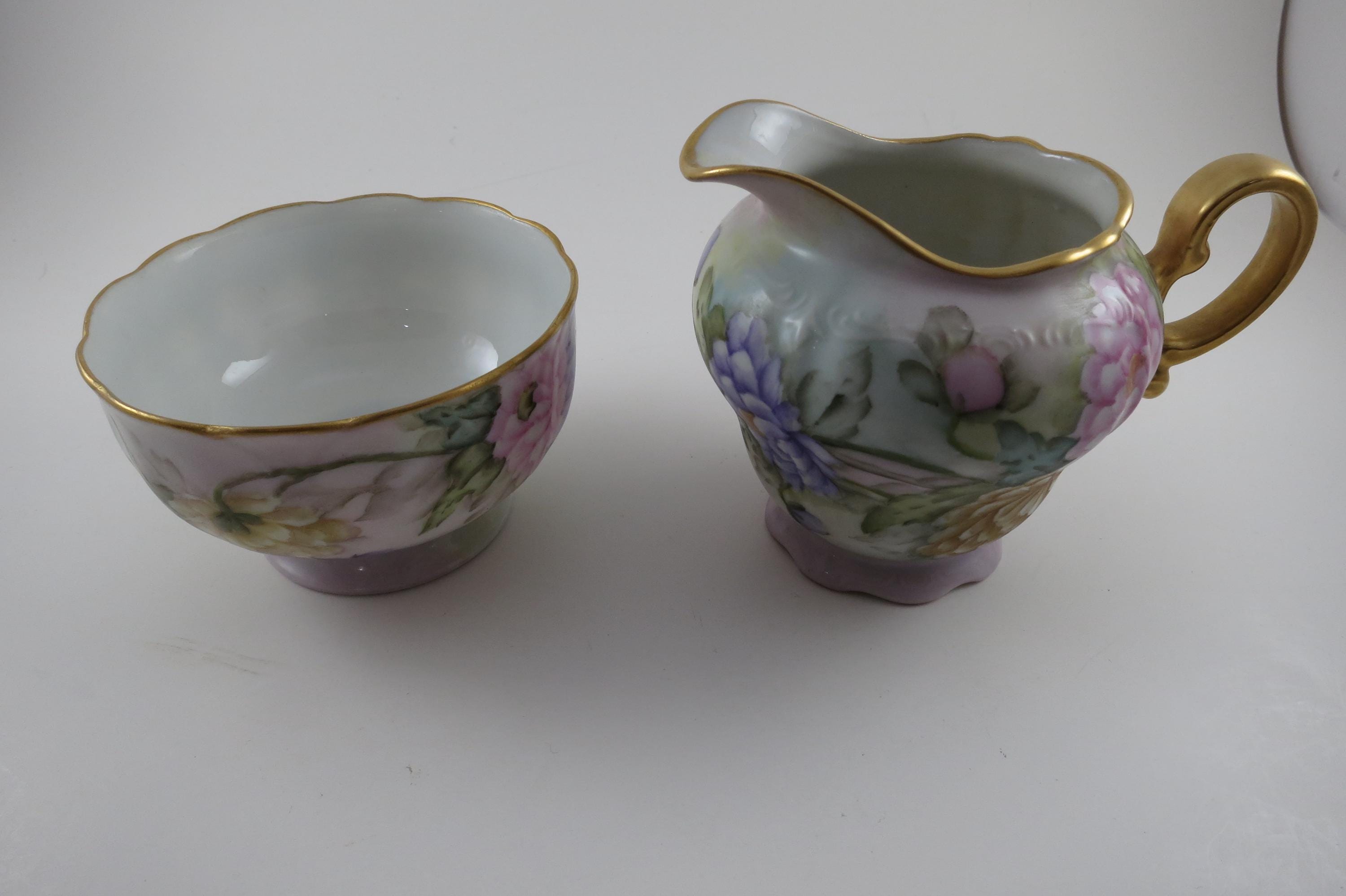 Vintage Plankenhammer Floss Bavaria Germany Hand Painted Cream and Open Sugar Set
