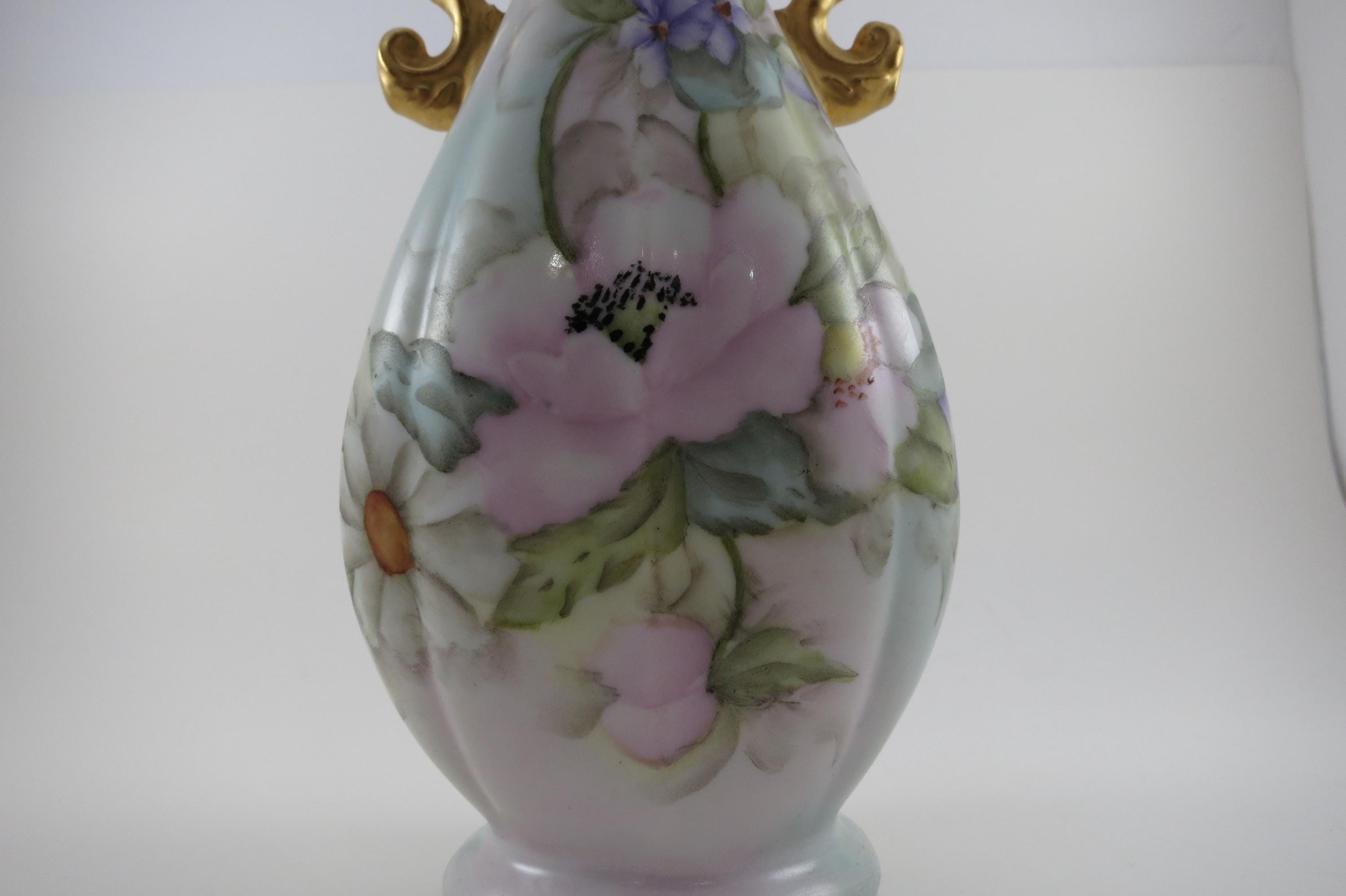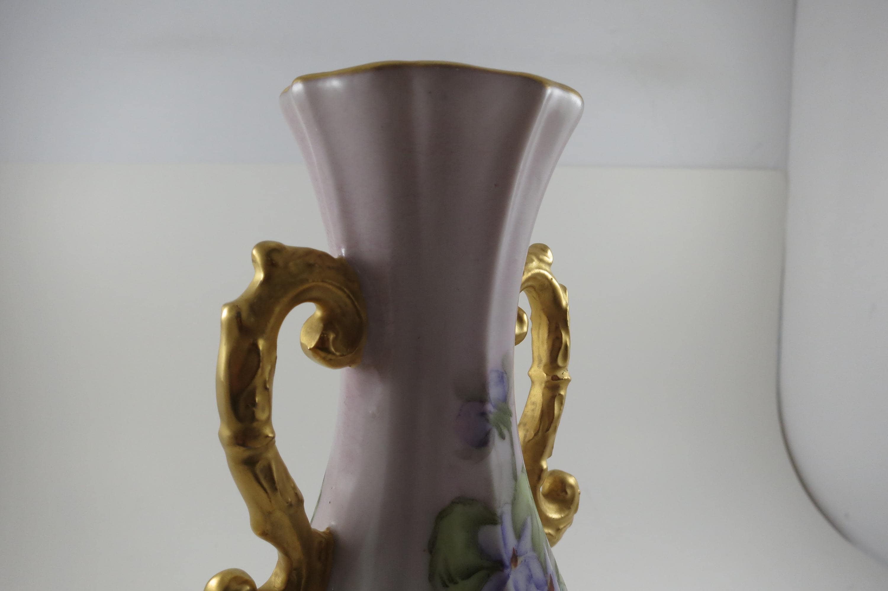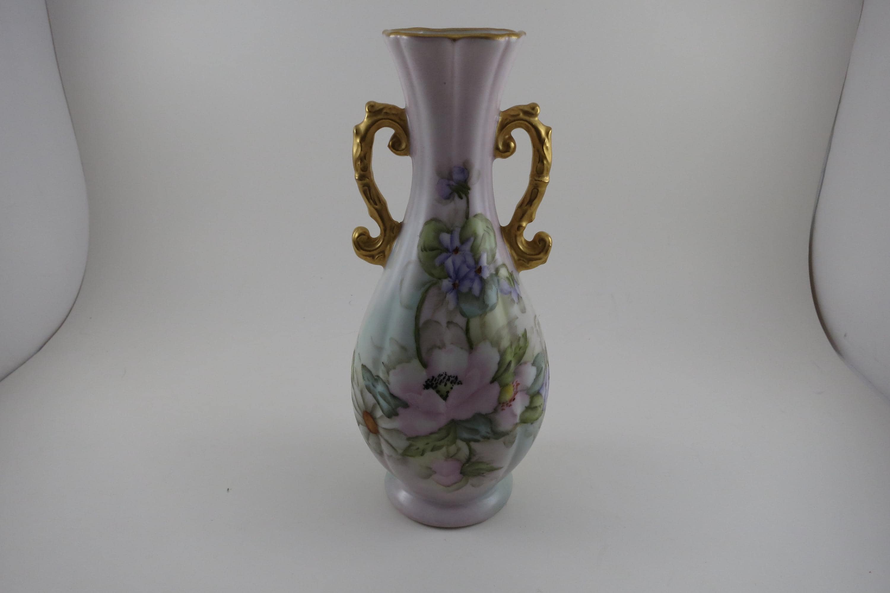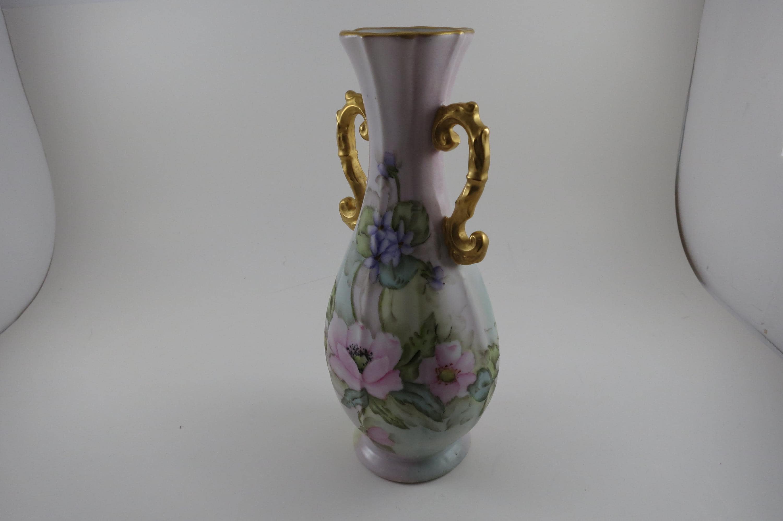 Vintage Plankenhammer Floss Bavaria Germany Hand Painted Double Handled Vase