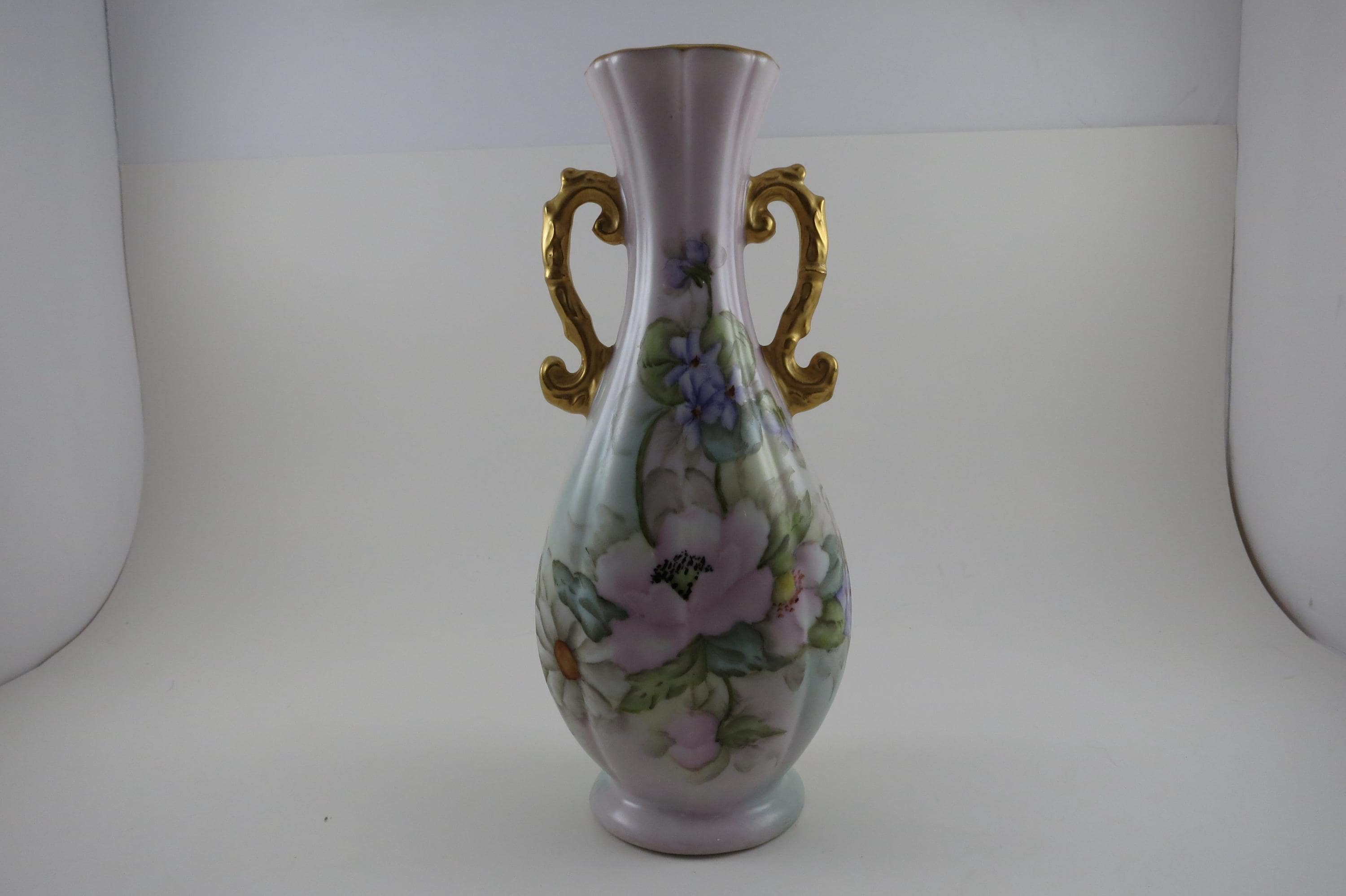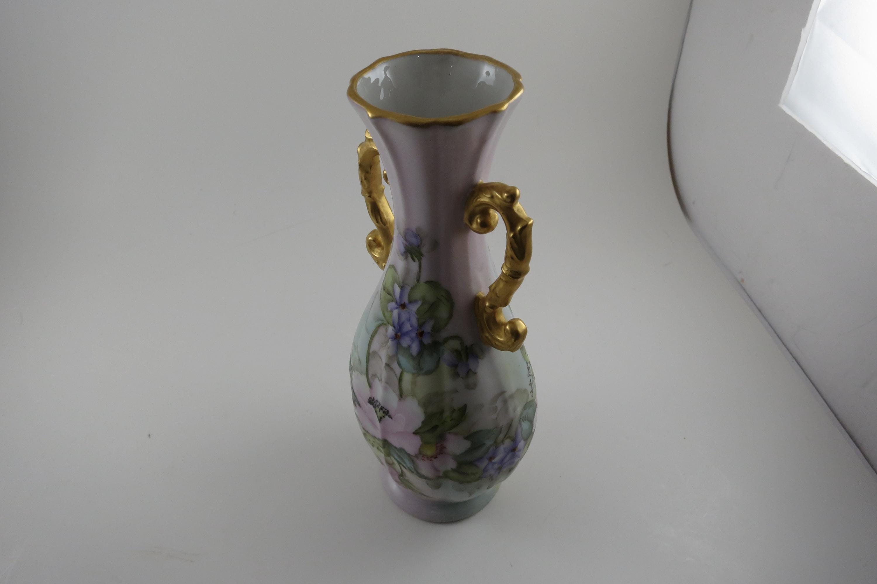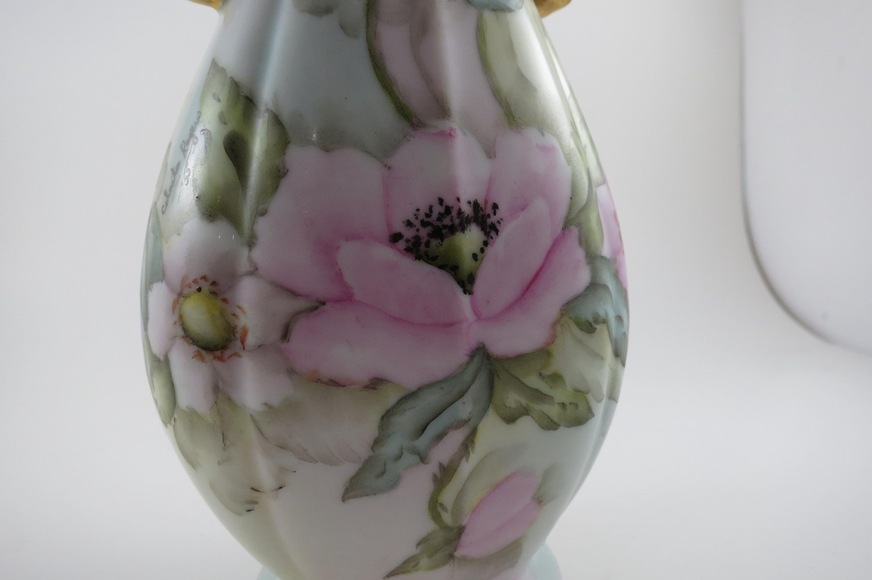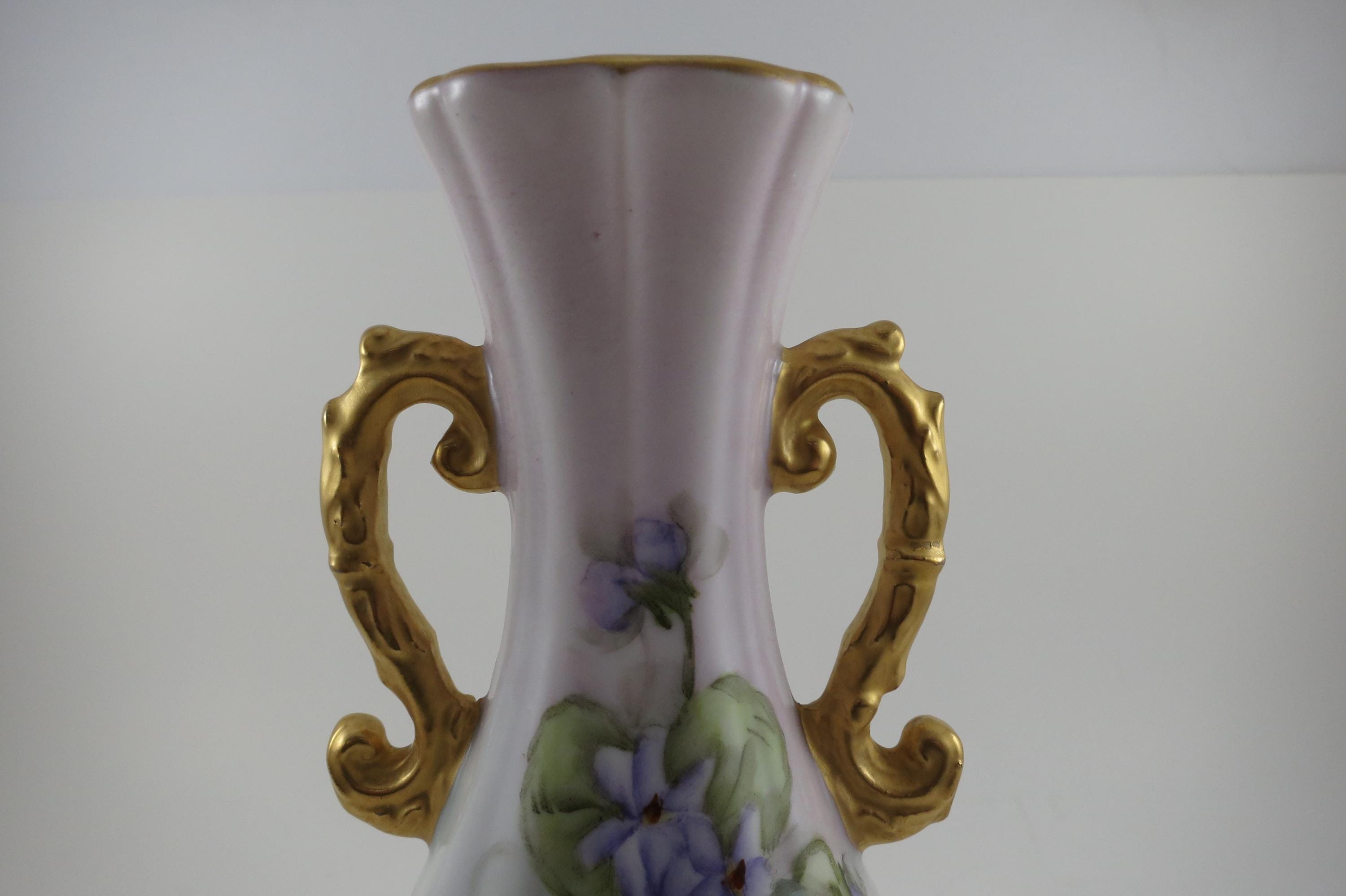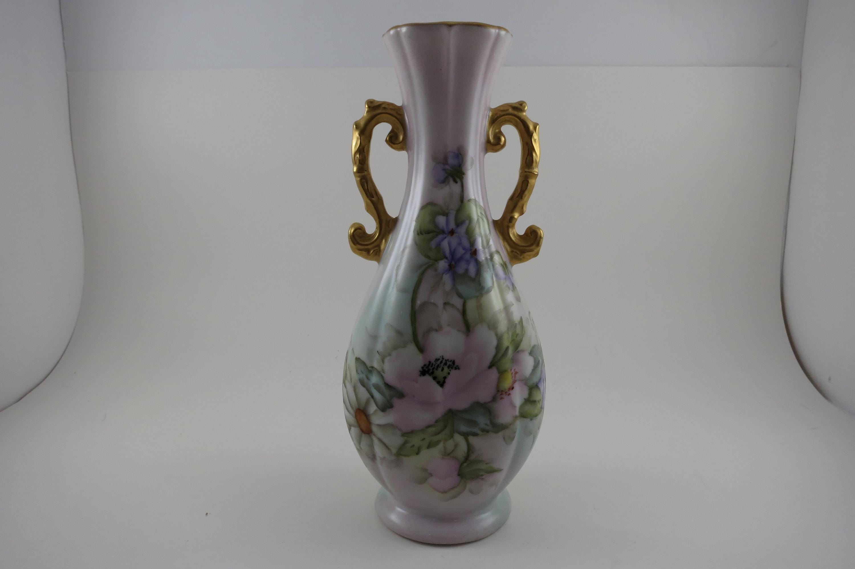 Vintage Plankenhammer Floss Bavaria Germany Hand Painted Double Handled Vase