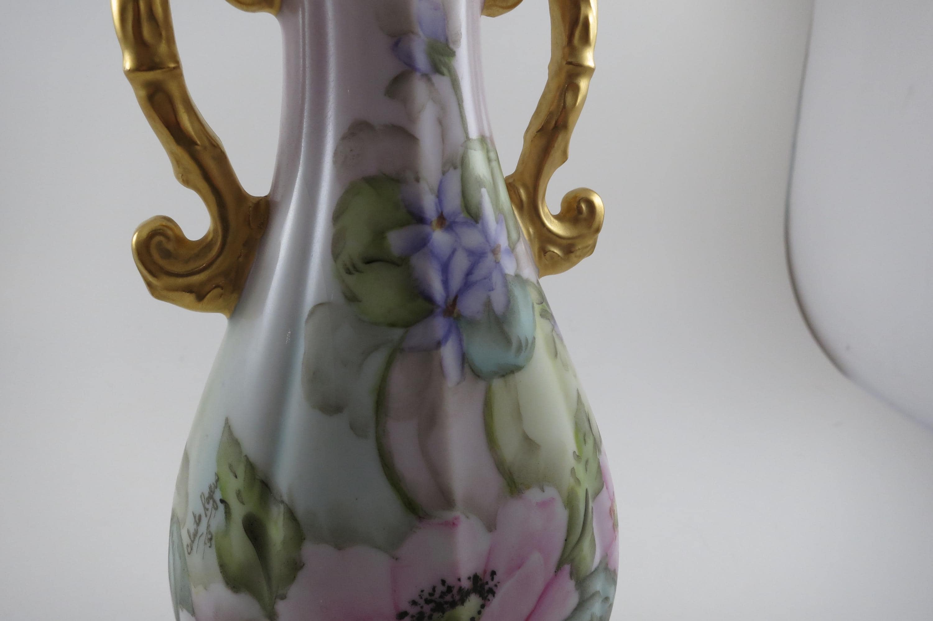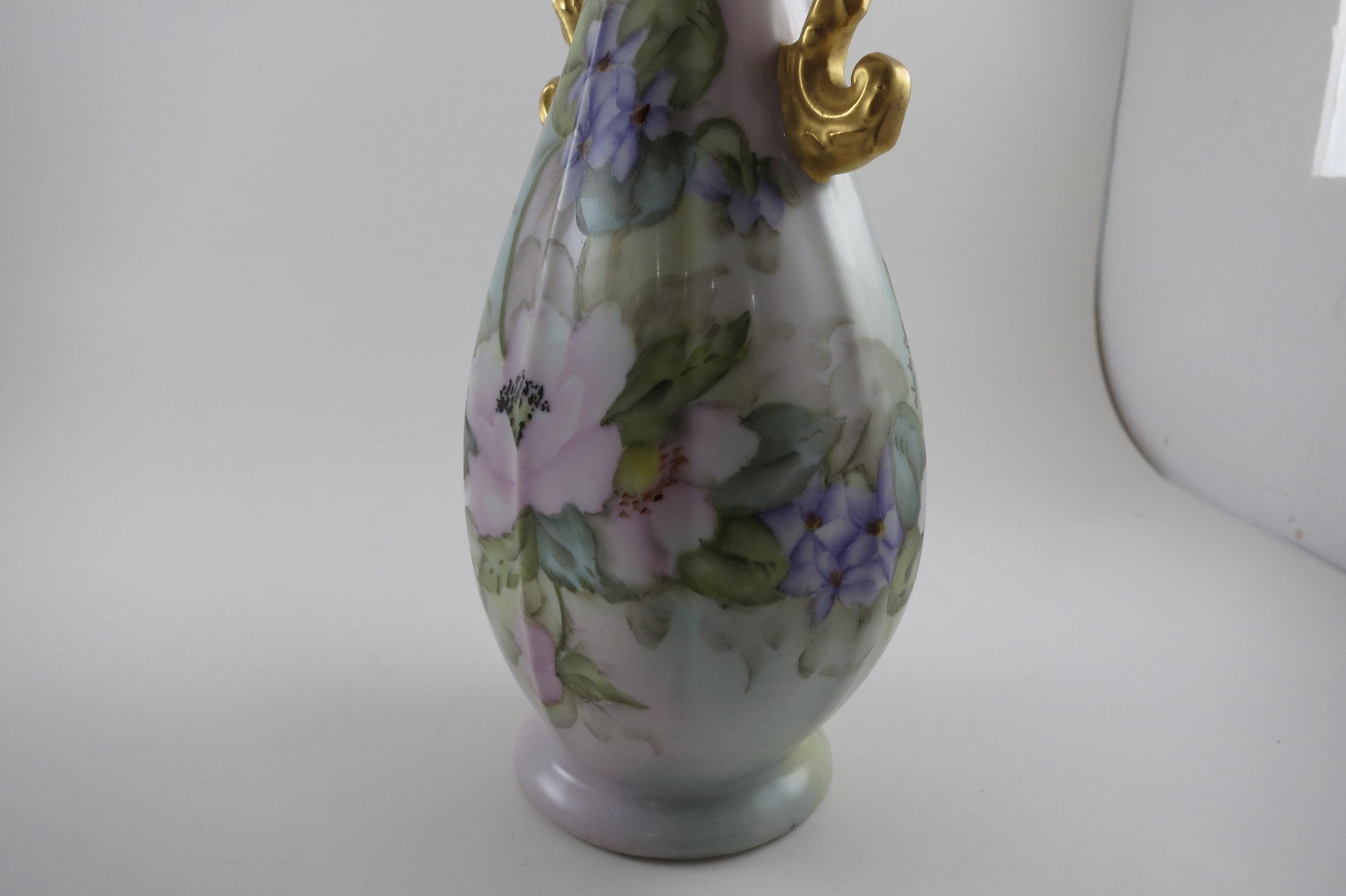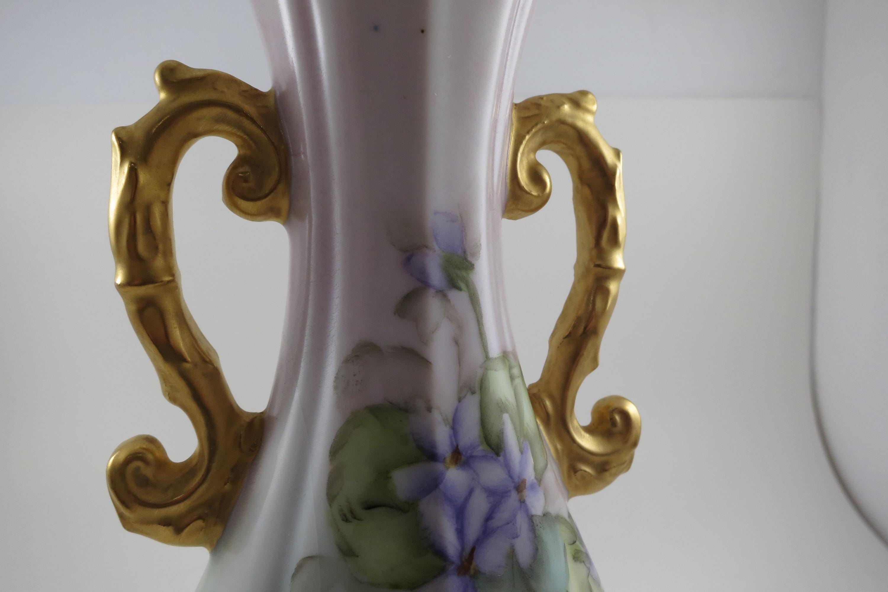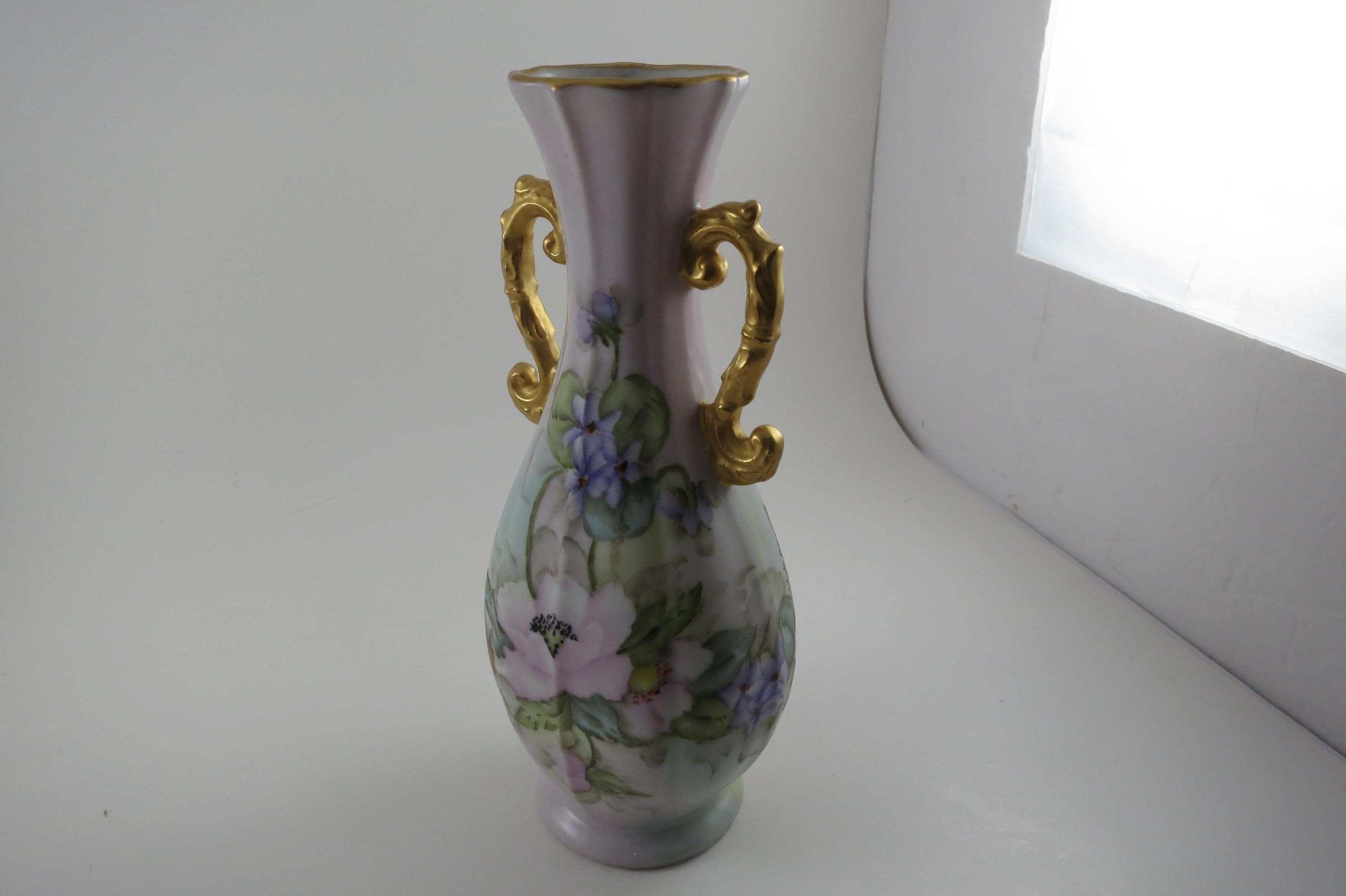 Vintage Plankenhammer Floss Bavaria Germany Hand Painted Double Handled Vase
