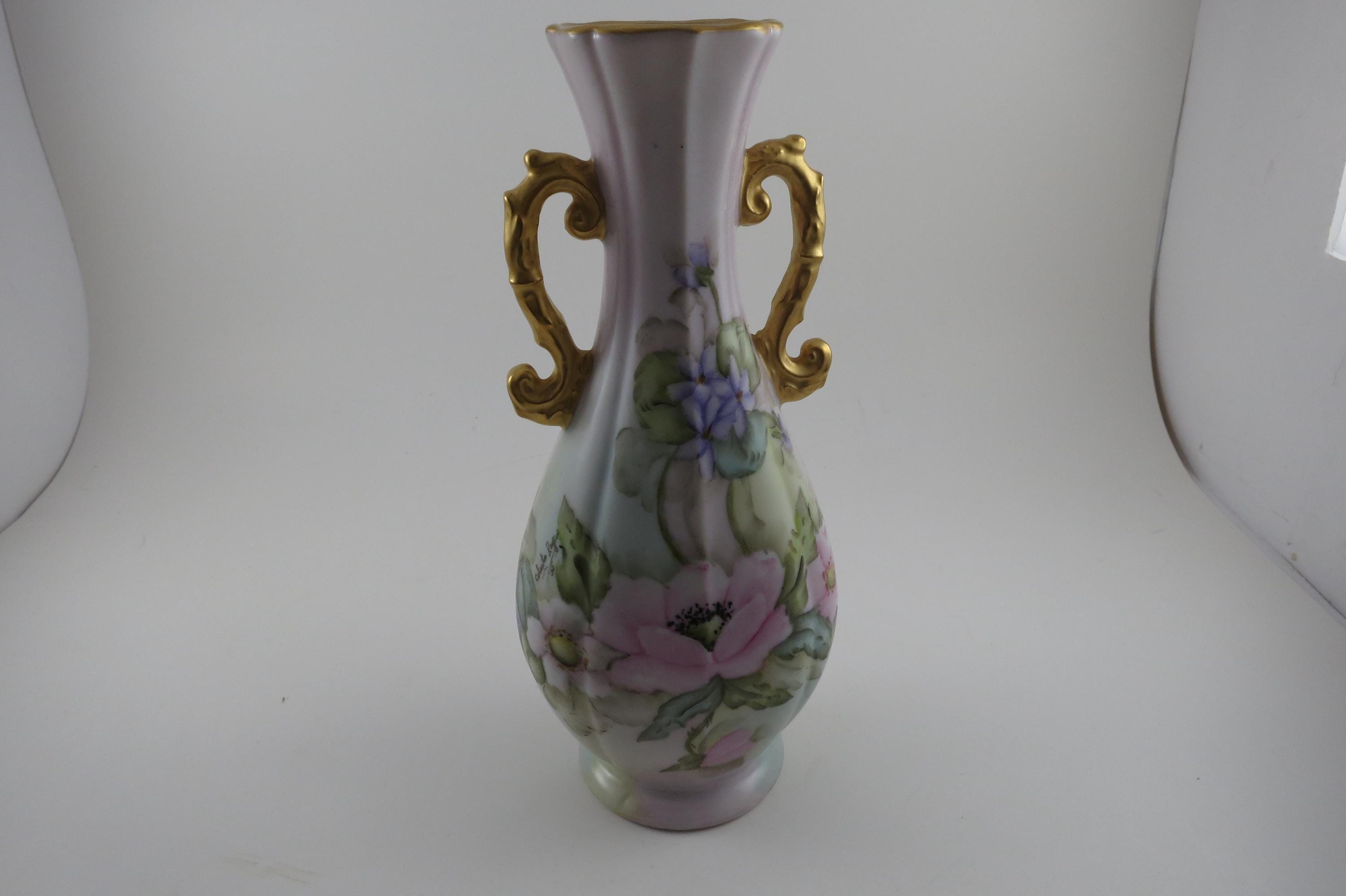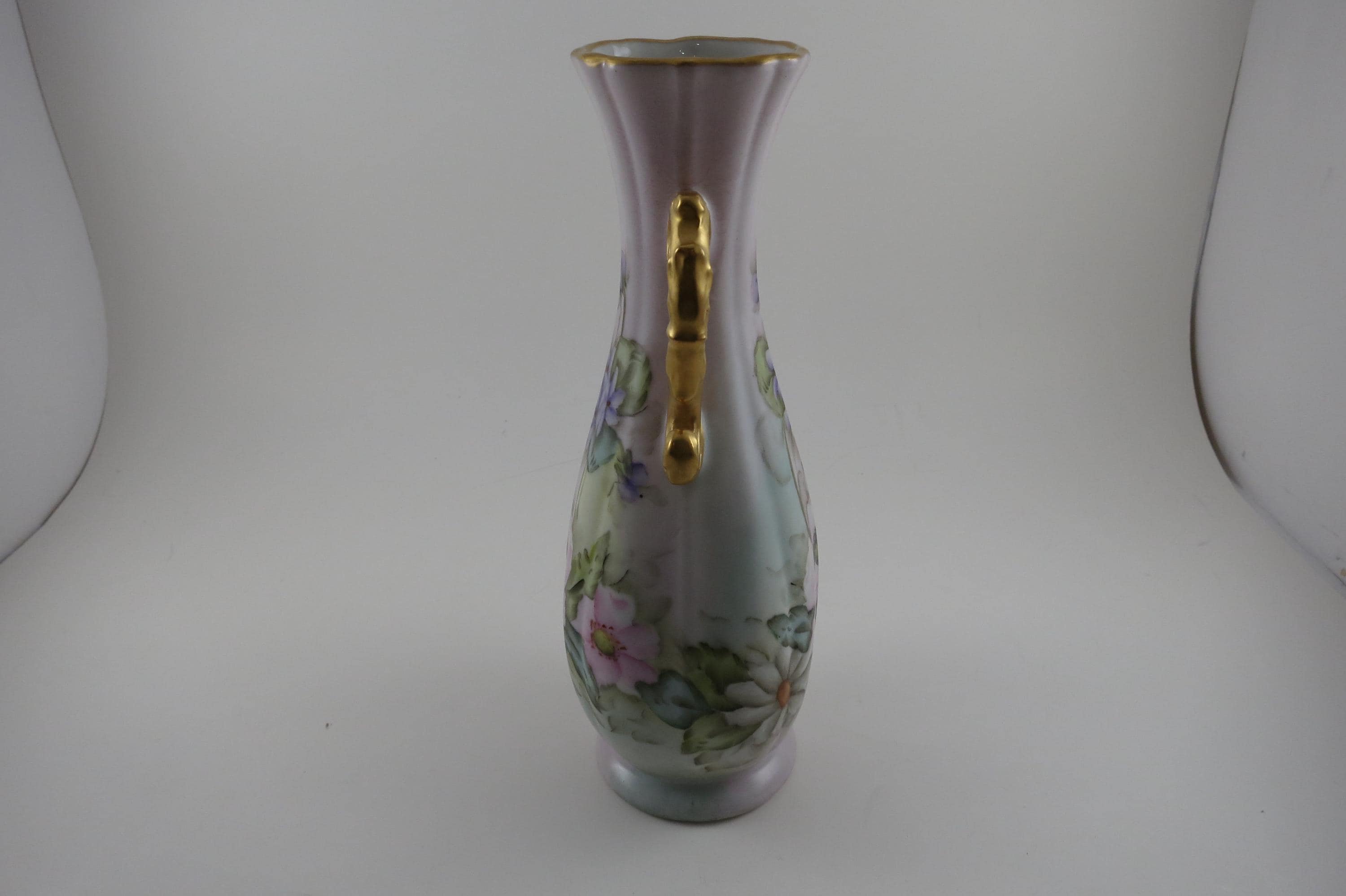 Vintage Plankenhammer Floss Bavaria Germany Hand Painted Double Handled Vase.