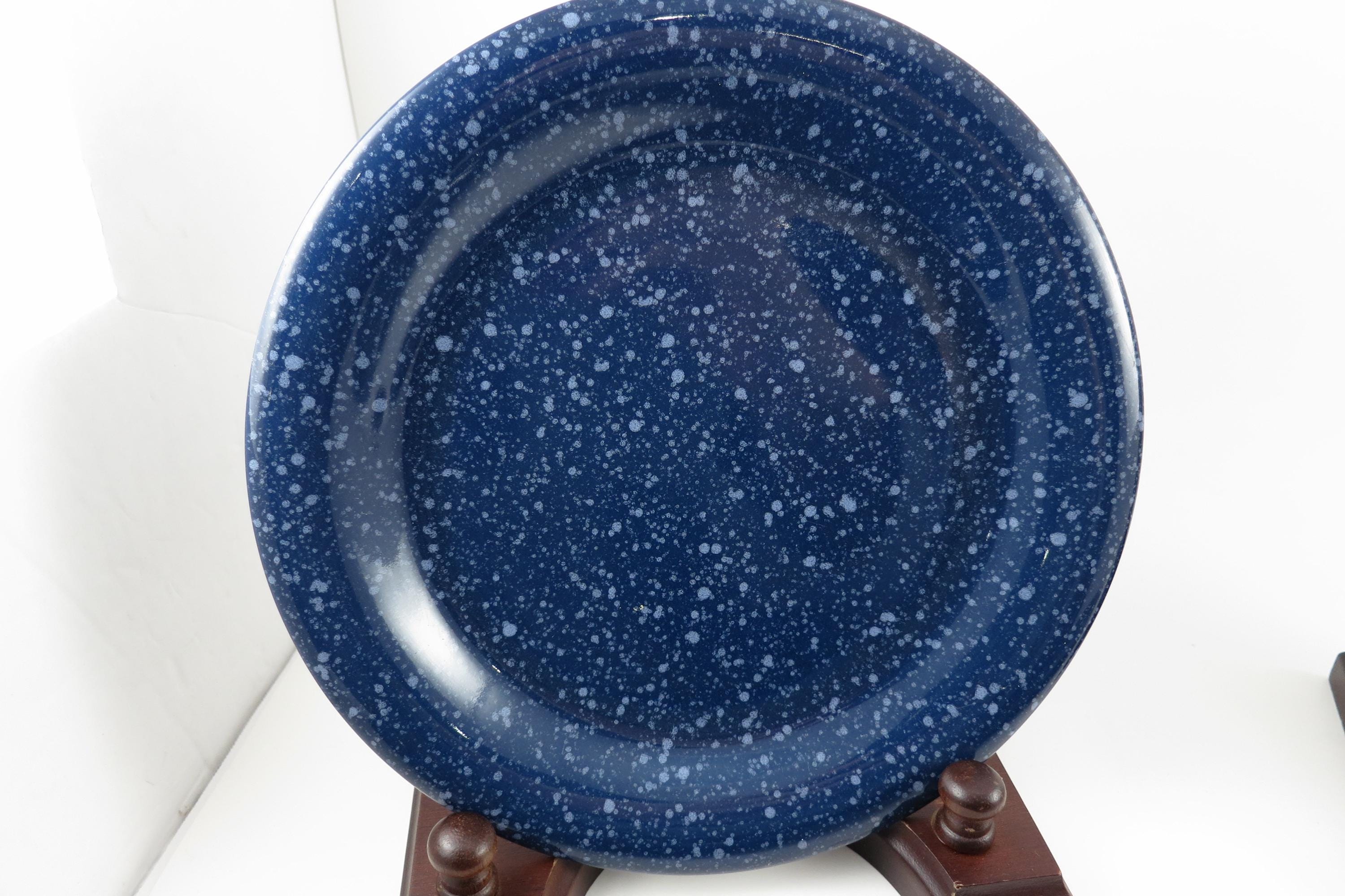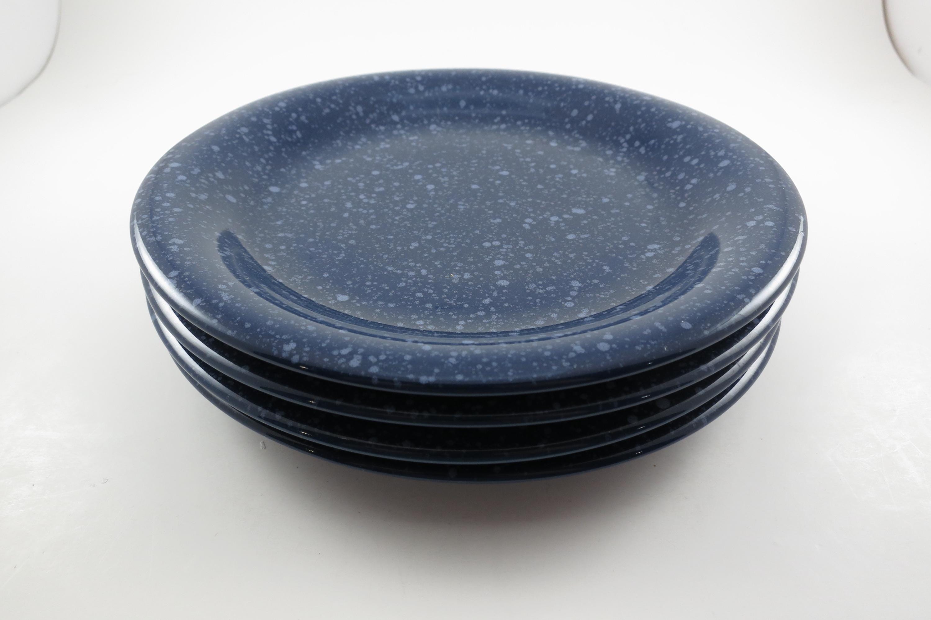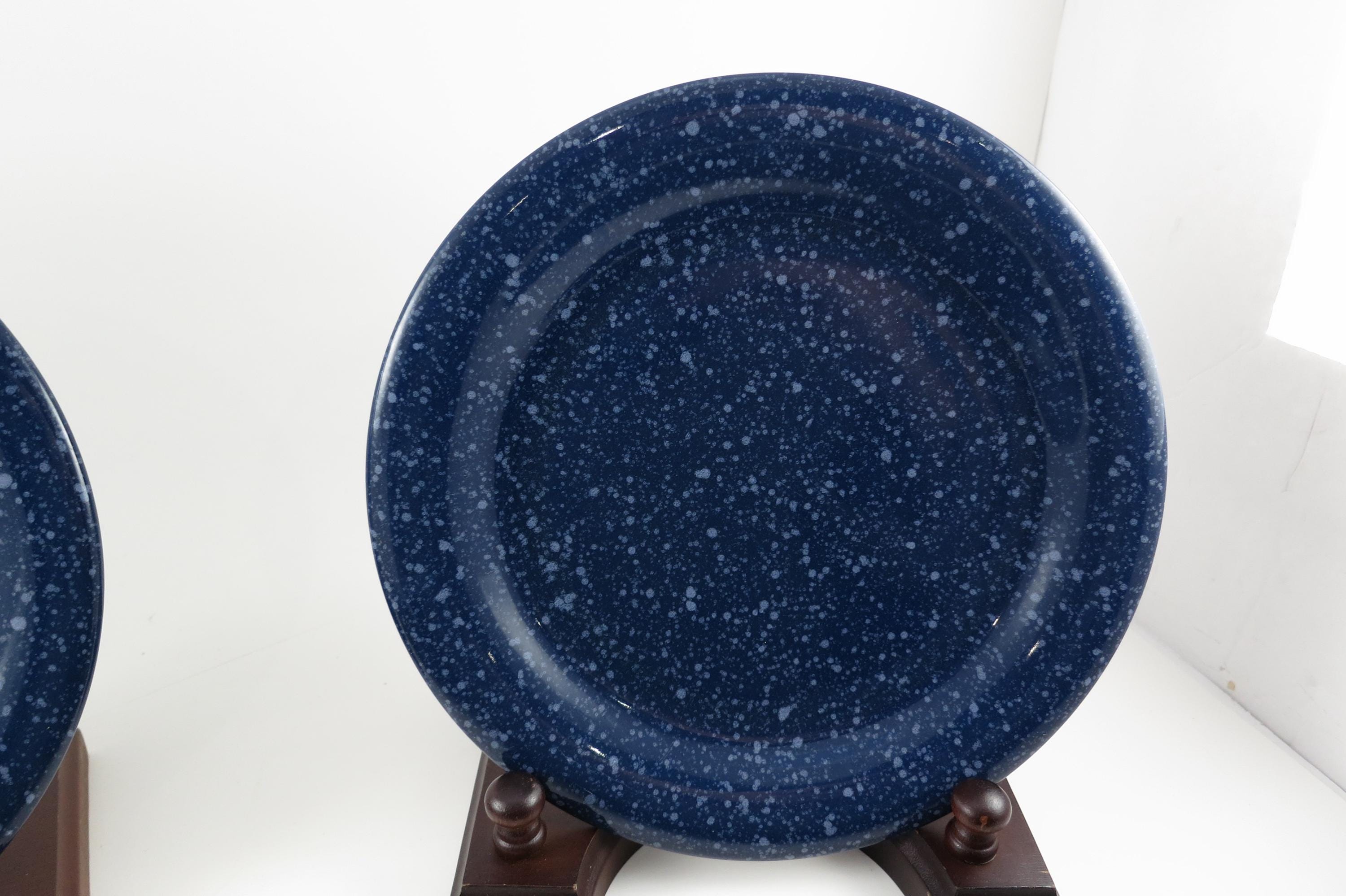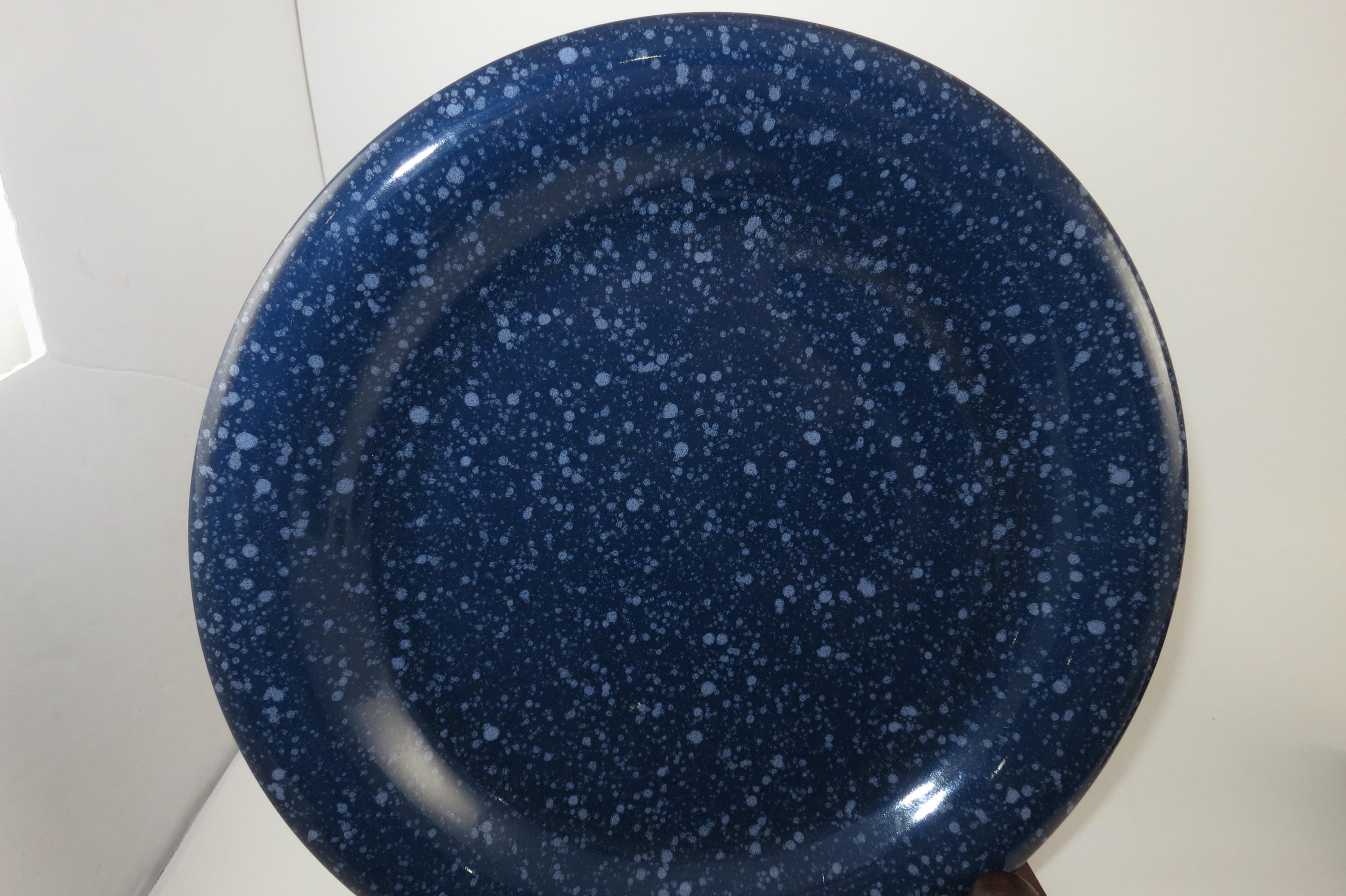 Beautiful dinnerware, Unbranded, deep blue with white speckle. Each measures 7 5/8 inches diameter. They are in excellent used condition.
