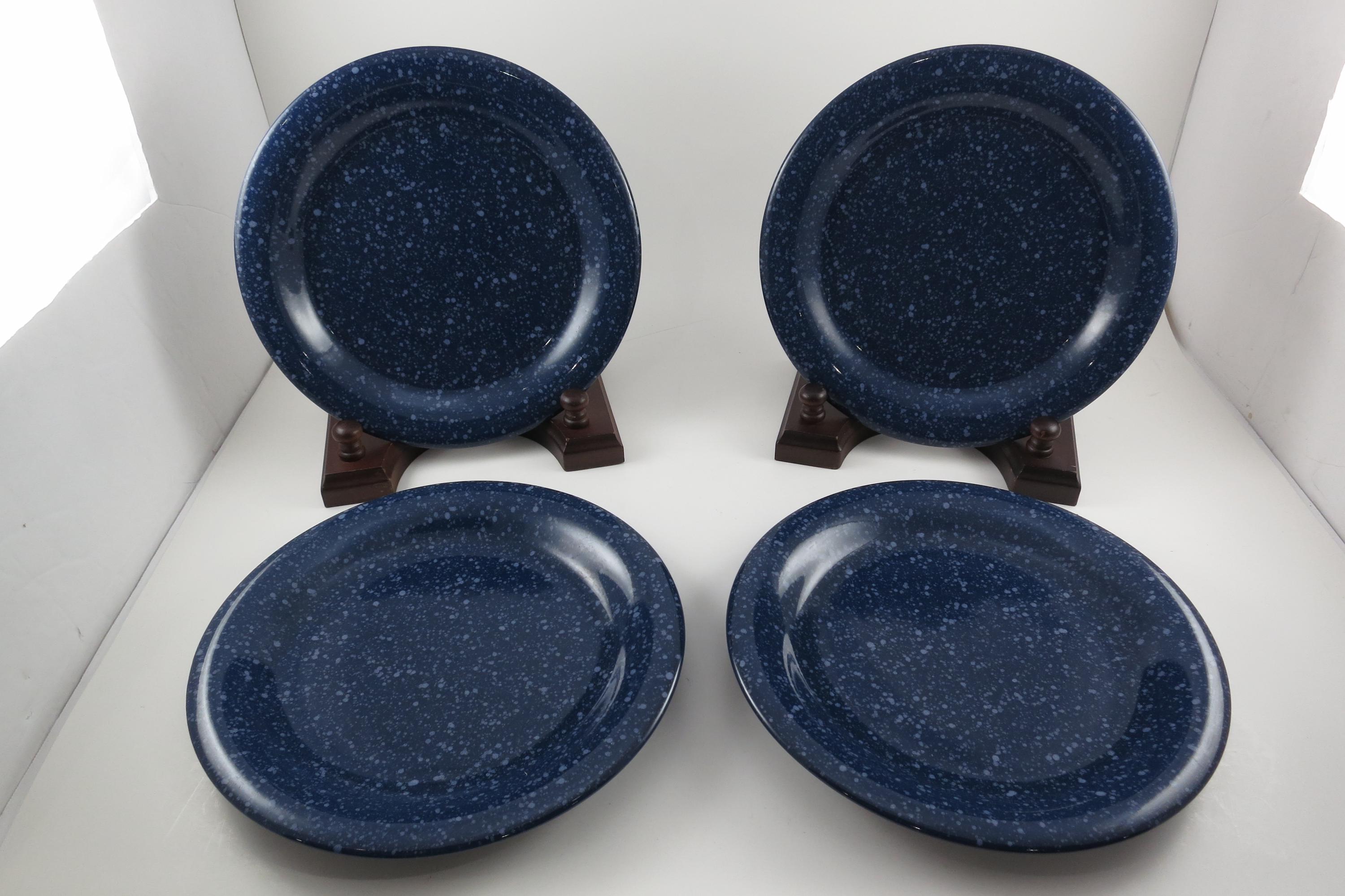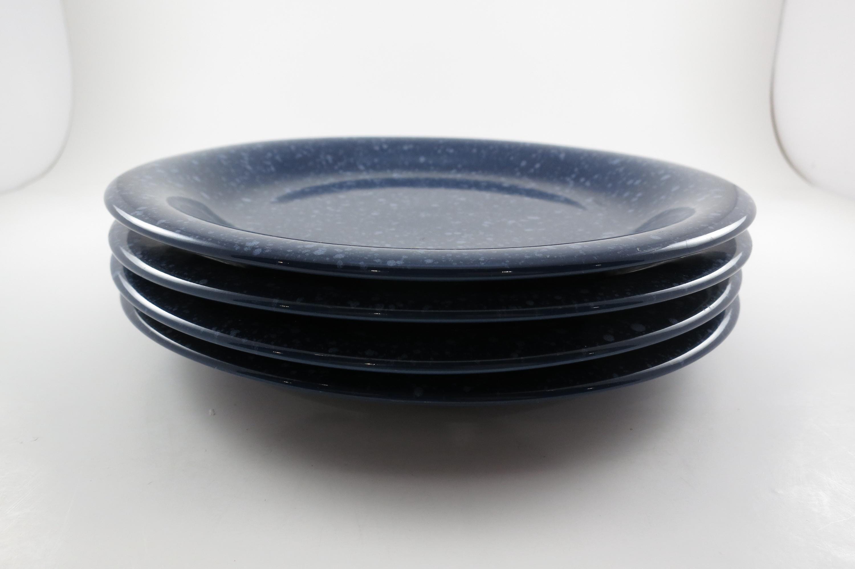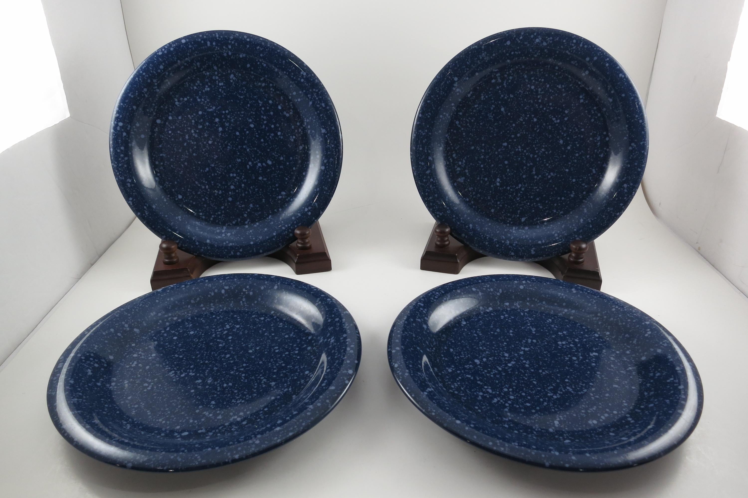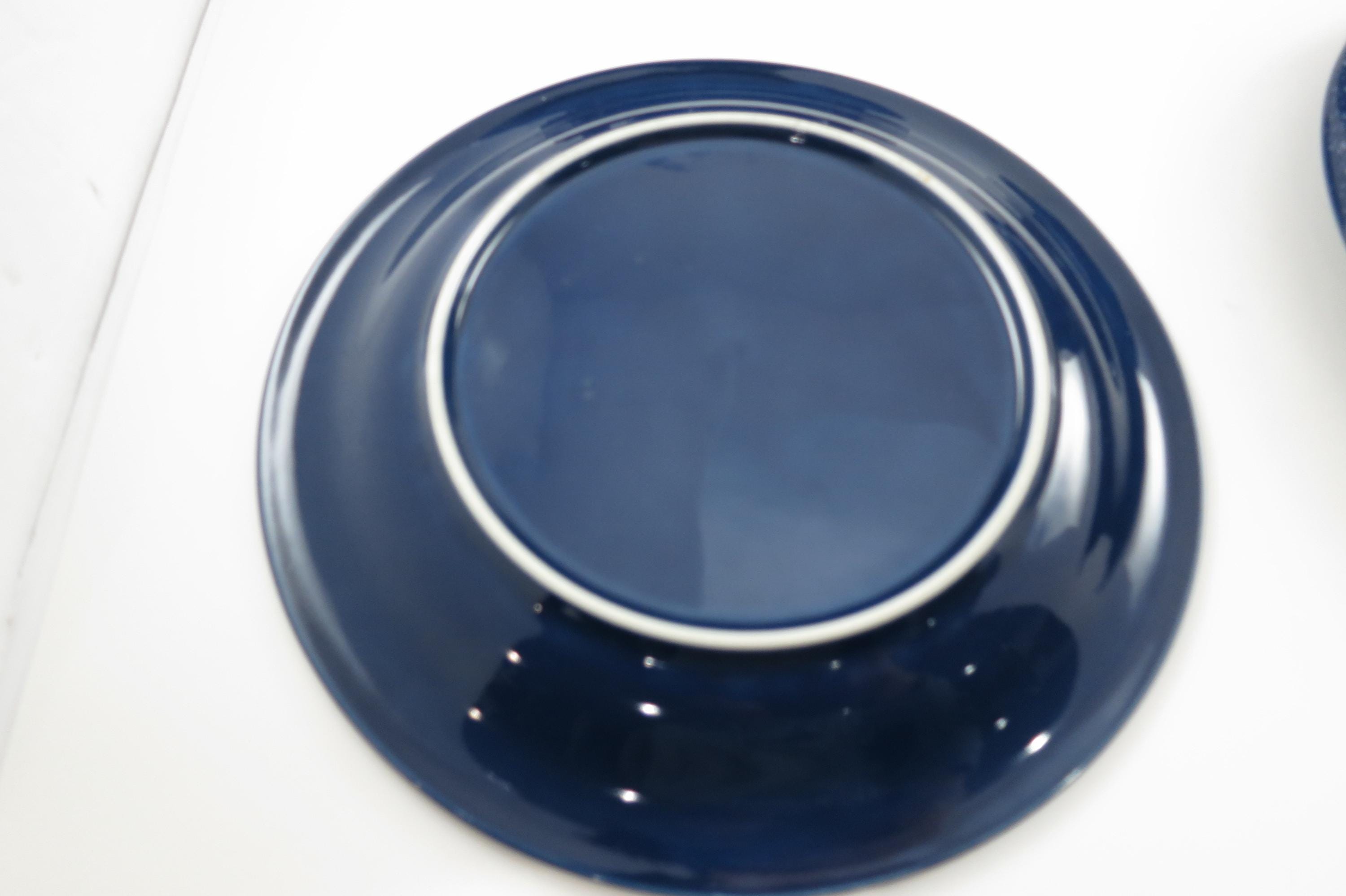 Beautiful dinnerware, Unbranded, deep blue with white speckle. Each measures 7 5/8 inches diameter. They are in excellent used condition.