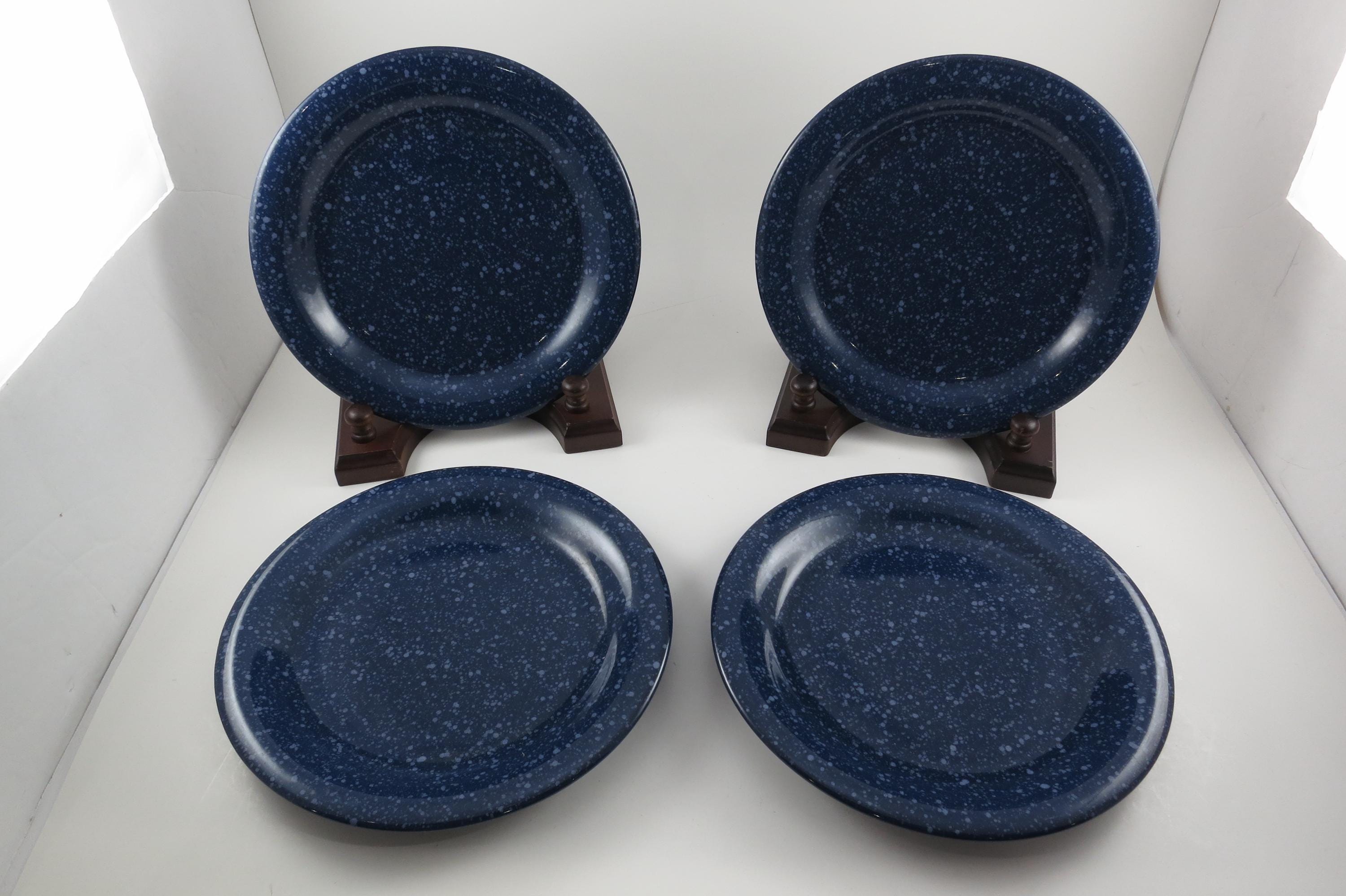 Set of Four Vintage Blue Speckled 7 5/8 Inch Salad/Luncheon Plates