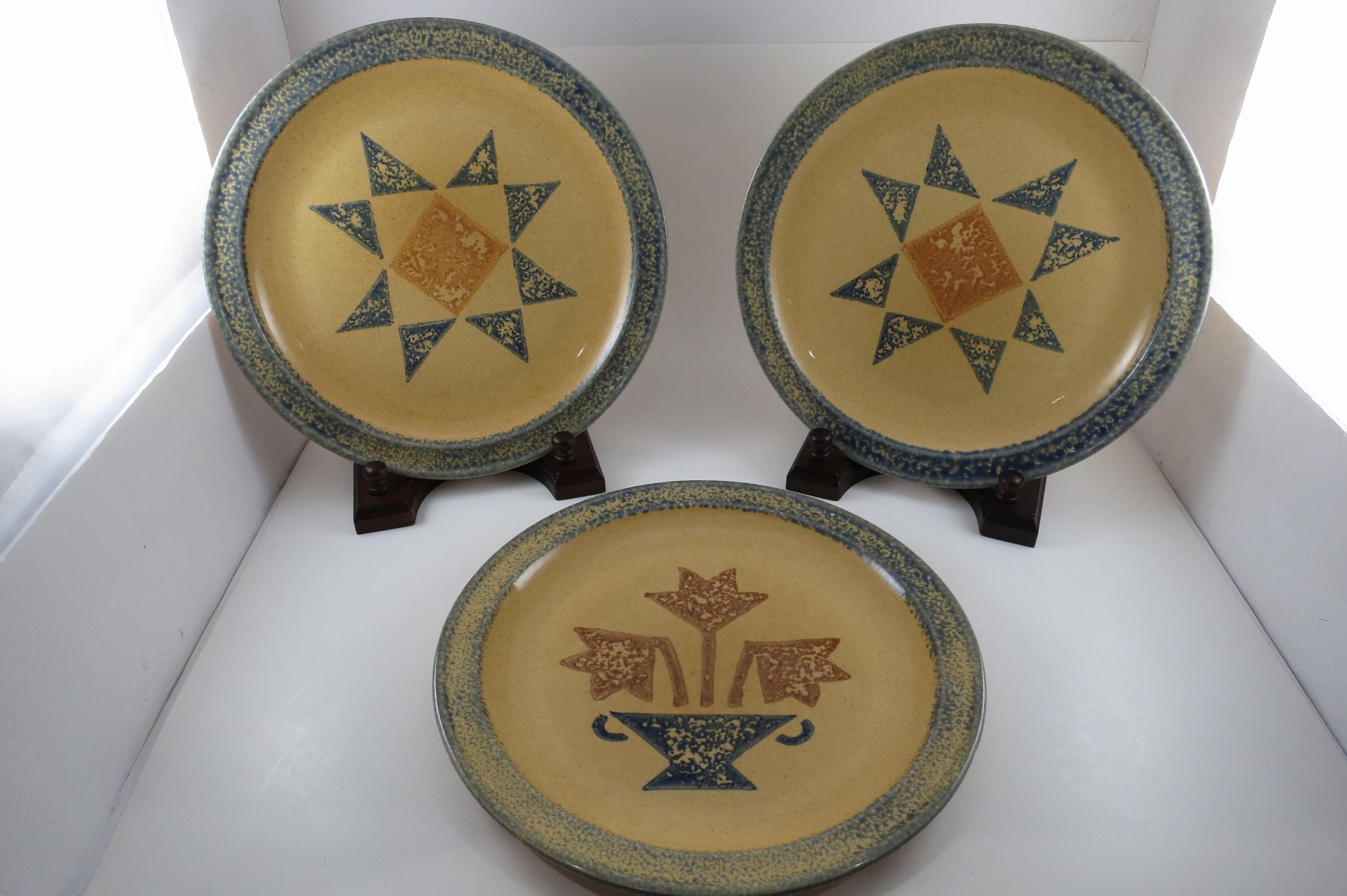 2 Stars and a Vase. These are in very good used condition with no chips, cracks or damages. Light use wear shown. They measure 10 1/4 inches in diameter.