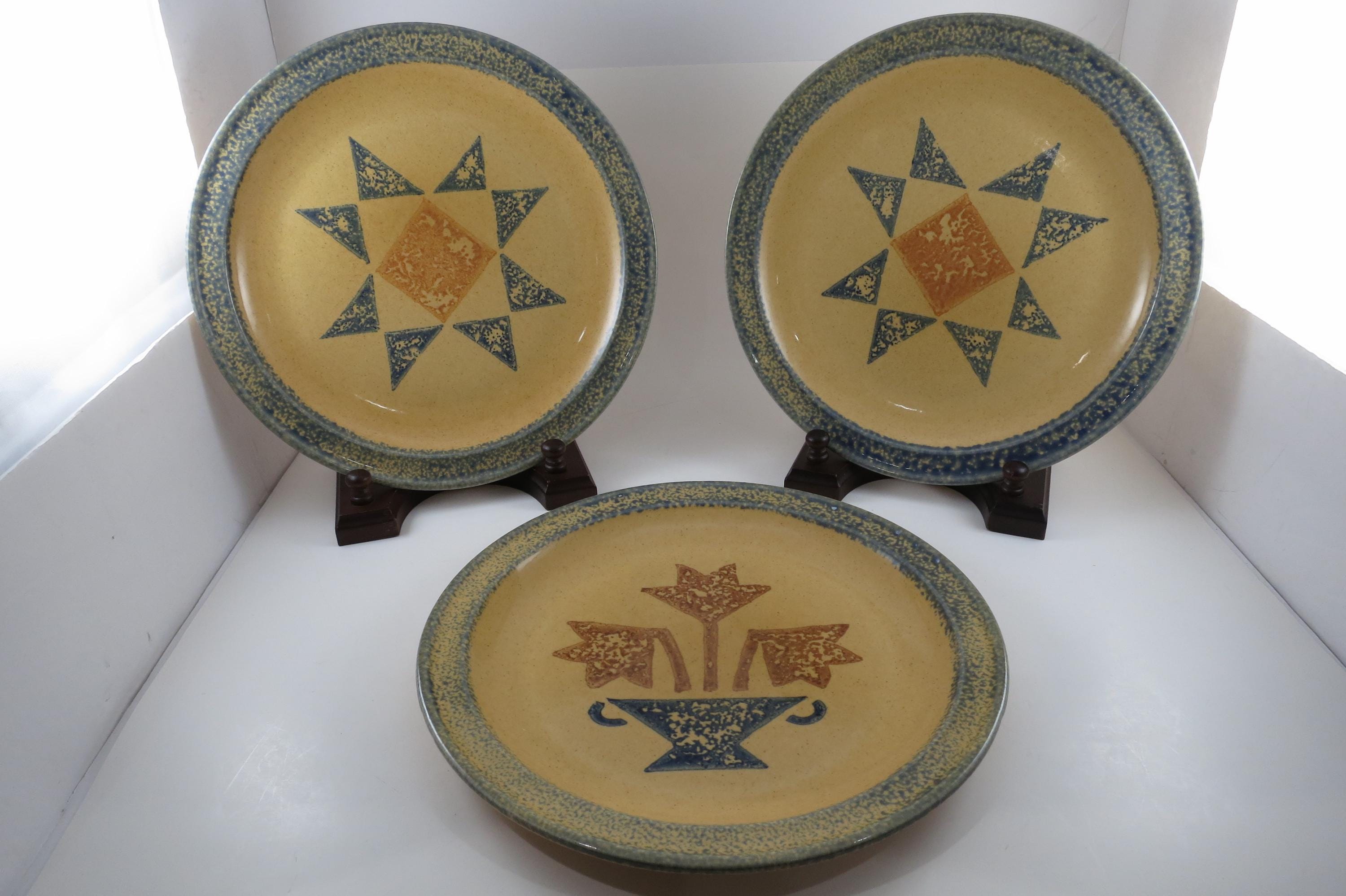 Set of Three Vintage Pfaltzgraff Americana MAFA 10 1/4 Inch Dinner Plates.