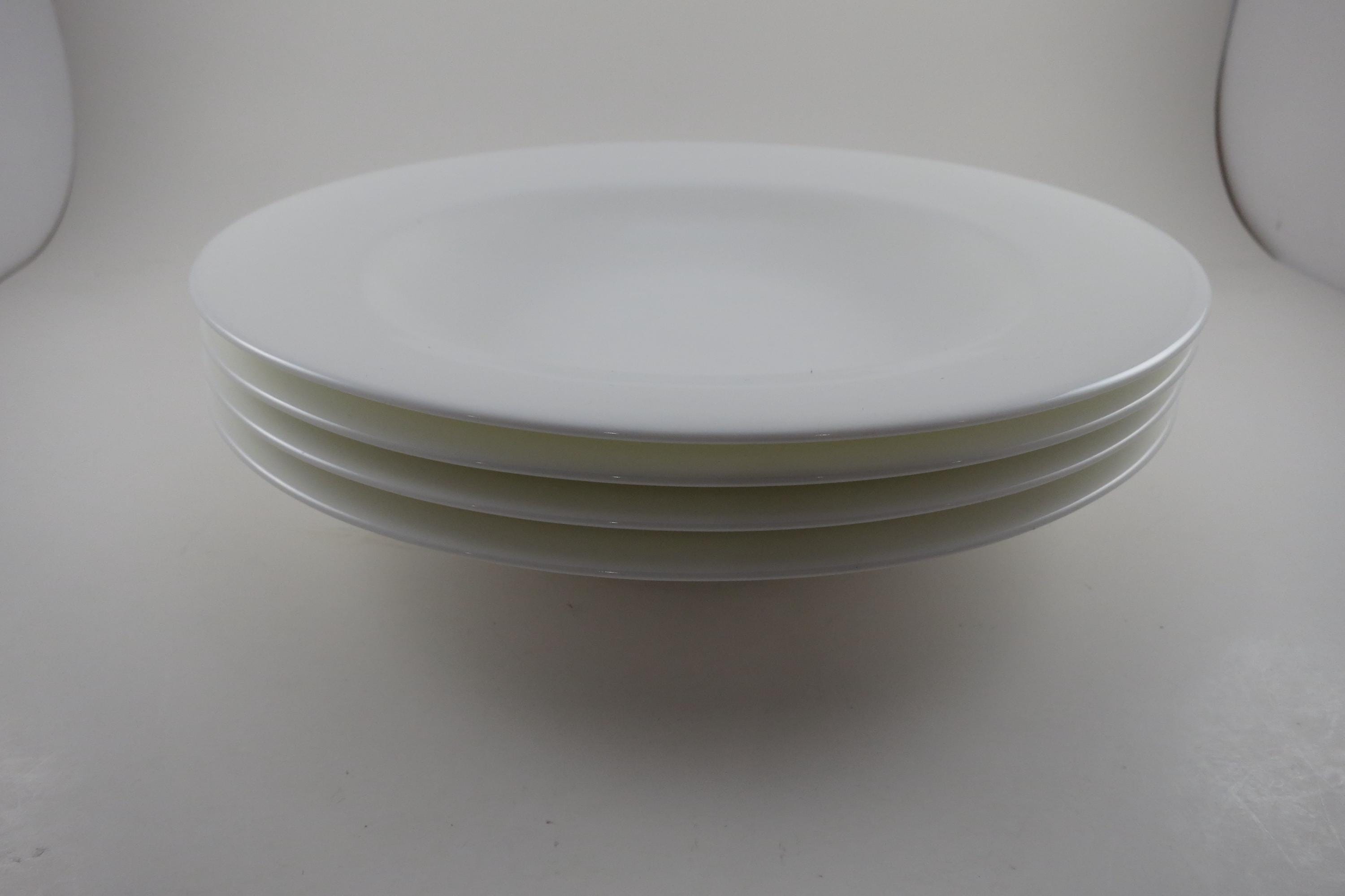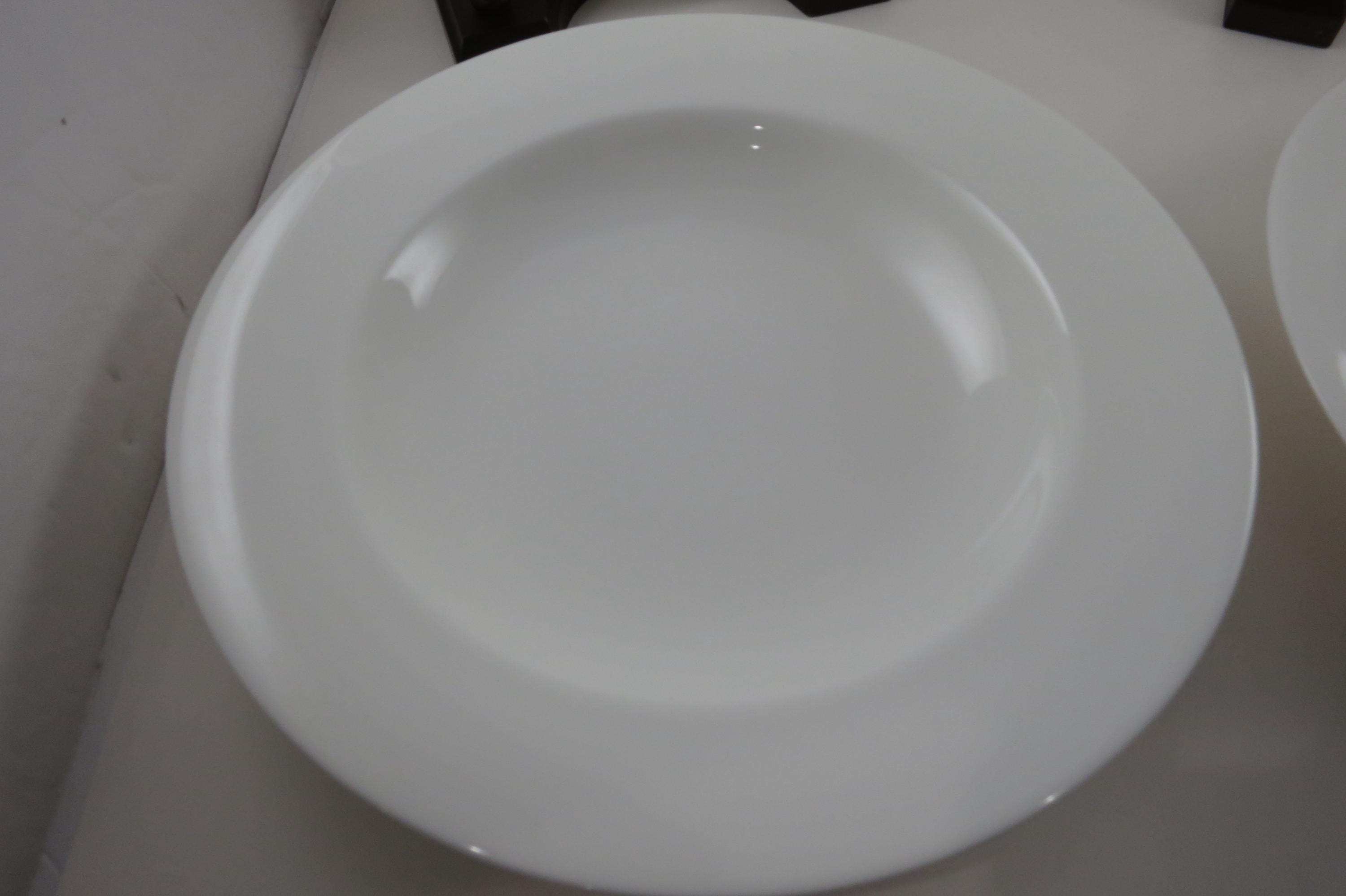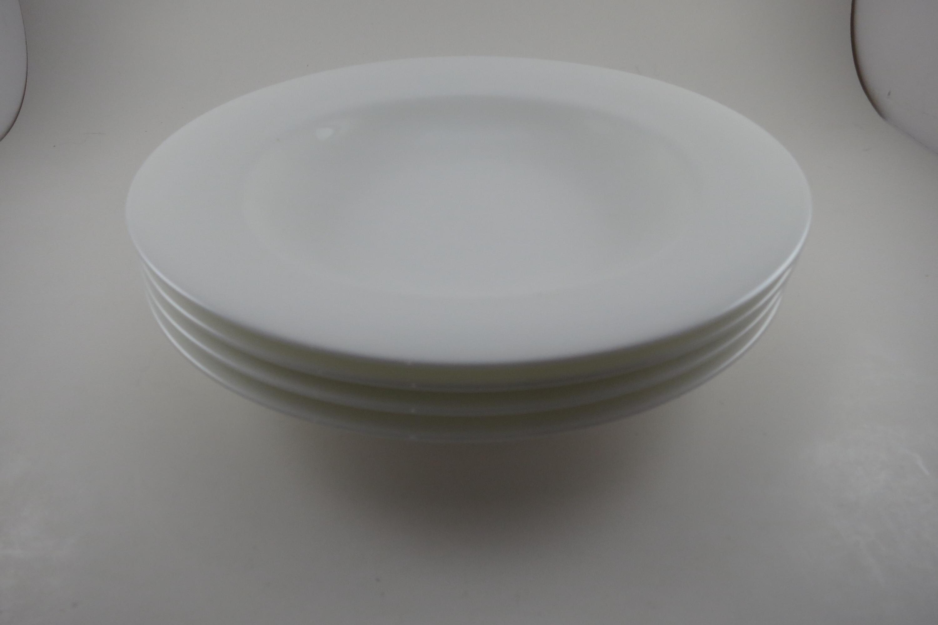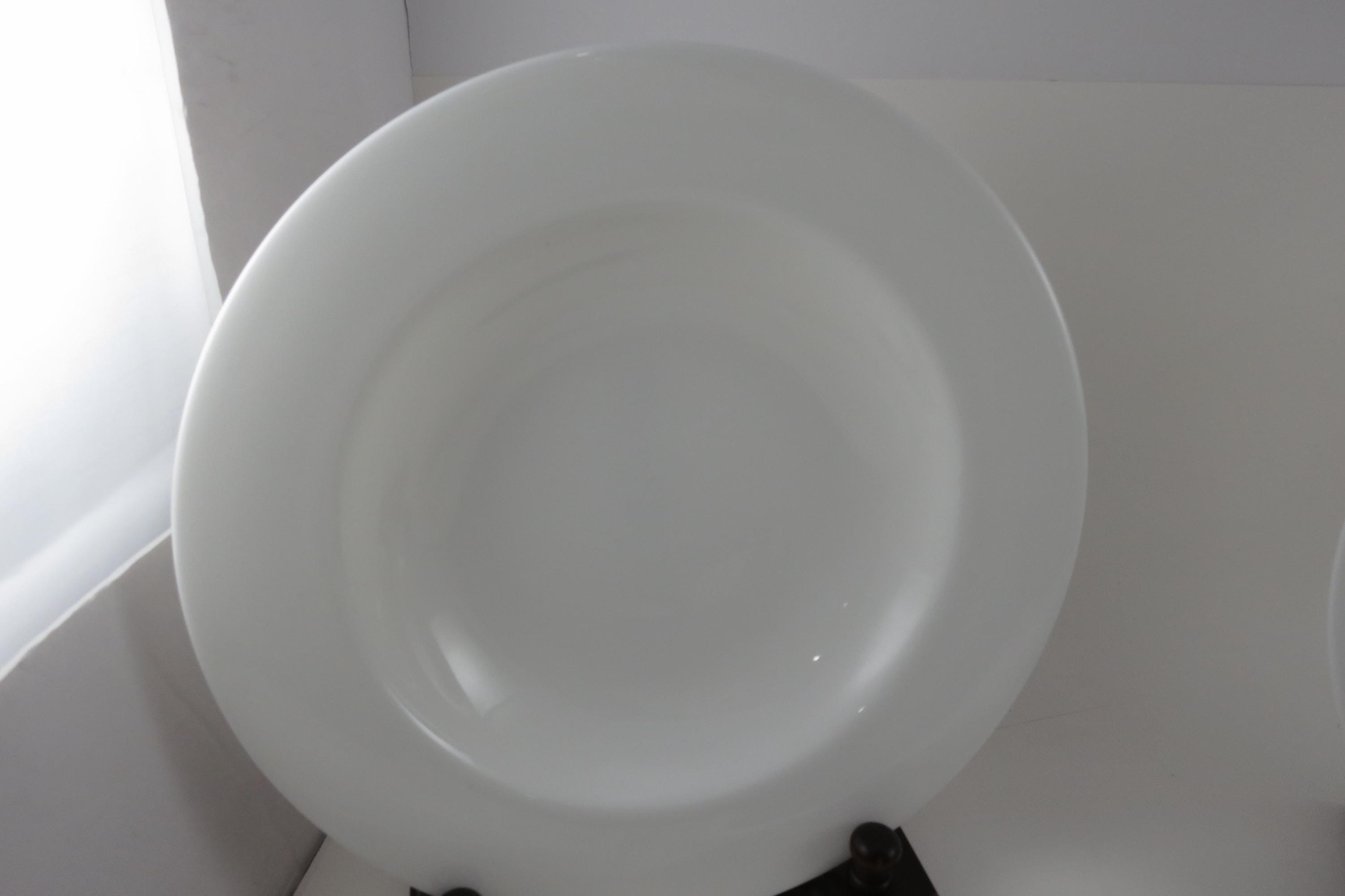 These beautiful all white bone china bowls are in like new condition and look as if they were never used. Each measures 9 1/8 inches diameter. We have 2 sets of 4 available.