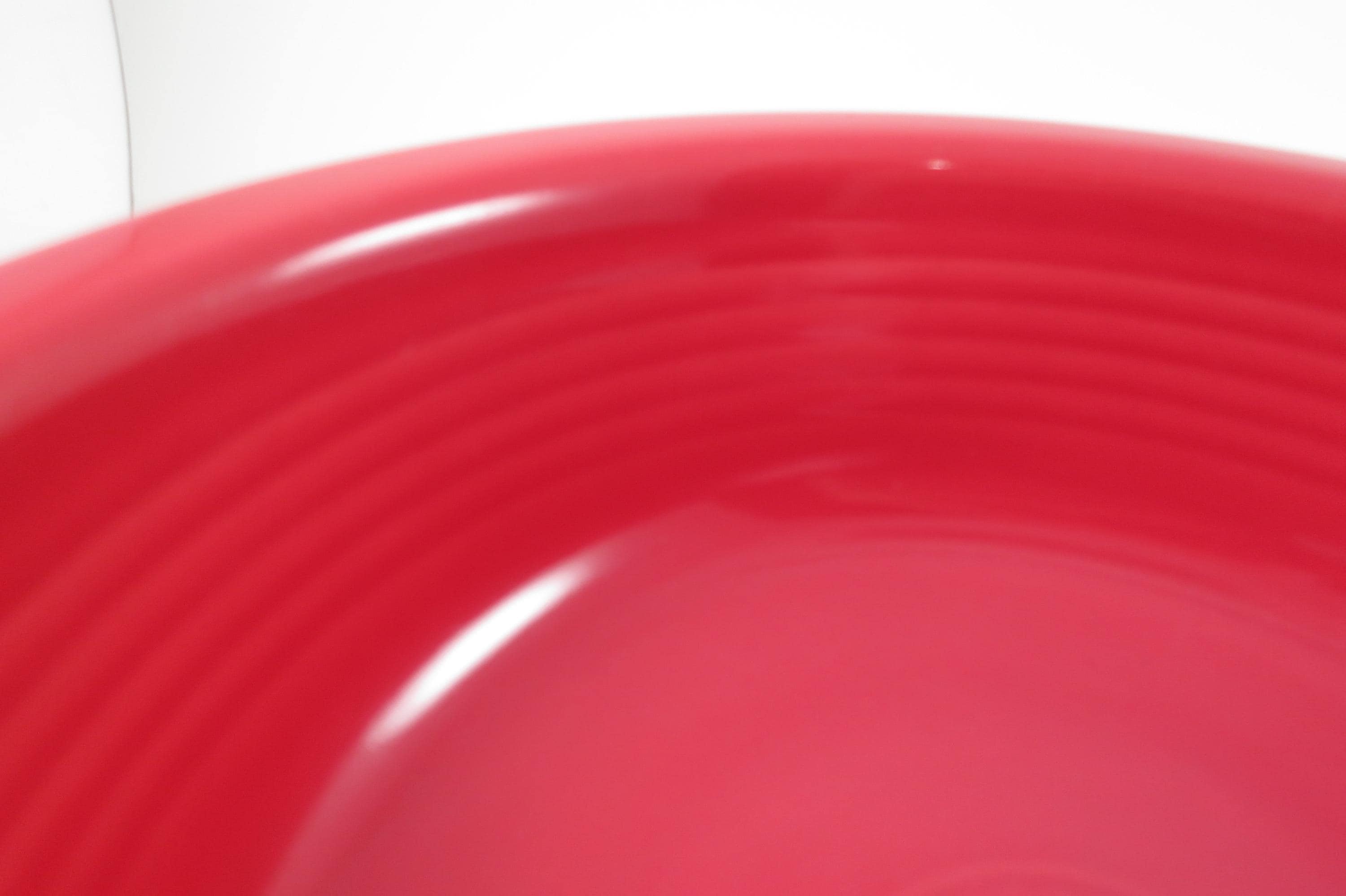 Both are in excellent condition with no chips, cracks or damages. Each measures 8 3/8 Inches in Diameter. Popular Scarlet Finish.