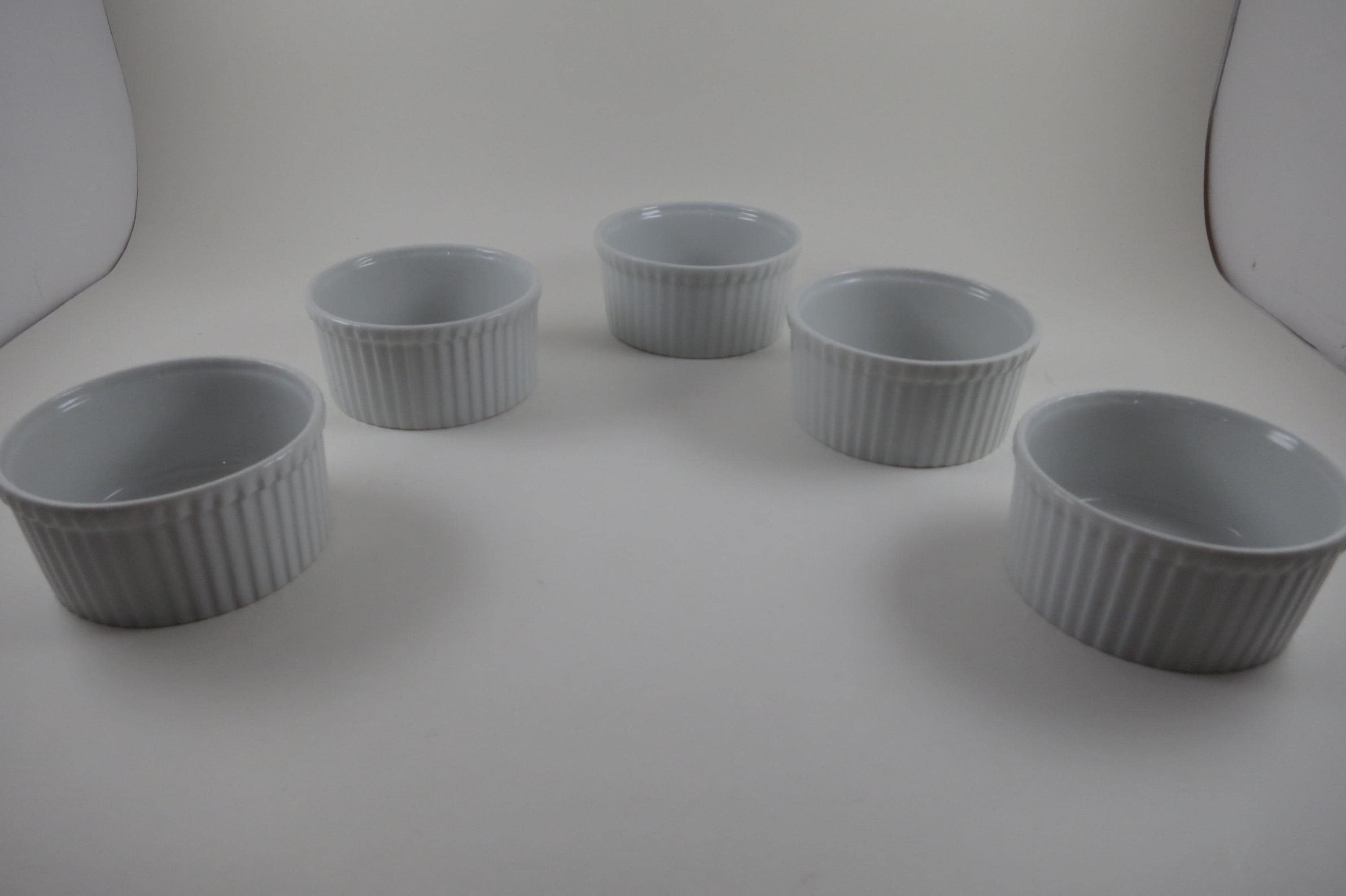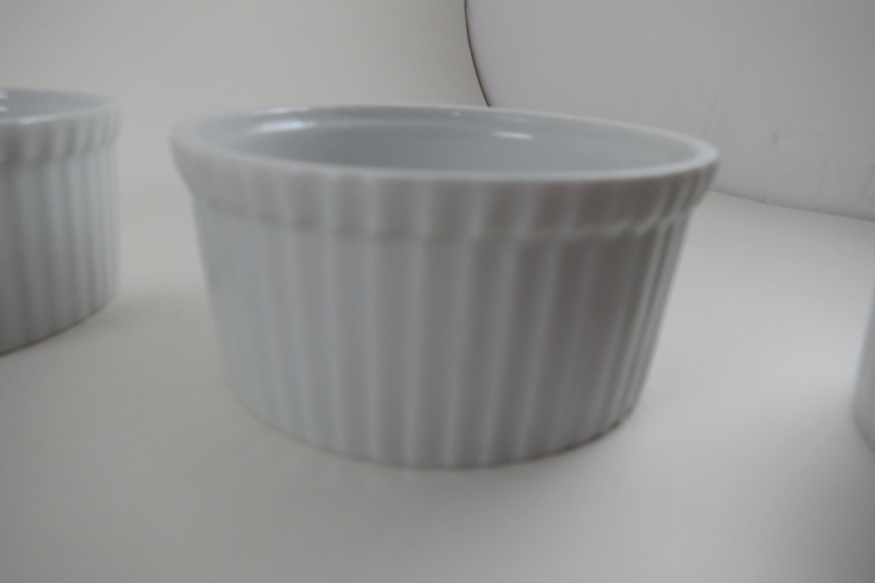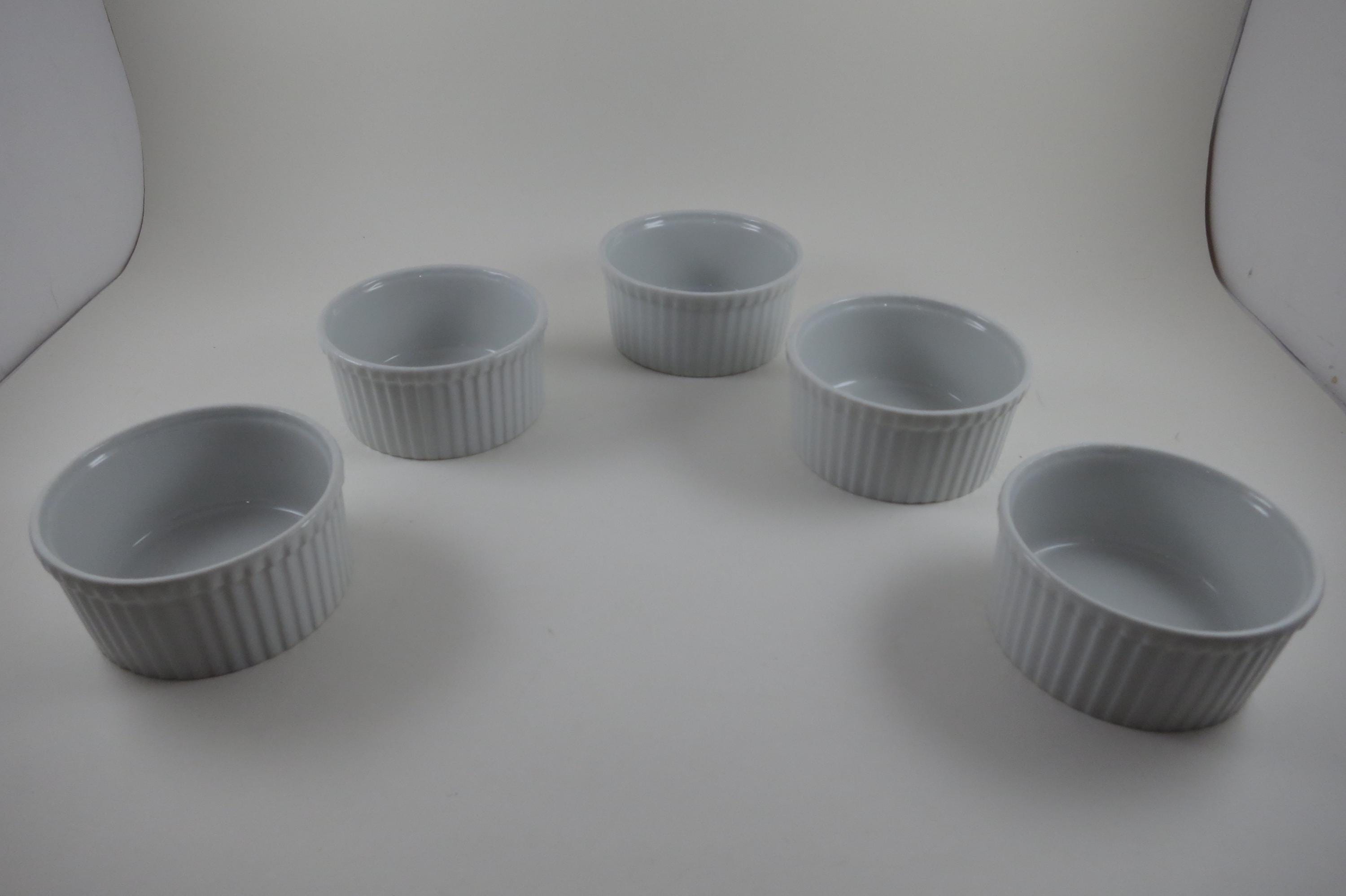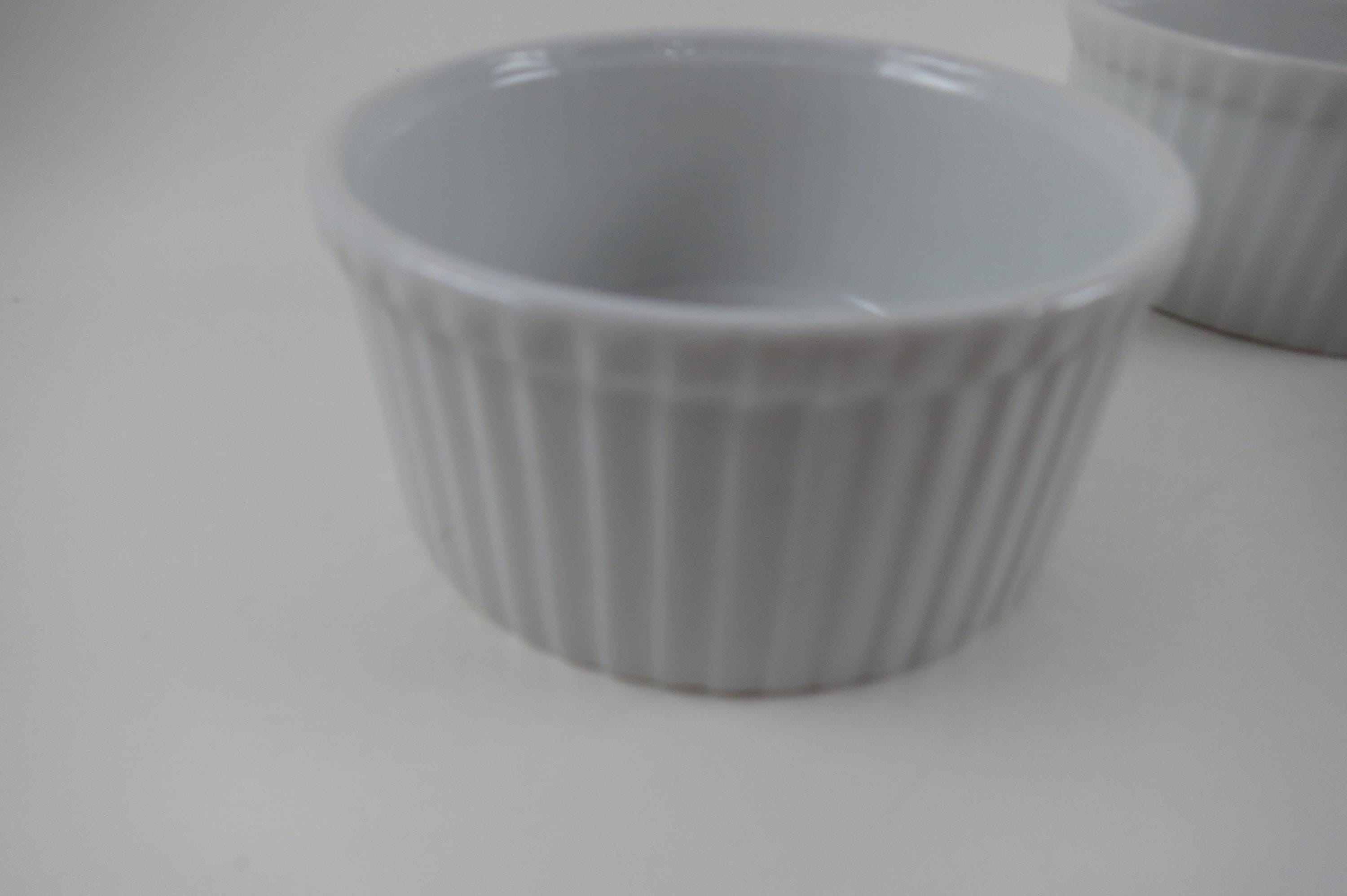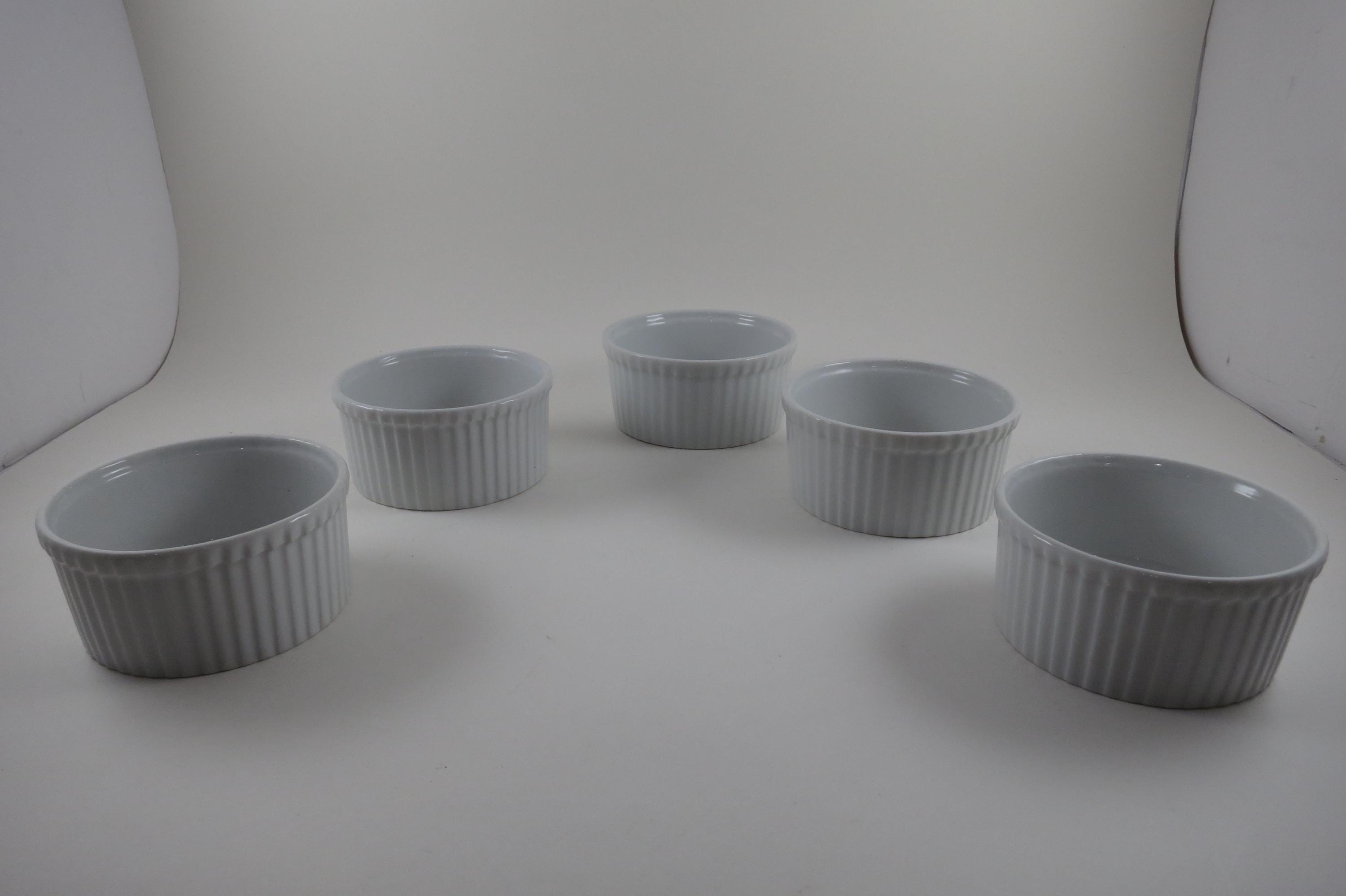 Set of Five Aplico France White Ramekins 3 1/2 Inches Ribbed.