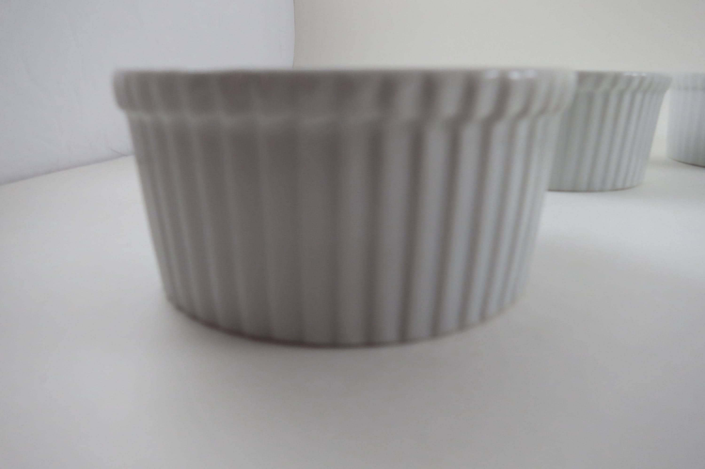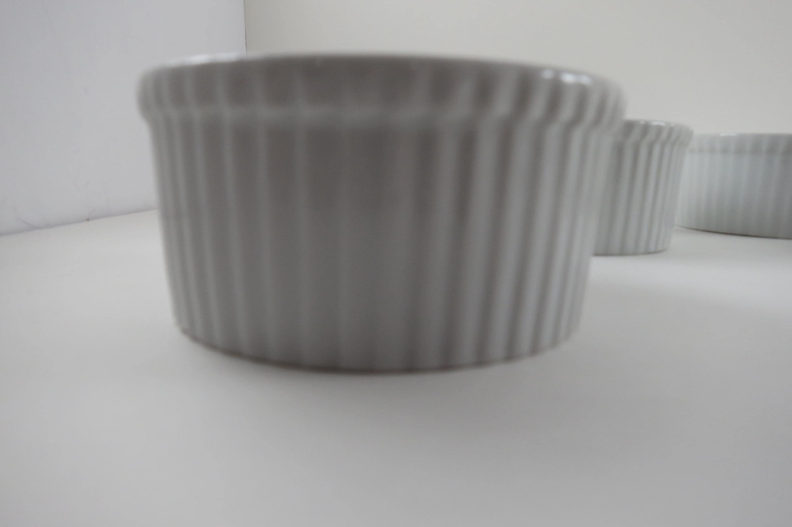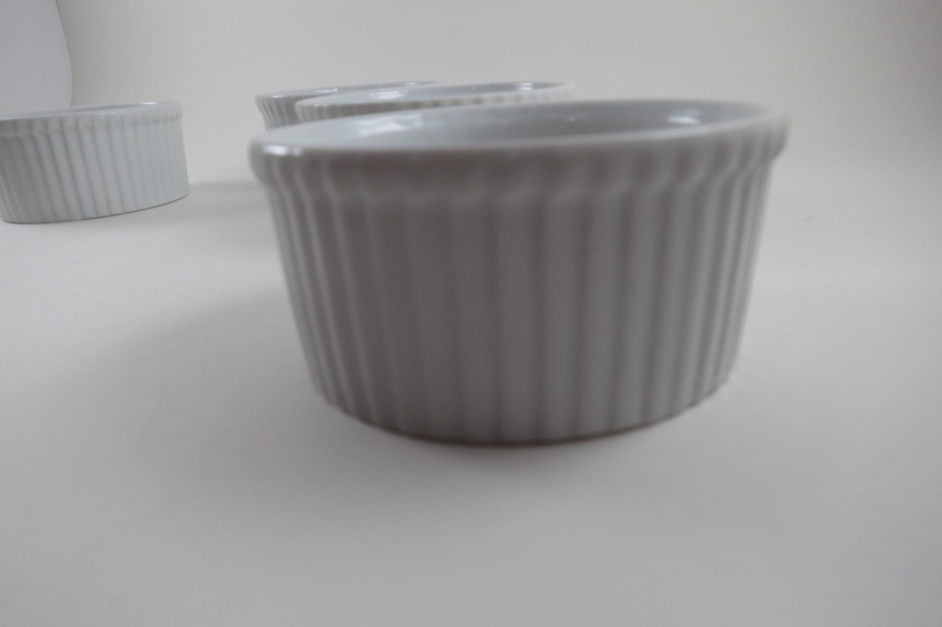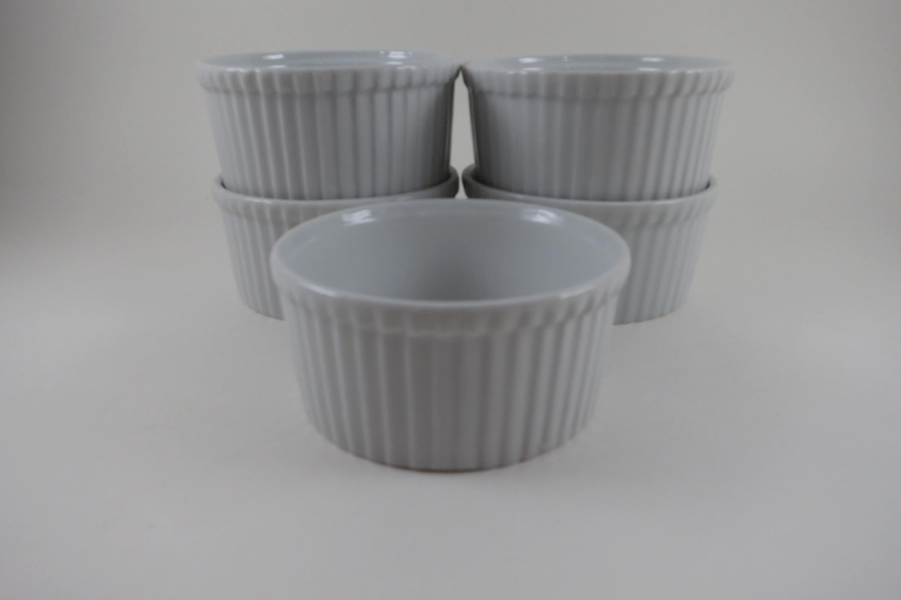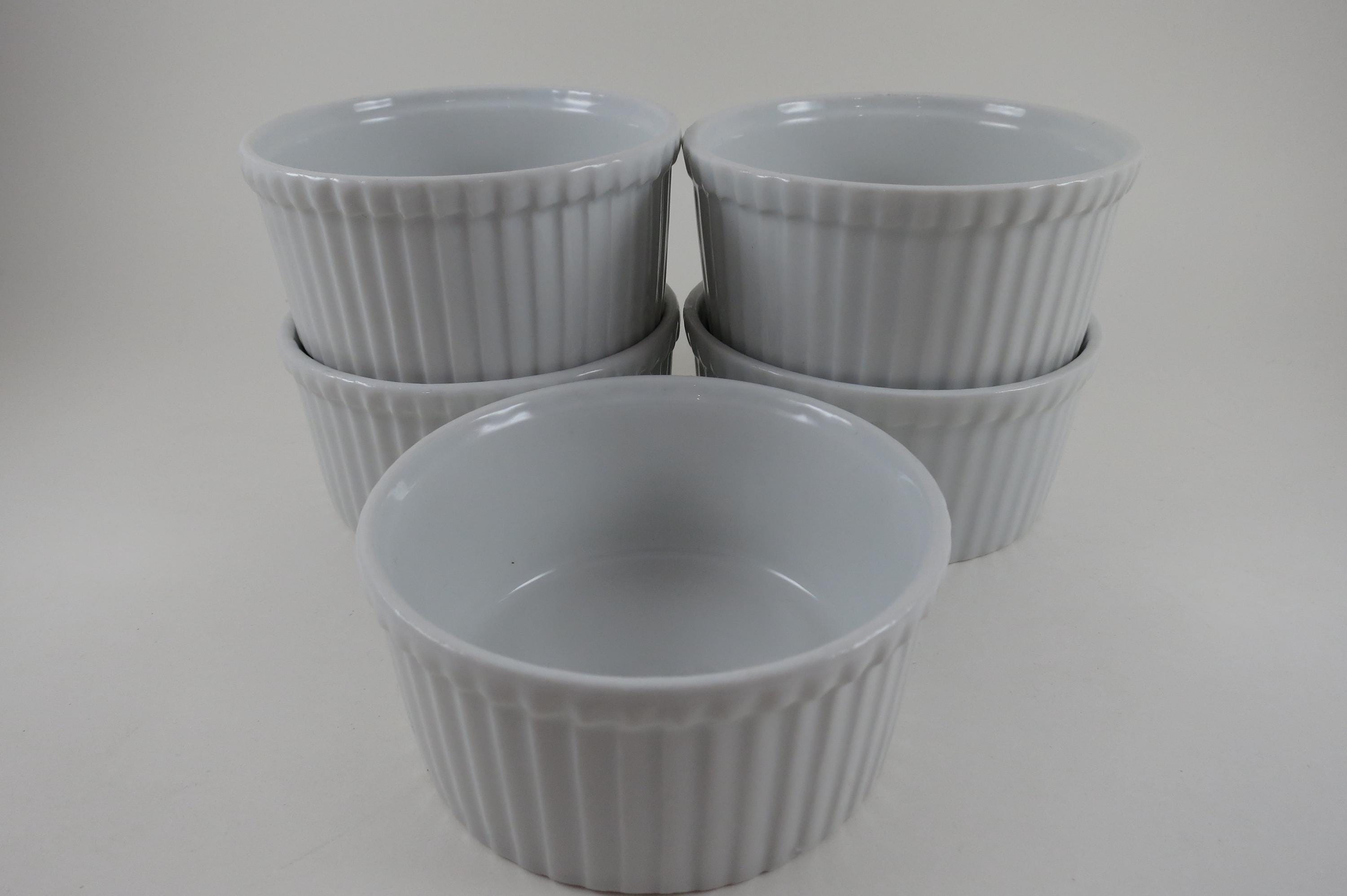 Set of Five Aplico France White Ramekins 3 1/2 Inches Ribbed.