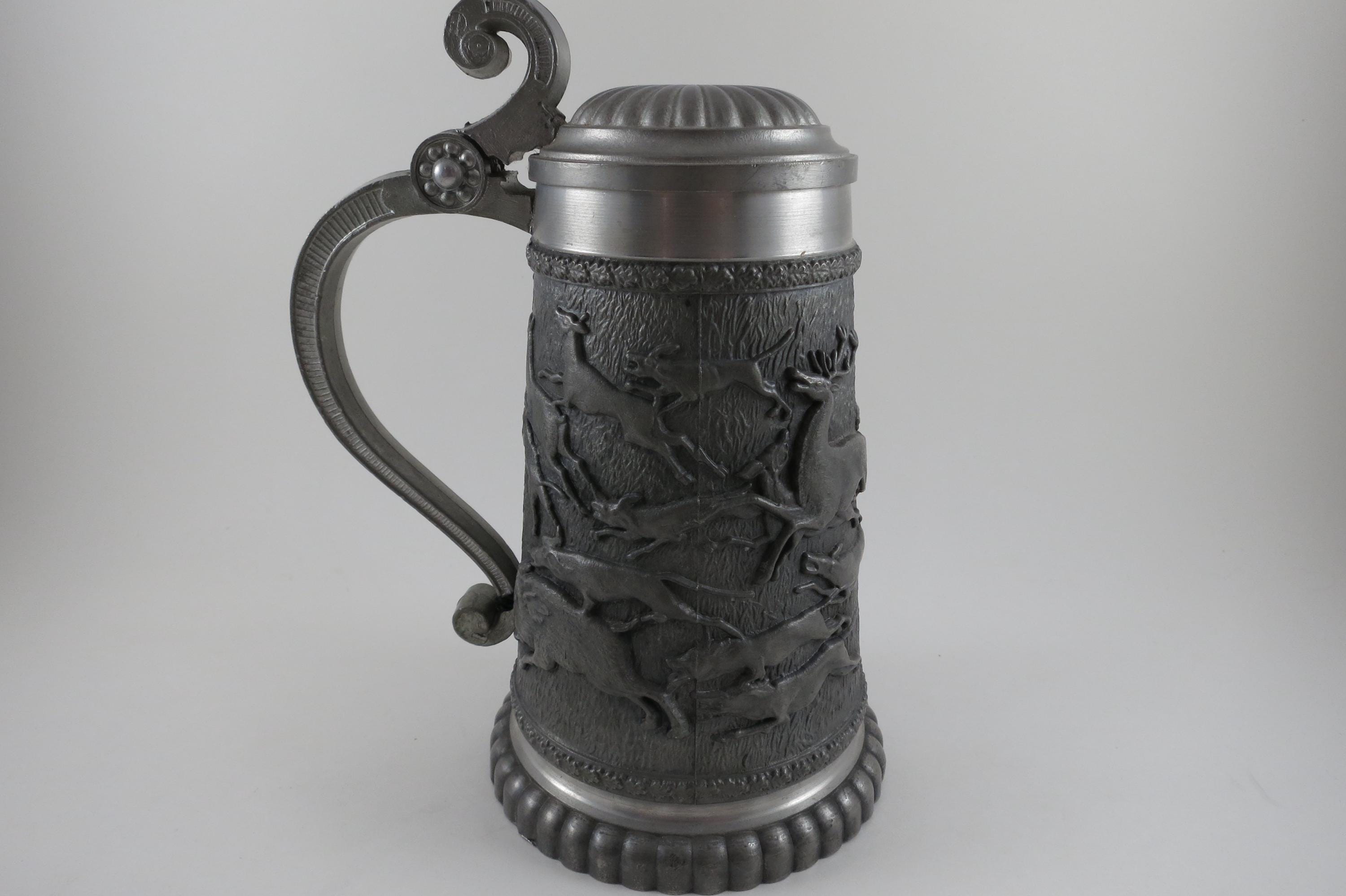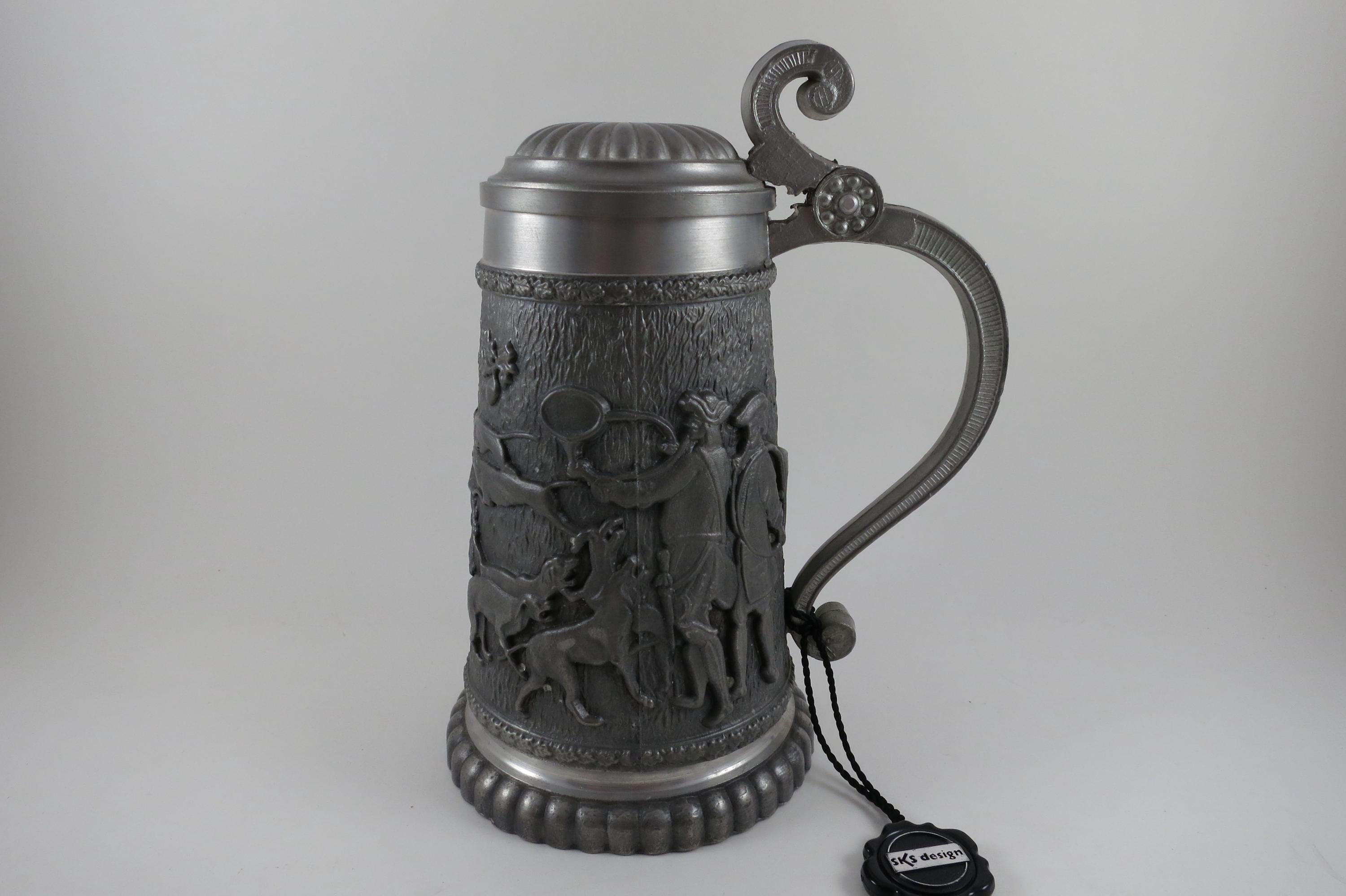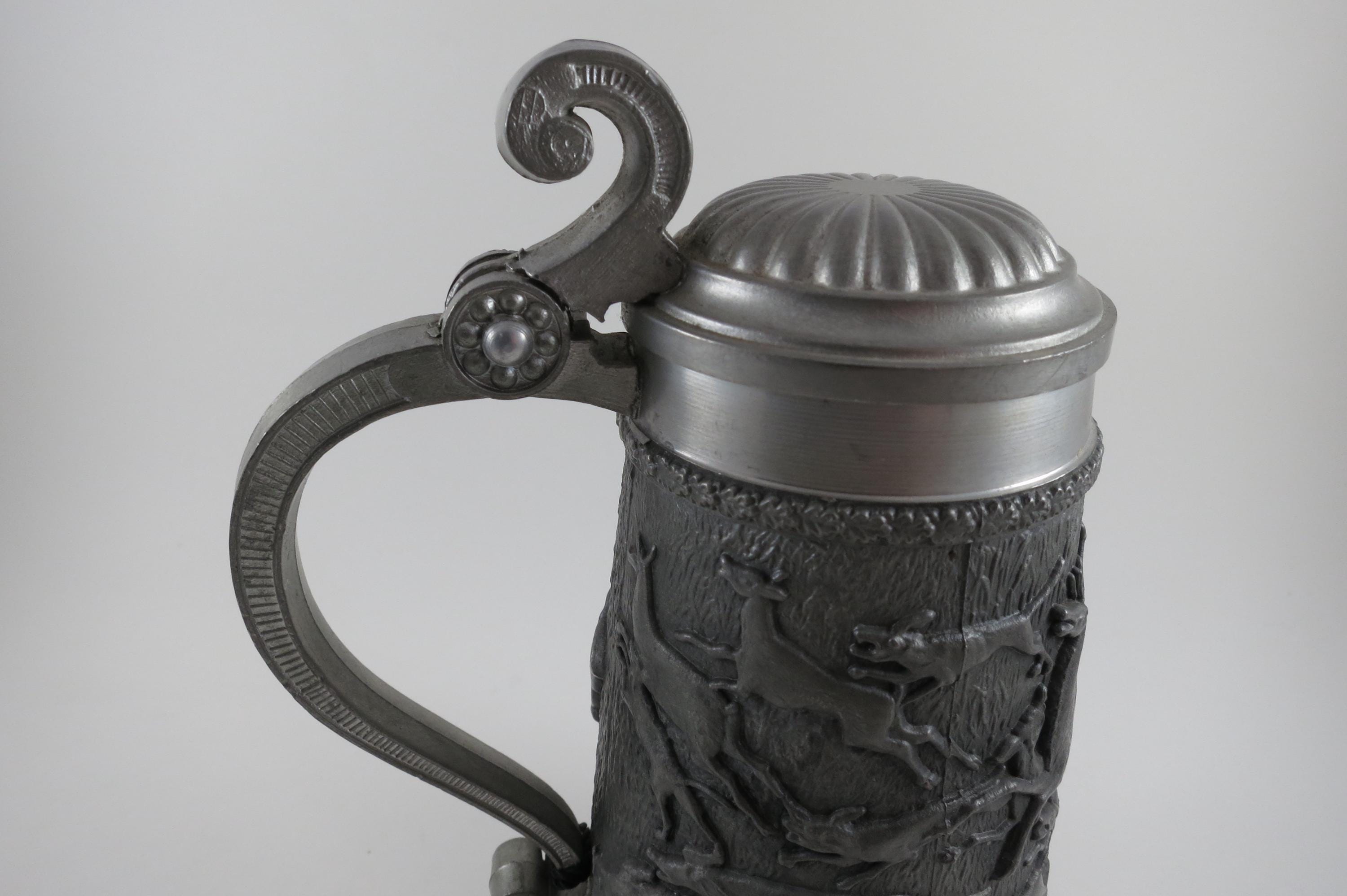 Vintage Rein Zinn SKS Design 95% Pewter Lidded Beer Stein.