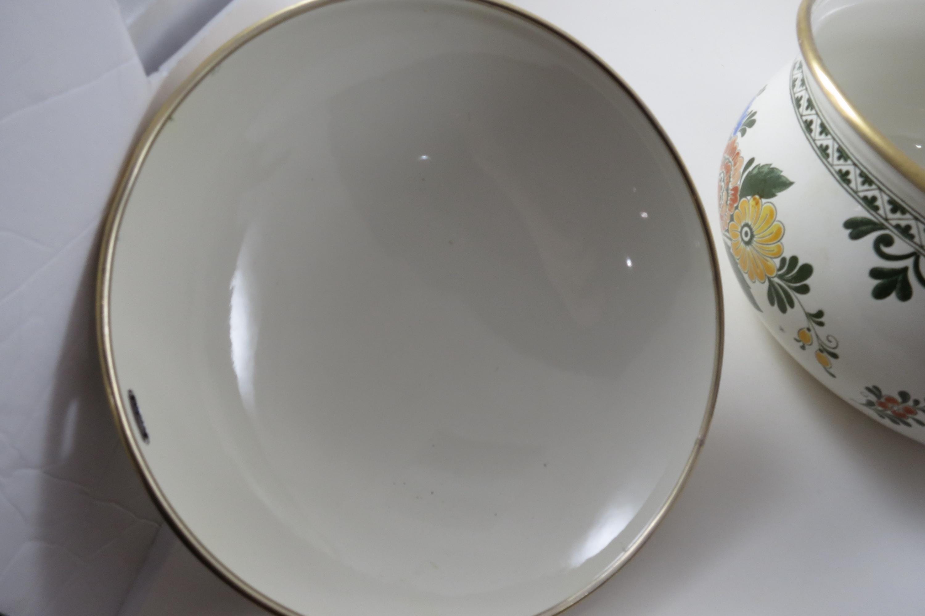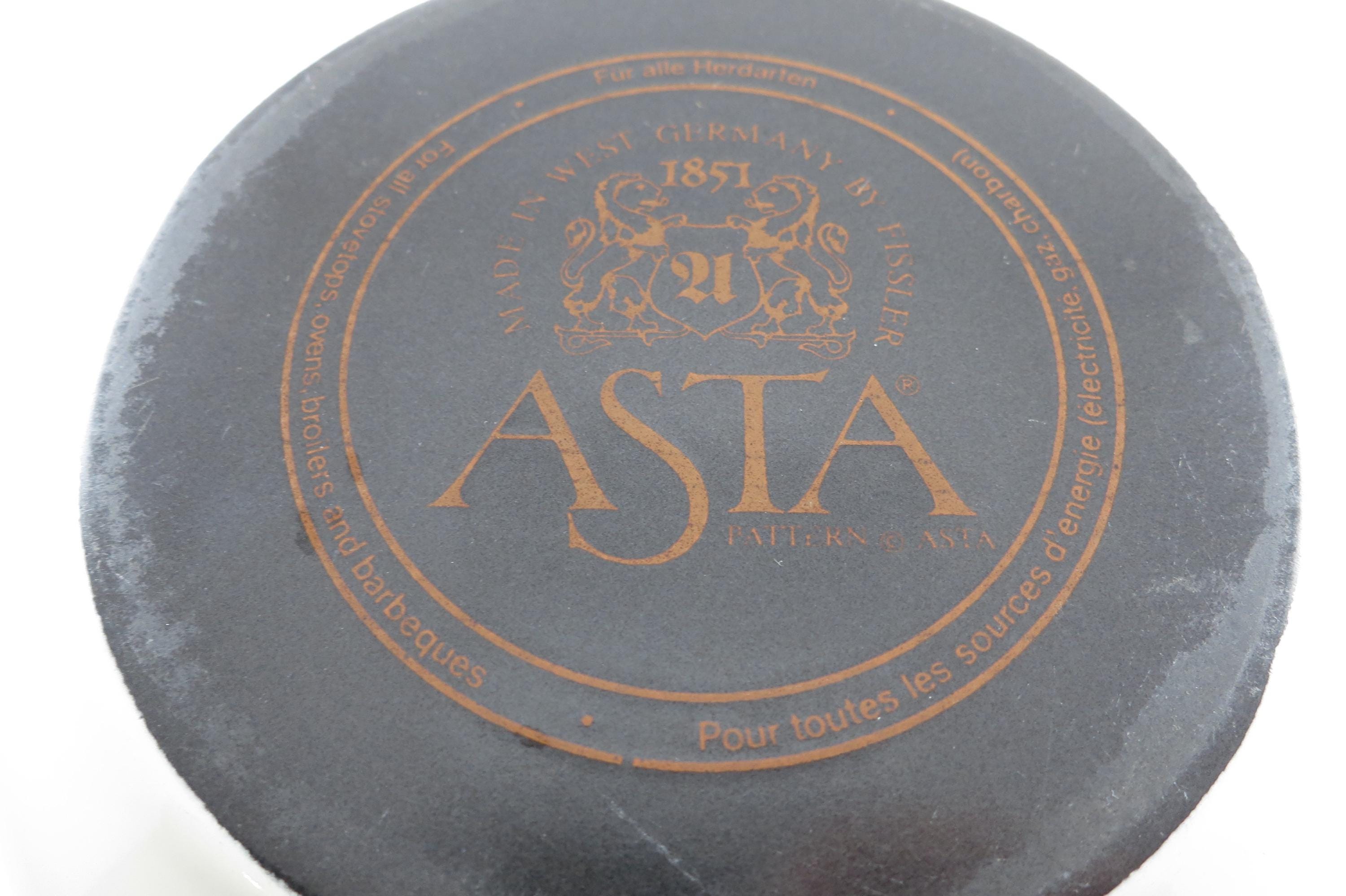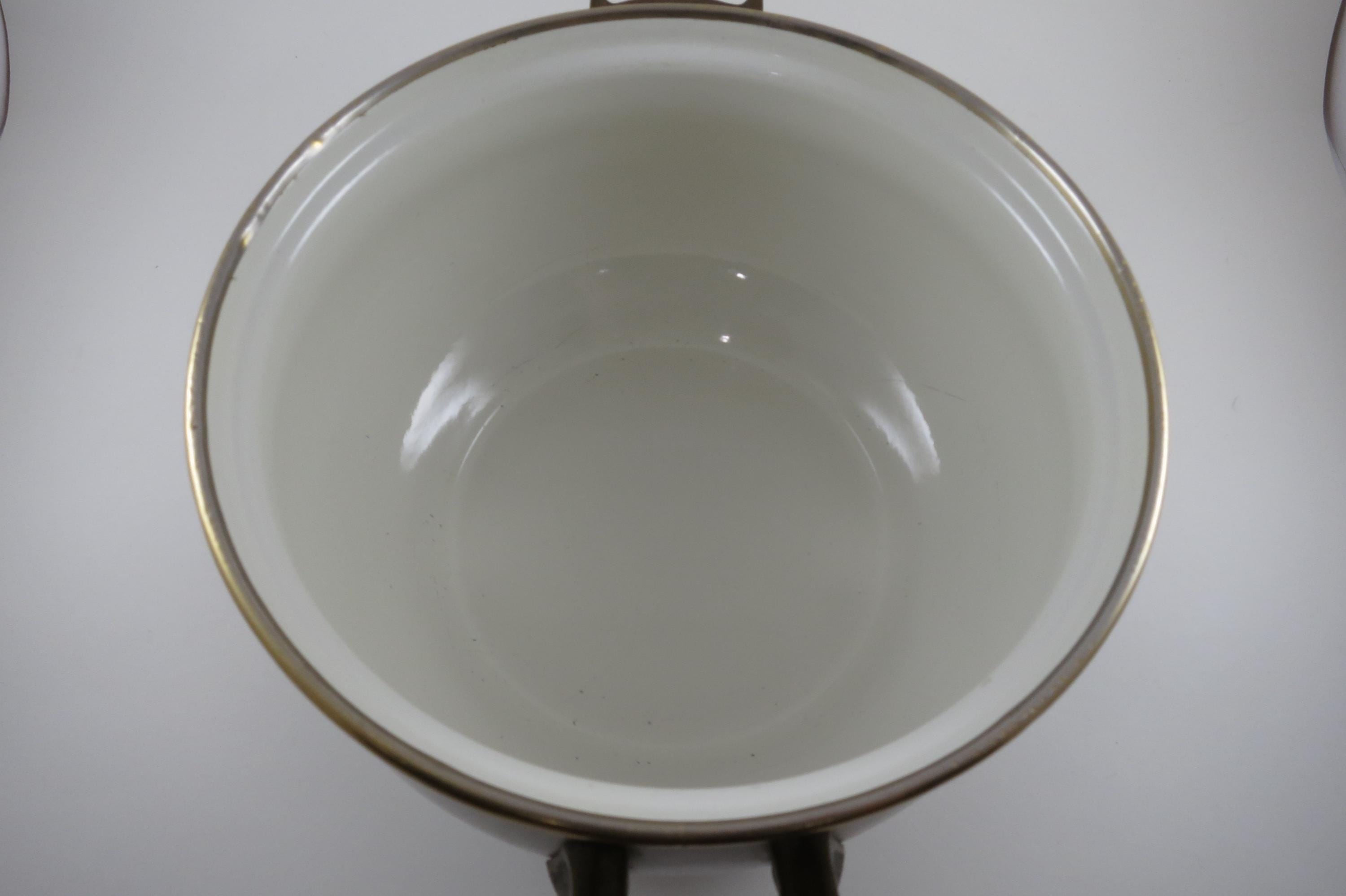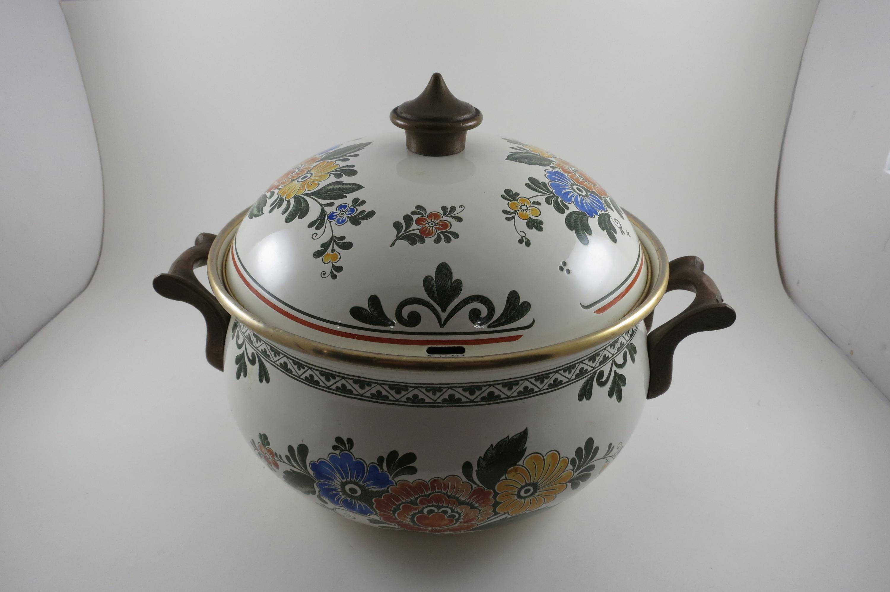 Vintage ASTA Enamelware Dutch Oven Pan/Lid Casserole Floral 1960s Brass Handles Vintage