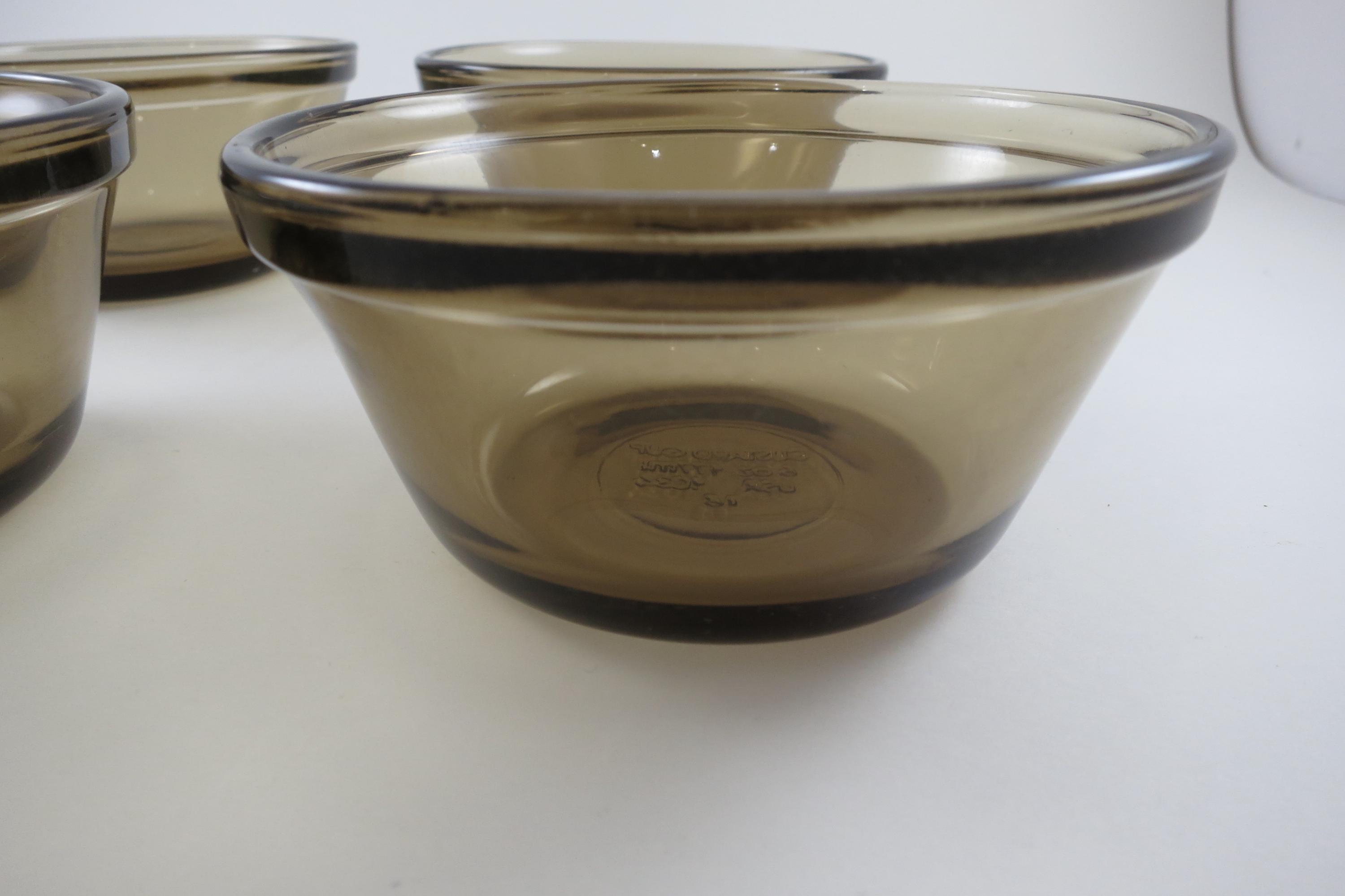 Set of Four Amber/Brown Pyrex 6 oz 177ml Custard Cups