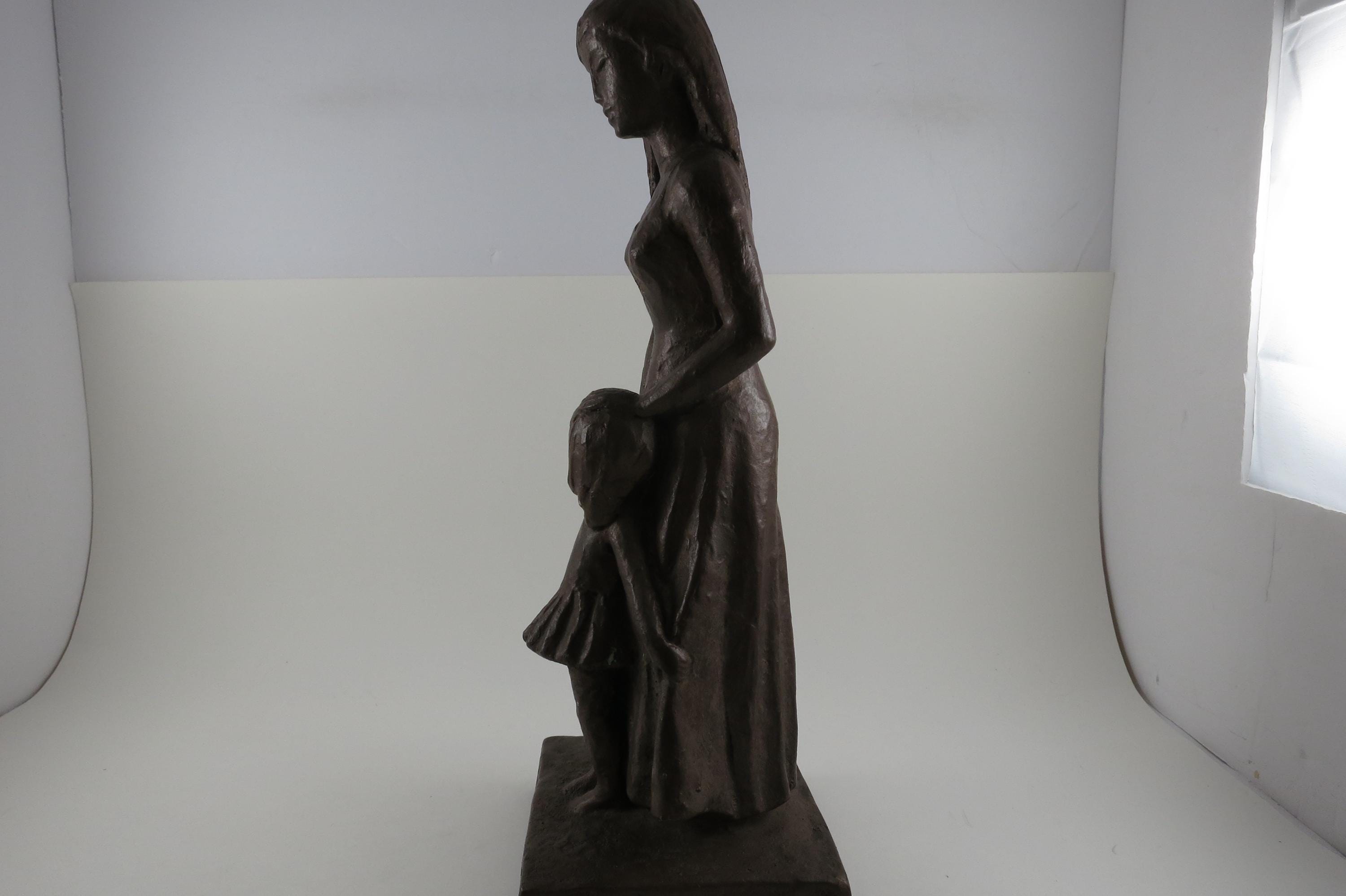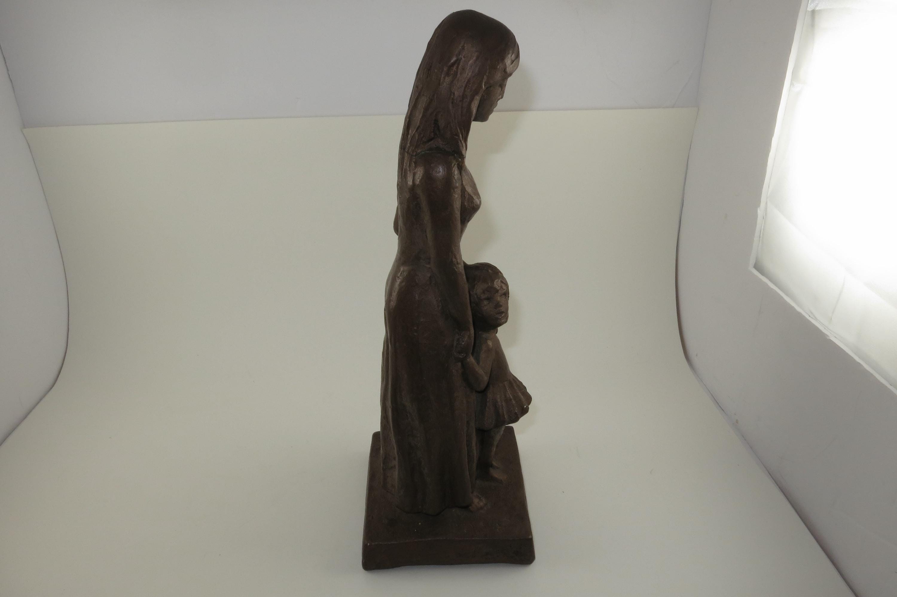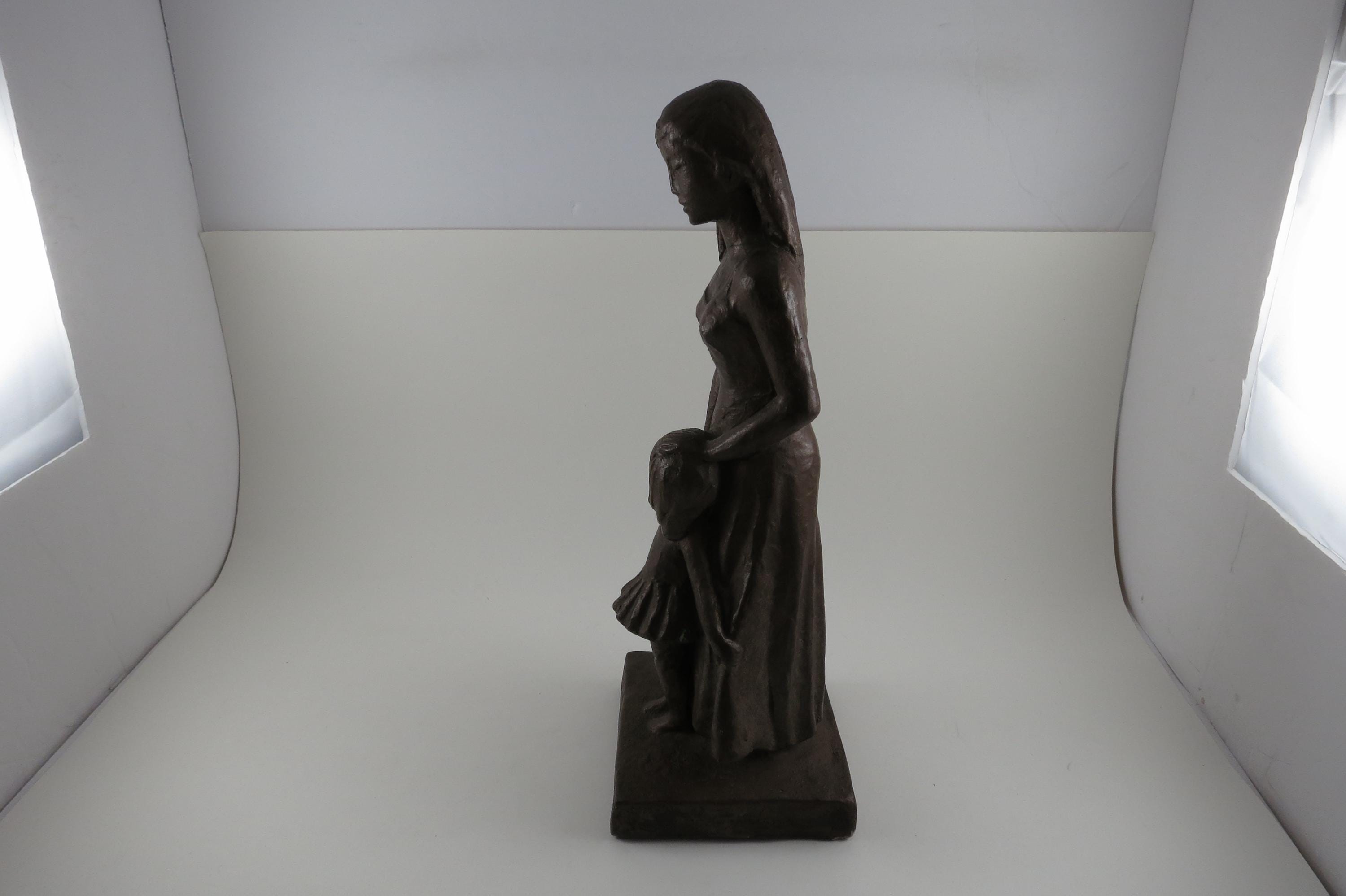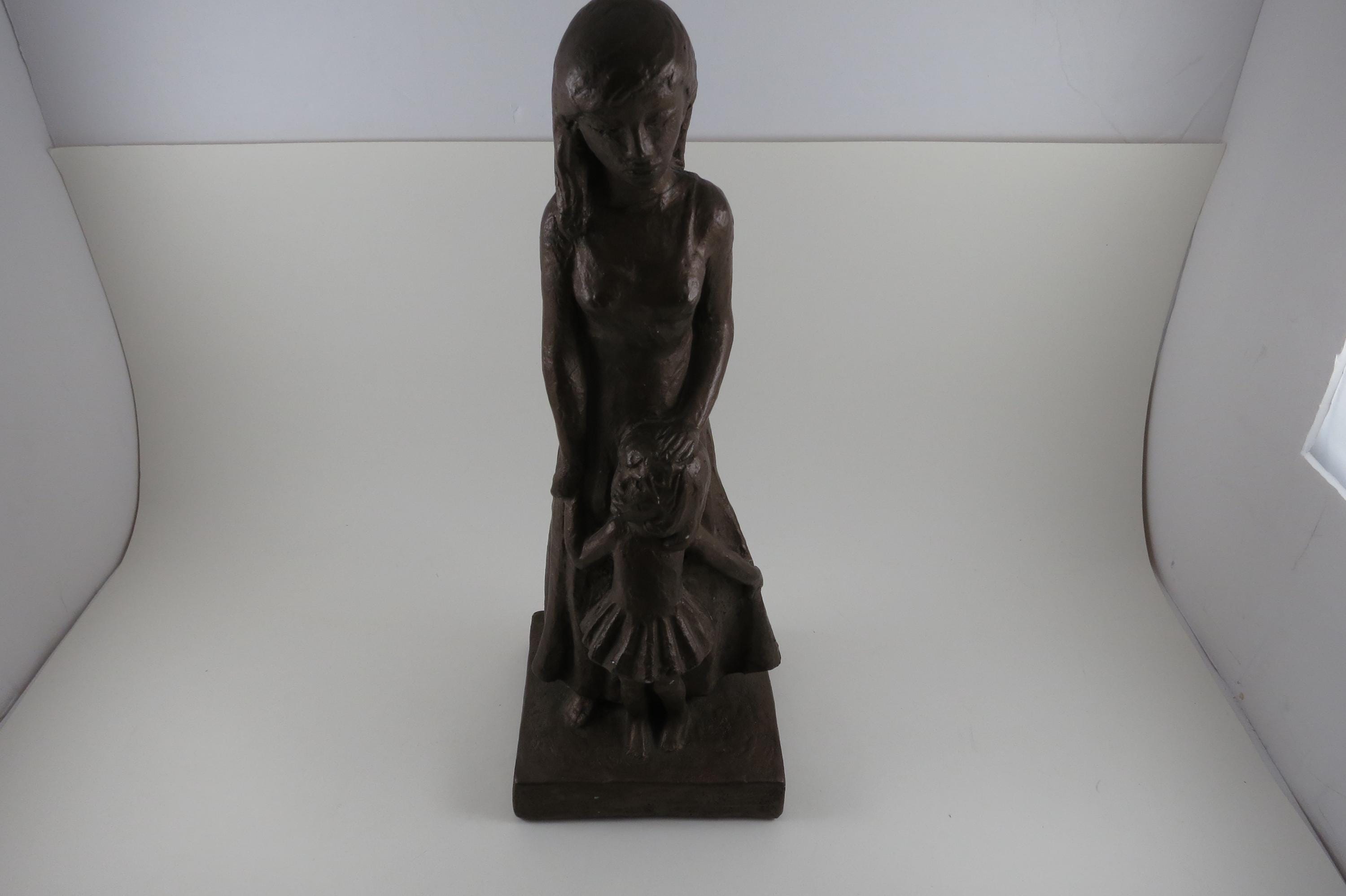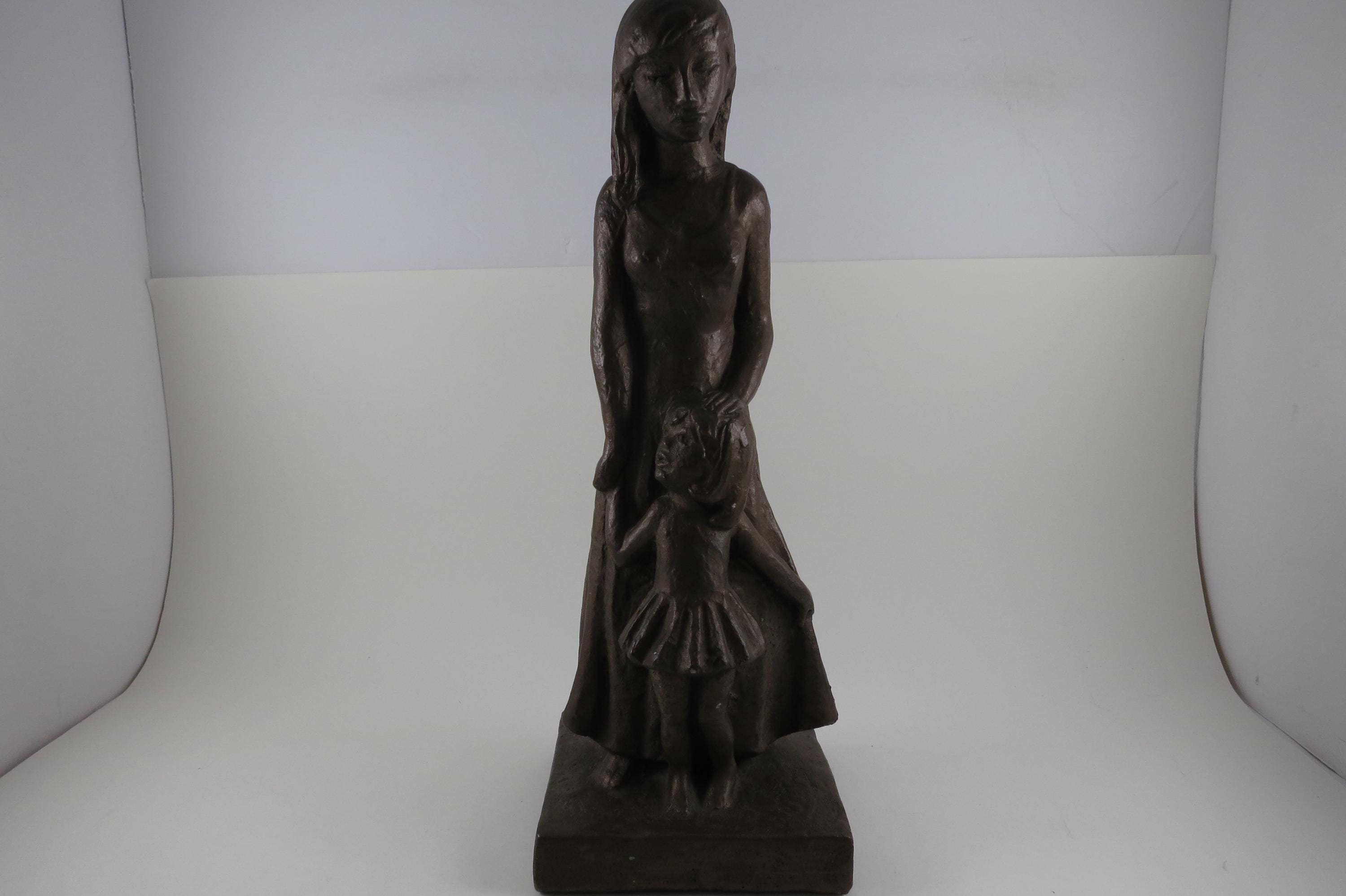 1960's Leonard Art Works Chalk Sculpture Mother and Daughter 12 1/4 Inches