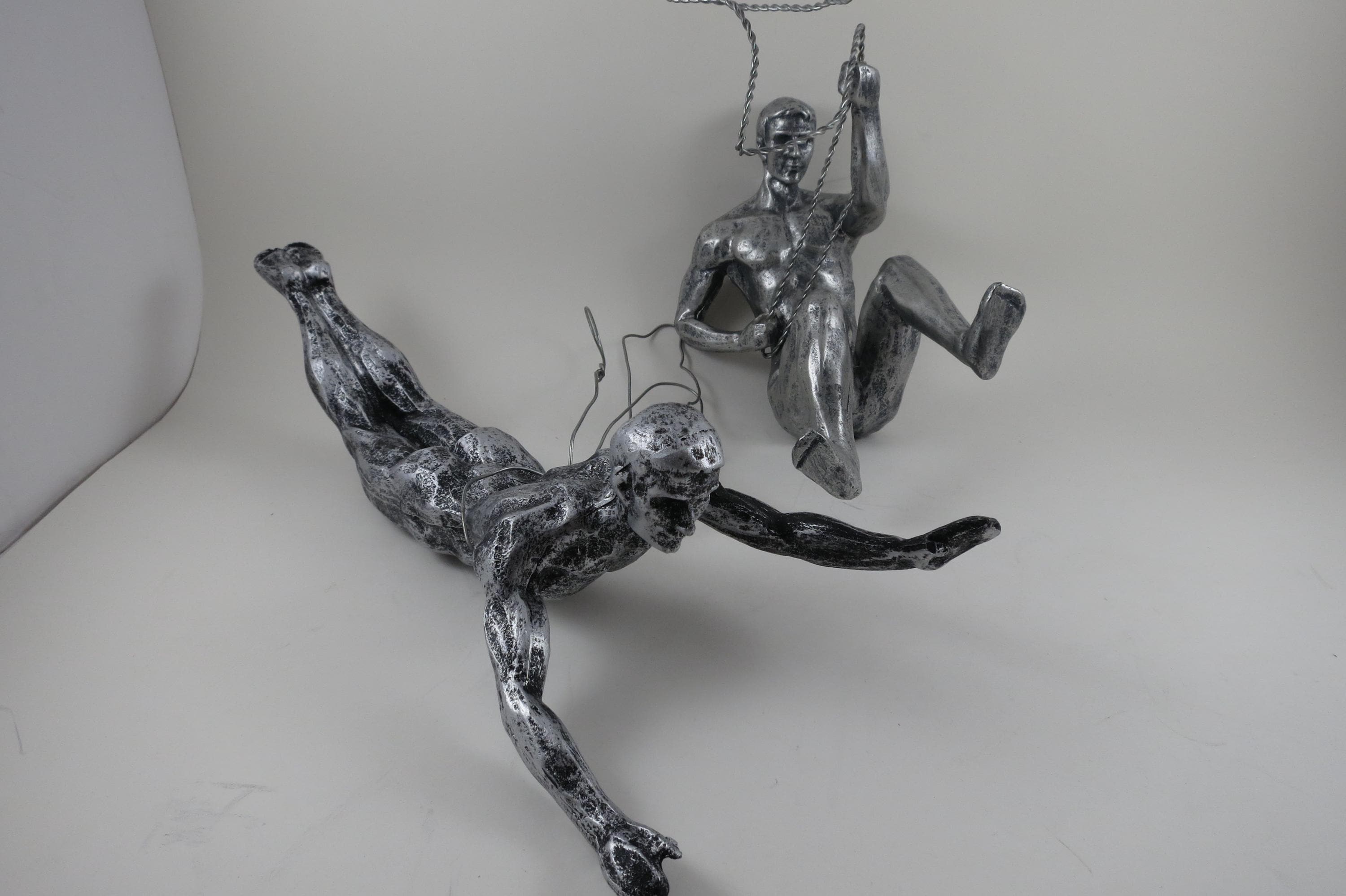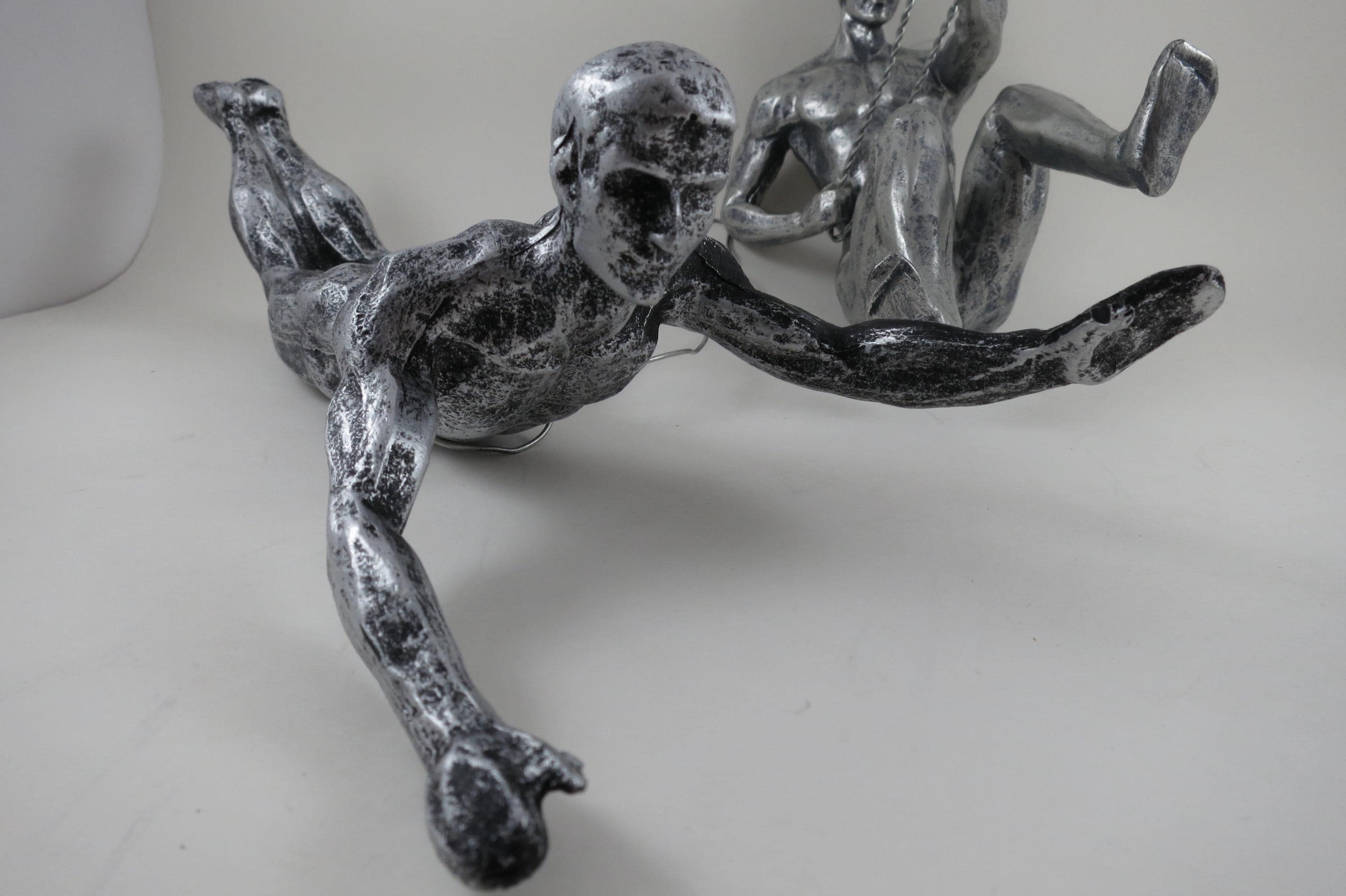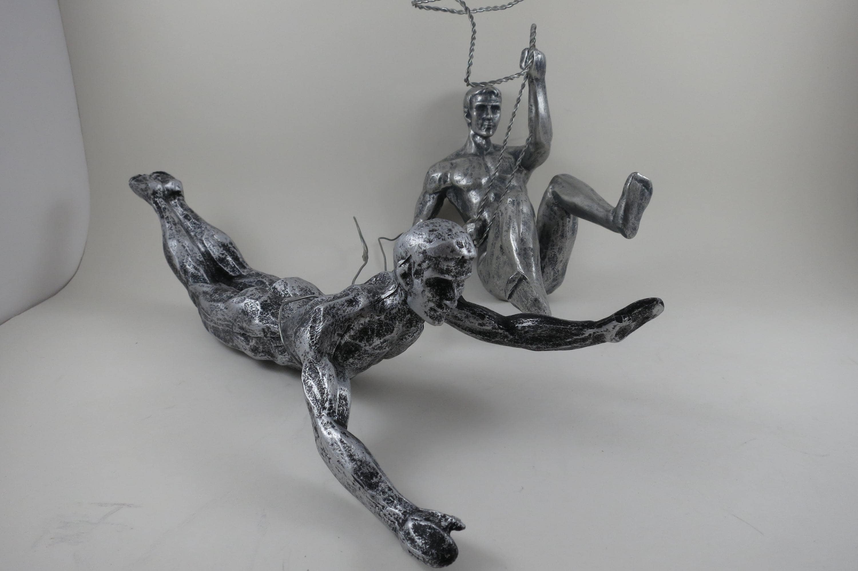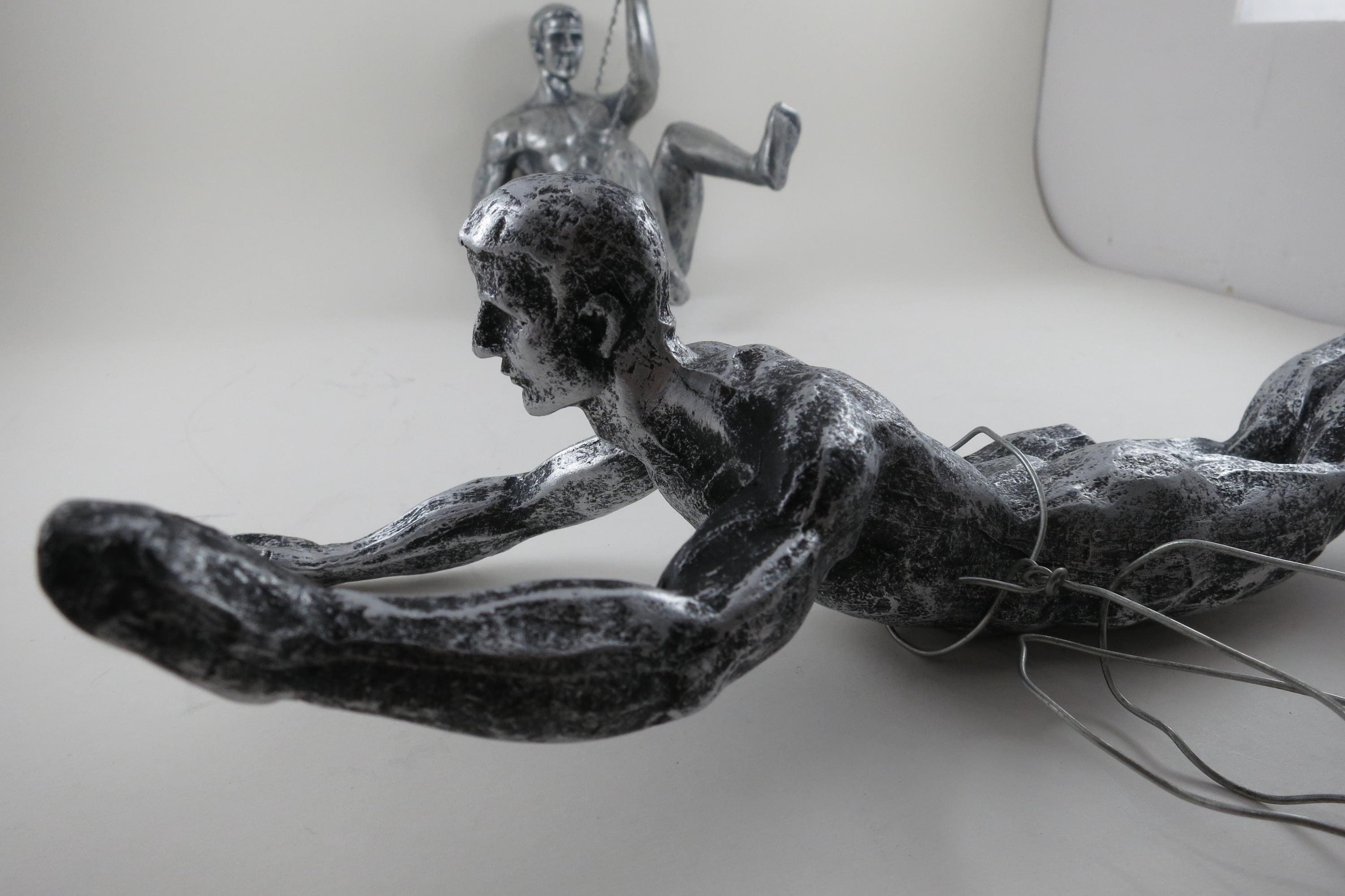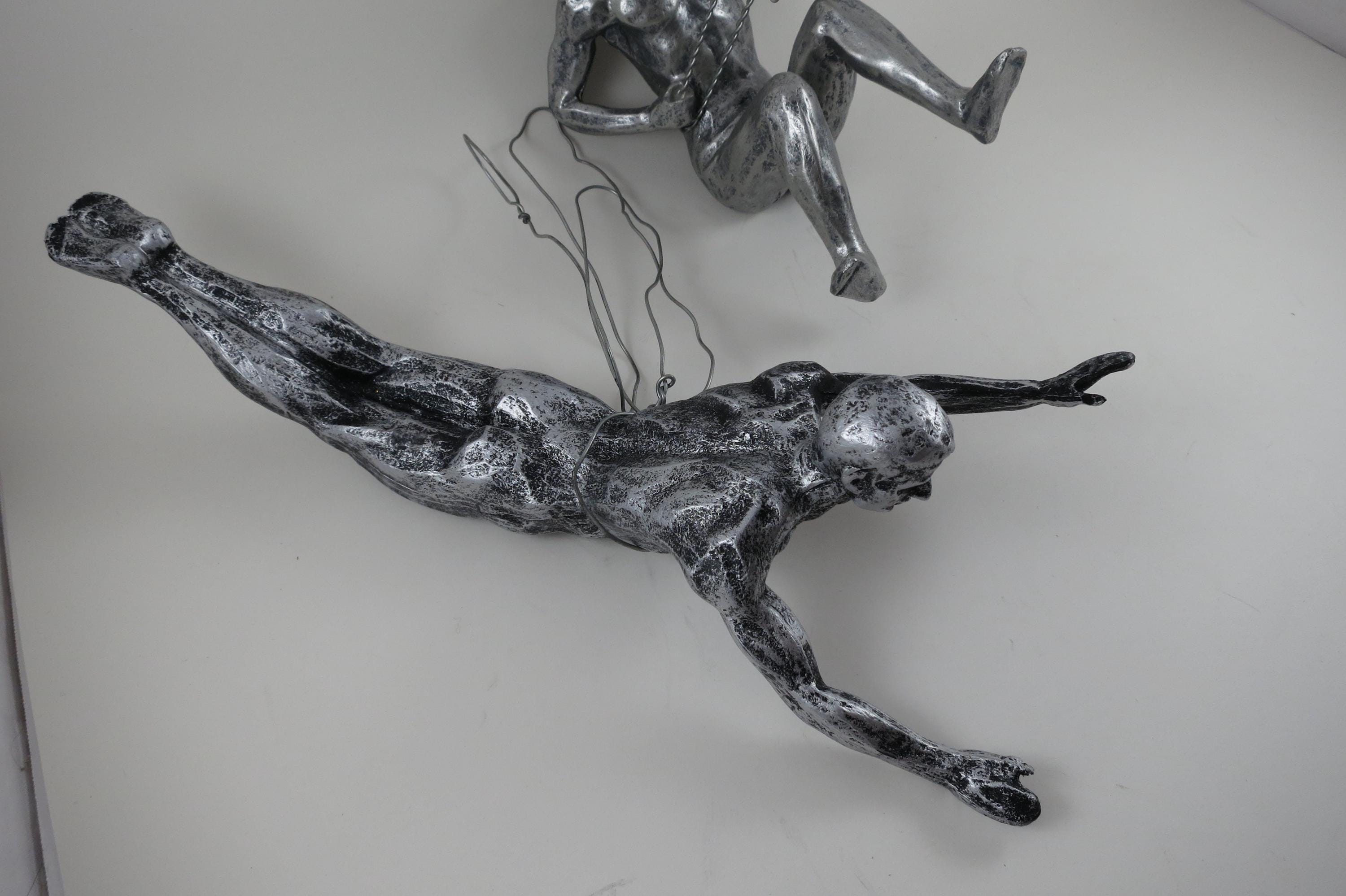 Unique Pair of Climbing Men Wall Sculptures Man Cave Art Deco MCM