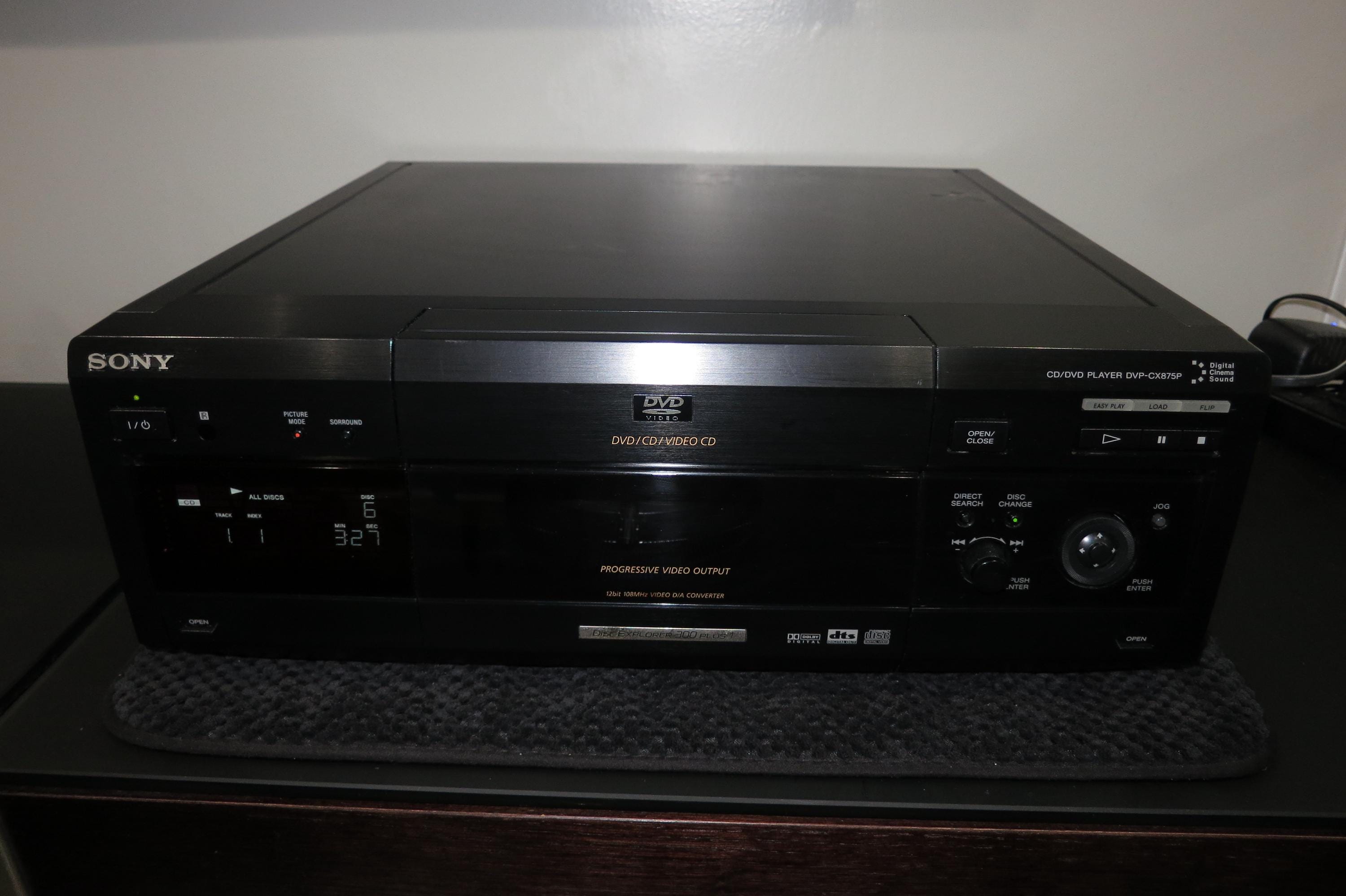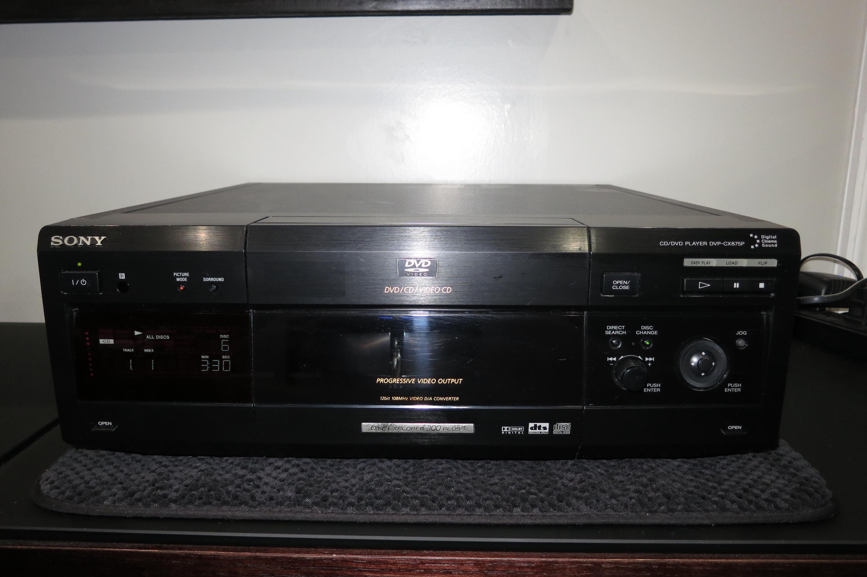 Vintage Sony DVP-CX875P Mega CD Changer Mini Jukebox Mega Storage 300 Discs. Of course is also a player, hooks directly into your receiver through the A/V Cables. (We are happy to include a set if you need them!!)