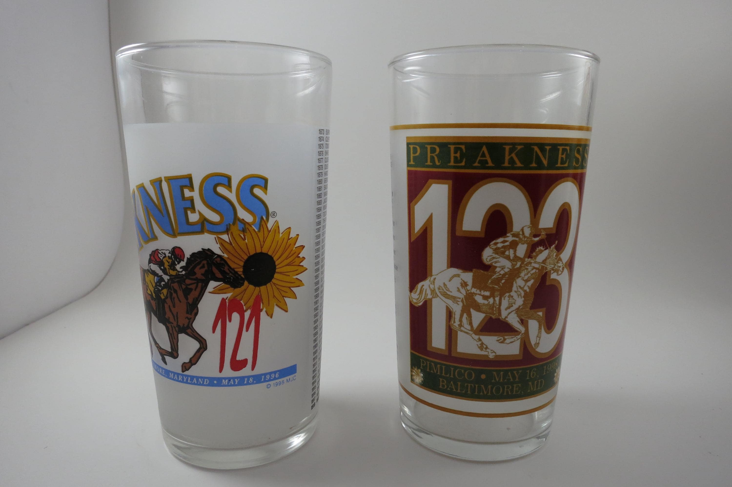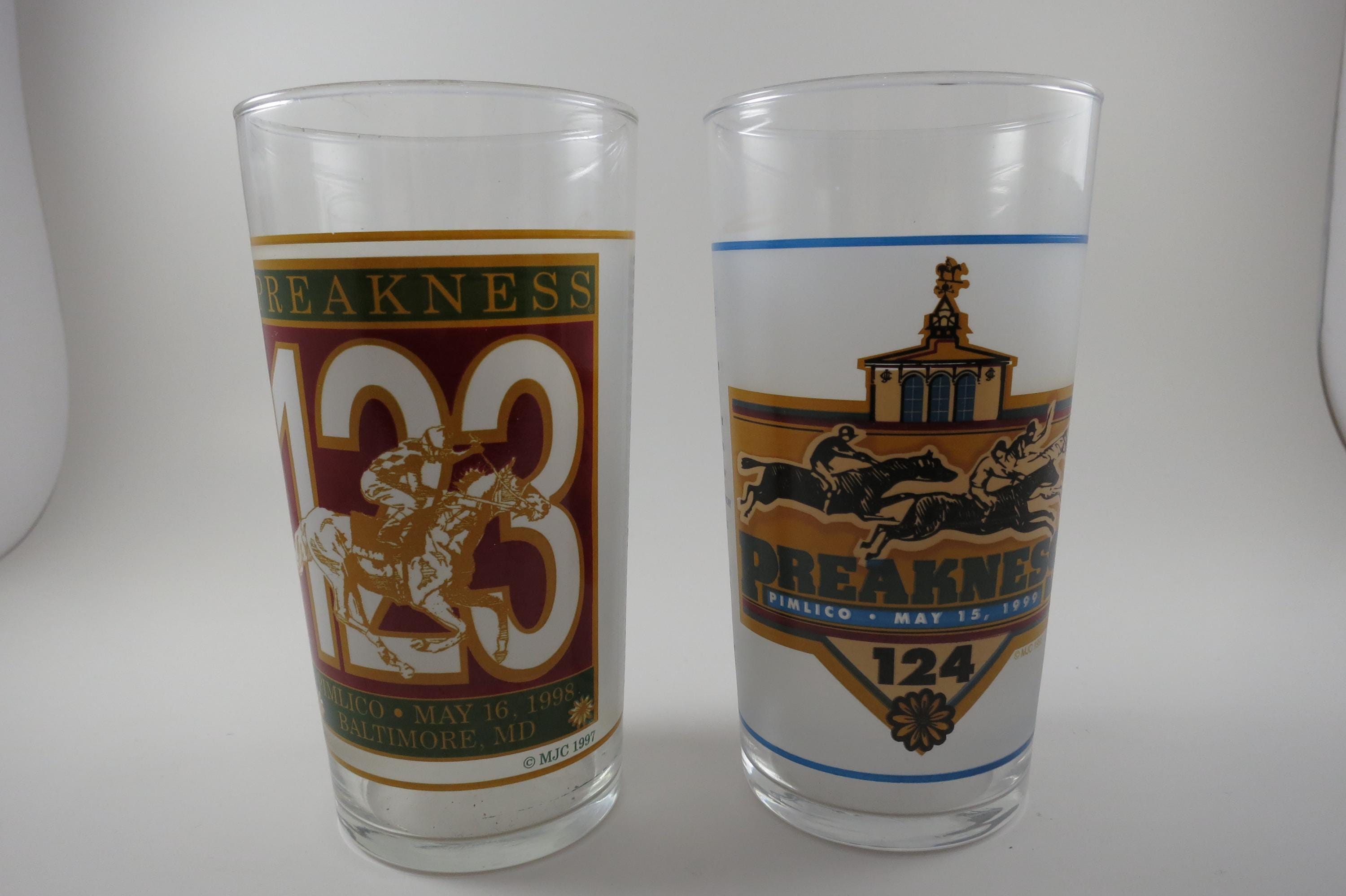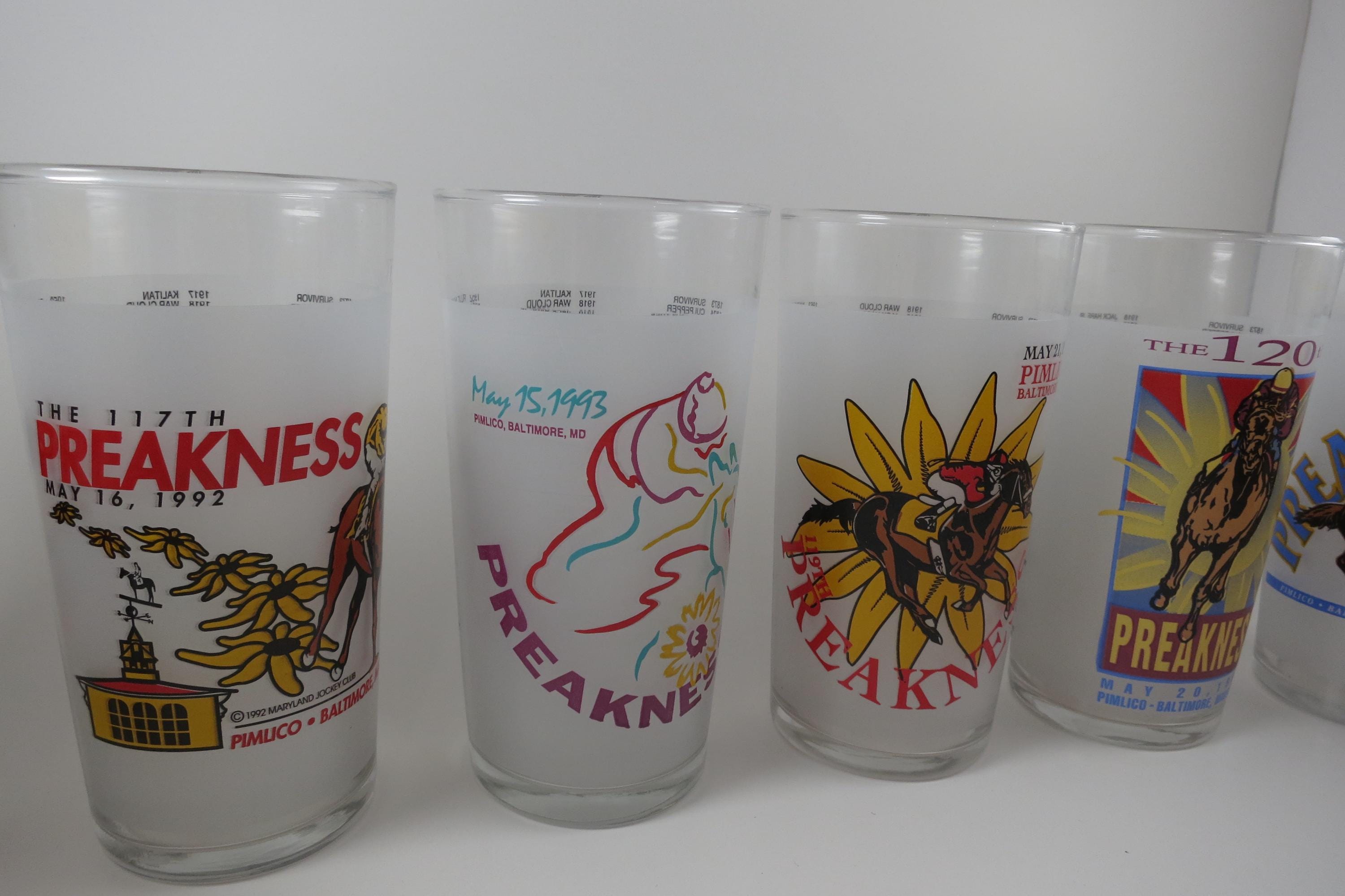 Vintage & Modern Preakness Stakes Horse Racing Glasses Pimlico 1978-15 Sold Individually.