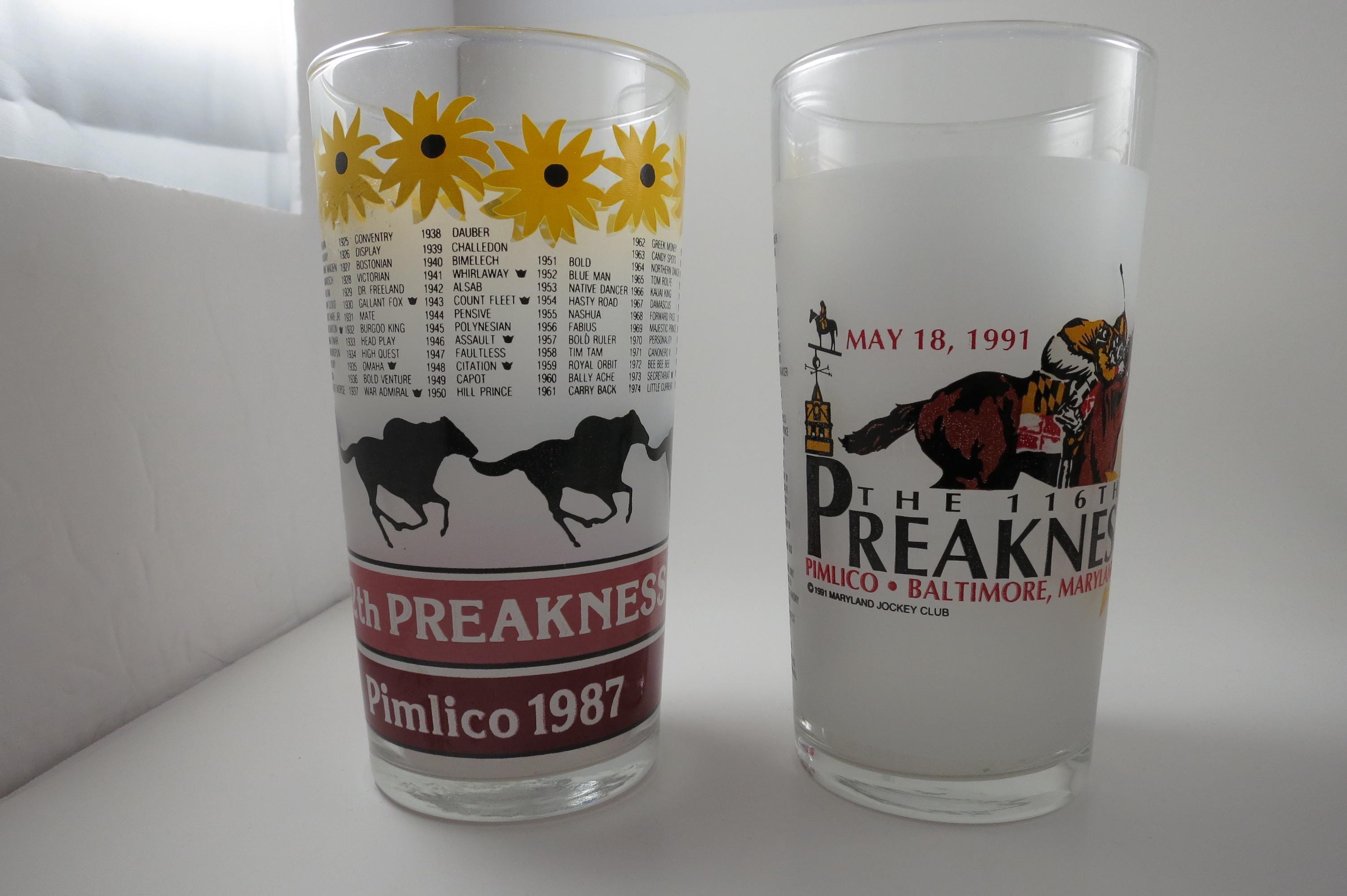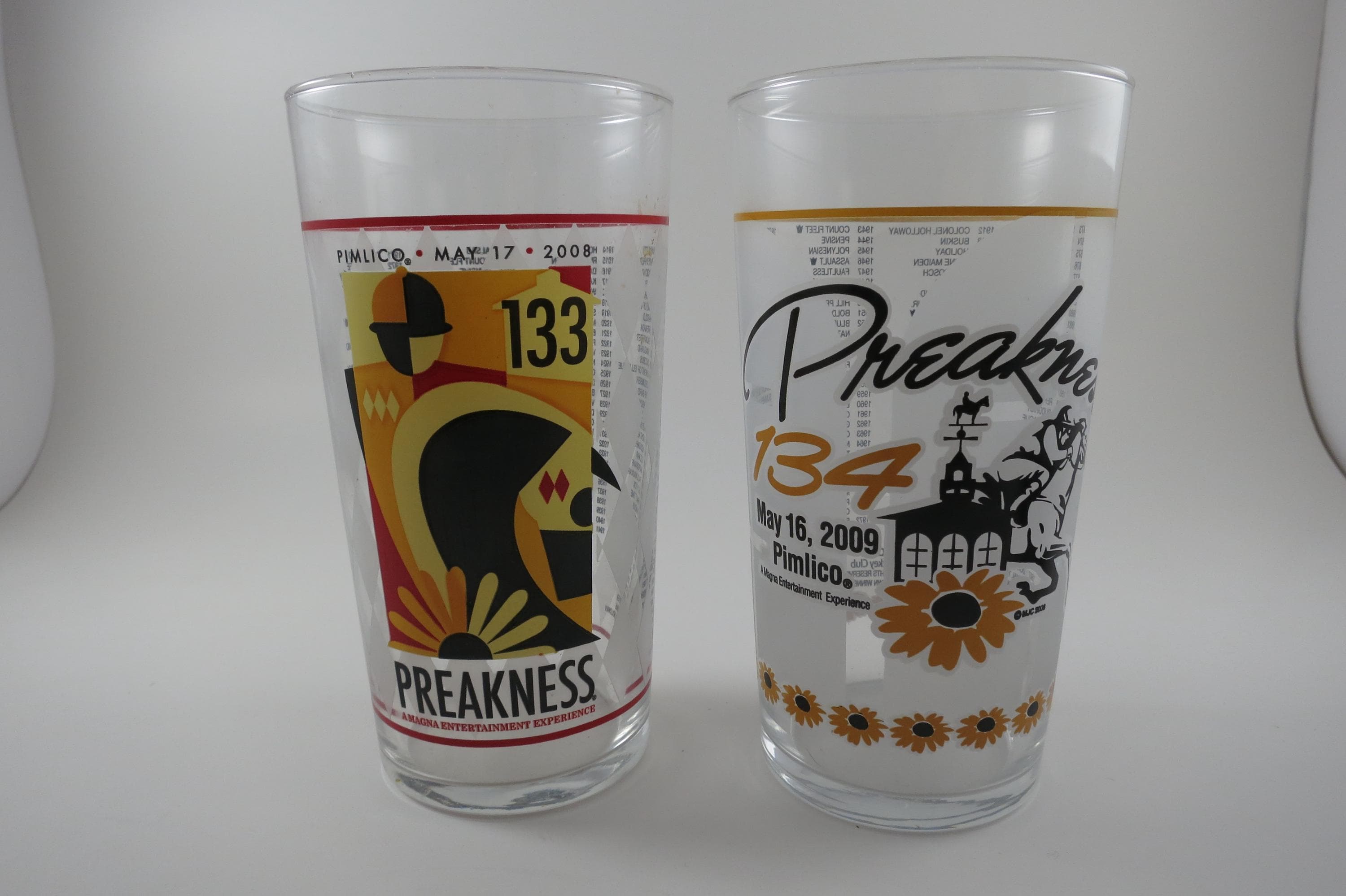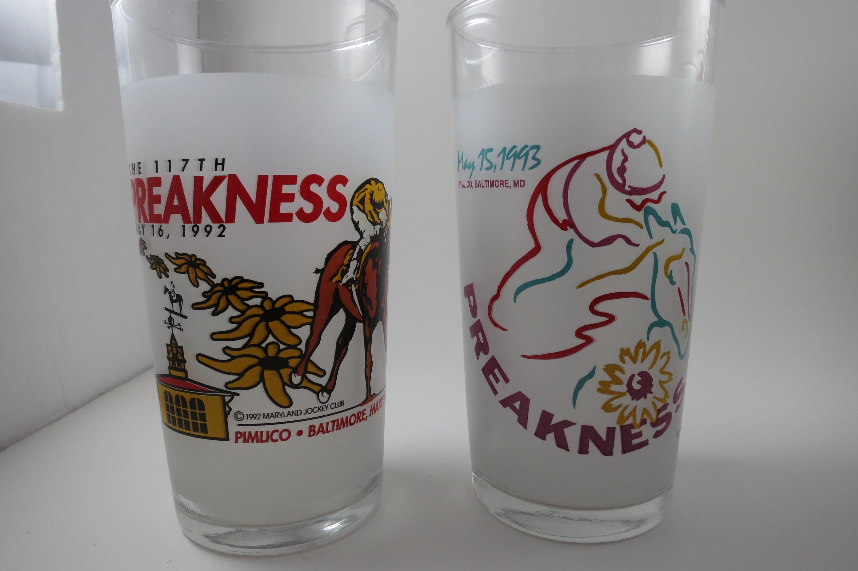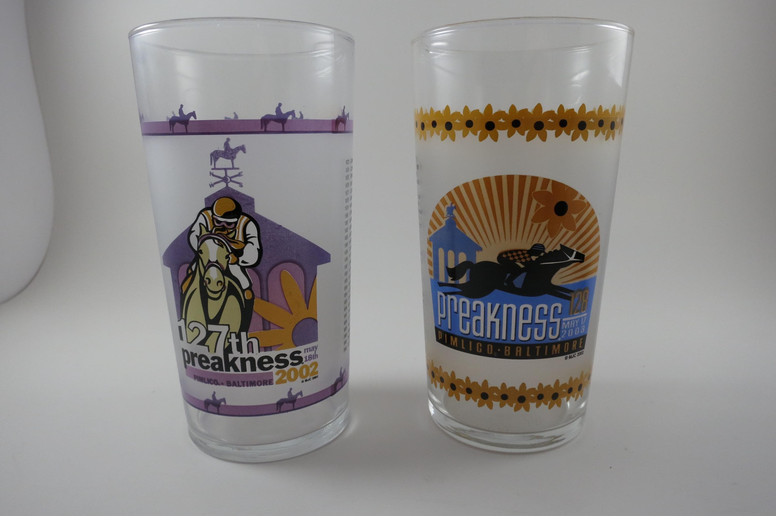 Vintage & Modern Preakness Stakes Horse Racing Glasses Pimlico 1978-15 Sold Individually.